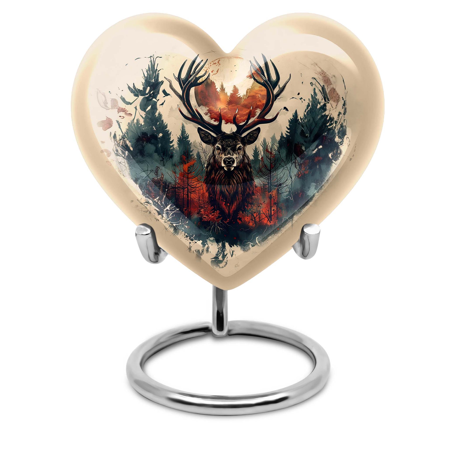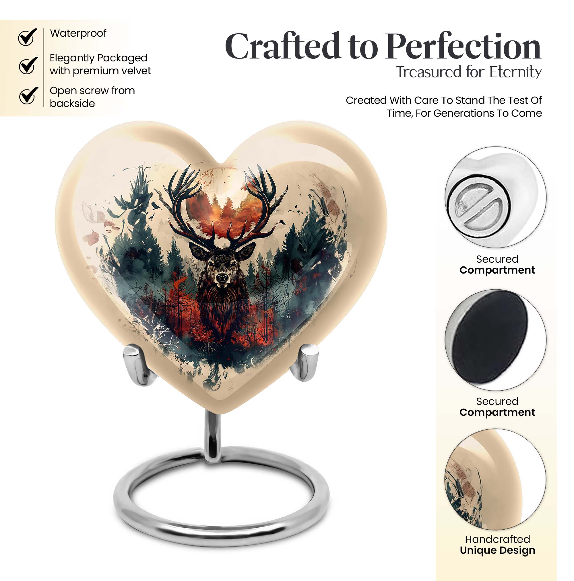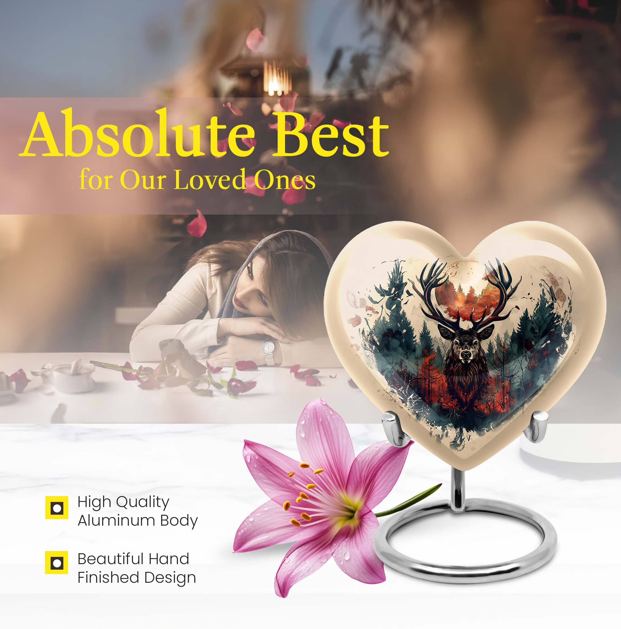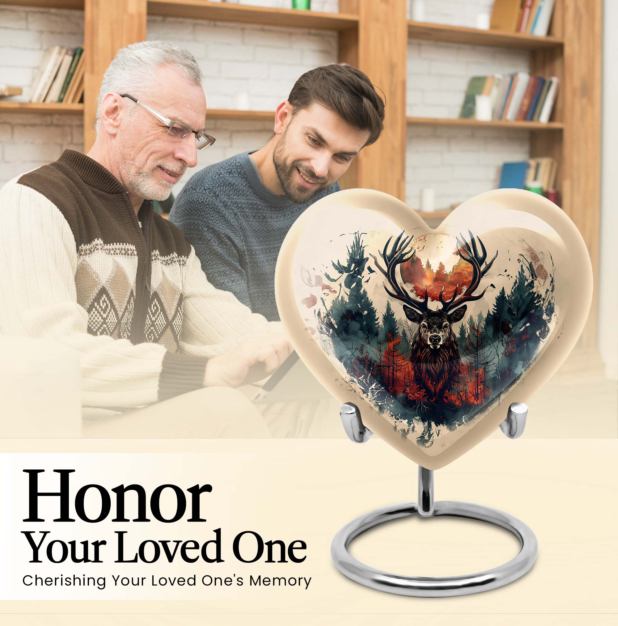 Discover the heart-warming comfort of our wolf-themed Deer Urn in the challenging times of bereavement. Also known as memorial urns, this particular piece is of large size, translating to 10 inches in height and has the capacity to hold up to 200 cubic inches of ashes, making it ideal for an adult burial, funeral urns for burial, or cremation ashes. Crafted with utmost care and precision from robust Aluminium, the urn weighs around 3.3 pounds, promising long-lasting durability. The Heart Urn design, accented by the deeply emotive theme of the 'Wolf Howling', not only serves as a memento but also as a sympathetic tribute to your loved one. The urn package also includes a velvet pouch designed for the safe containment of ashes. For a more personal touch, we offer customization options to engrave names, adding a meaningful connection to this precious keepsake. This piece is a thoughtful choice especially when searching for cremation urn for dad or human adult urns. Discover the solace that comes with the perfect memorial by choosing our Deer Urn.
