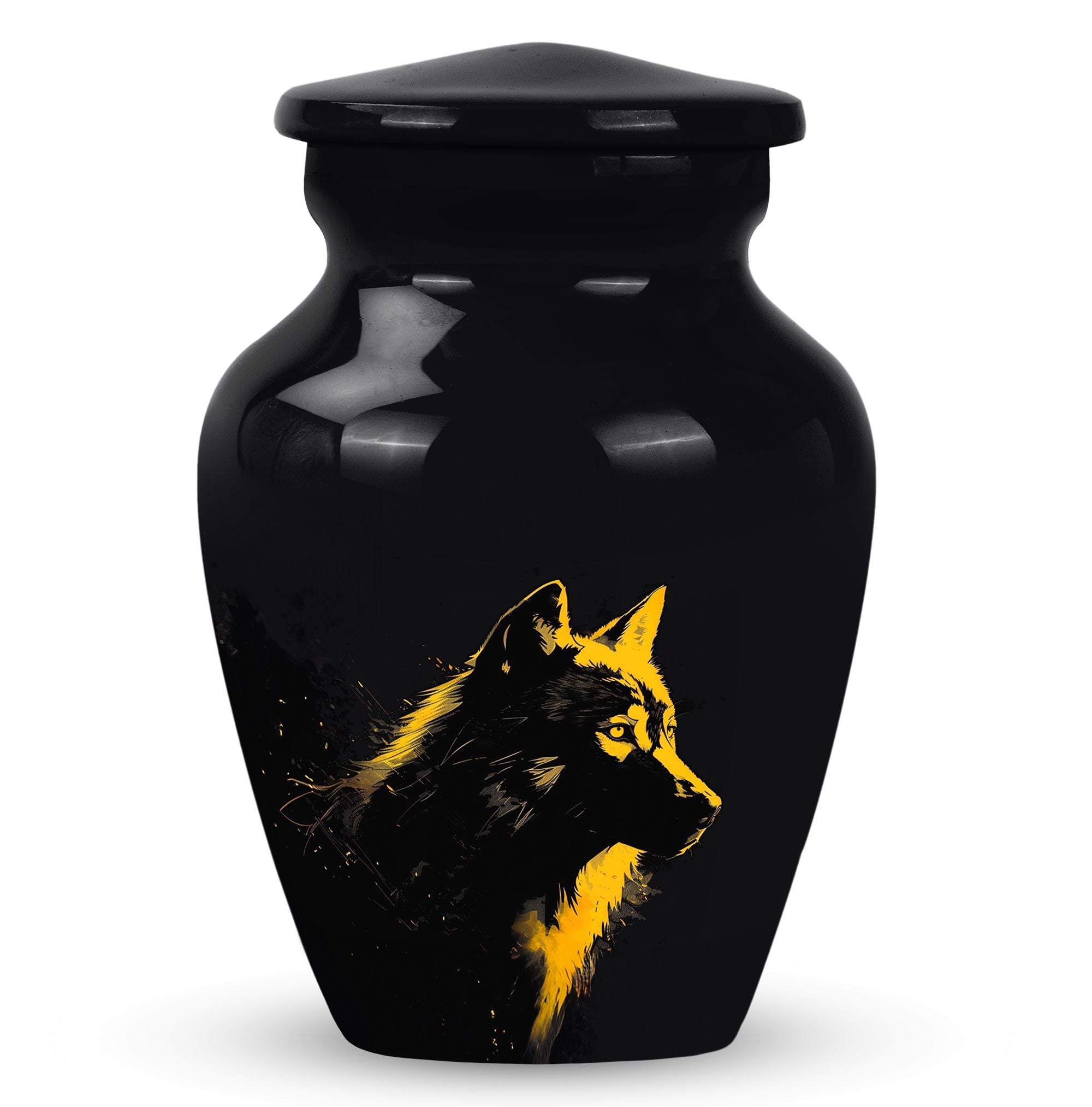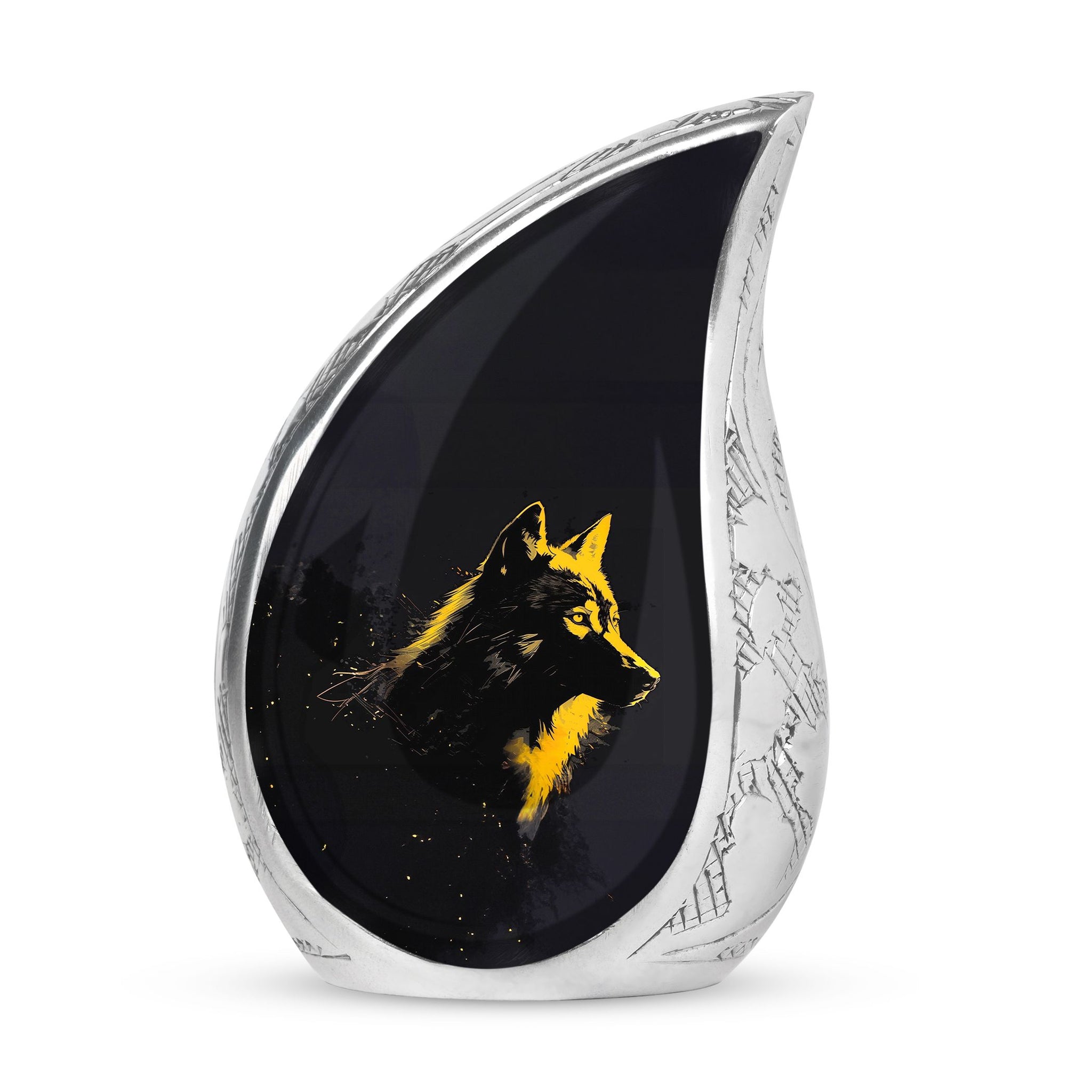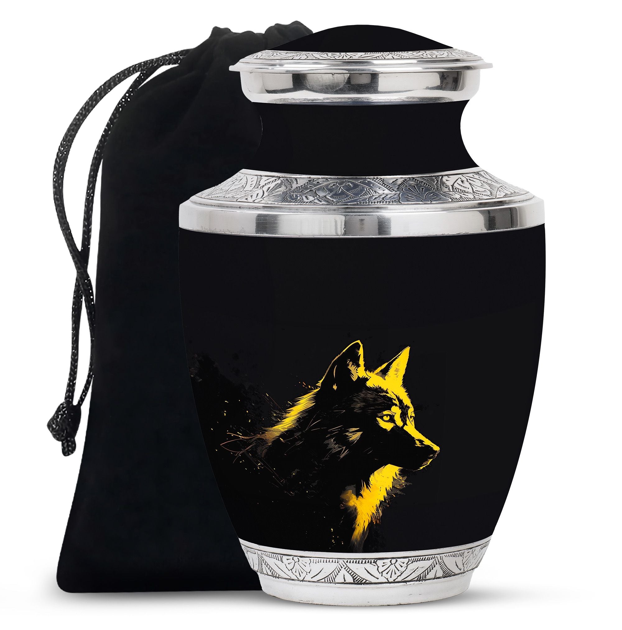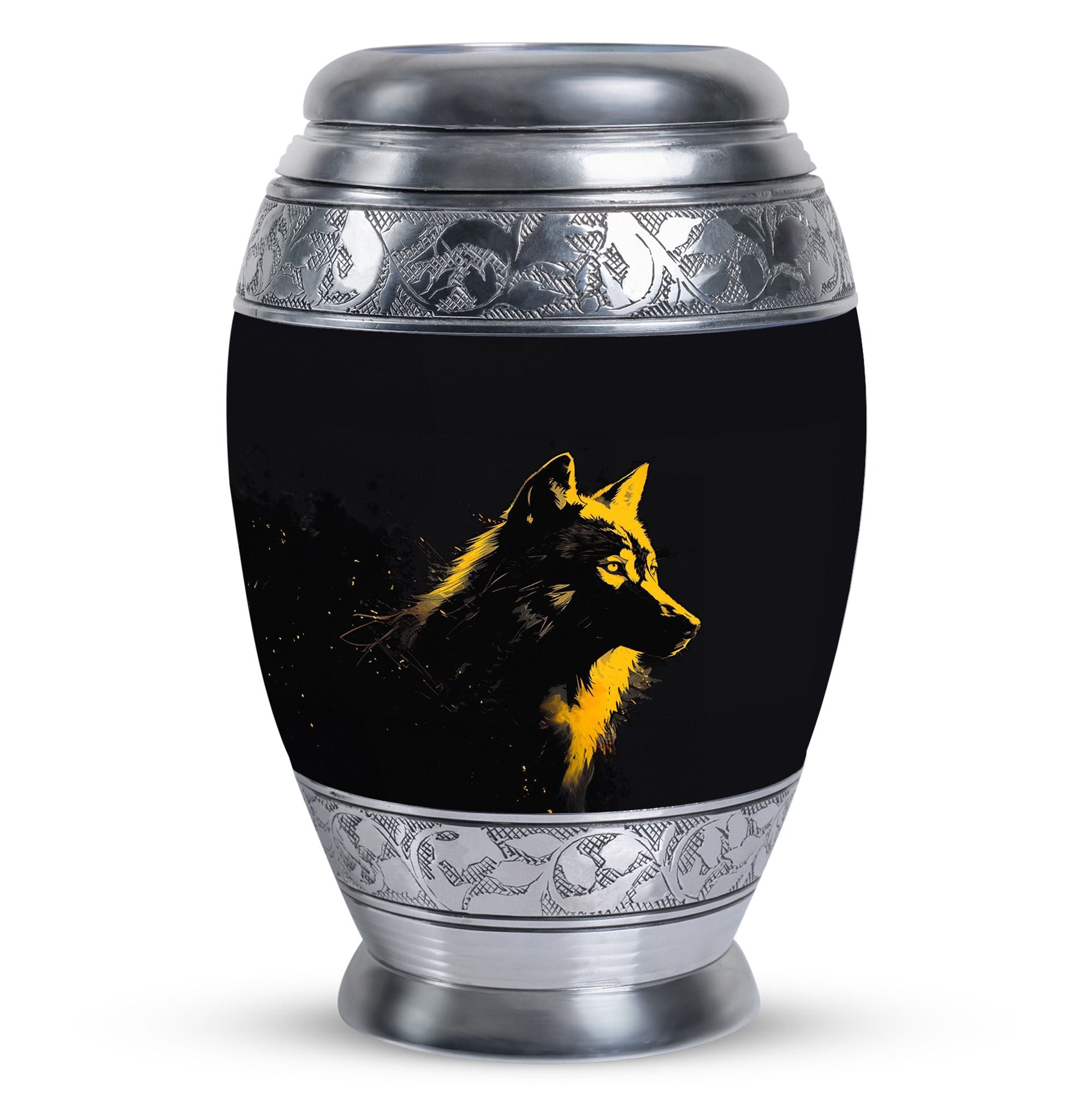 The Black and Gold Wolf Urn for Human Ashes captures the essence of strength, loyalty, and eternal love. This dignified memorial piece is designed to celebrate the powerful bond shared with a loved one—making it a perfect choice for families seeking a large cremation urn that reflects courage and grace. Whether remembering a devoted father or a nurturing large urn mom, this design embodies both protection and peace.