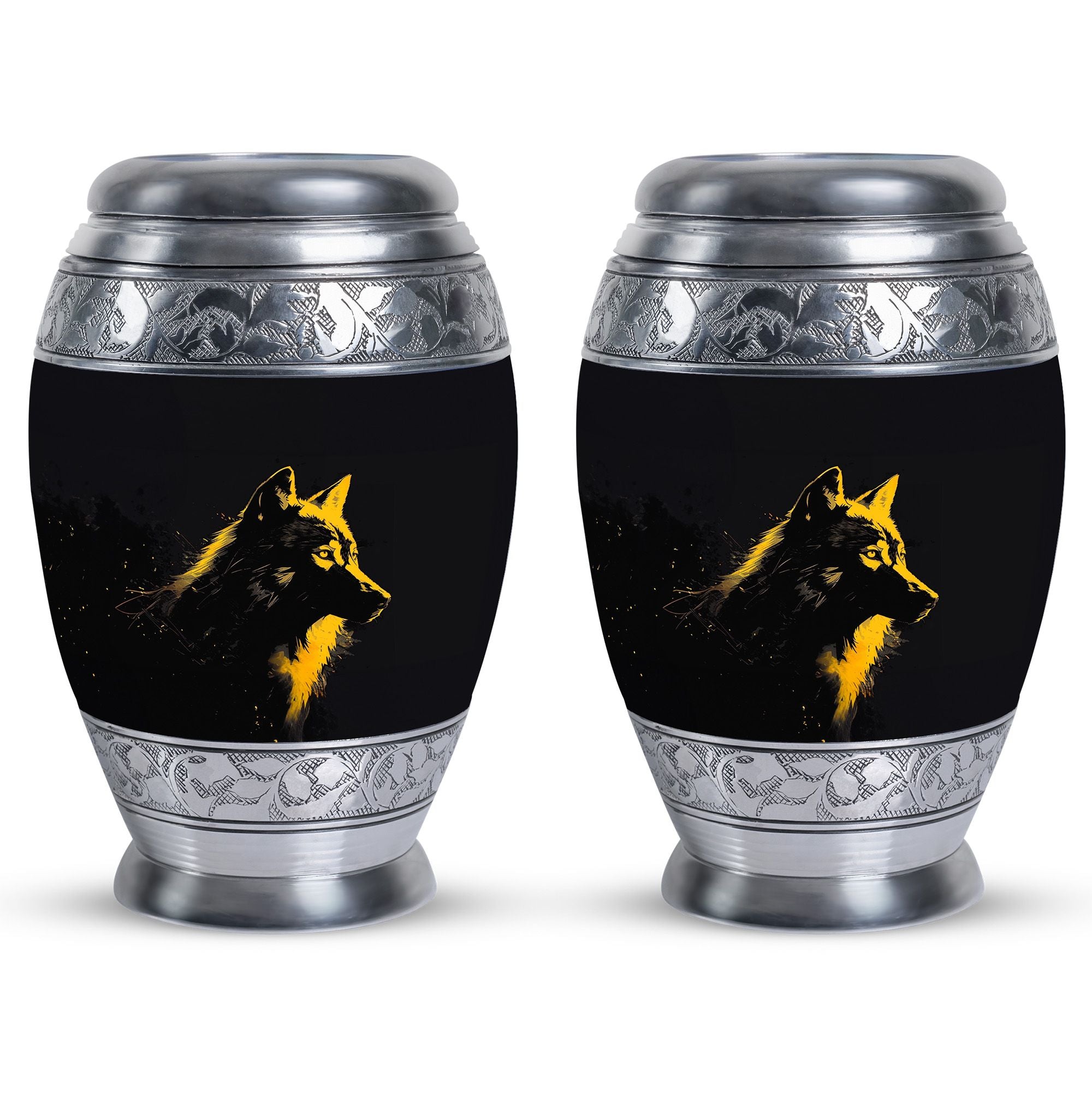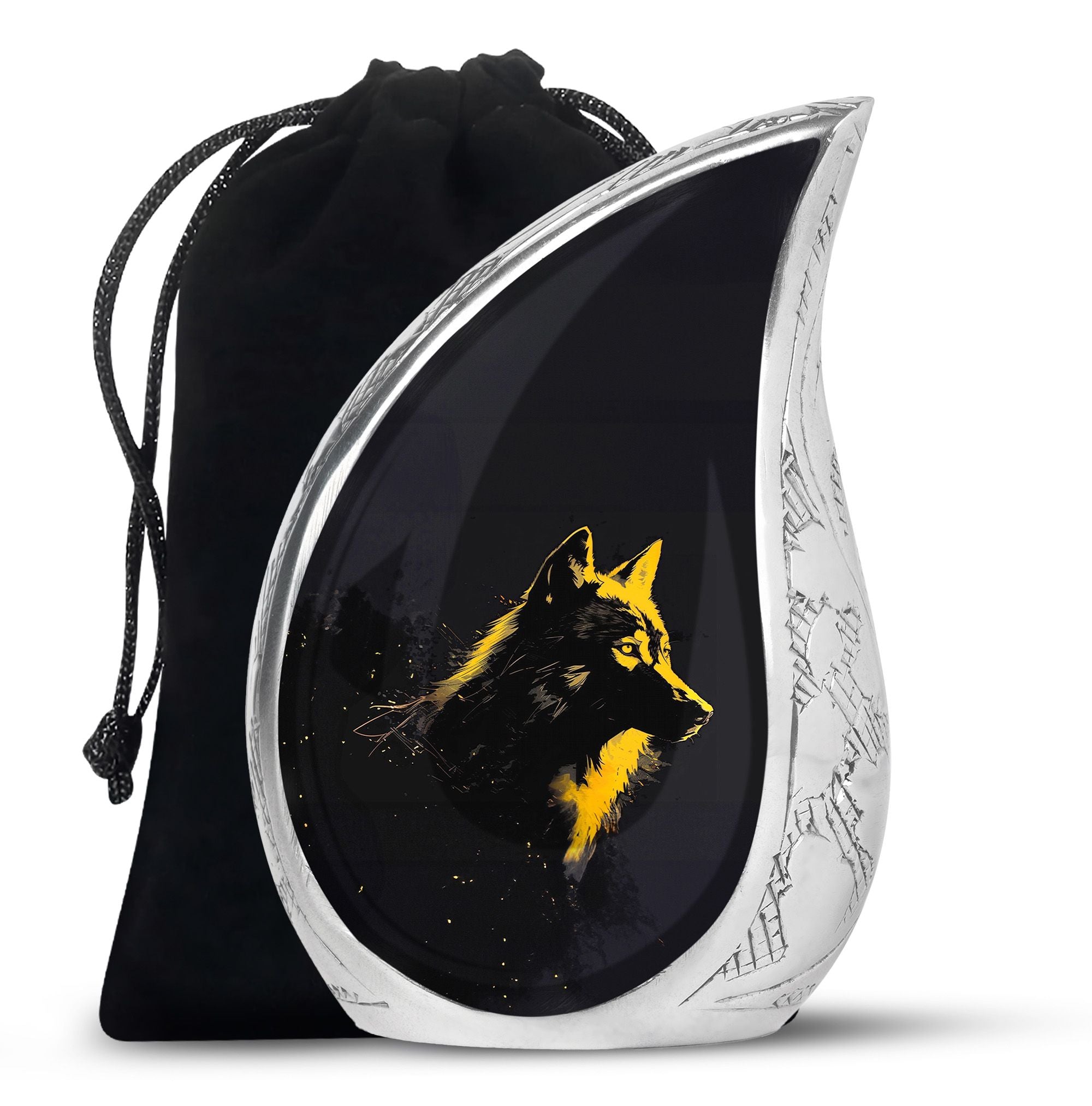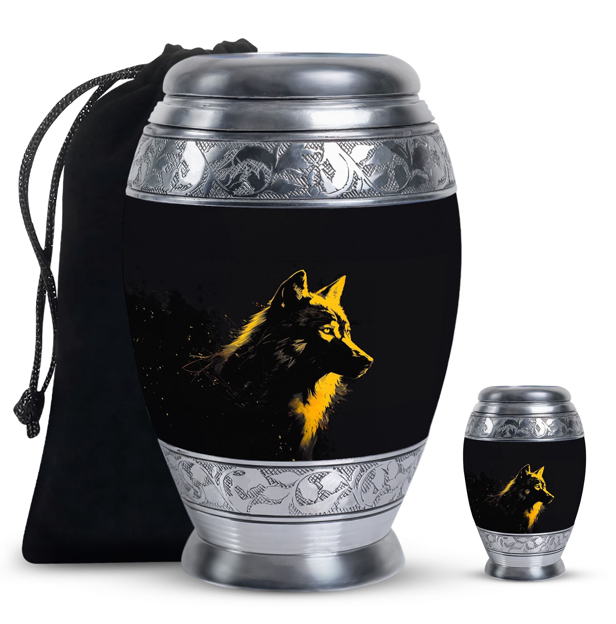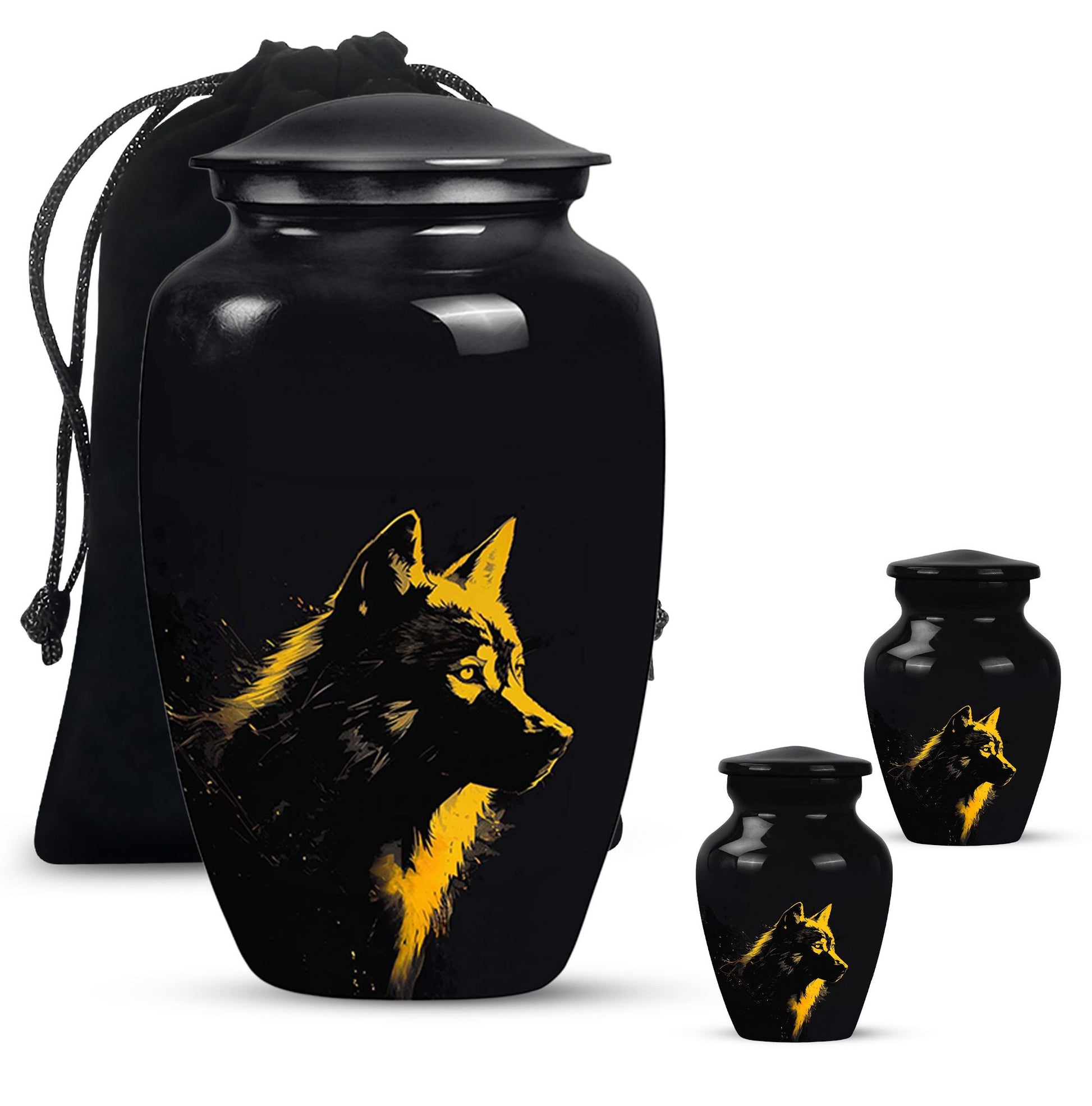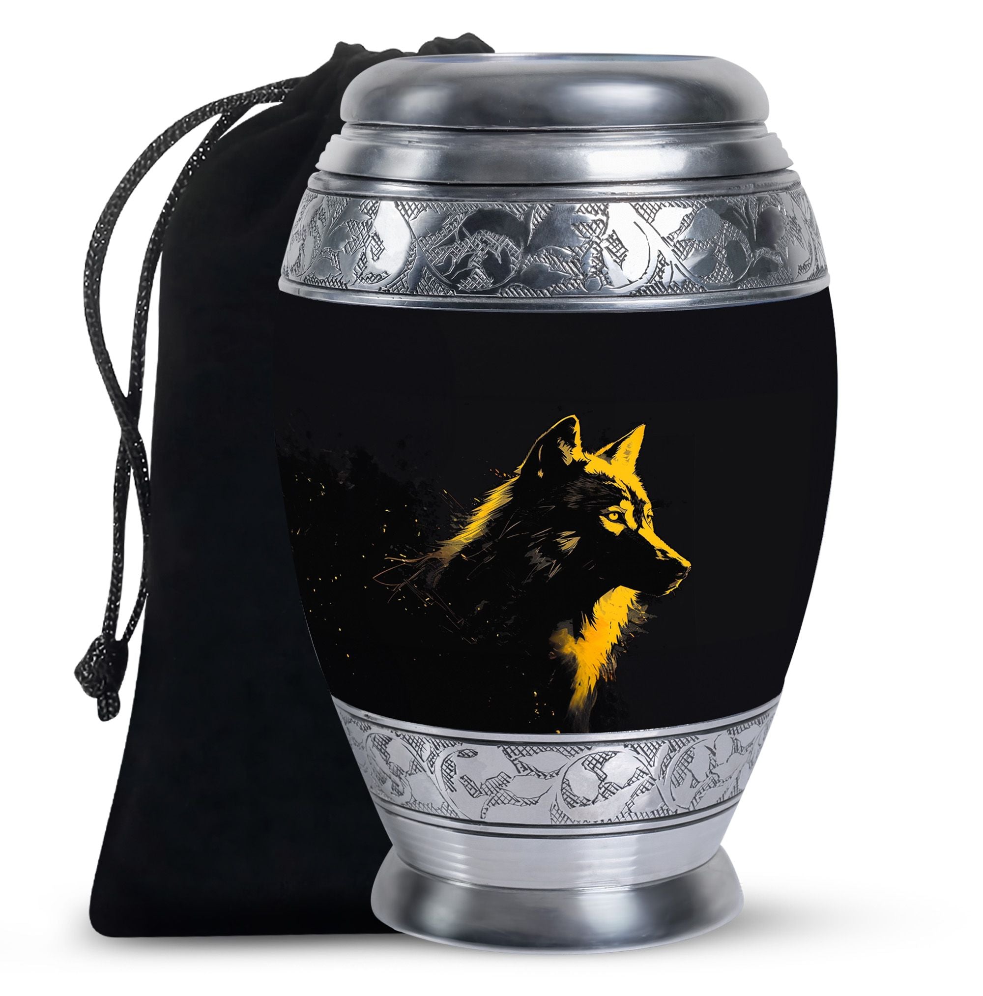 The Black and Gold Wolf Urn for Human Ashes captures the essence of strength, loyalty, and eternal love. This dignified memorial piece is designed to celebrate the powerful bond shared with a loved one—making it a perfect choice for families seeking a large cremation urn that reflects courage and grace. Whether remembering a devoted father or a nurturing large urn mom, this design embodies both protection and peace.