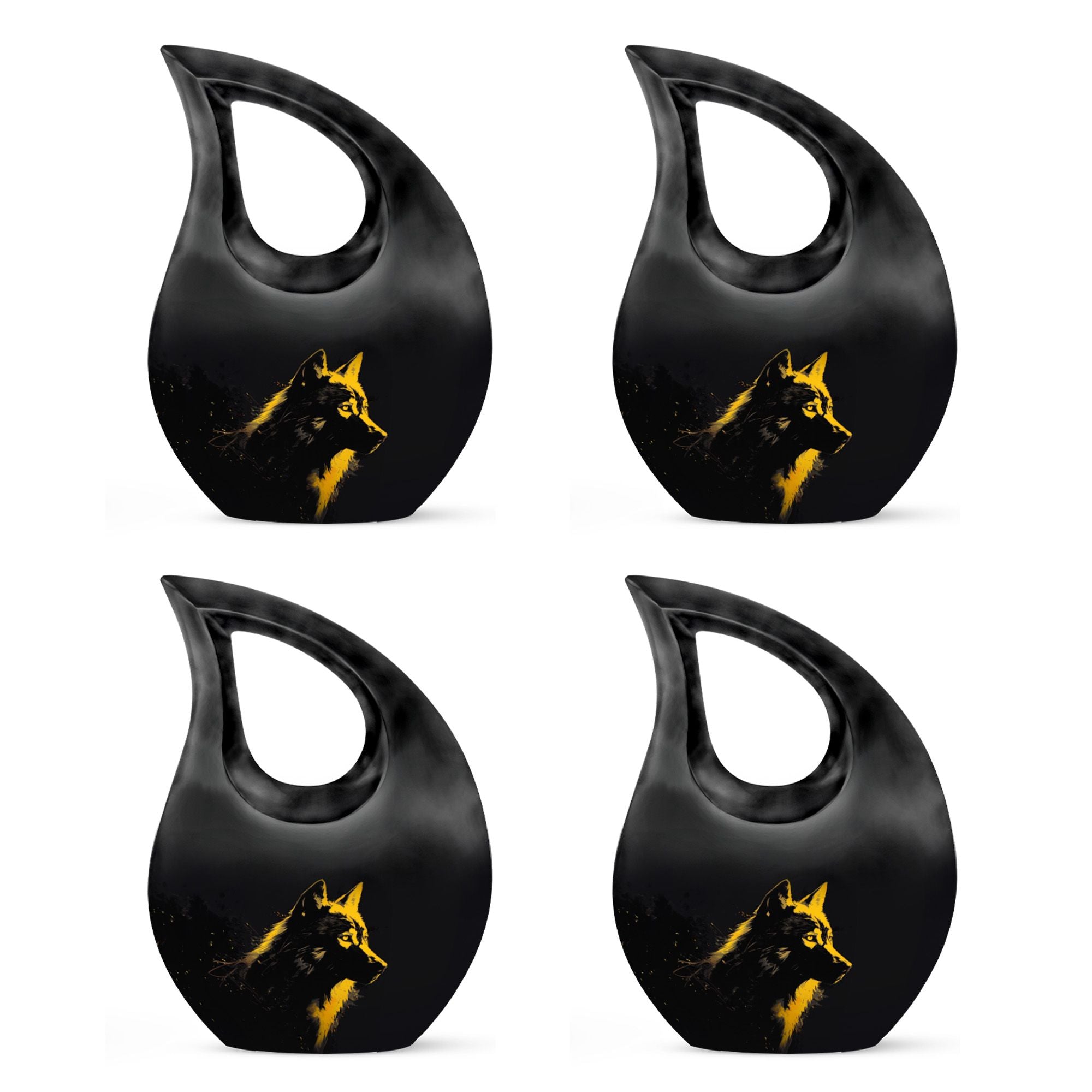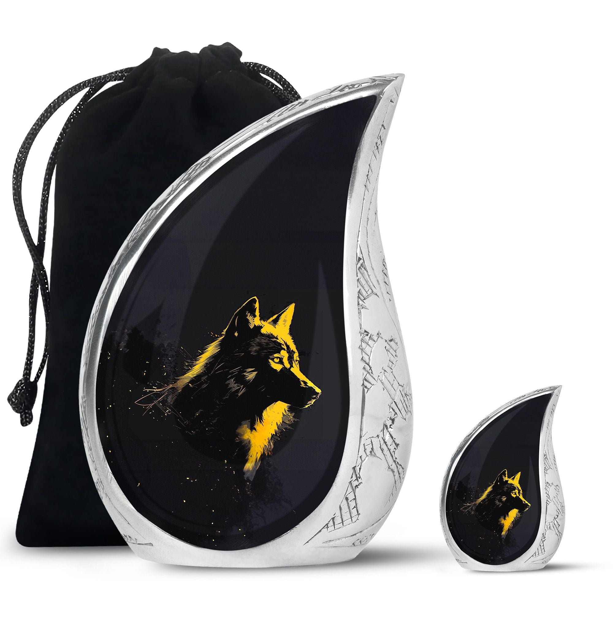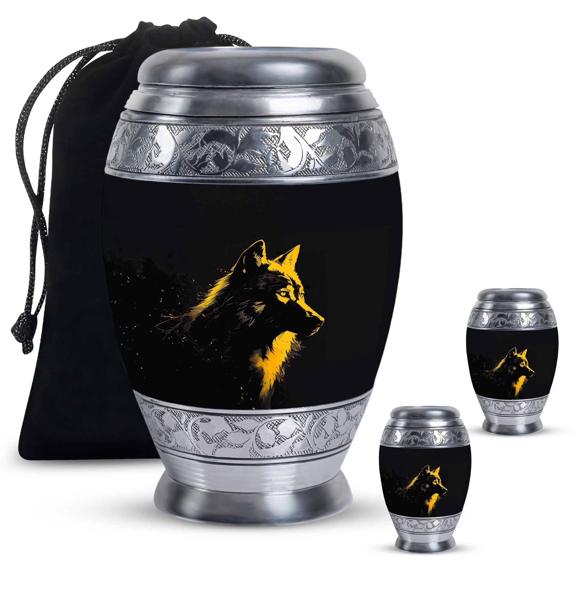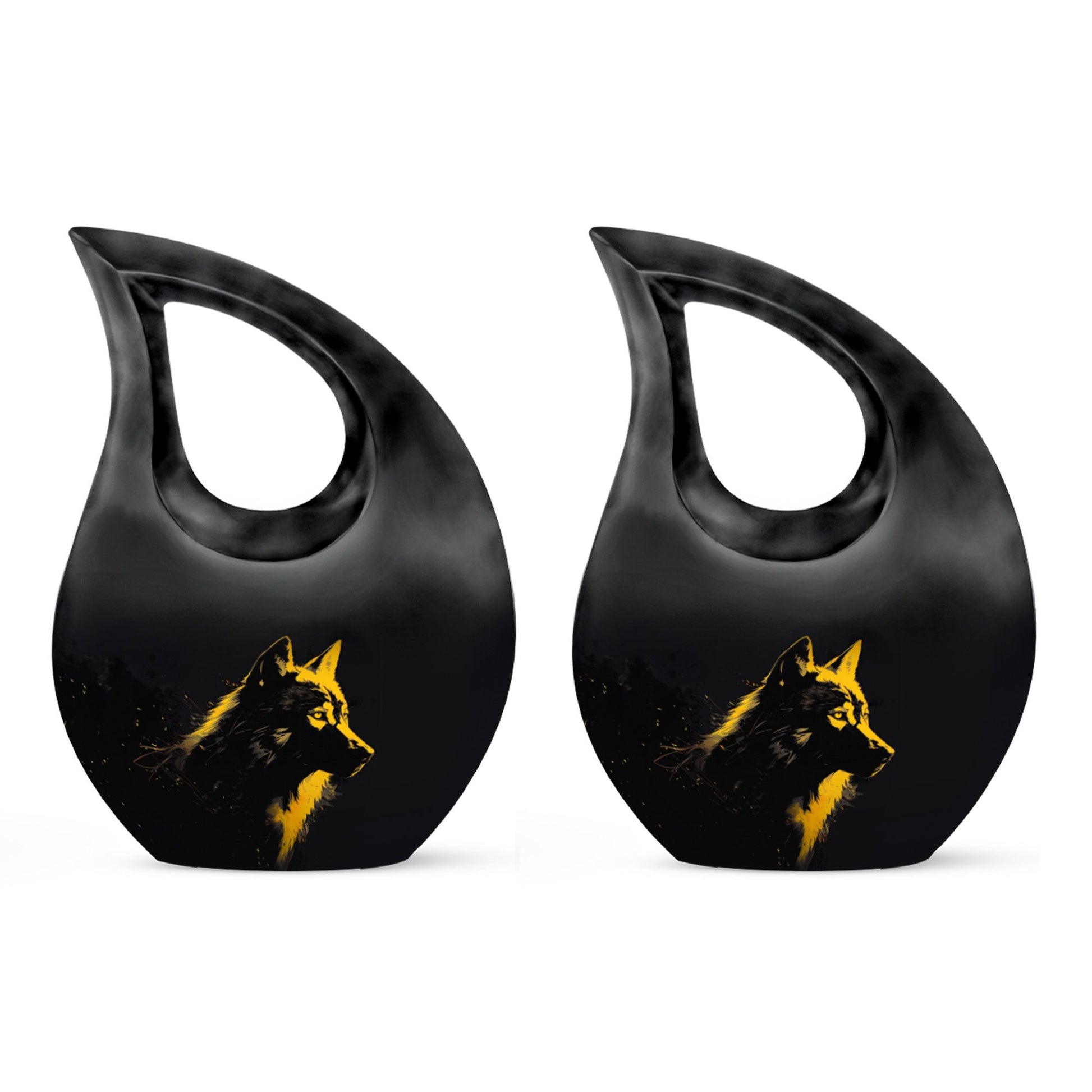 The Black and Gold Wolf Urn for Human Ashes captures the essence of strength, loyalty, and eternal love. This dignified memorial piece is designed to celebrate the powerful bond shared with a loved one—making it a perfect choice for families seeking a large cremation urn that reflects courage and grace. Whether remembering a devoted father or a nurturing large urn mom, this design embodies both protection and peace.