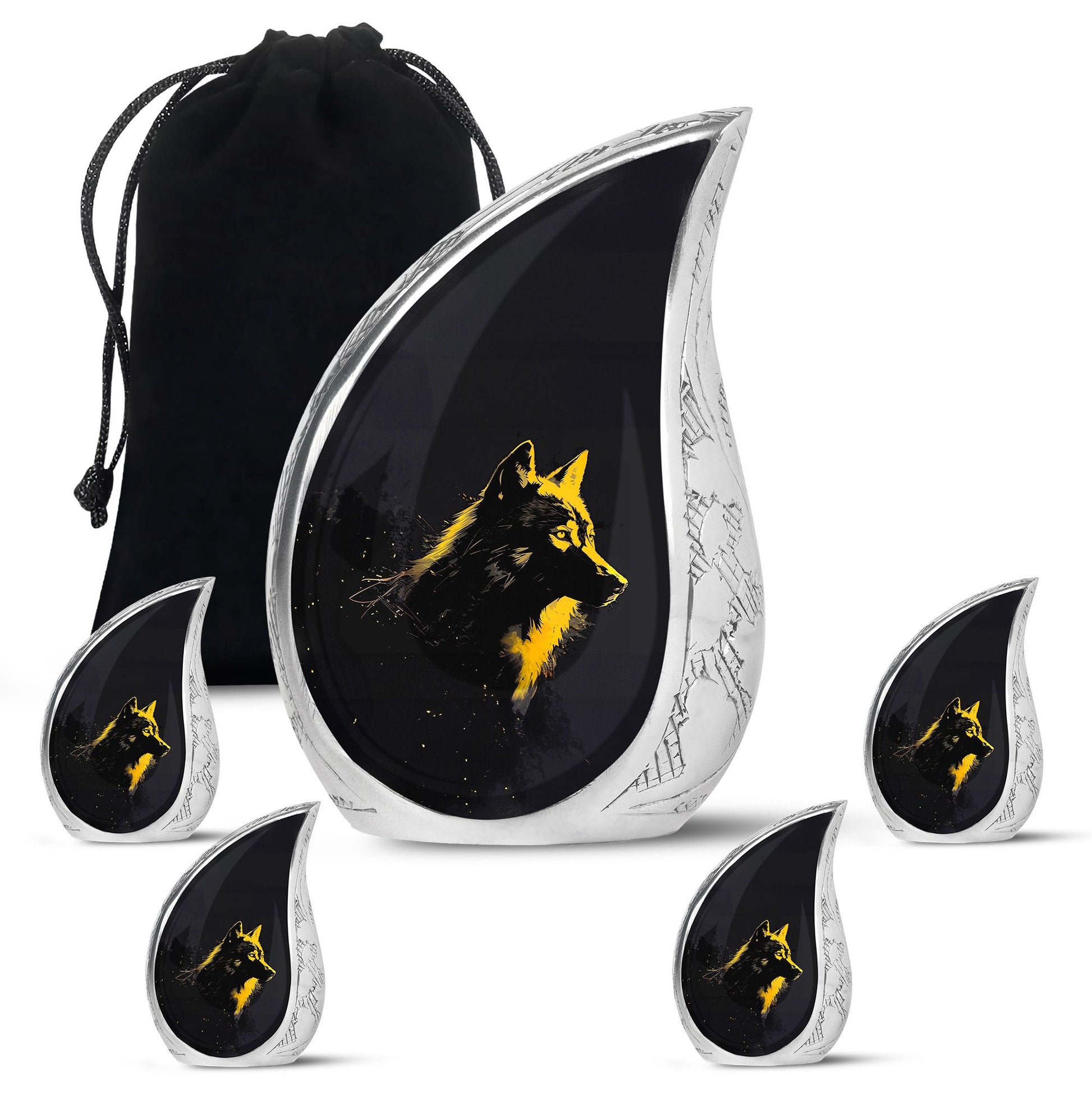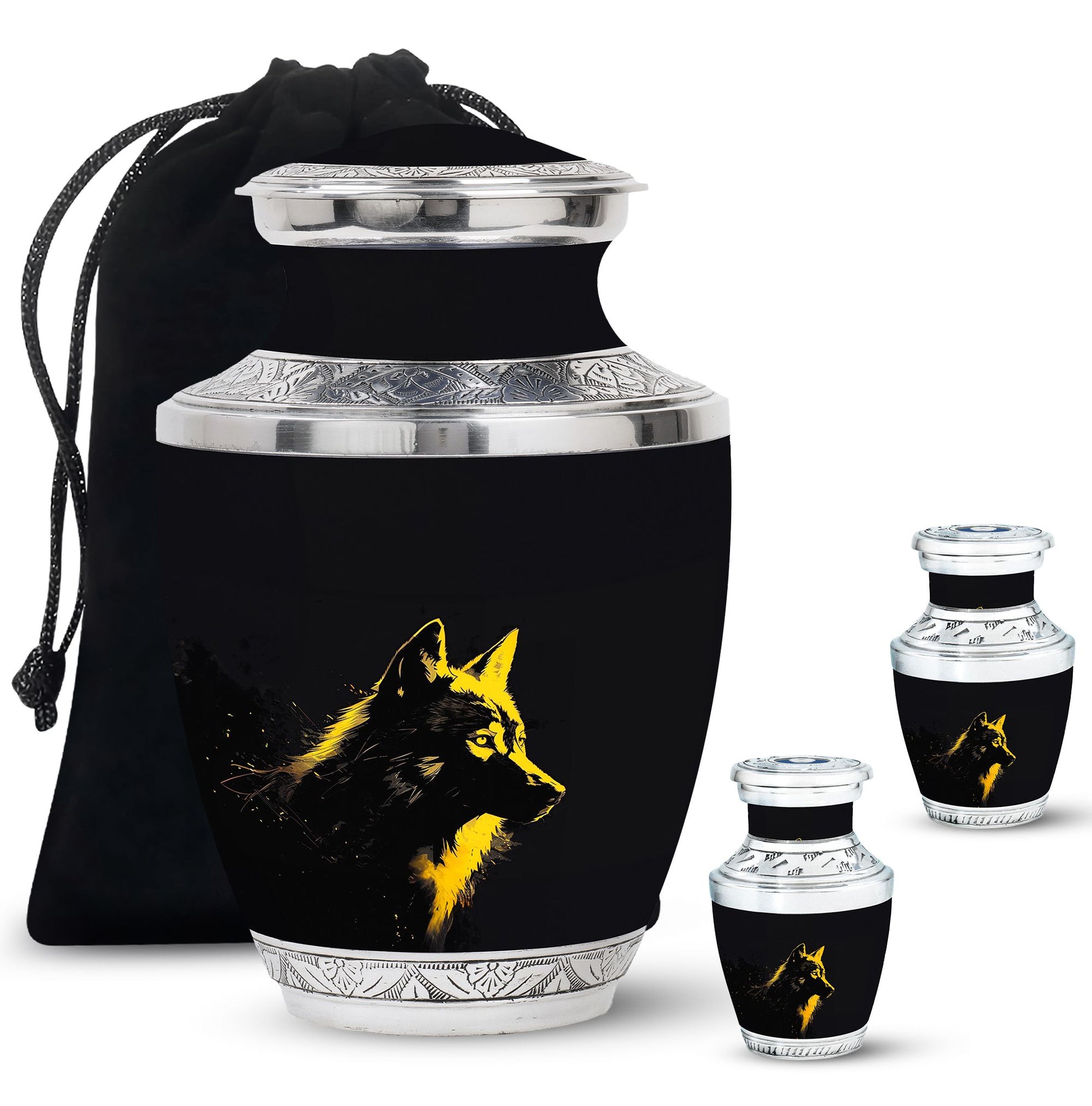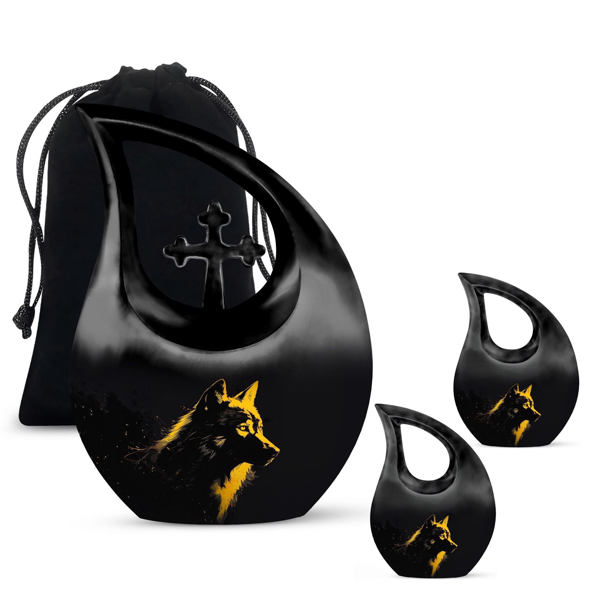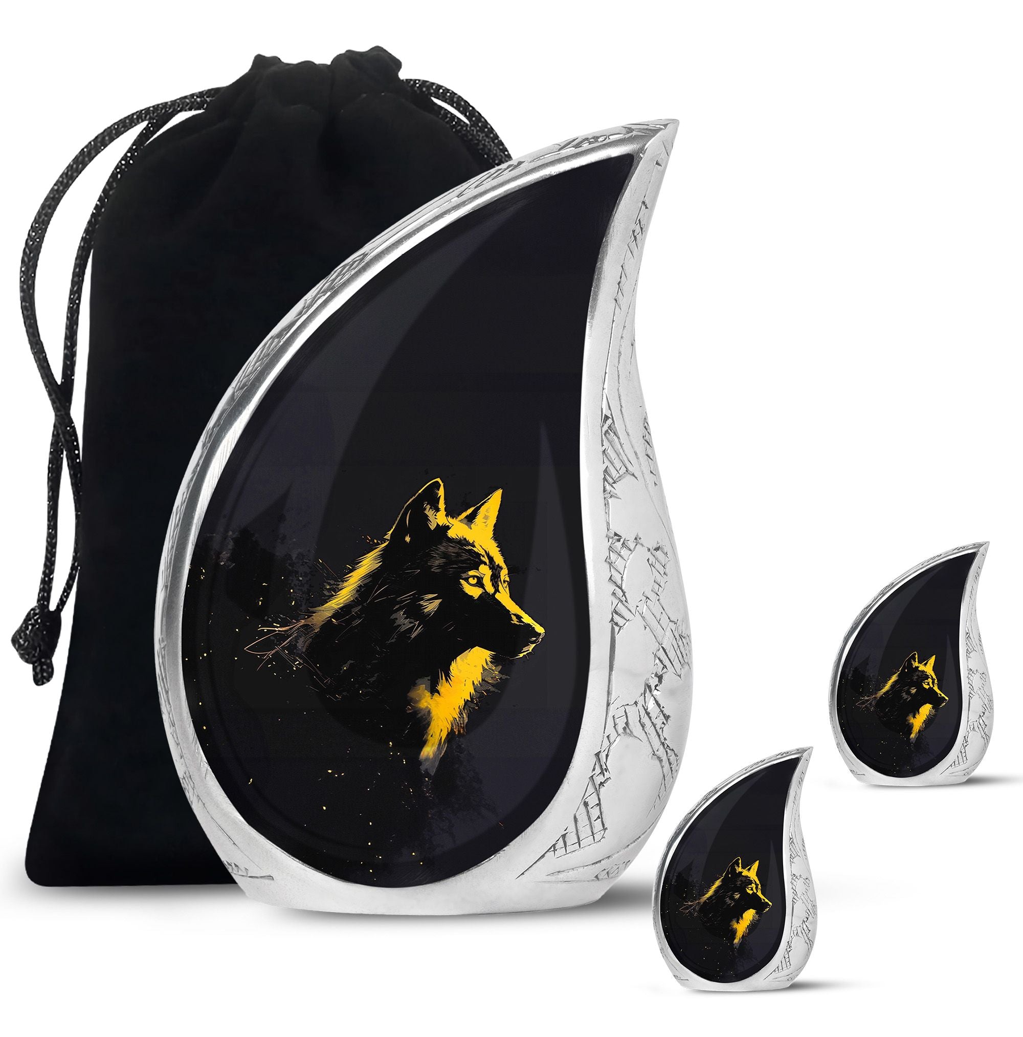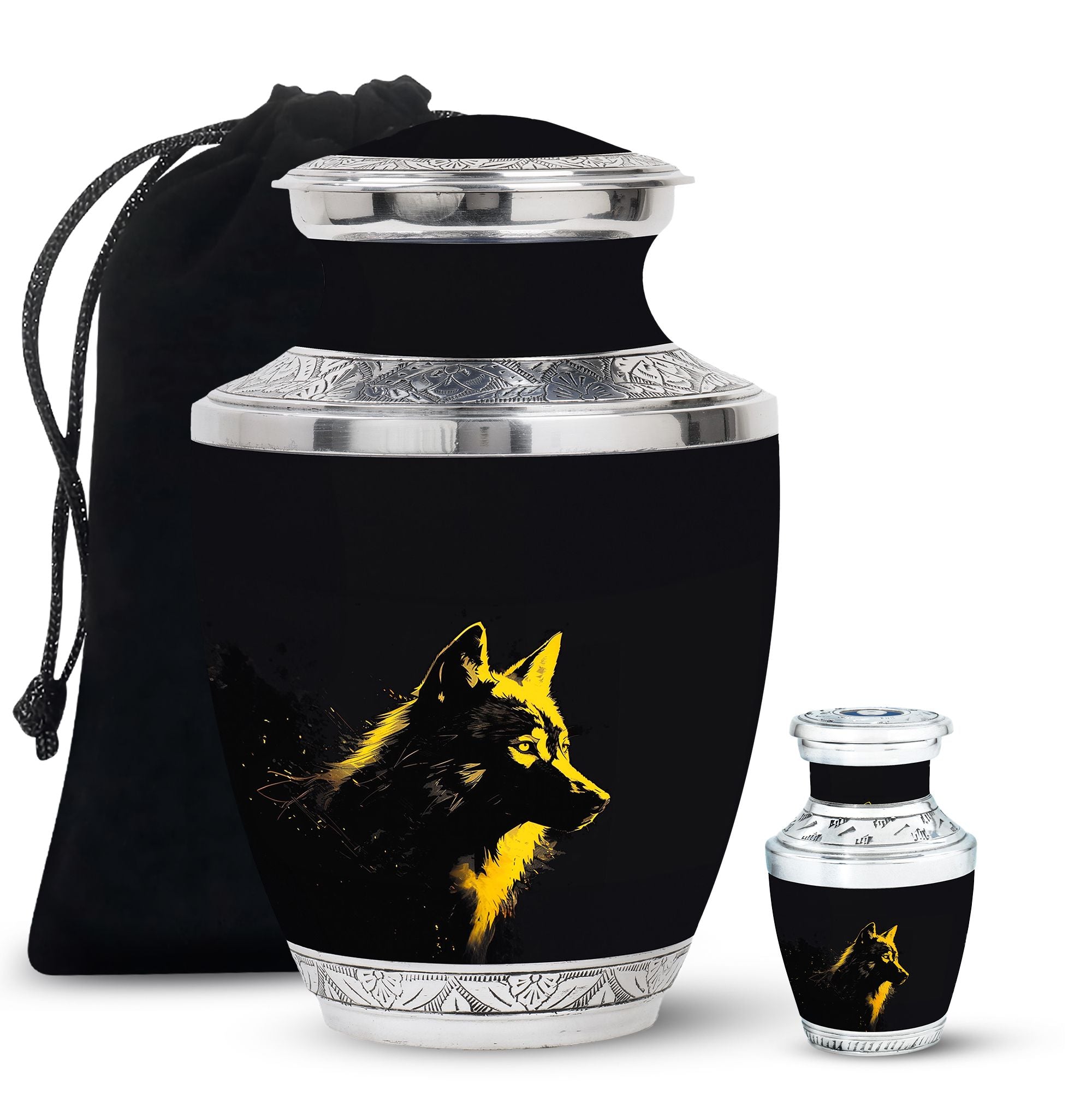 The Black and Gold Wolf Urn for Human Ashes captures the essence of strength, loyalty, and eternal love. This dignified memorial piece is designed to celebrate the powerful bond shared with a loved one—making it a perfect choice for families seeking a large cremation urn that reflects courage and grace. Whether remembering a devoted father or a nurturing large urn mom, this design embodies both protection and peace.