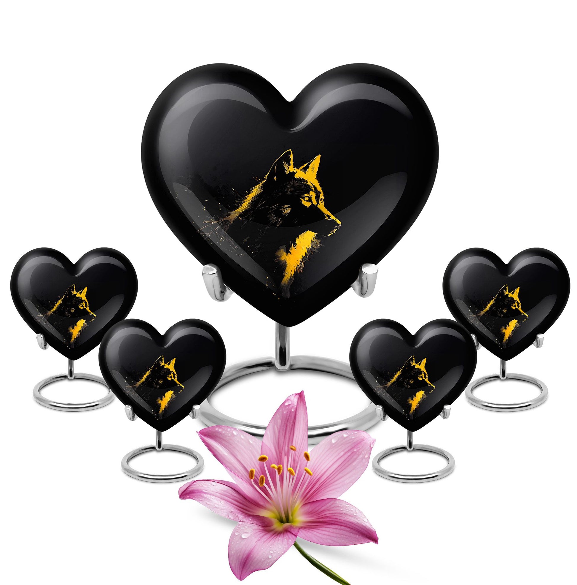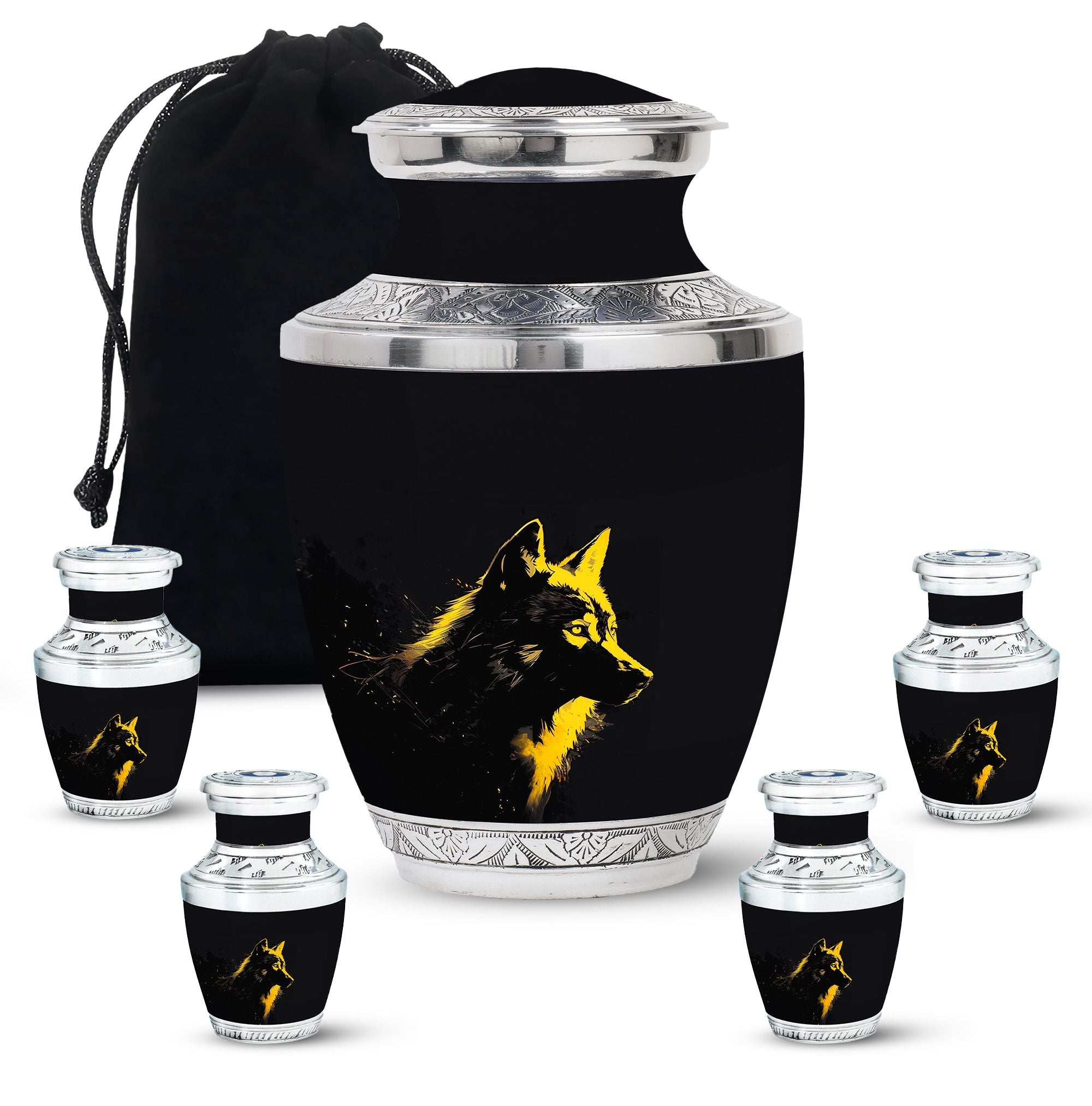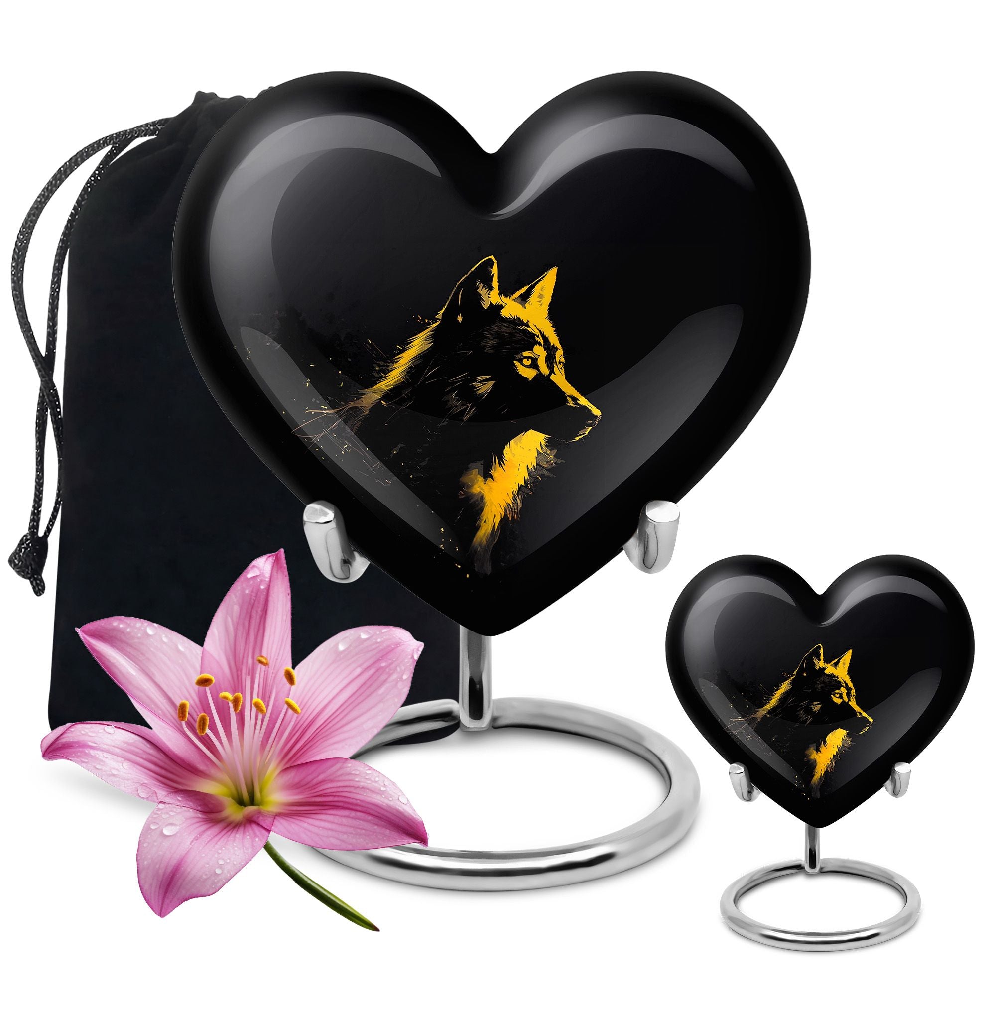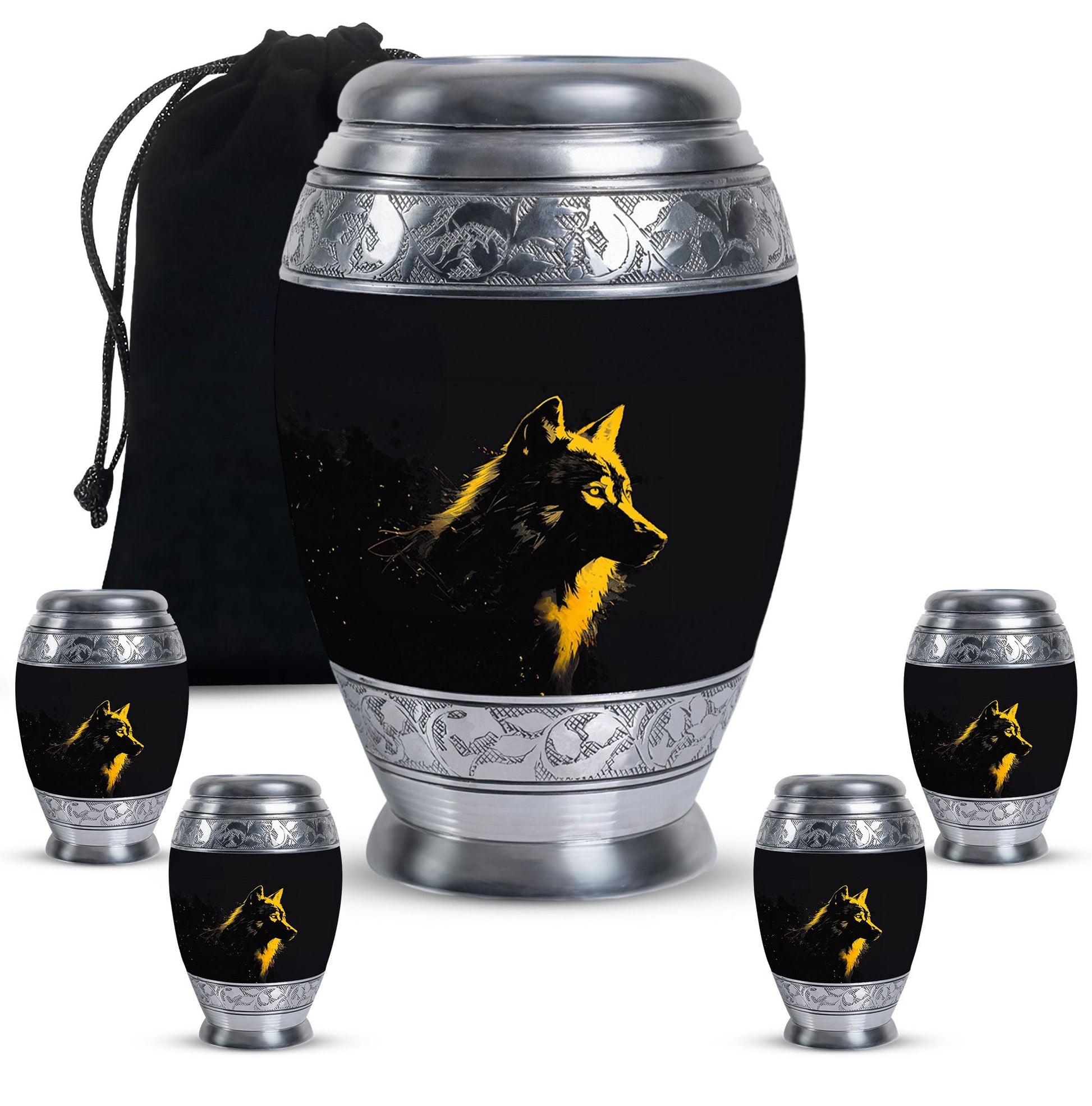 The Black and Gold Wolf Urn for Human Ashes captures the essence of strength, loyalty, and eternal love. This dignified memorial piece is designed to celebrate the powerful bond shared with a loved one—making it a perfect choice for families seeking a large cremation urn that reflects courage and grace. Whether remembering a devoted father or a nurturing large urn mom, this design embodies both protection and peace.