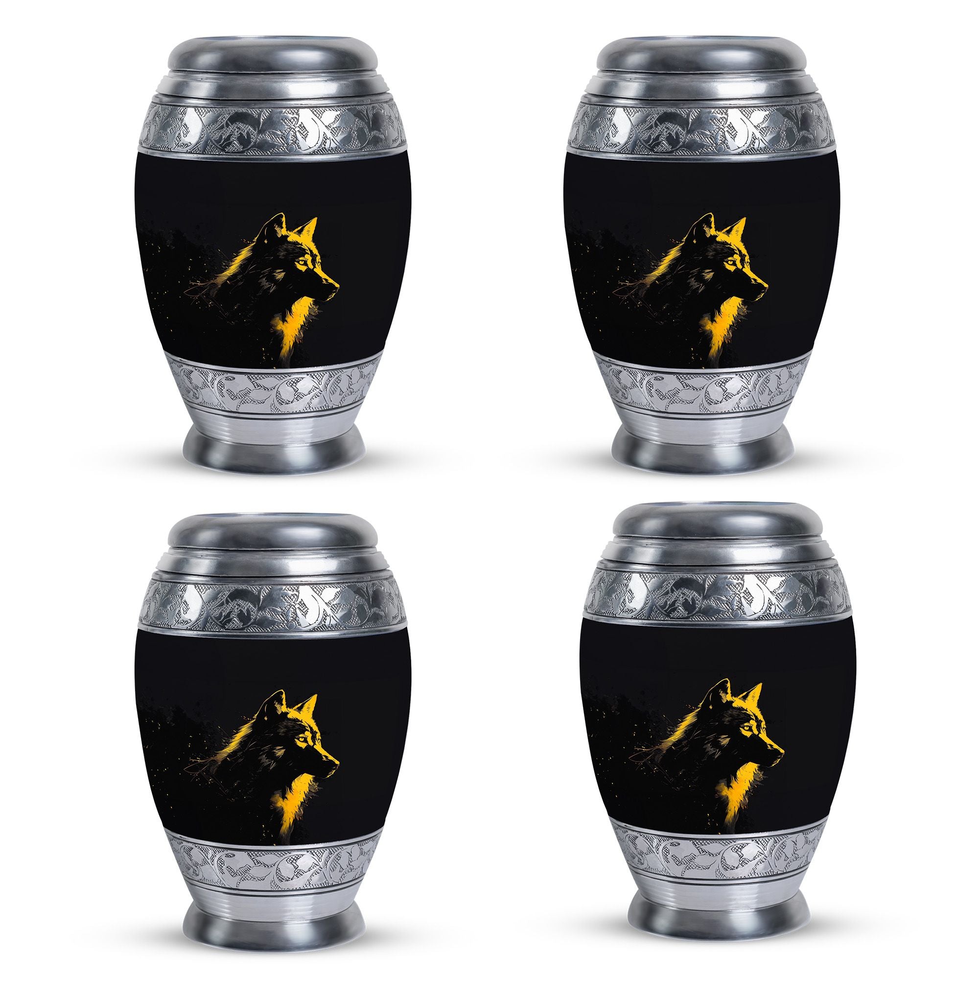 Expertly handcrafted, this large urn for adult ashes is made from premium aluminum with a striking black and gold finish. The detailed wolf engraving symbolizes leadership, resilience, and family unity—qualities that echo the spirit of those we hold dear. Built for long-lasting strength, this human urns for ashes adult large design provides both durability and timeless elegance, ideal for display or burial.