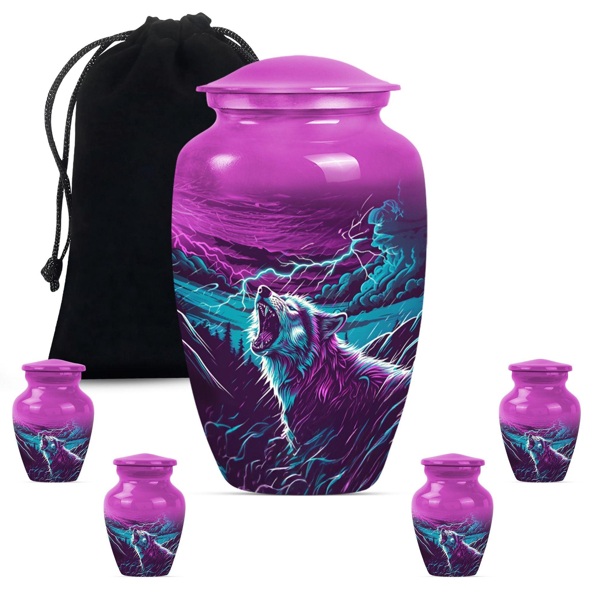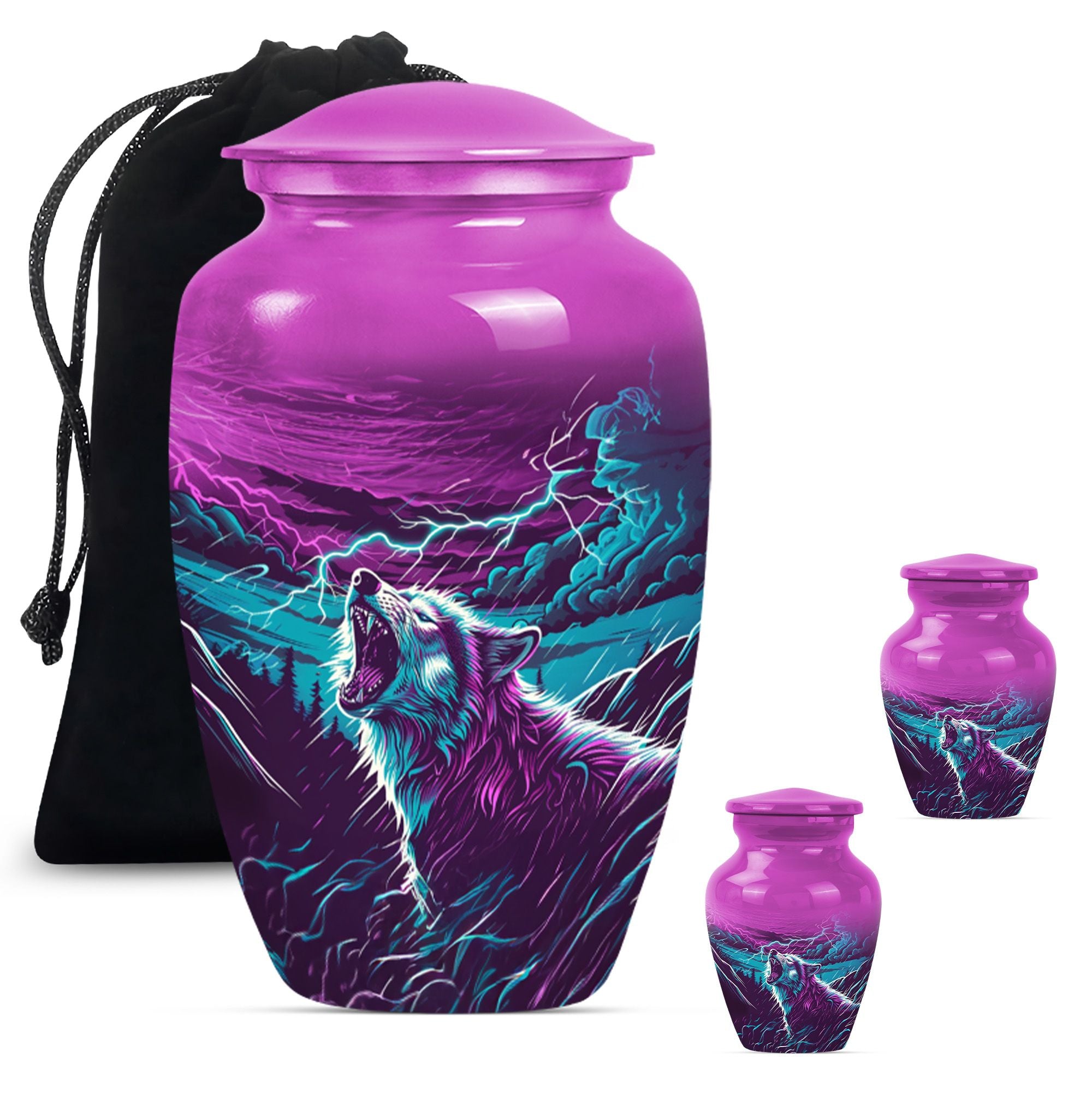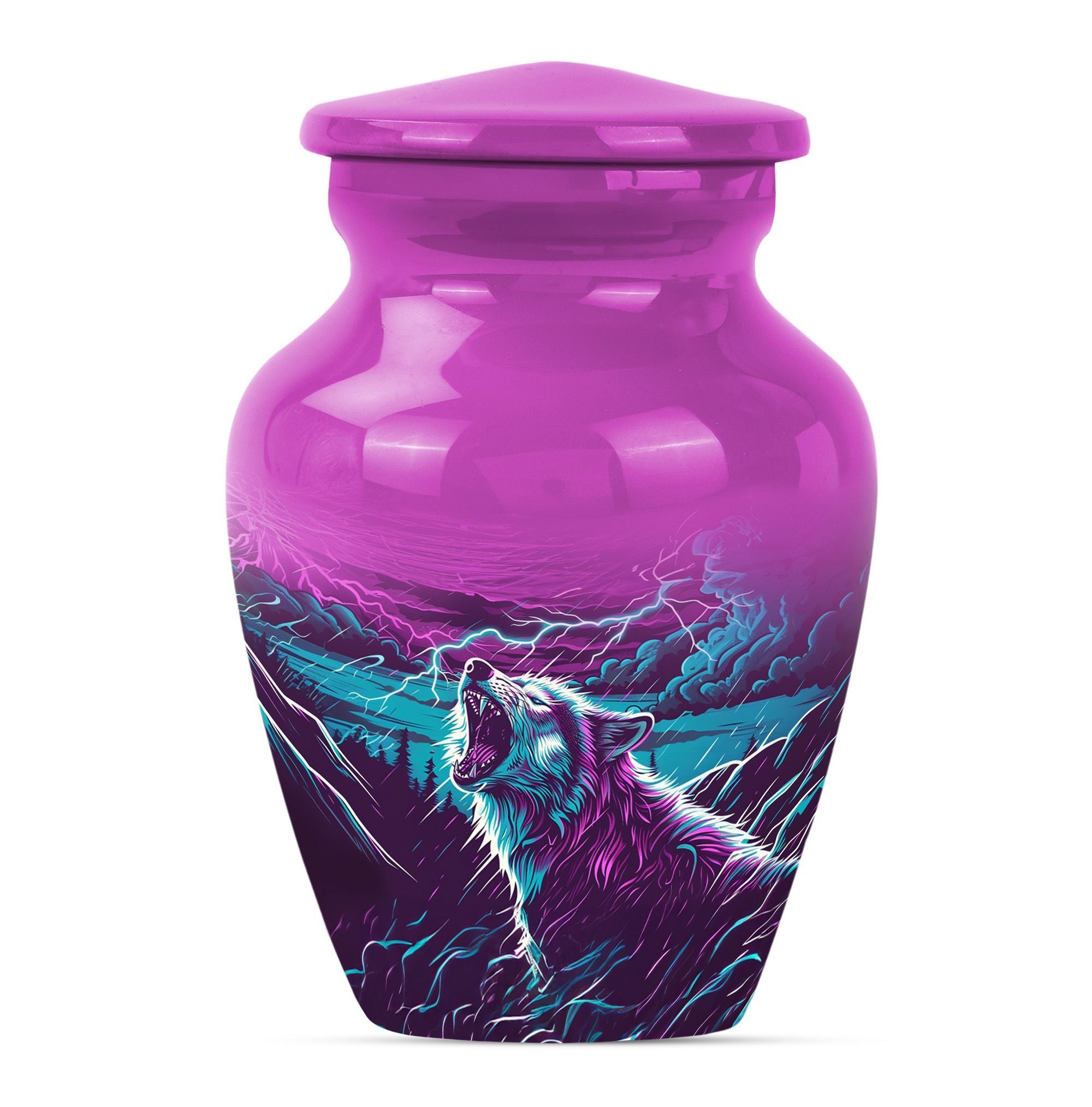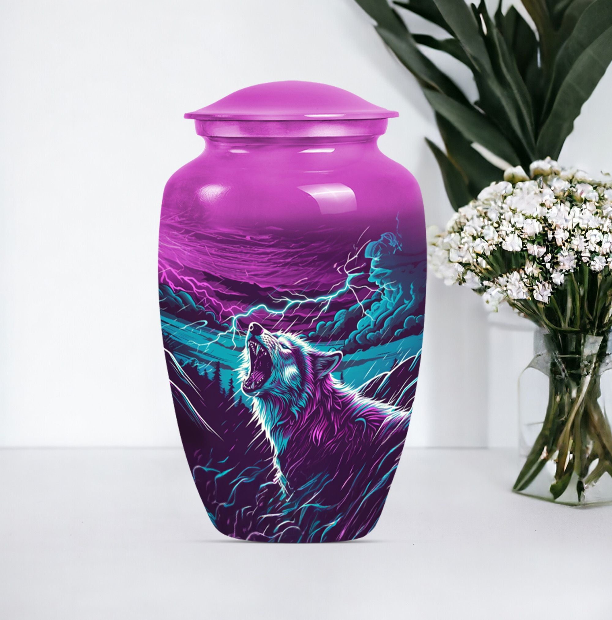 With reverence, honor the life and memory of your loved one with our exceptional 'Wolf Urn.' This large 10-inch burial urn for cremation ashes, exuding the nobleness of aluminium, is a poignant tribute. With a capacity of 200 cubic inches, it stands as a tangible symbol of remembrance that commands respect. It weighs 3.3 pounds and its dimensions trumpet its towering strength. The urn comes with a plush velvet pouch for secure containment of your beloved's ashes, offering an elegant touch to the occasion. Further, personalize this classic urn with engraved names to add a unique sentiment. This abstract-themed urn characterizes a blend of art and emotion. Ingenious for urban homes, it serves as a decor urn for both men and women, fulfilling your need for a compact man or woman metal cremation urn. Highly searched primary and secondary keywords like 'Wolf Urn', 'Burial urns for cremation ashes mother', 'Cremation urn for adult male ashes' are strategically integrated to ensure easy and quick searchability for this poignant possession.