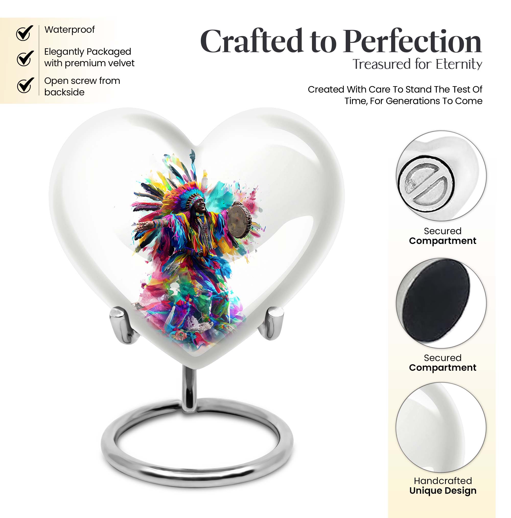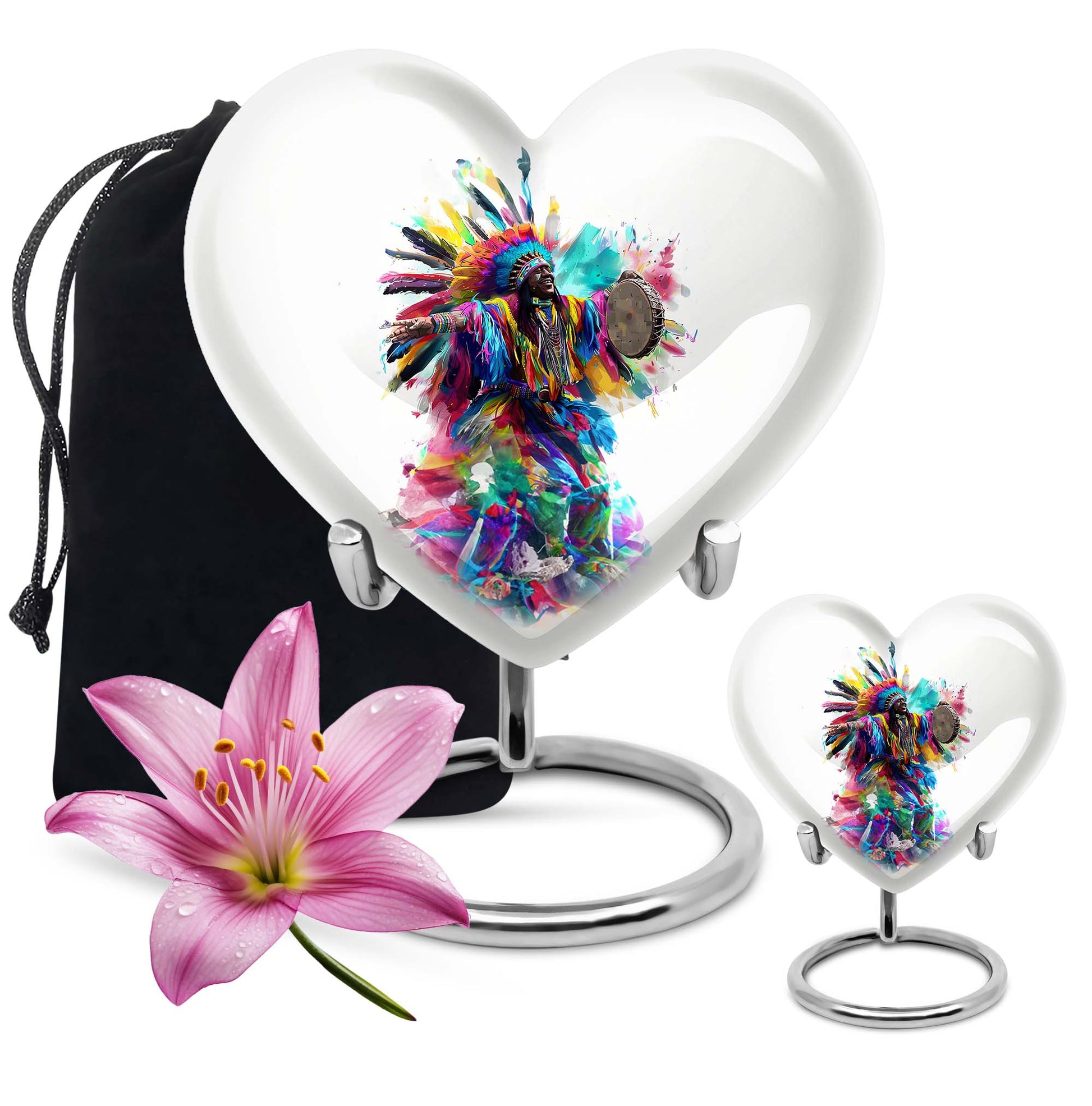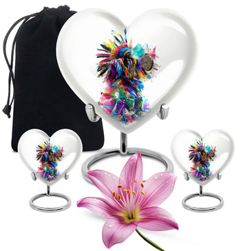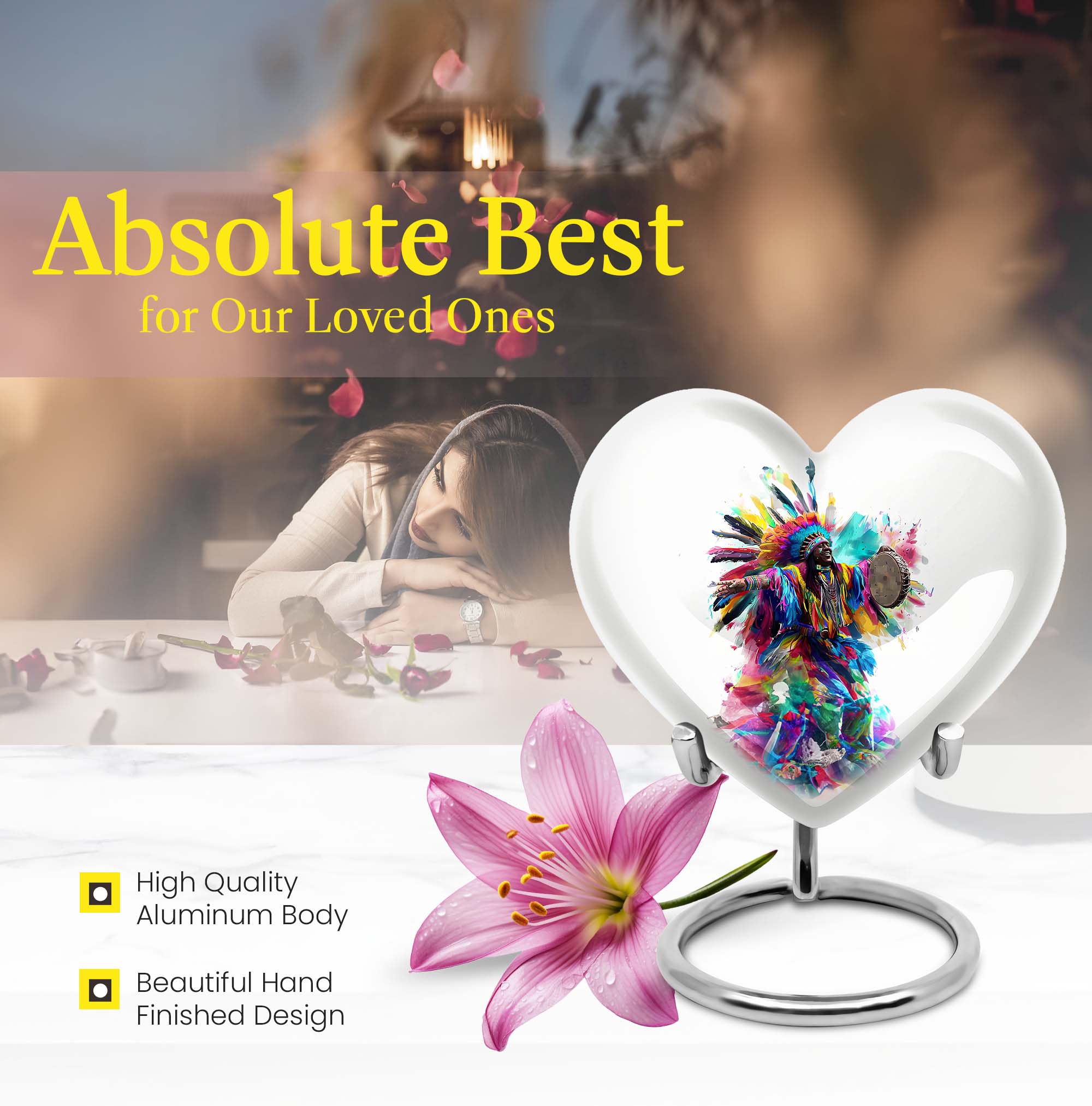Walking the journey of grief requires honouring your loved ones in the right way. Our Tribe Man Urn, standing at 10 inches in height and boasting an impressive capacity of 200 cubic inches, is the perfect tribute for male adults. Crafted from sturdy aluminium, this memorial urn weighs 3.3 pounds, and it is finished with a powerful 'Wolf Howling' theme that offers strength during such challenging times. The heart urn comes complete with a soft velvet pouch for secure containment of ashes, ensuring your cherished relations are accorded the honor they deserve. Topped off with the ability for personalization, you can engrave names to create an everlasting pillar of memory. Whether you're in search of female urns, companion urns for two adults, or large metal urns for ashes, our highly compact and efficient Tribe Man Urn caters for all your memorial needs with immense attention to detail.