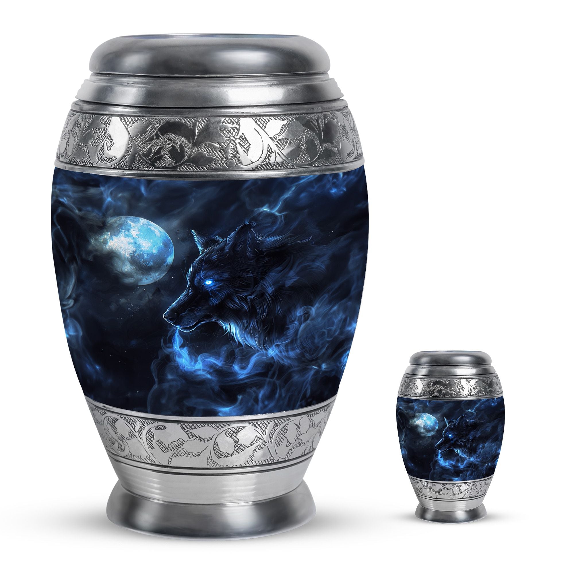 Men may be honored with its design as cremation urns for ashes for men, crafted with detailed artistry that speaks of loyalty, guidance, and courage. The wolf howling urn theme enhances its spiritual resonance, offering a unique and meaningful alternative to traditional urns.