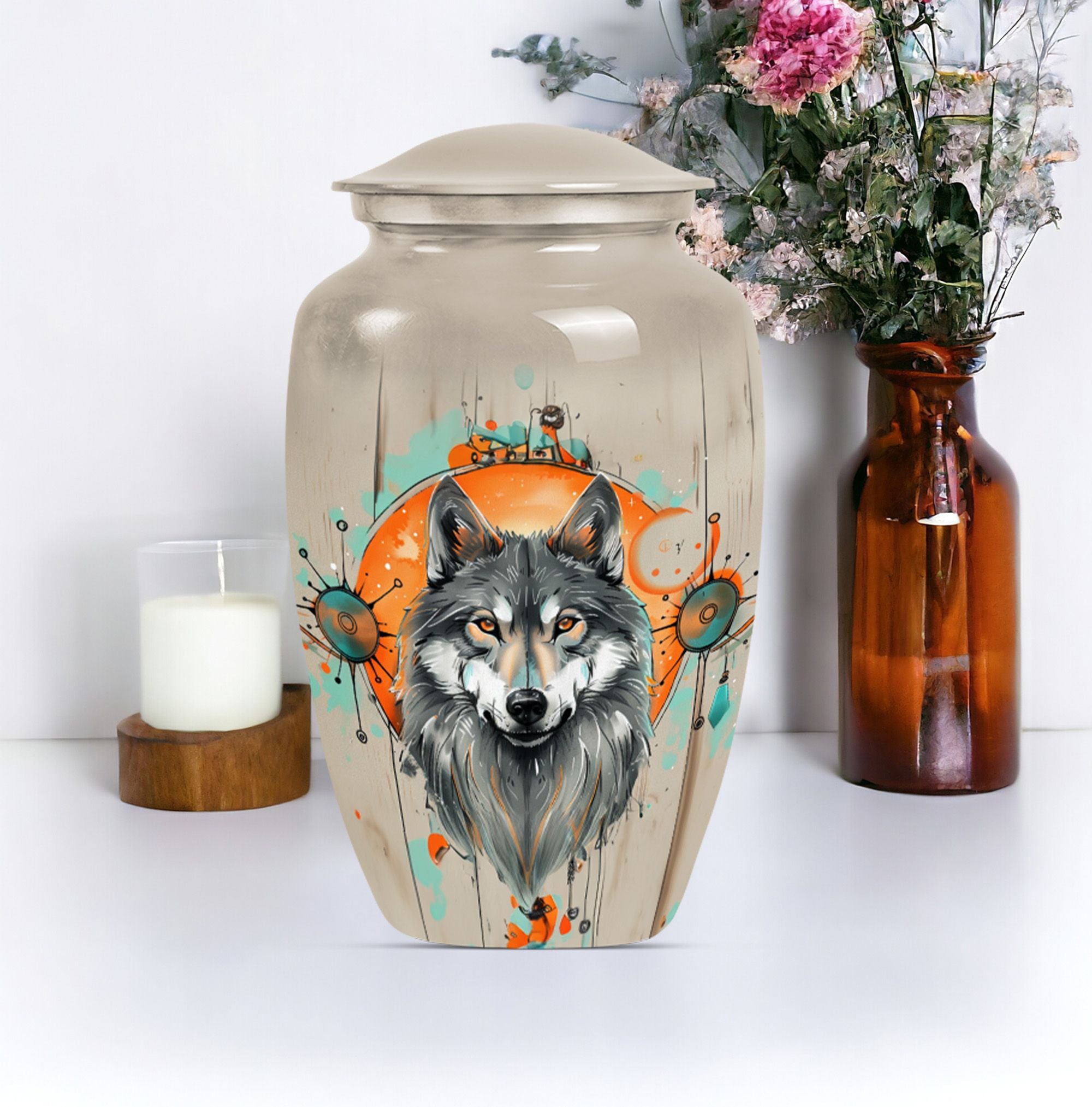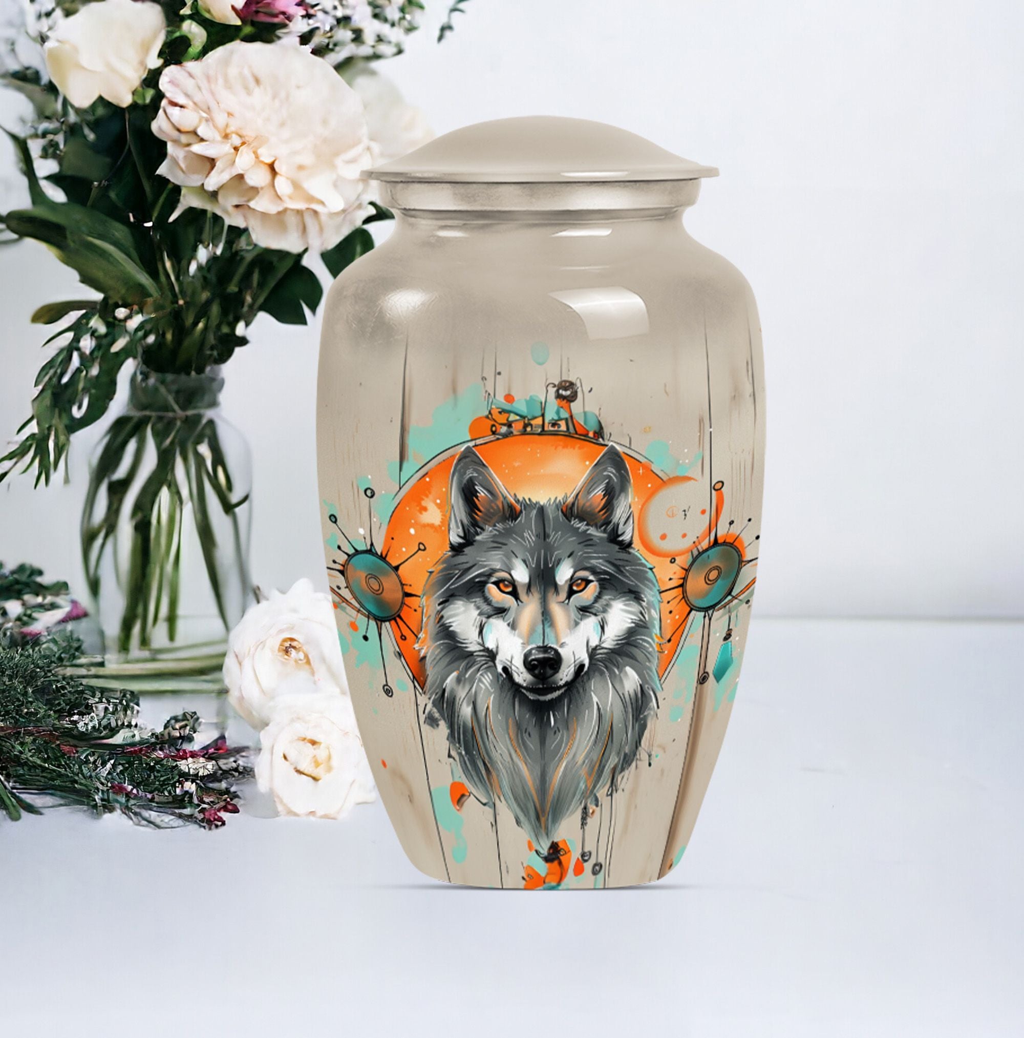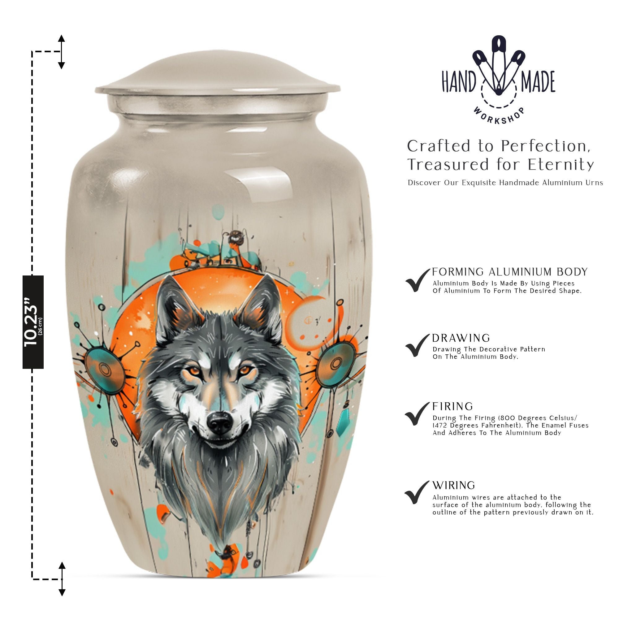 Embrace the memory of your beloved one with this stunning 10-inch wolf urn, delicately constructed from high-quality aluminium. This elegant option among burial cremation urns boasts an abstract theme that combines tradition with a unique style. Weighing a mere 3.3 pounds, this cremation urn is not just a evidence of good craftsmanship but also boasts practicality with enough capacity to hold up to 200 cubic inches of ashes. What's more, this Large Urn type offers the personalized touch of engraved names, enhancing its sentimental value. It comes with a velvet pouch for the dignified containment of the remains. Not just functional, this adult female elegant urn is a nod to the beauty and dignity of life, and the memories it leaves behind. Search terms as wolf urn, adult female elegant urn, and funeral urns for human ashes adult will guide you to this masterpiece. Please note that this product doesn't contain any porcelain or metal s amongst its material composition.