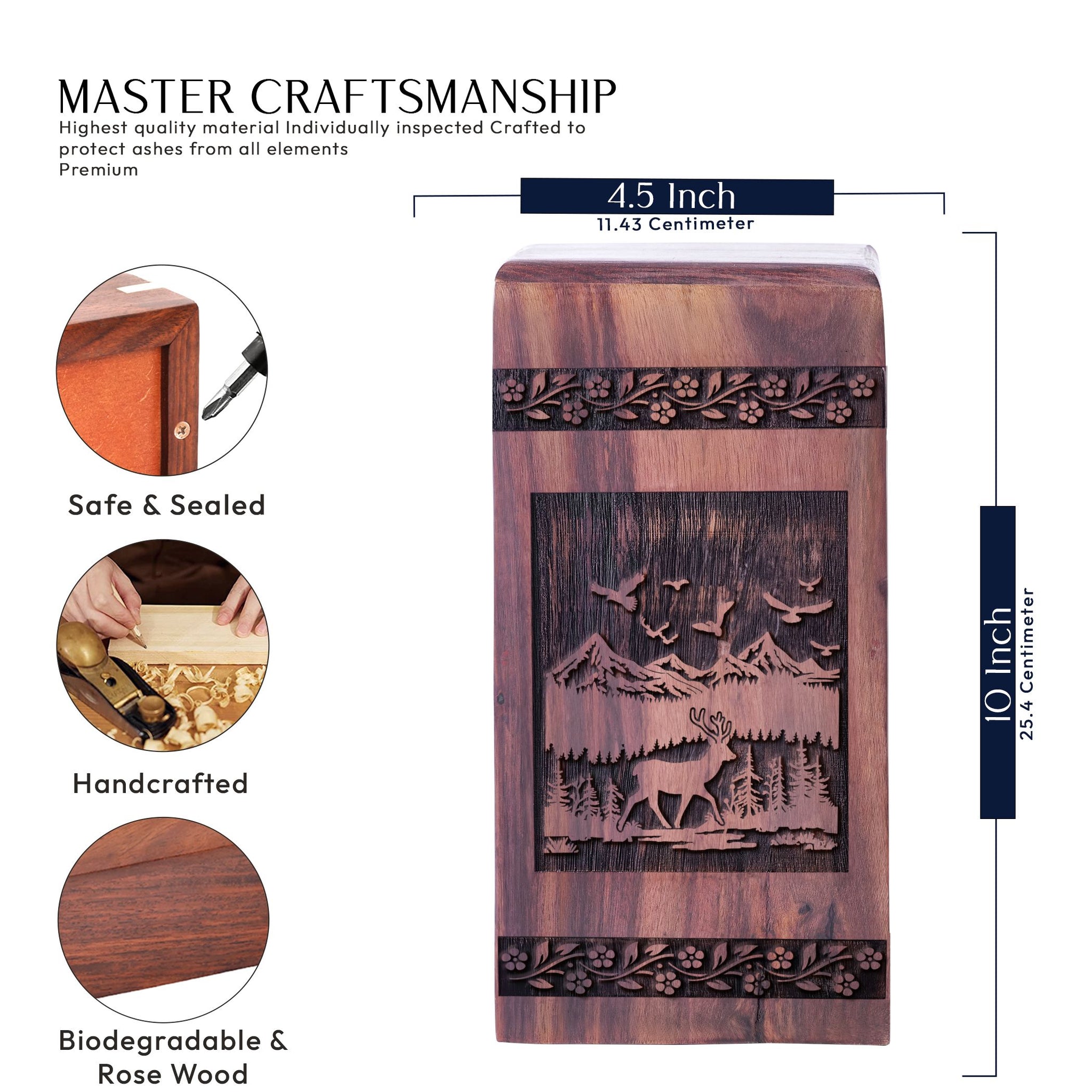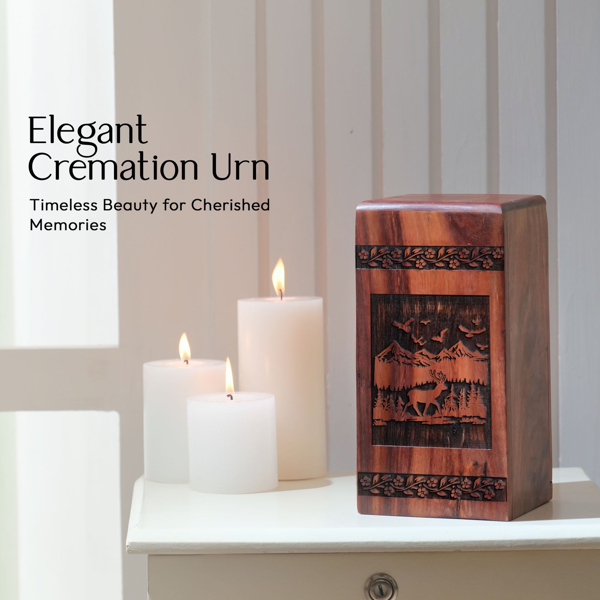 Deer Wooden Large Urns For Human Ashes - Adult Ash Holder