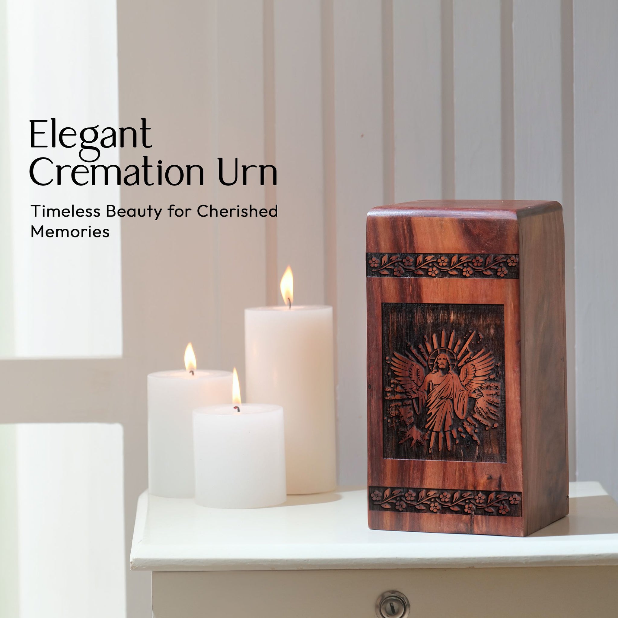 Discover the harmony between reverence and artistry with our meticulously crafted Jesus Urns. These exclusive cremation wooden urns serve as an elegant, yet sobering homage to your loved ones. Each urn features exceptional attention to detail and offers a dignified final resting place. Both alluring and durable, they are particularly suitable for men seeking timeless elegance paired with deep symbolic resonance. Use them as immortal reminders of profound love, retaining the ashes of adult men in a cherished manner. The serenity of these urns ensures an unmatched intimate connection, making them an ideal choice in the realm of memorial ceremony supplies. Recall the peaceful aura and honor your loved ones with these unique creations, ensuring that their spirit rests in peace. With our Jesus Urns, you can secure the sanctity of precious memories forever.