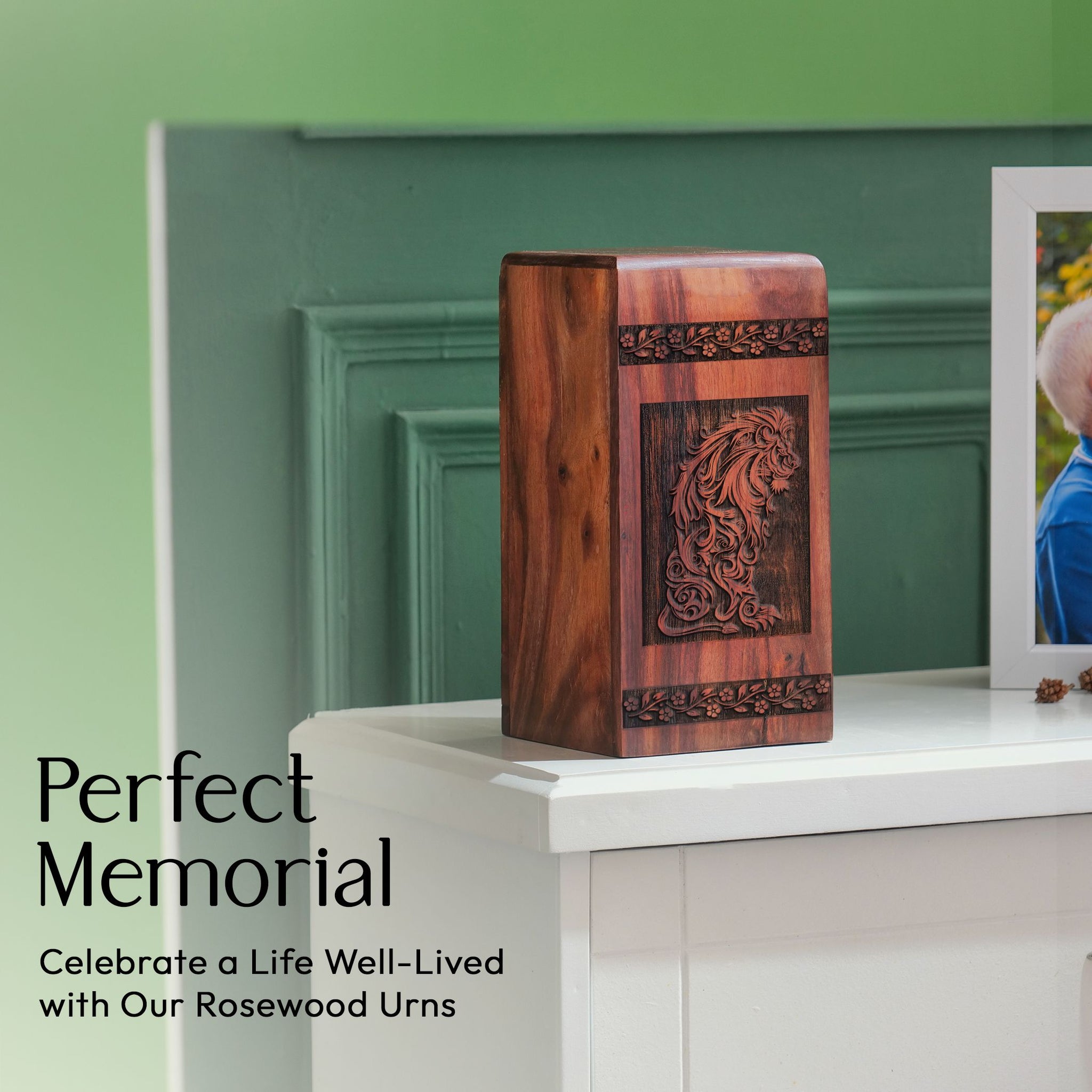 Lion Design Adult Urn - Wooden Urn for Adult Male Ashes