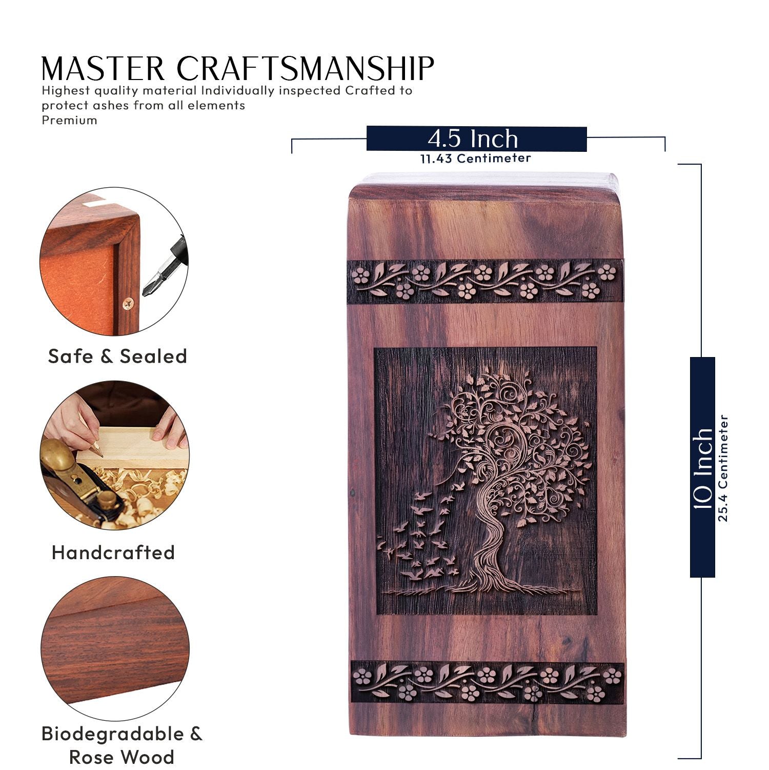 Elevate your memorial ceremonies to another level with our beautifully crafted Bird Urn, an epitome of grace and elegance. Meticulously fashioned from high-quality wood, these urns for human ashes are designed to stand the test of time and serve as a poignant reminder of your beloved. Our cremation urns for burial are uniquely styled, elaborately showcasing a bird motif, which symbolizes freedom, transcendence, and the journey of the soul. These decorative urns, ideal for adult female 'mom', are not just vessels, but a token of love, respect, and cherished memories. Simplify your search for religiosity, solemnity, and tradition by choosing our wooden urns for human ashes. Remember your loved ones with our stunning Bird Urn, encapsulating the spirit of love everlasting. In your hours of remembrance, our urns are your beacon of solace and peace.