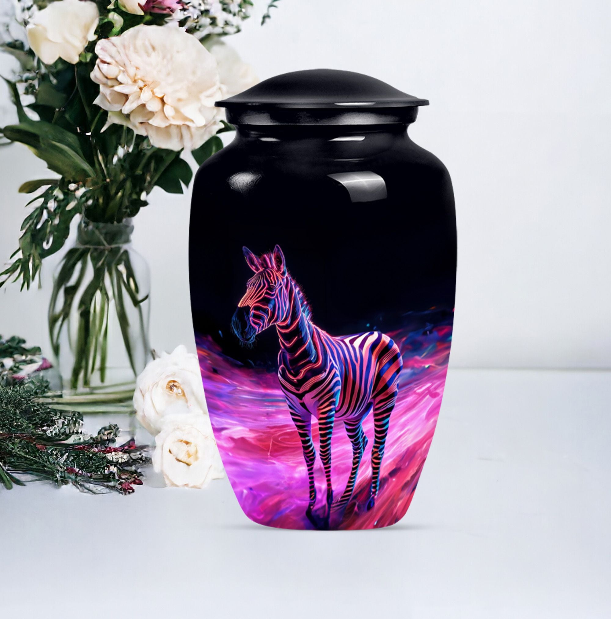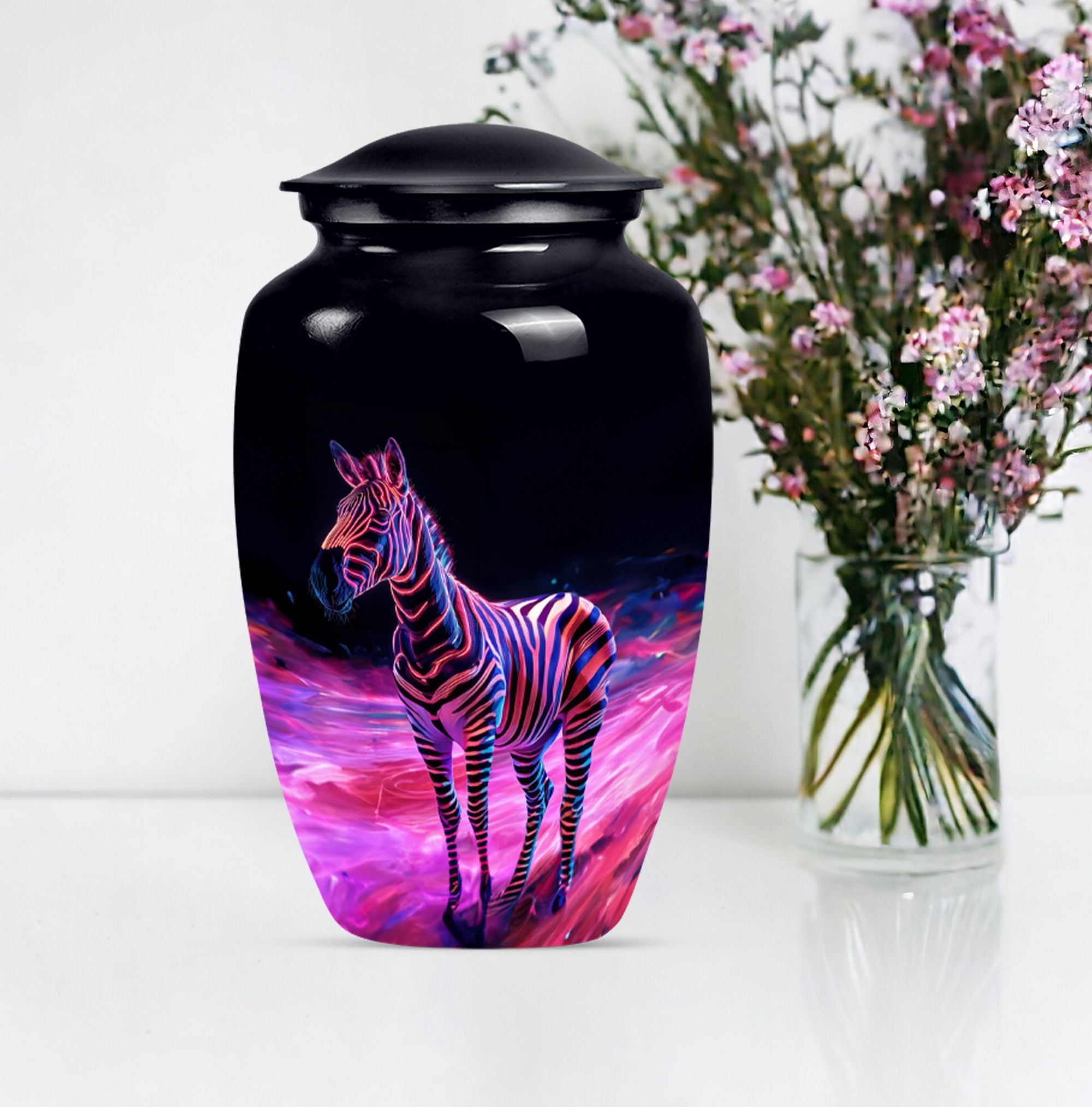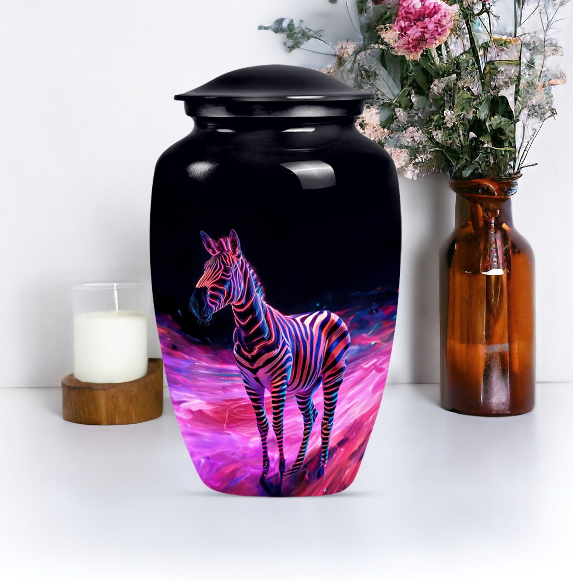 The Zebra Classique Urn stands as the ultimate cremation urinaluminary, offering an exquisite blend of elegance and distinctive design. Crafted with meticulous attention to detail, this urn features a striking zebra pattern that symbolizes individuality, strength, and beauty. Made from high-quality materials, the Zebra Classique Urn ensures durability while providing a sophisticated resting place for your loved one's ashes. The black and white zebra stripes create a timeless and bold aesthetic, making this urn a perfect tribute to honor a unique and cherished life. The smooth finish and intricate detailing reflect a commitment to craftsmanship, making it not just a memorial piece, but a true work of art. Whether displayed in your home or used in a memorial service, the Zebra Classique Urn offers a dignified and memorable way to celebrate and remember your loved one.