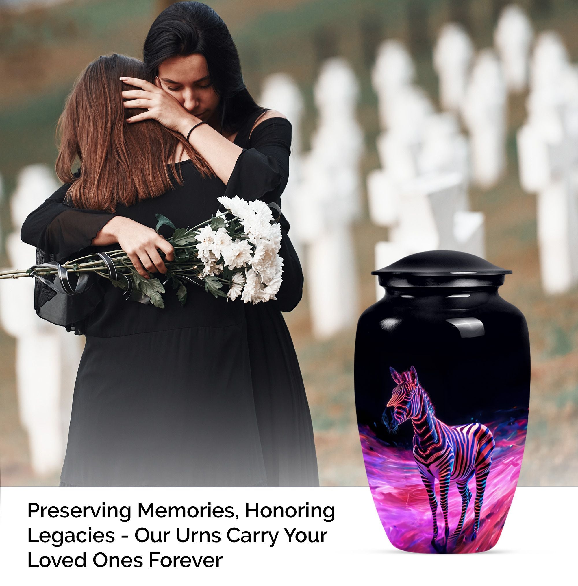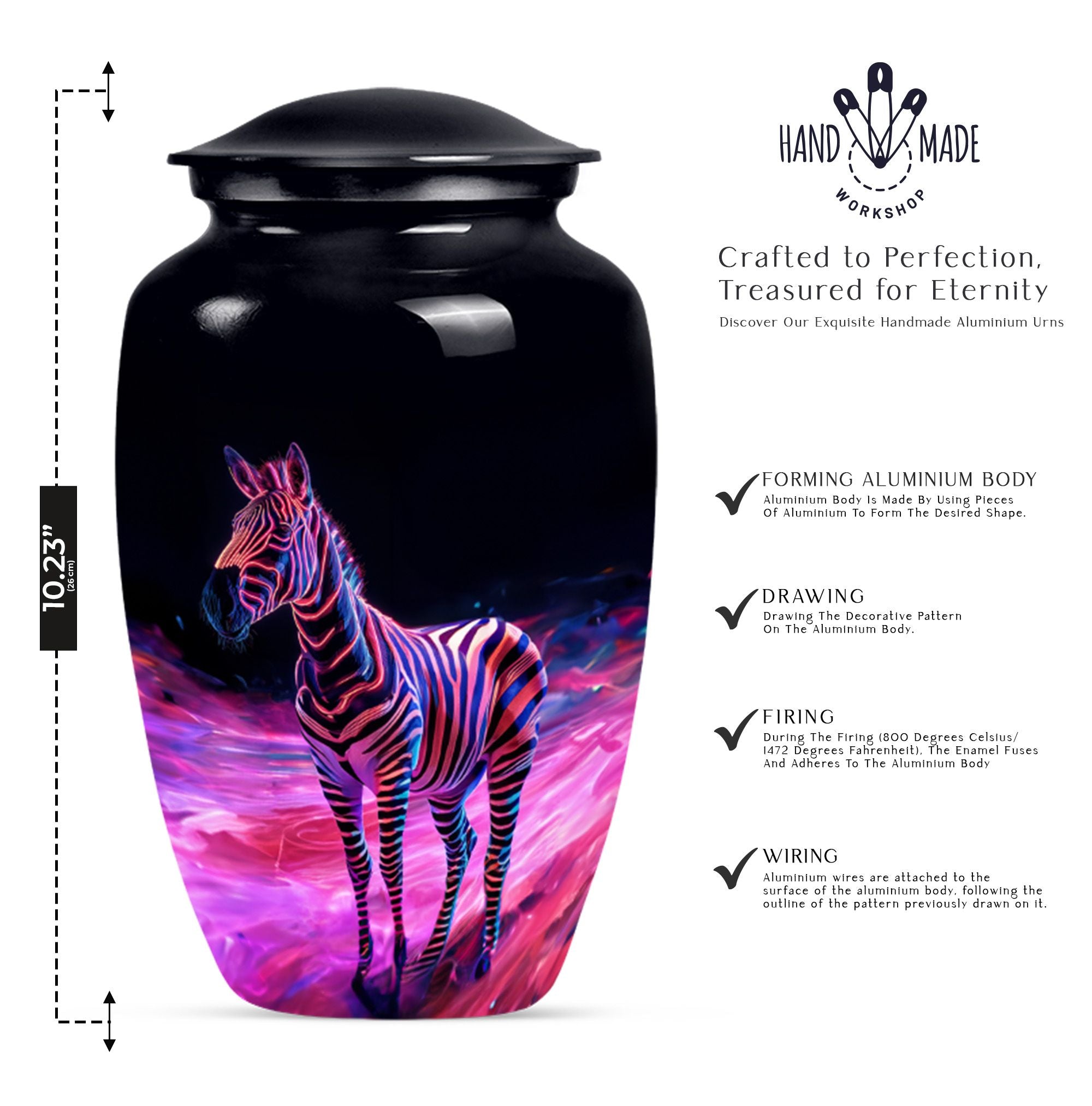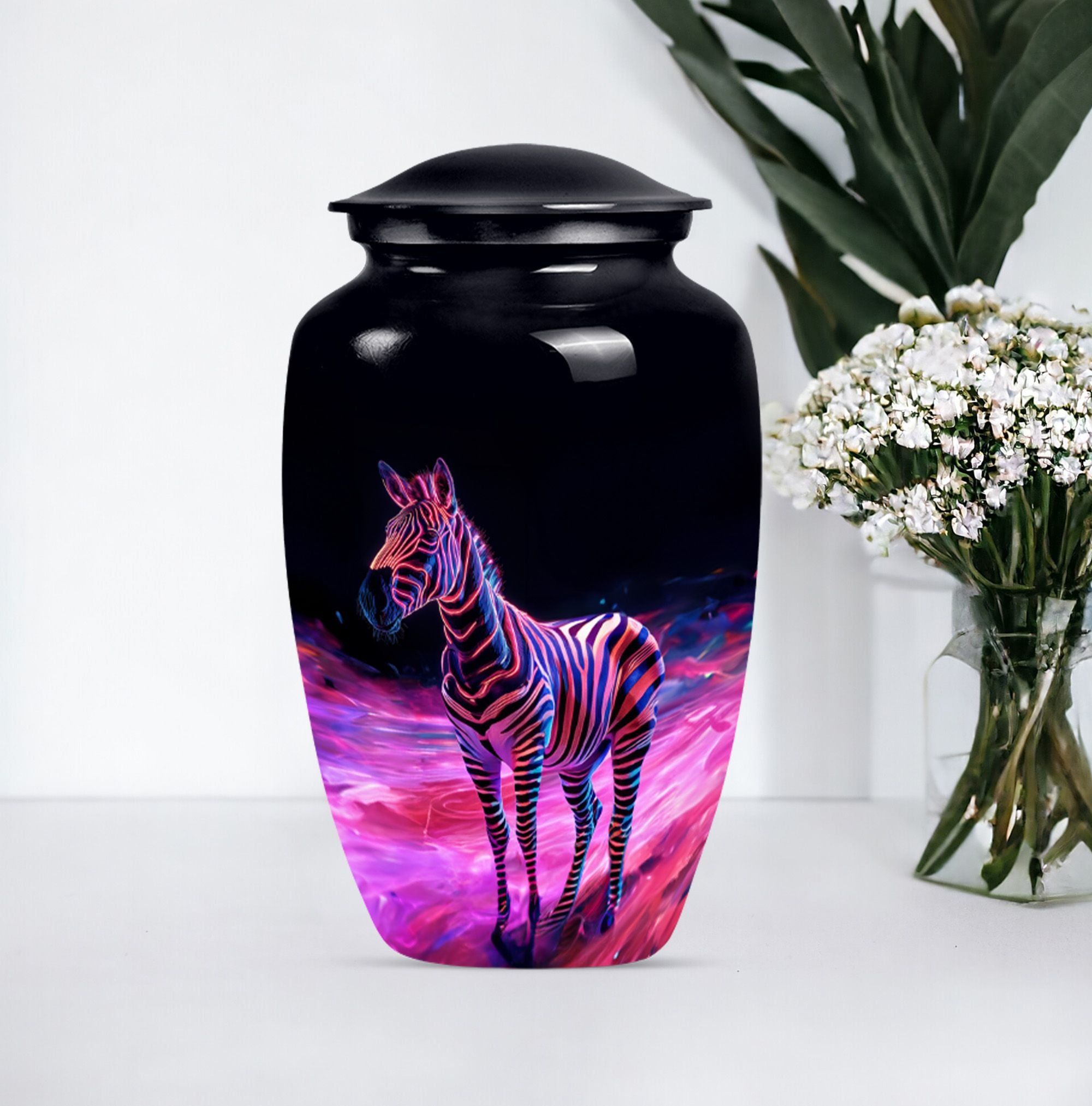 The Zebra Classique Urn stands as the ultimate cremation urinaluminary, offering an exquisite blend of elegance and distinctive design. Crafted with meticulous attention to detail, this urn features a striking zebra pattern that symbolizes individuality, strength, and beauty. Made from high-quality materials, the Zebra Classique Urn ensures durability while providing a sophisticated resting place for your loved one's ashes. The black and white zebra stripes create a timeless and bold aesthetic, making this urn a perfect tribute to honor a unique and cherished life. The smooth finish and intricate detailing reflect a commitment to craftsmanship, making it not just a memorial piece, but a true work of art. Whether displayed in your home or used in a memorial service, the Zebra Classique Urn offers a dignified and memorable way to celebrate and remember your loved one.