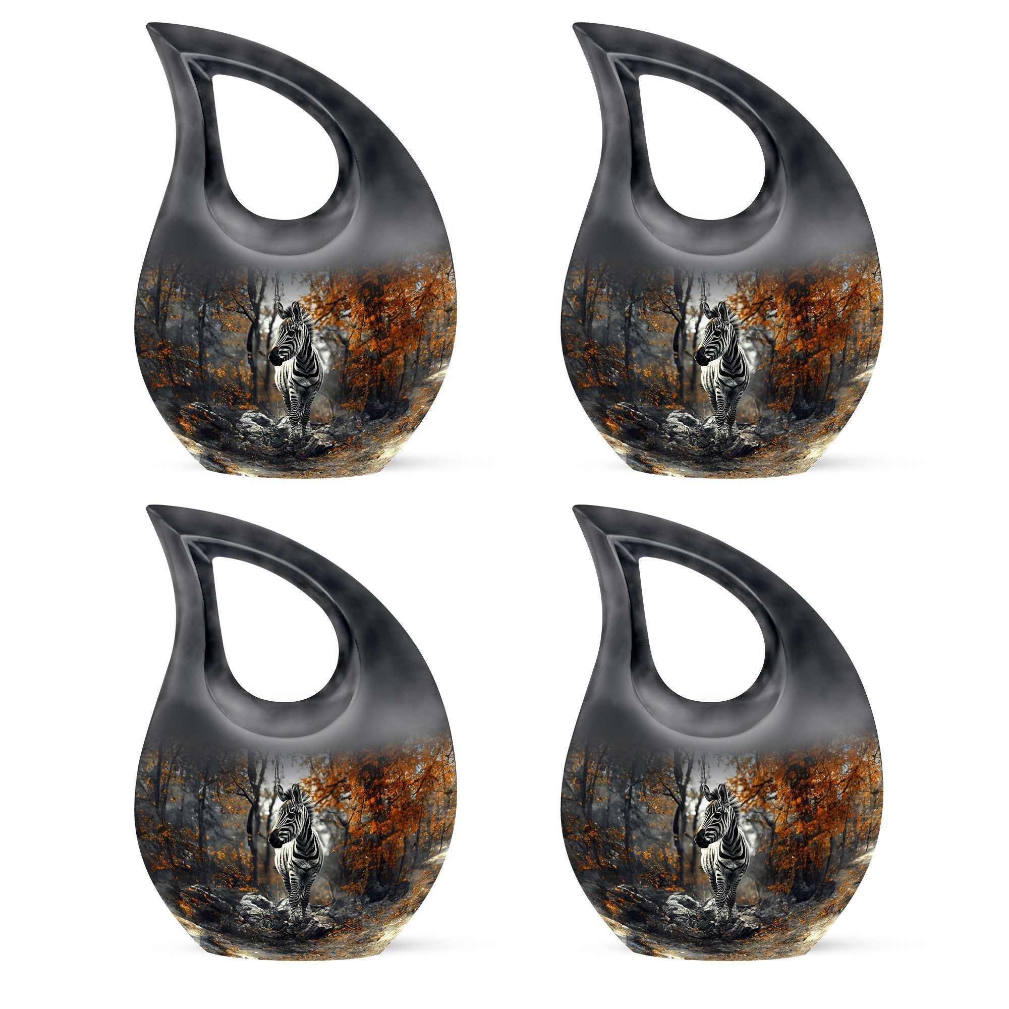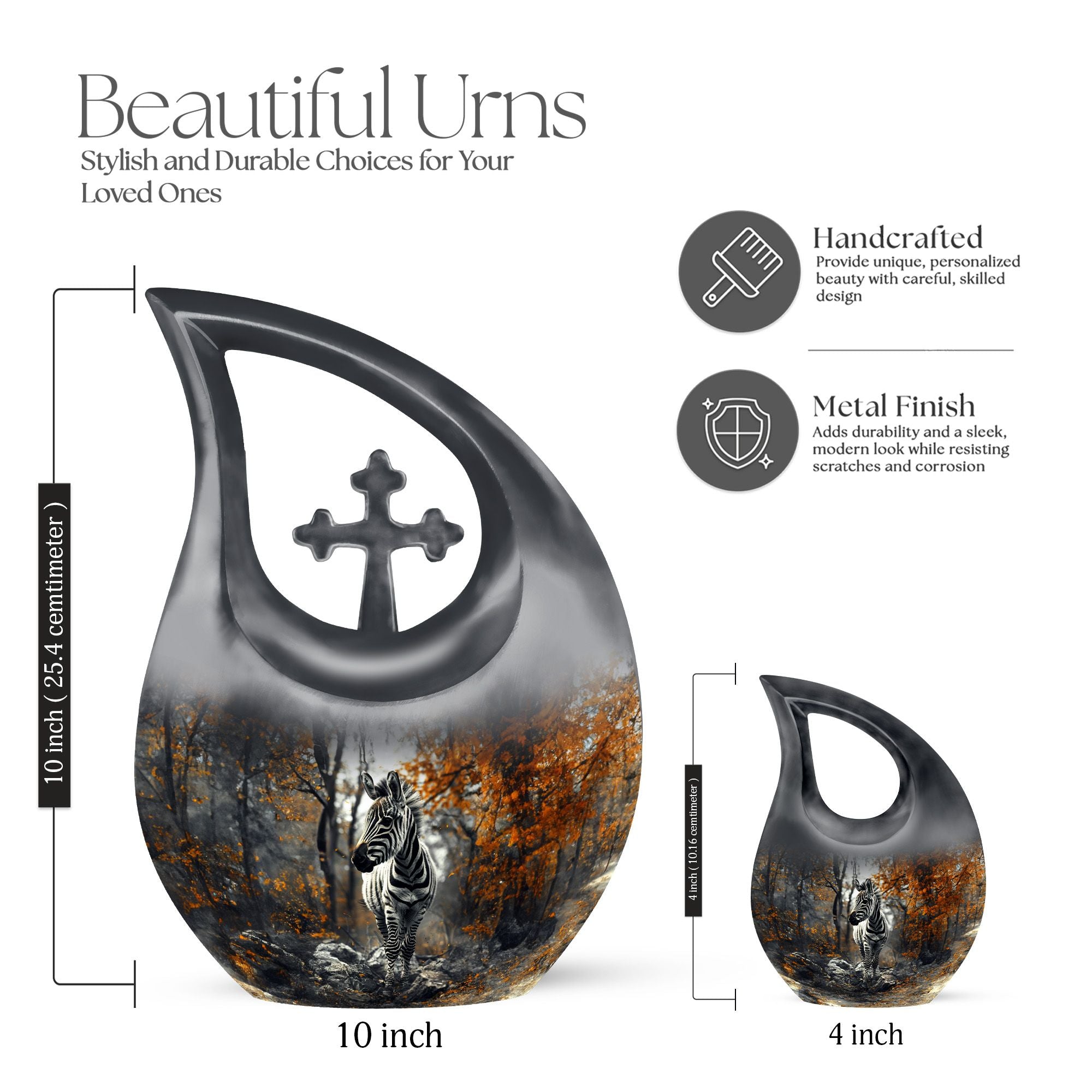 Cherish the memory of your loved ones with our unique, personalized Zebra Urn. Our one-of-a-kind large urn, standing at a capacity of 200 cubic inches, and a skillfully crafted height of 10 inches, is perfect for holding human ashes. Weighing a sturdy 3.3 pounds, this memorial urn is constructed with superior aluminium, ensuring durability and long-lasting memory. Our special Zebra theme transcends the mundane, highlighting the individuality and distinctiveness of those we hold dear. Adding further uniqueness, our customization option allows you to personalize with engraved names, honoring your cherished ones in the most heartwarming way. The package not only includes the Zebra Urn but also a velvet pouch for the containment of ashes, reinforcing the respect and adoration you hold for them. With words such as 'Customized Urns for Ashes for Adults', 'Memorial Urns for Human Ashes', 'Cremation Monuments', and 'Personal Urns' frequently used in search queries, our Zebra urn is the ideal way to hold onto and honor those memories.
