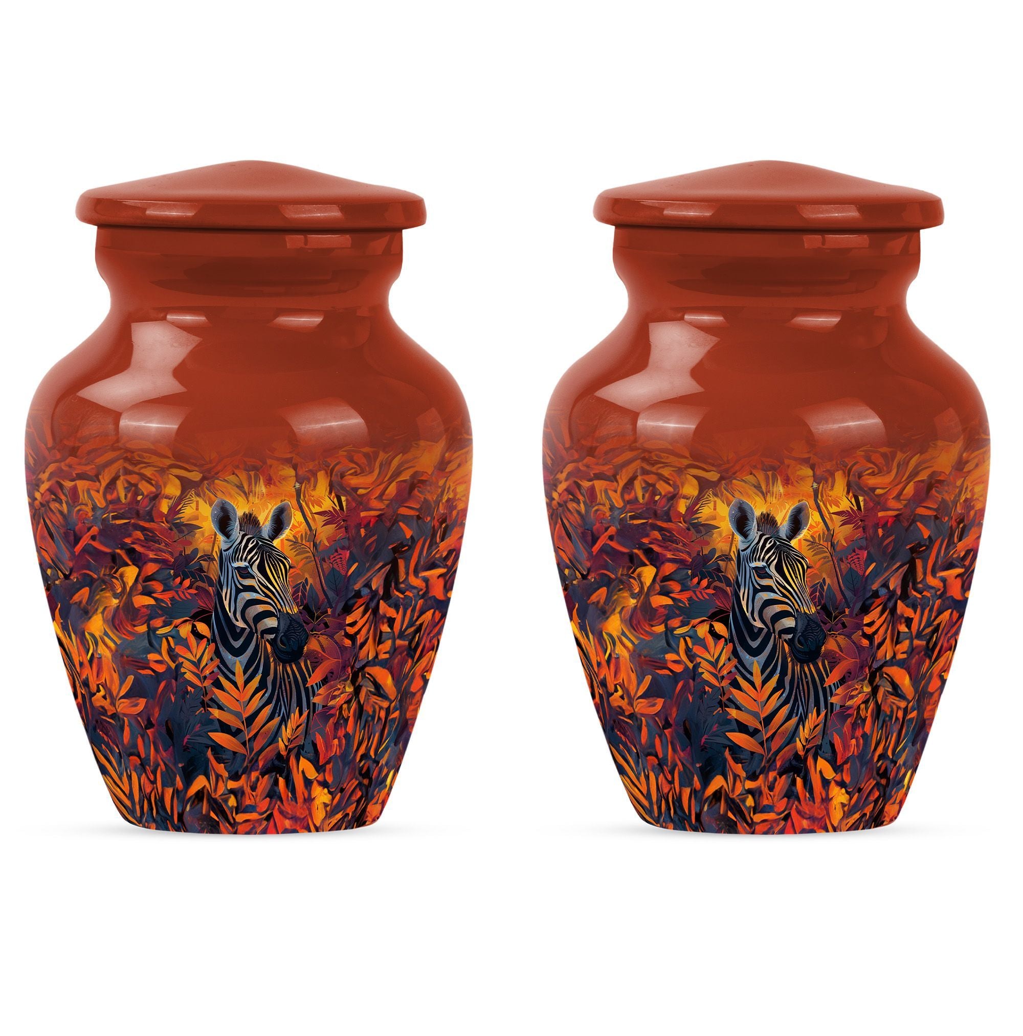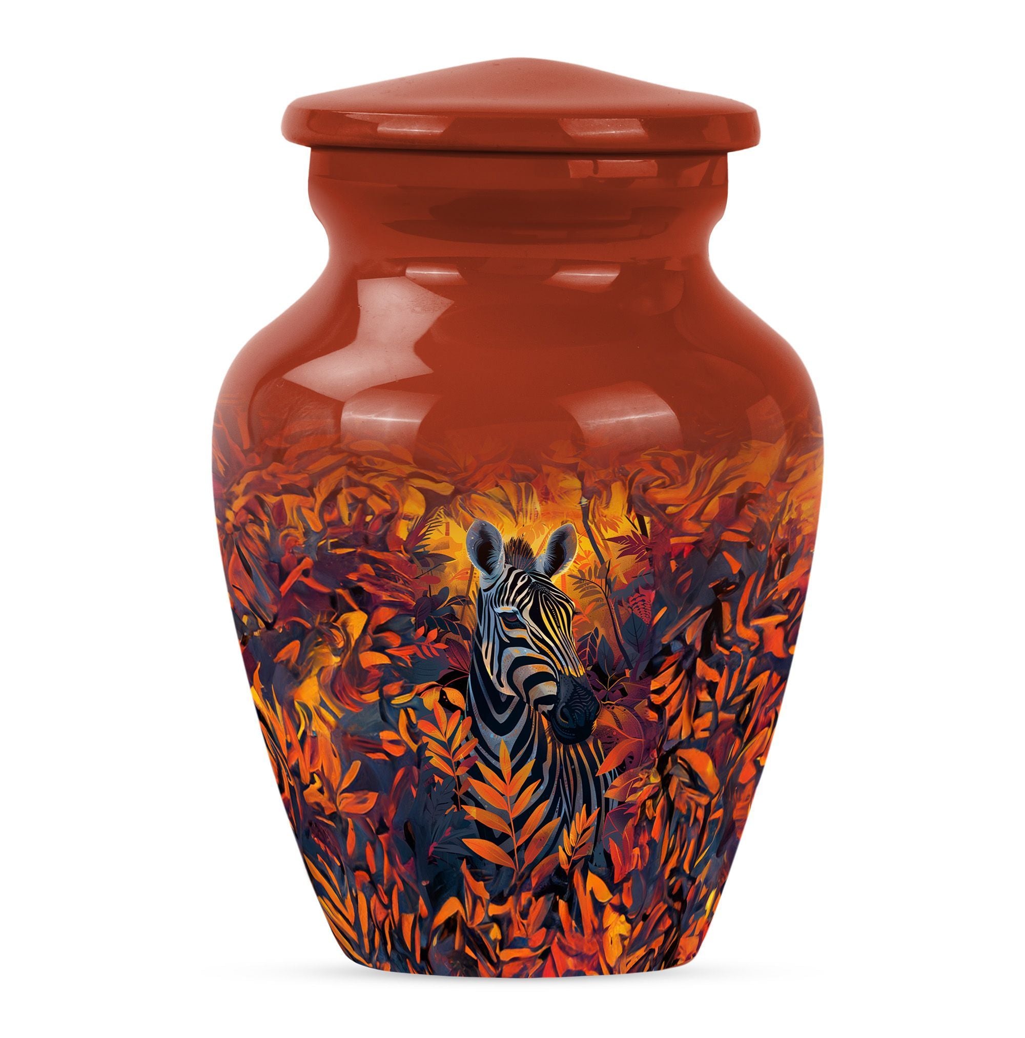 Embark on a journey of remembrance with our brilliant zebra urn. This large, classic urn is perfect for storing 200 cubic inches of loved one's ashes securely. The urn towers at an impressive height of 10-inch, casting a serene sense of presence in any setting. Each product comes with a plush velvet pouch, providing a delicate and respectful containment for the cherished remains. We understand the need for individuality during this sensitive time, which is why we are offering a unique personalization feature- impart your touch to this memorial with engraved names. Crafted with high quality aluminium, the urn not only stands the test of time but also adds a touch of elegance to its surroundings. The abstract theme of the design serves to ignite remembrance and peace, going beyond functionality. Our product seamlessly balances weight and size, weighing a mere 3.3 pounds, making it easy to handle. When it comes to memorial urns for adult ashes, our zebra urn leads the way in standout appeal and heartfelt tribute, making it much more than just an urn.
