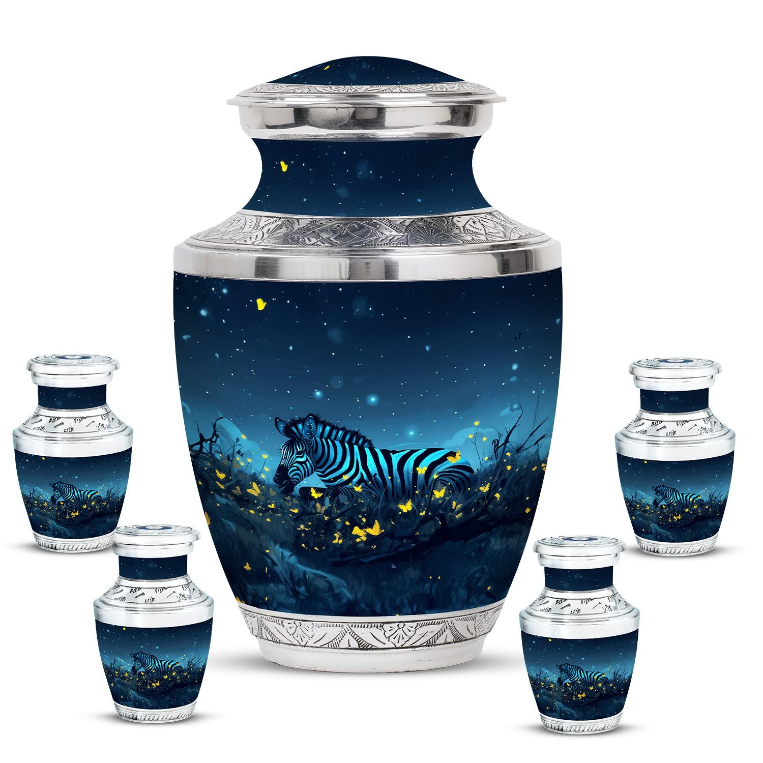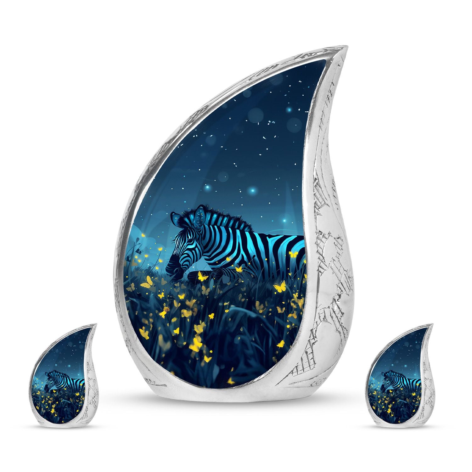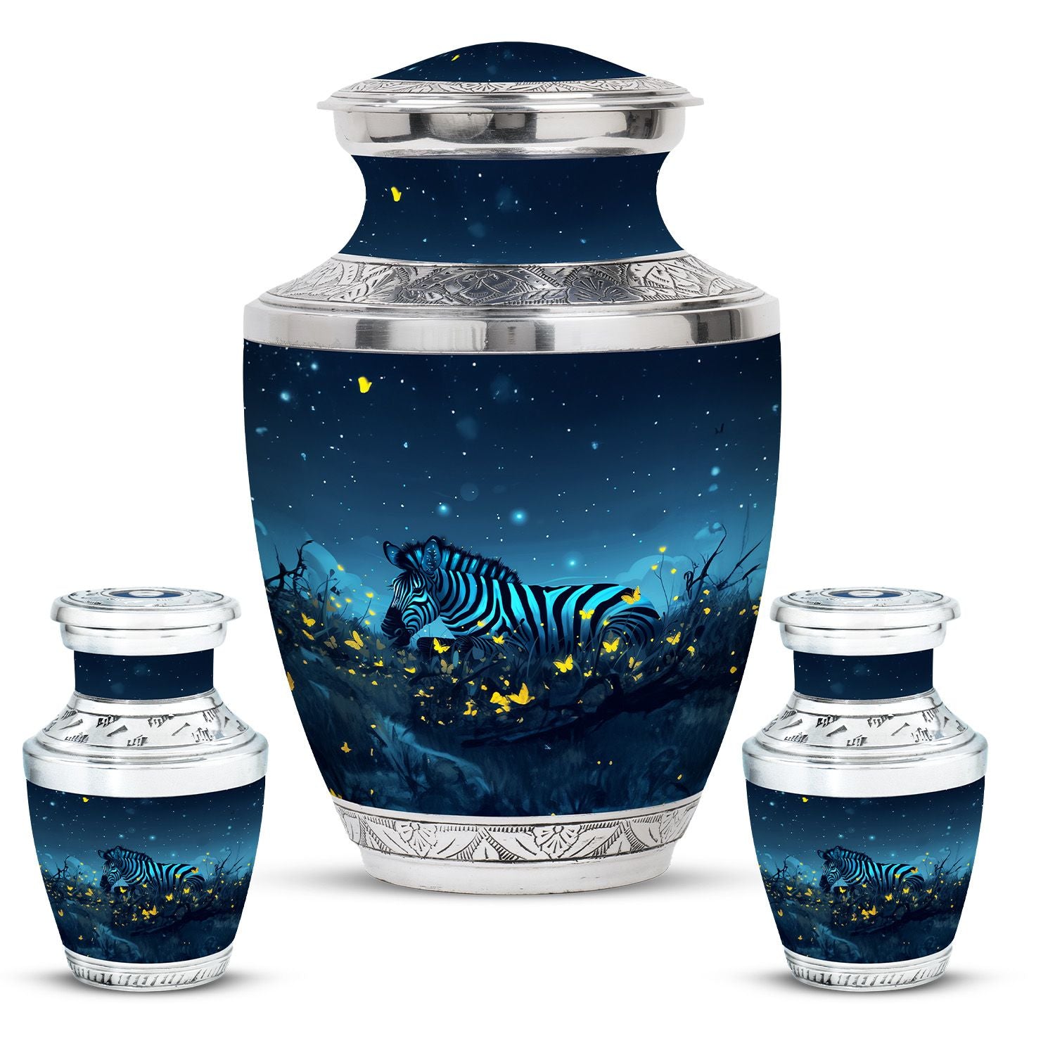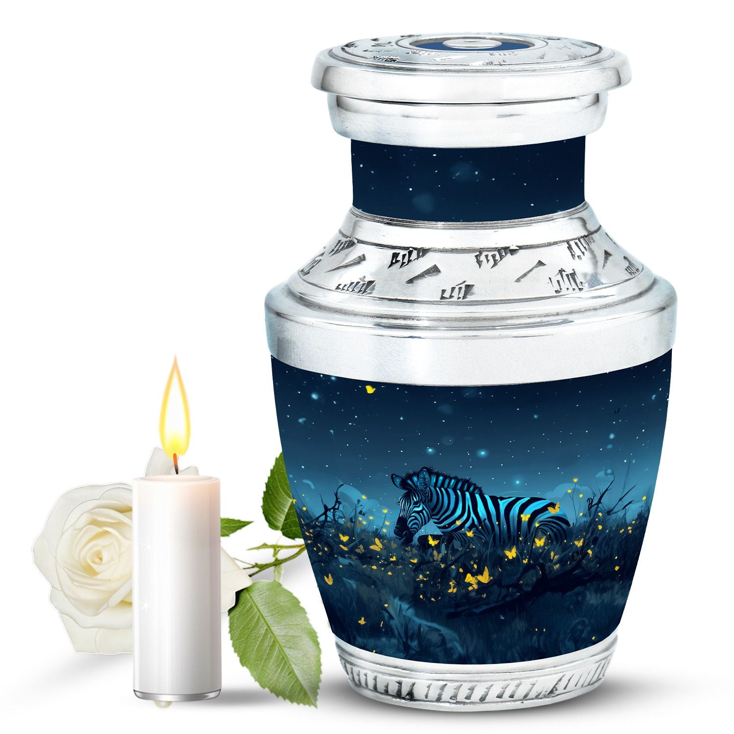 Honor a loved one’s journey with the **Zebra Metal Urn for Human Ashes**. Shop today for a striking and meaningful tribute.