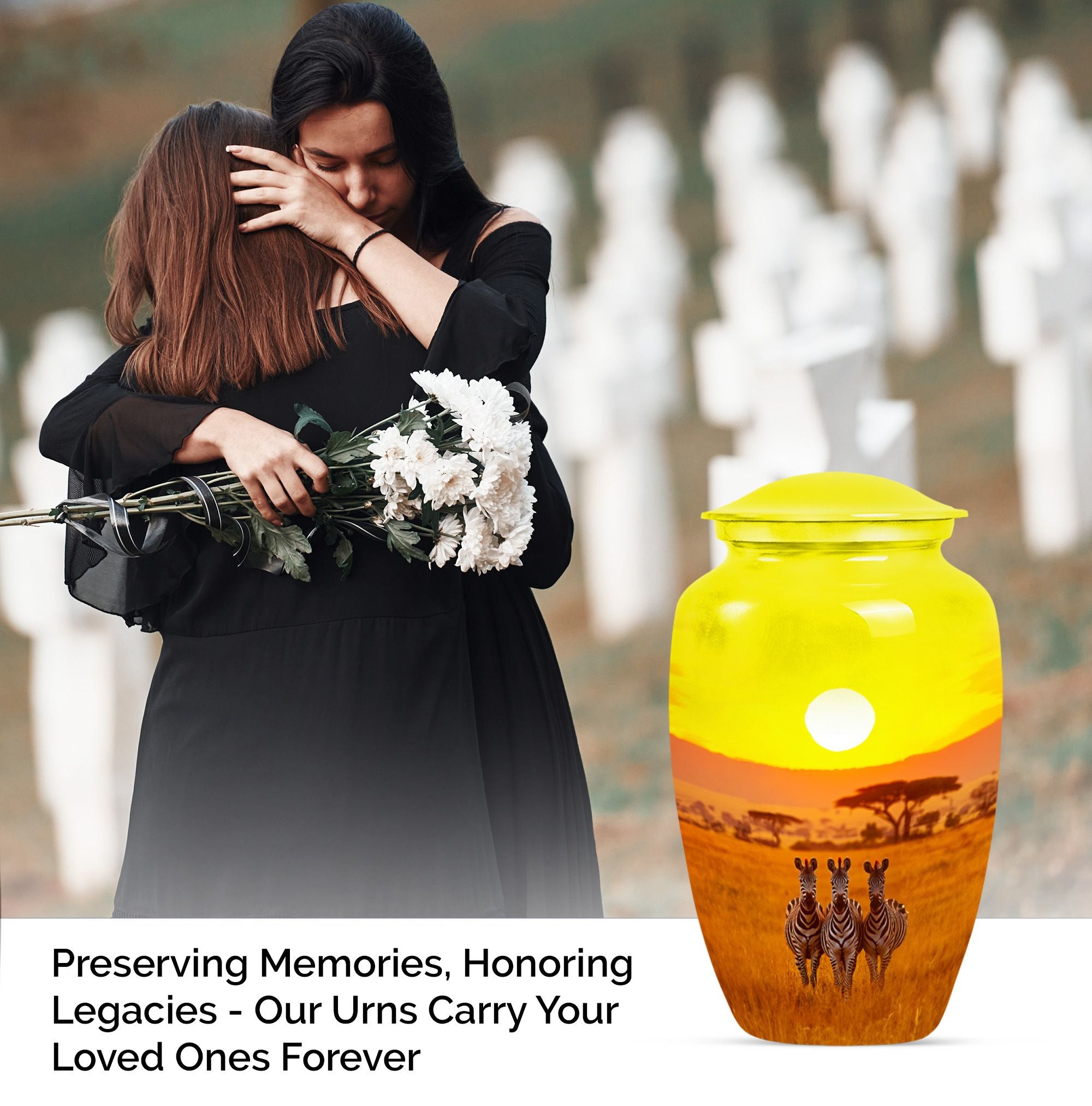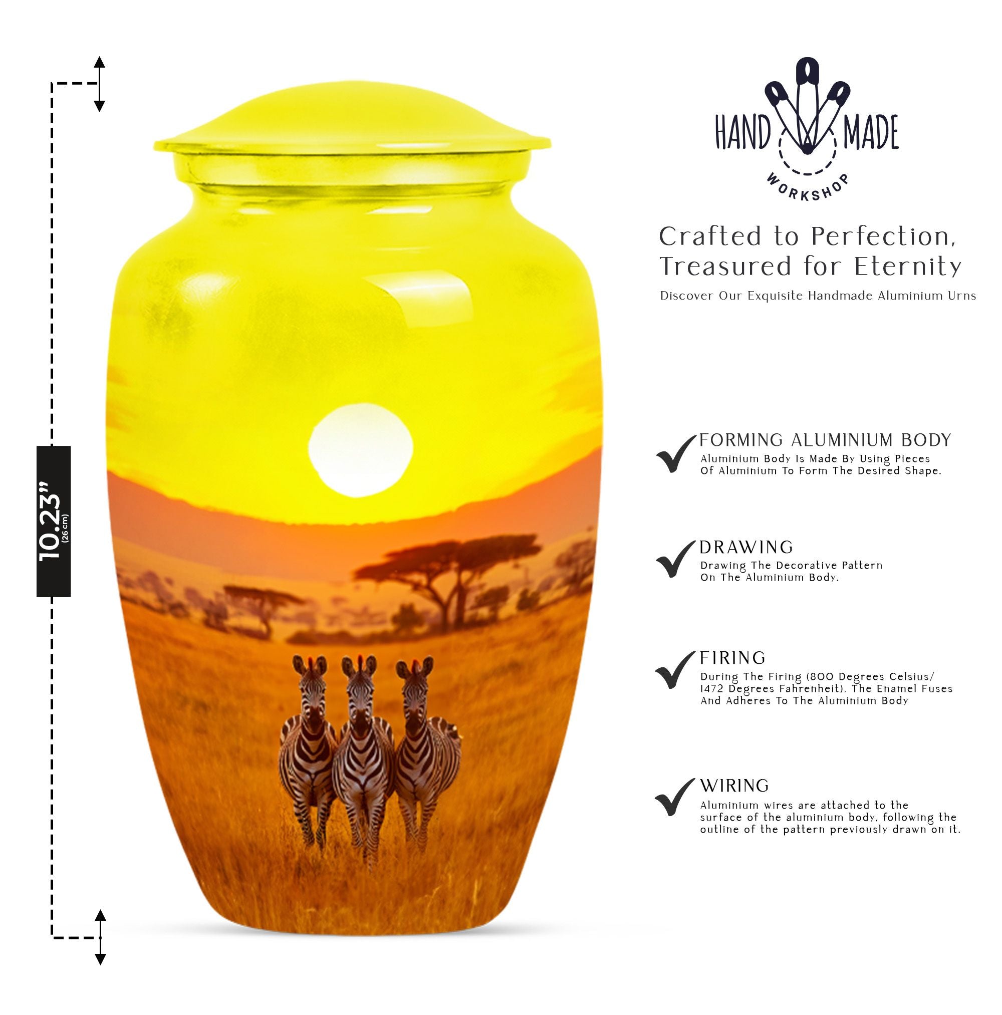 Ideal for keepsake or burial, the Zebra Urn ensures a respectful tribute. It serves as both a cremation urn women and funeral urns women, offering a lasting symbol of love and remembrance.