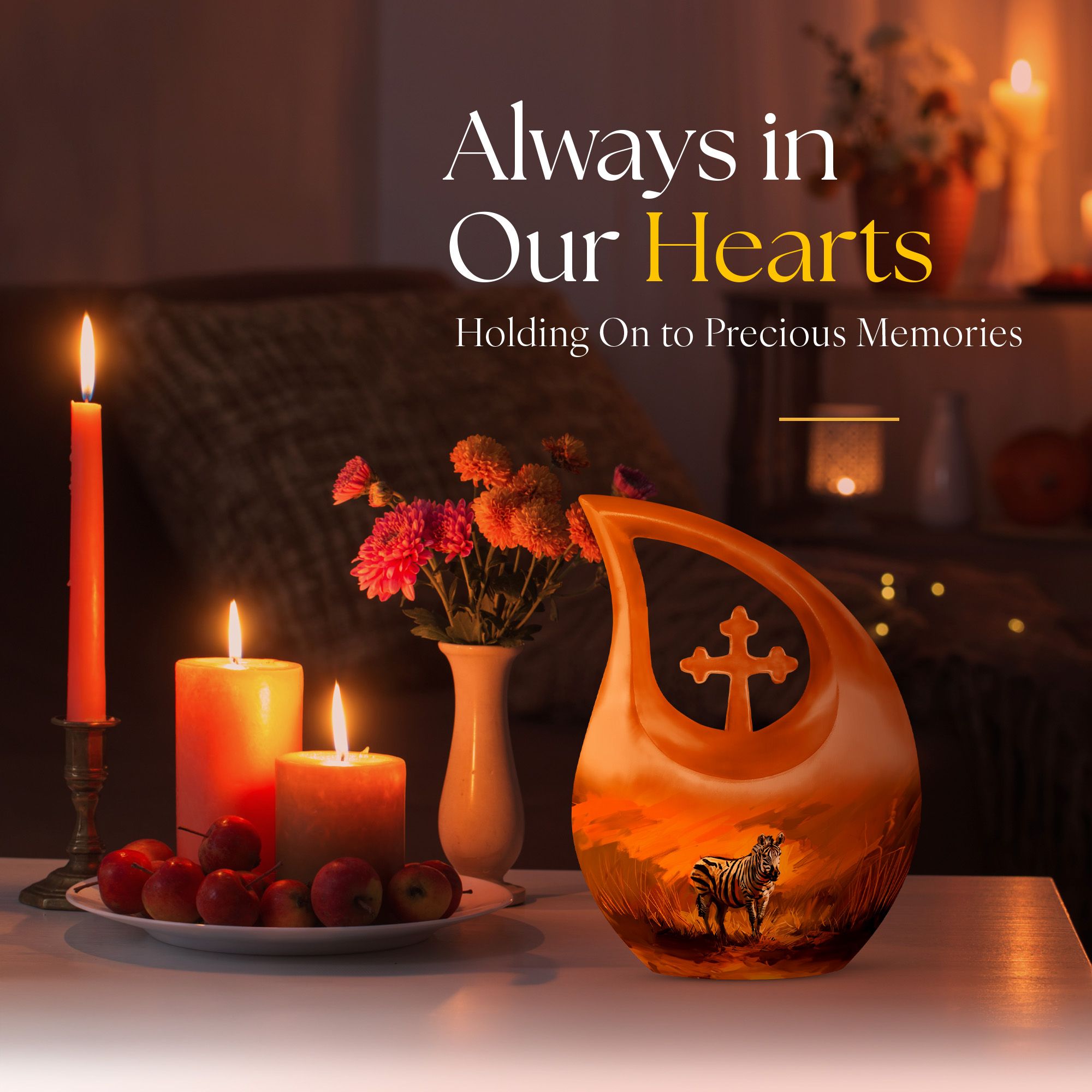 This Zebra Memorial Urn offers a unique and meaningful way to honor a cherished life. Designed for families seeking an Urn Ashes For Women or a versatile tribute for men and women alike, it provides a bold yet comforting presence that symbolizes individuality, strength, and everlasting love.