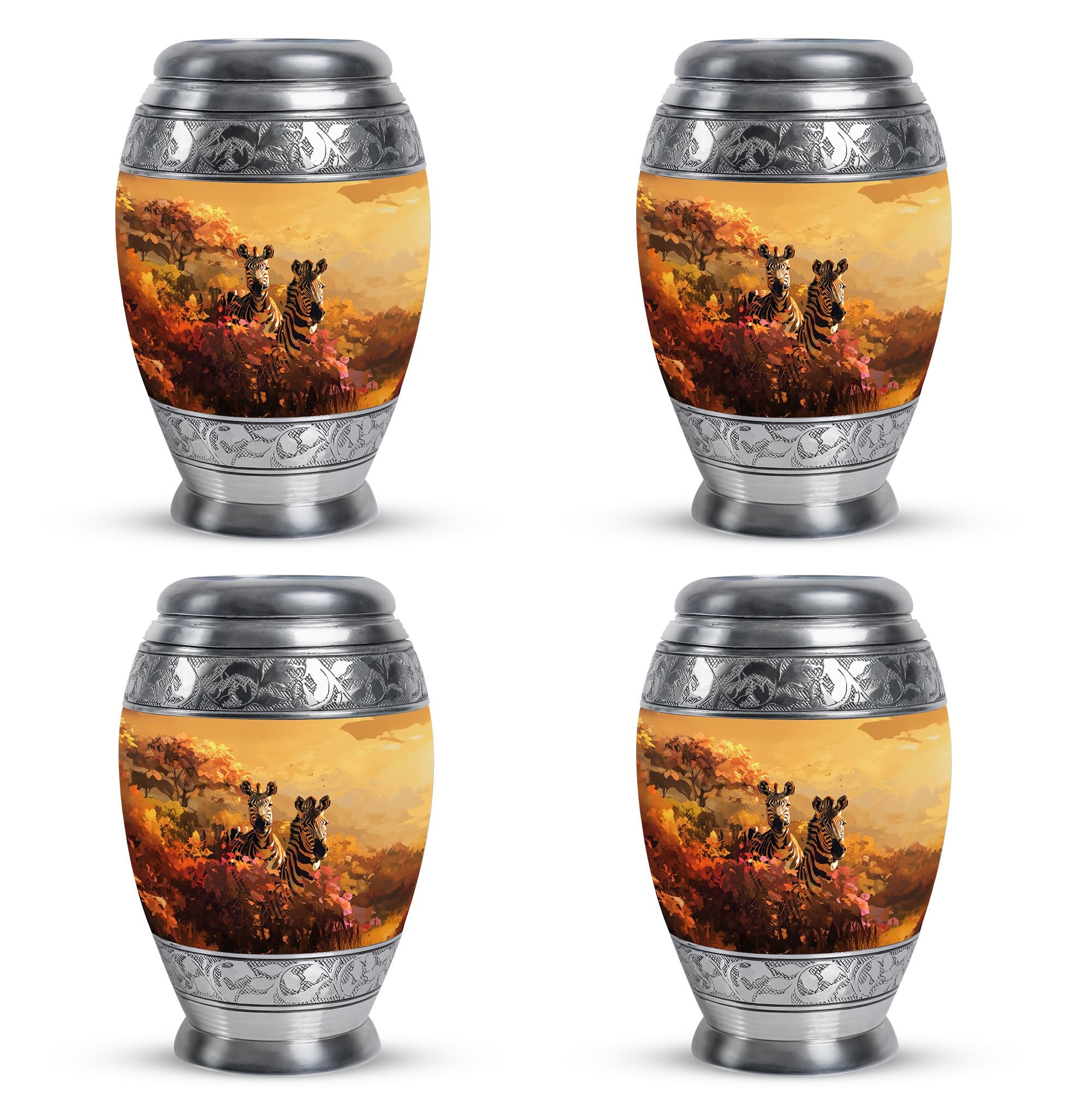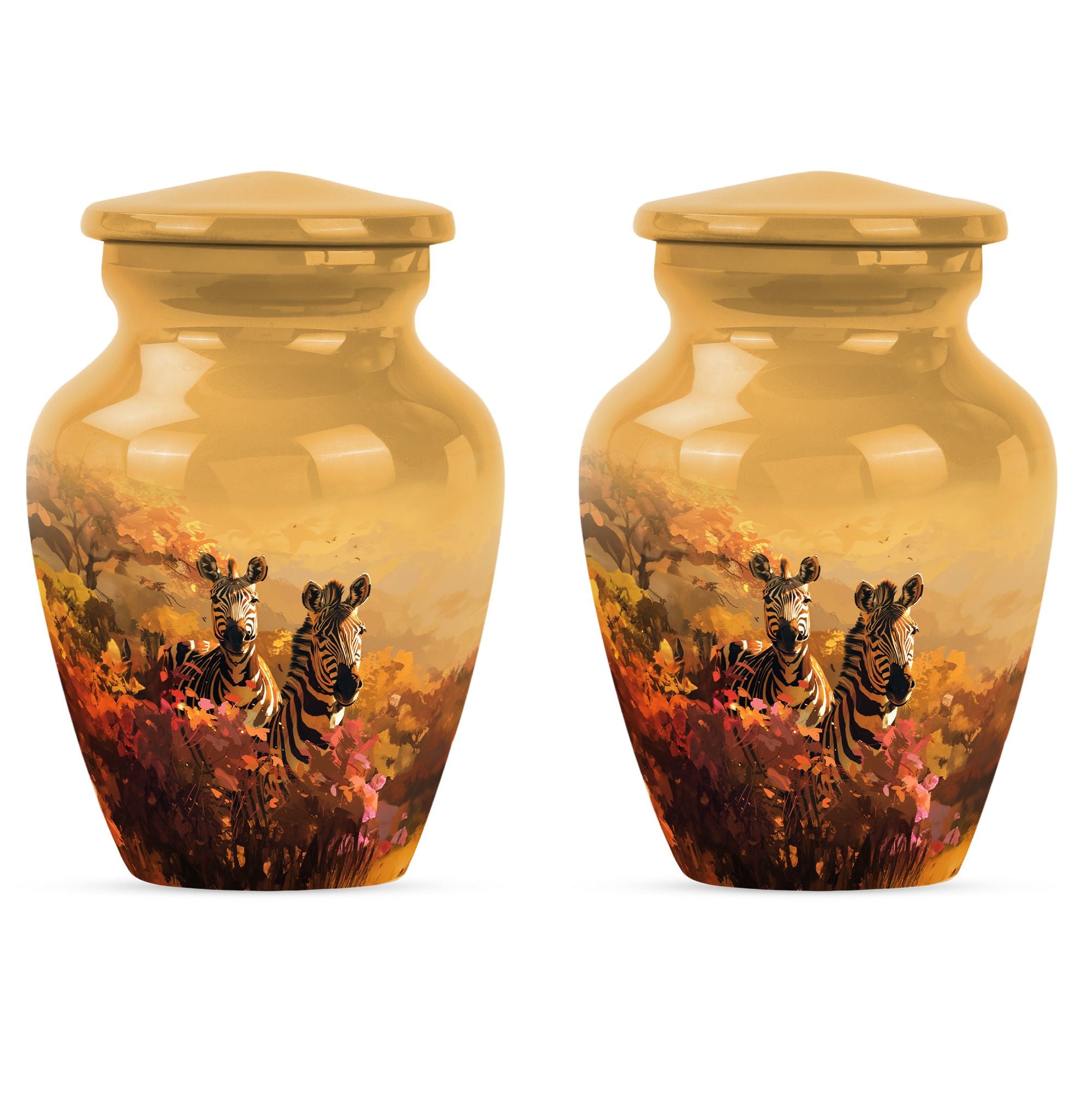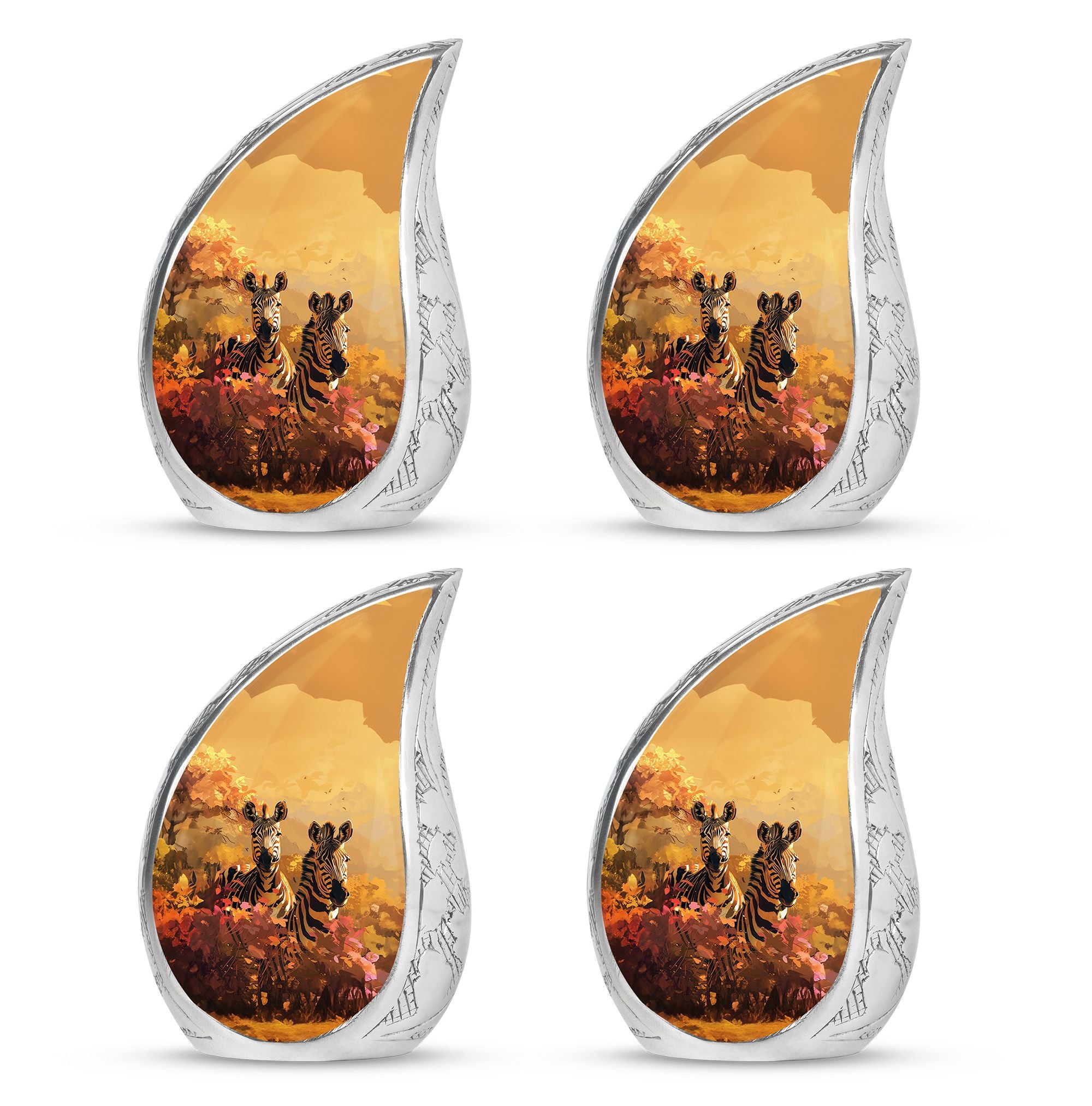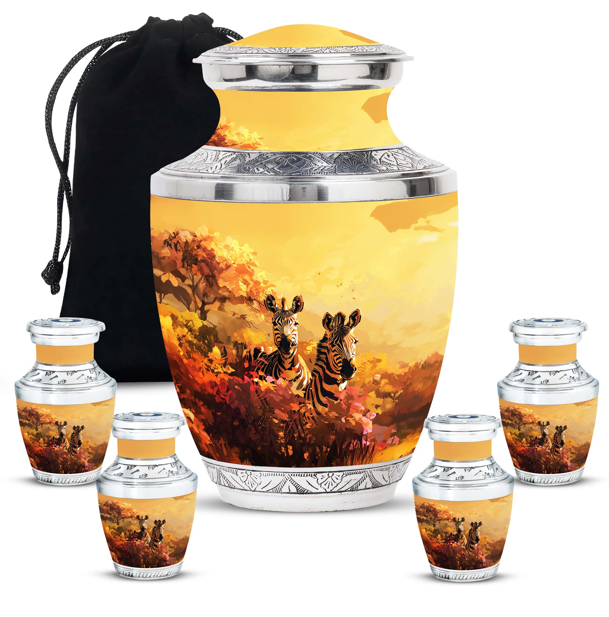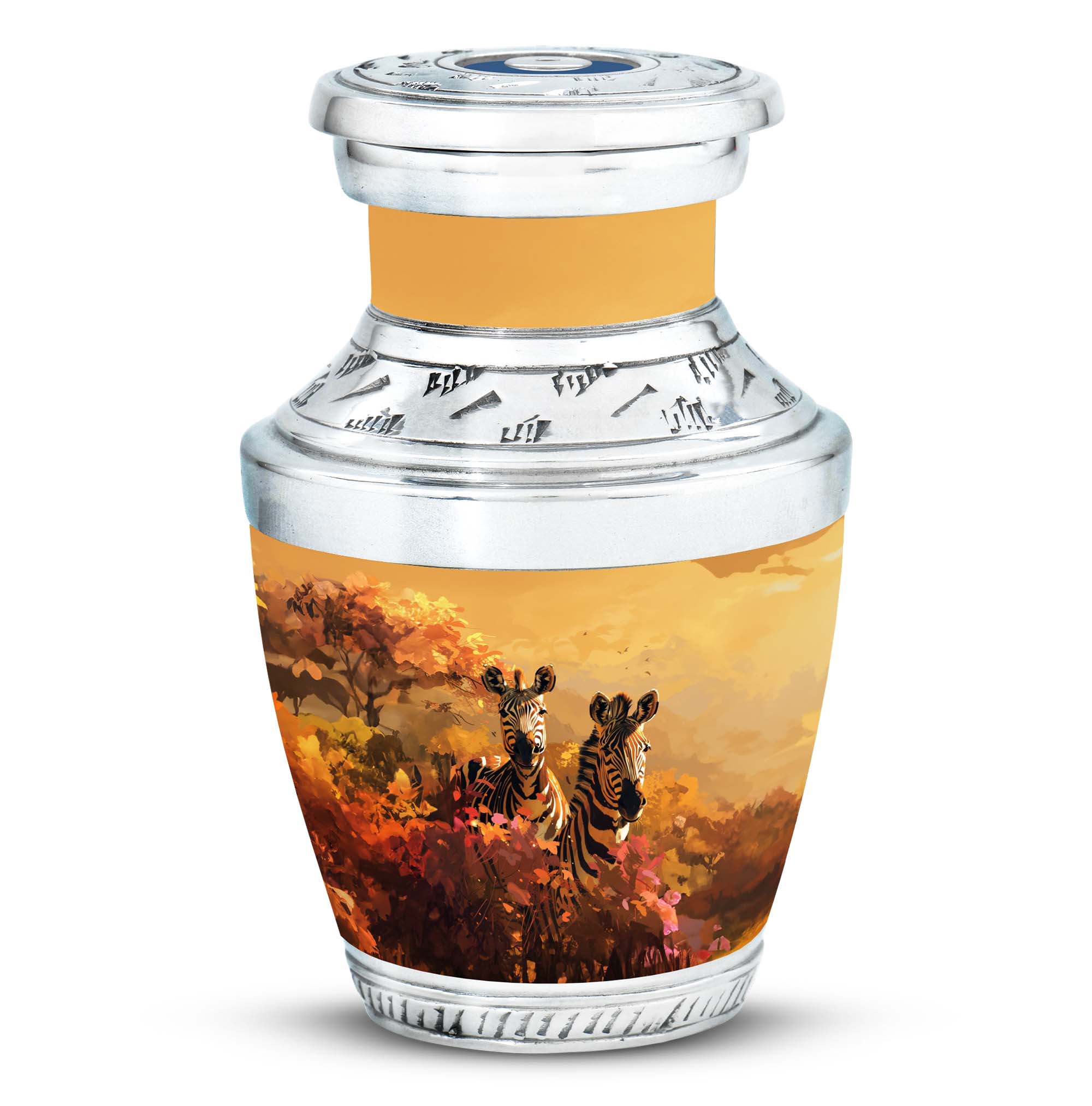 This **cremation urn for human ashes** is **designed with a symbolic zebra motif, representing leadership, individuality, and unwavering love**.