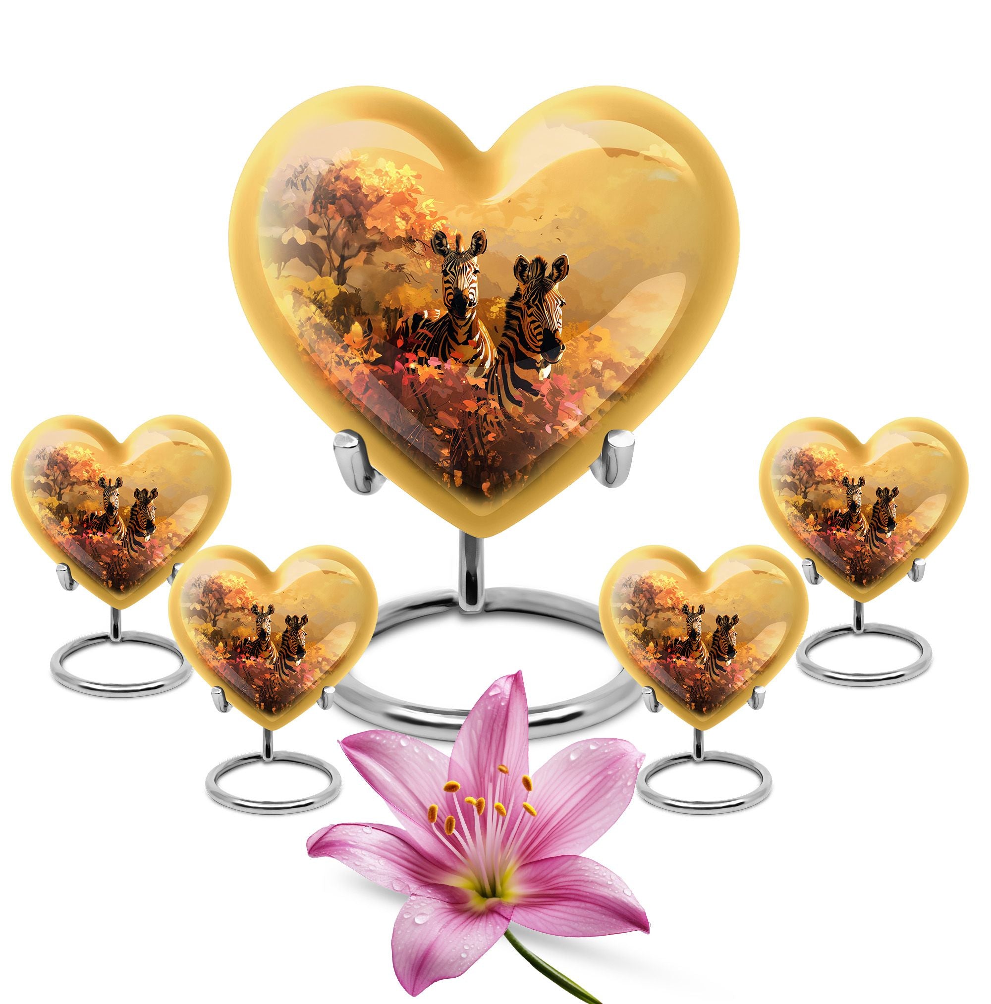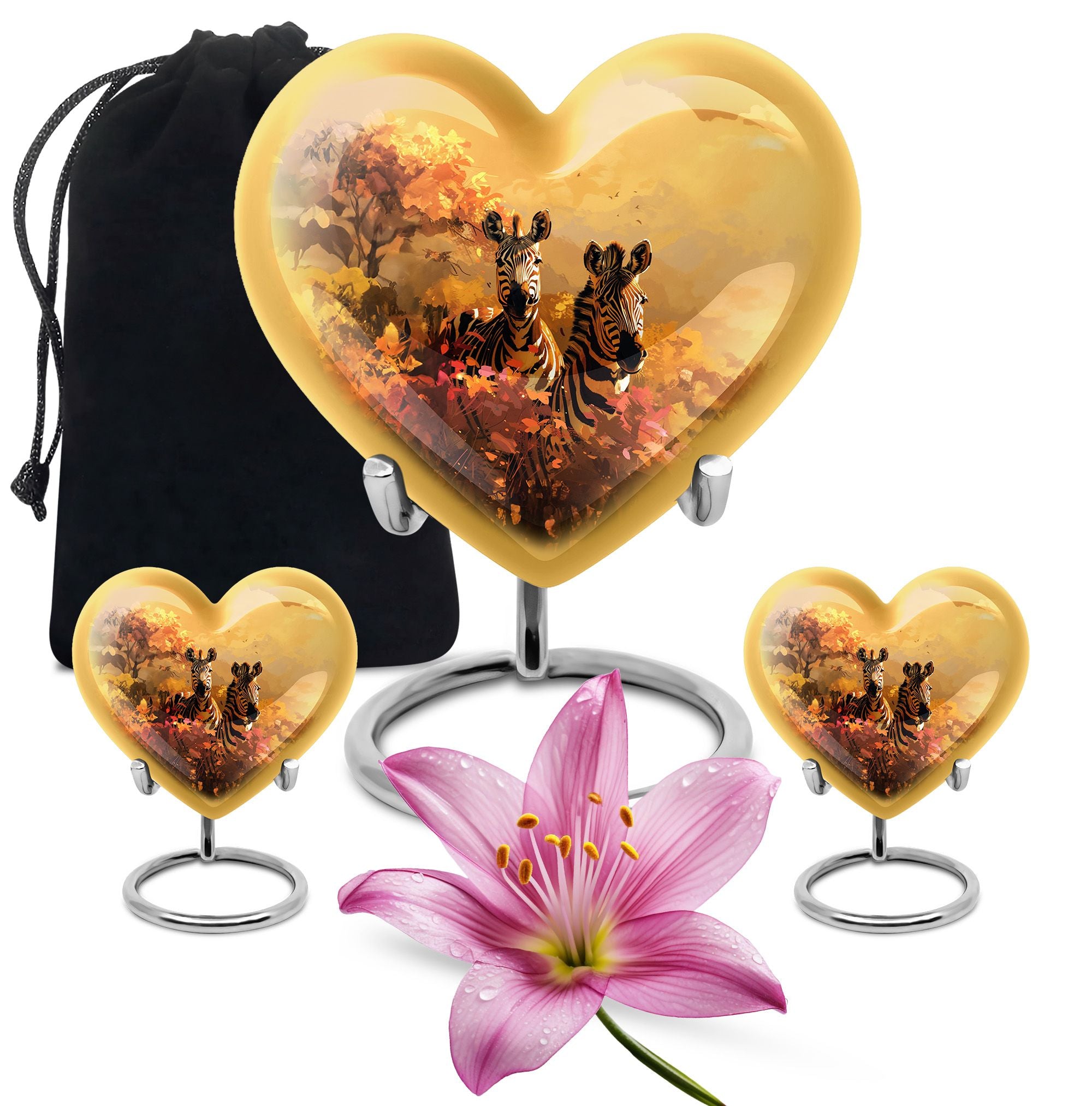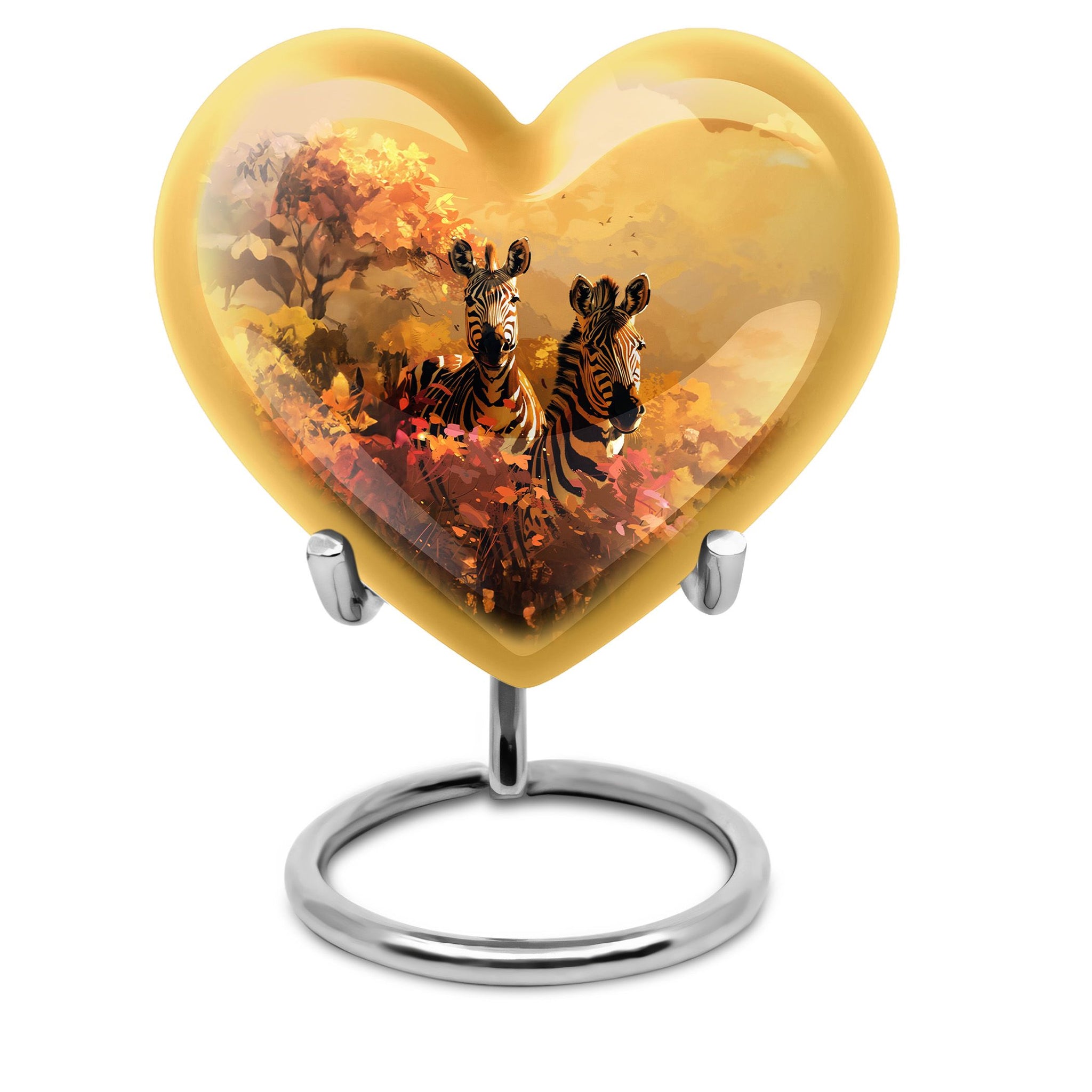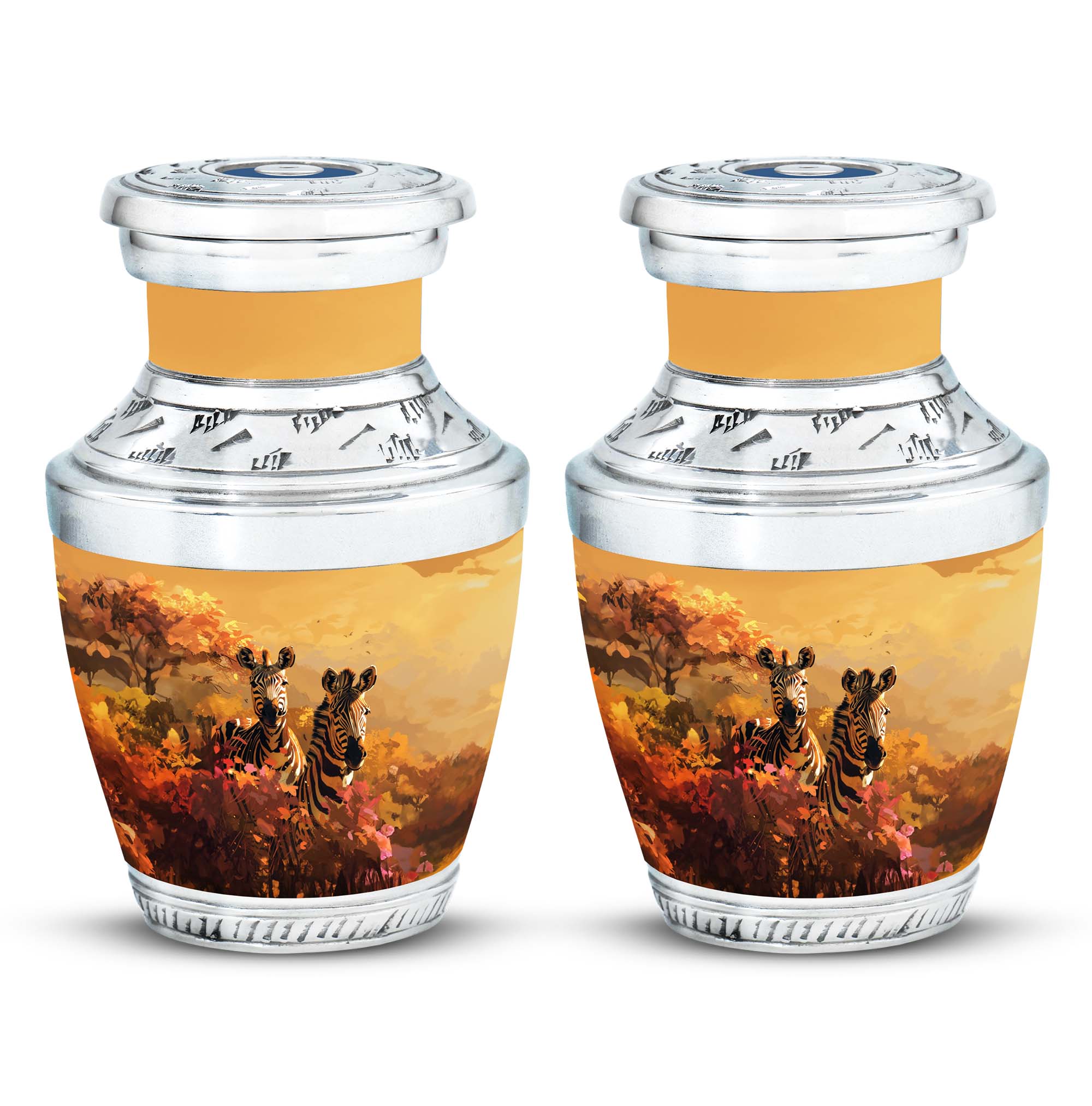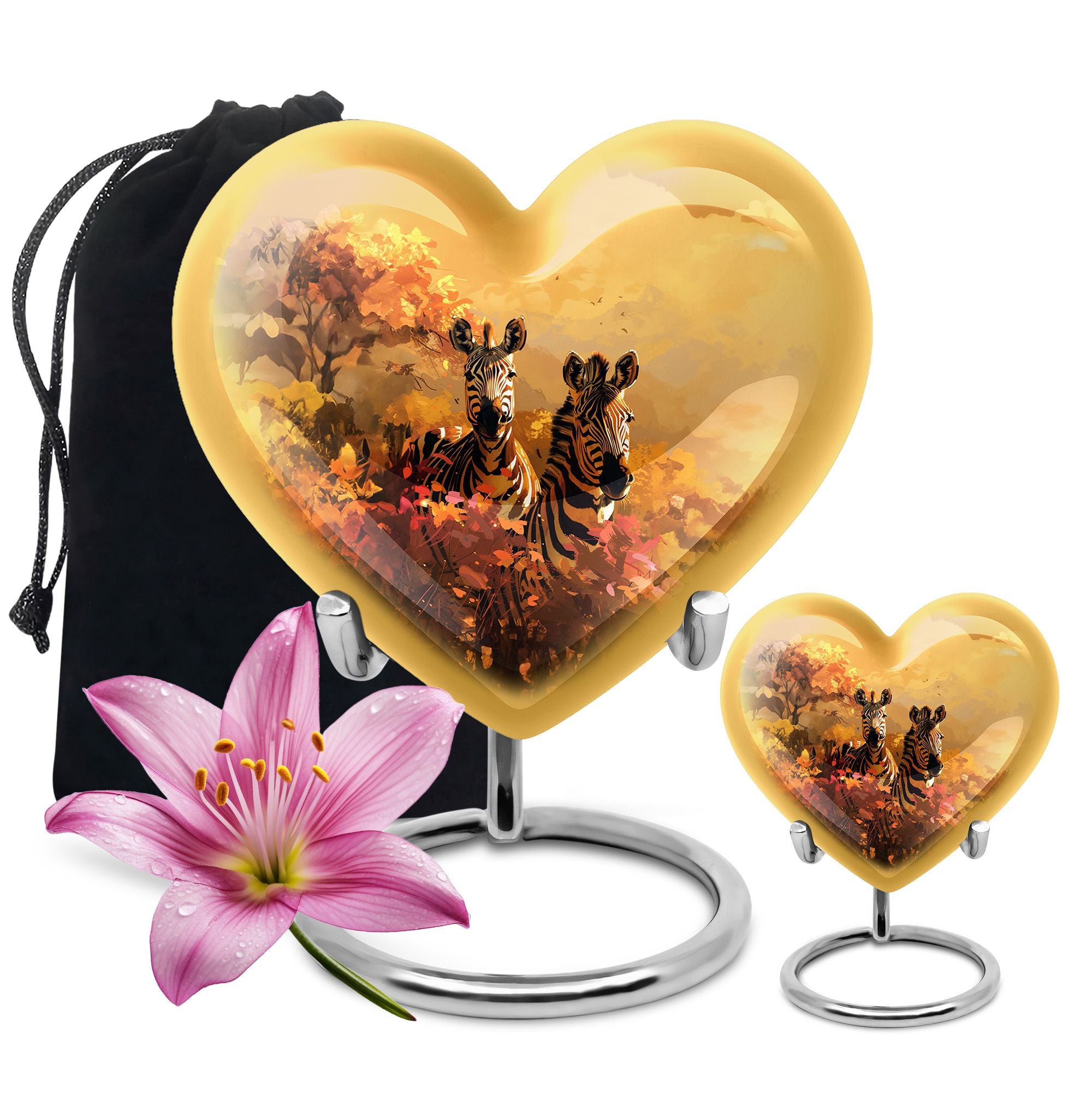 This **cremation urn for human ashes** is **designed with a symbolic zebra motif, representing leadership, individuality, and unwavering love**.