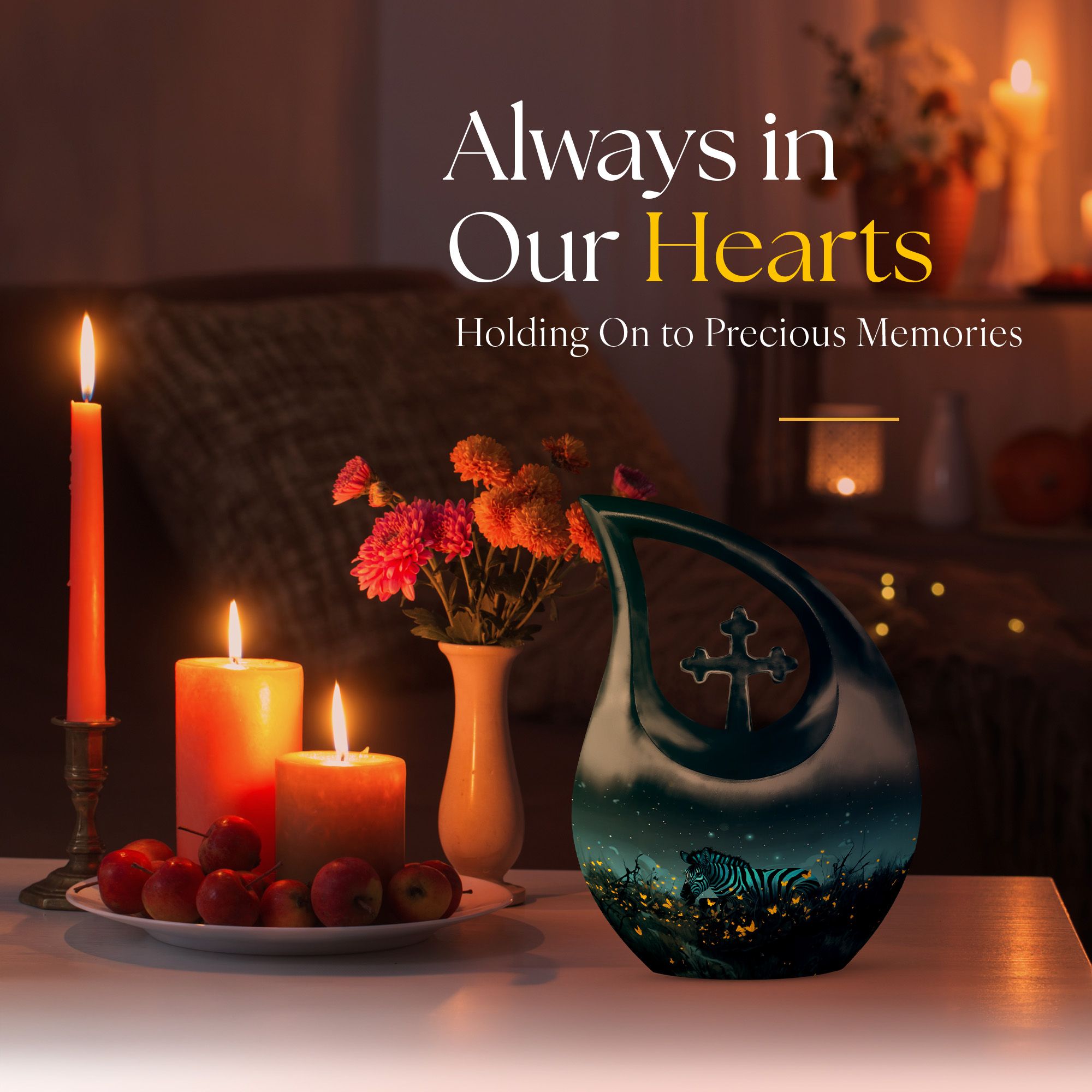 This Zebra Burial Urn offers a meaningful and heartfelt way to honor a cherished life. Designed for families seeking Urns For Human Ashes Adult Female Mom or a dignified tribute for men, it provides a comforting memorial with its bold and symbolic zebra-inspired design representing individuality, strength, and remembrance.