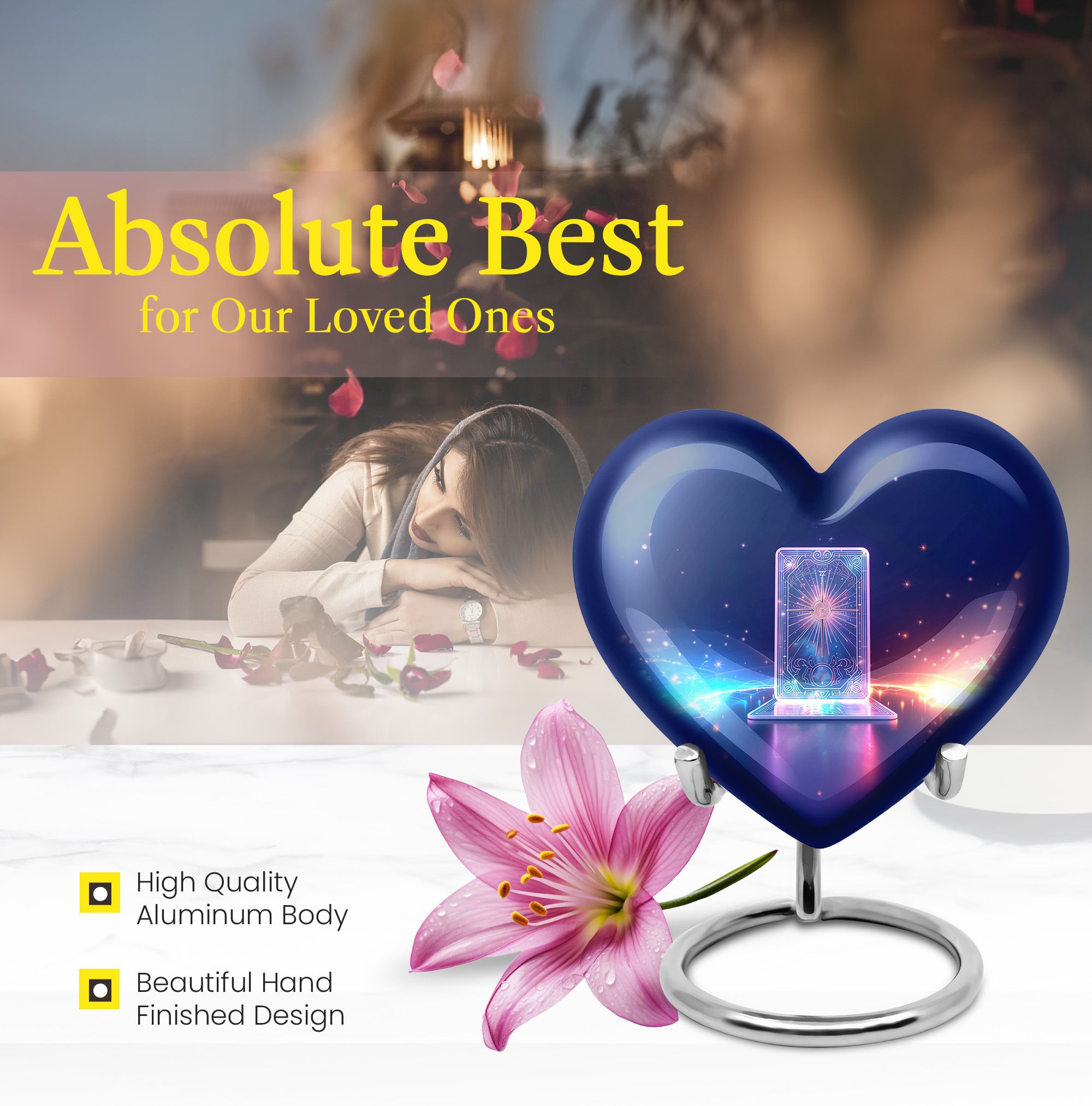 Preserve the sanctity of your departed loved ones with our zodiac urn, a symbolized grandeur of worthiness and respect. This 10-inch large urn, weighing at 3.3 pounds, is meticulously crafted from high-quality, resilient aluminum providing assurance of its longevity. Its abstract theme lends an innovative modern aesthetic, making it a perfect resting place for the ashes of an adult man. Boasting a capacity of 200 cubic inches, the urn comfortably houses a substantial amount of cremation ashes. We also include a complimentary velvet pouch, ensuring careful containment. Additionally, the urn can be uniquely personalized, offering you the opportunity to engrave names, hence making a bespoke commemoration of their loved one's life. The heart urn exemplifies thoughtfulness blended with sophistication. Explore our range of urns for cremation ashes and metal urns for adult human ashes, ideal for both male and female, offering a harmonizing blend of utility and sentimentality in this inevitable occasion of memorial ceremony.