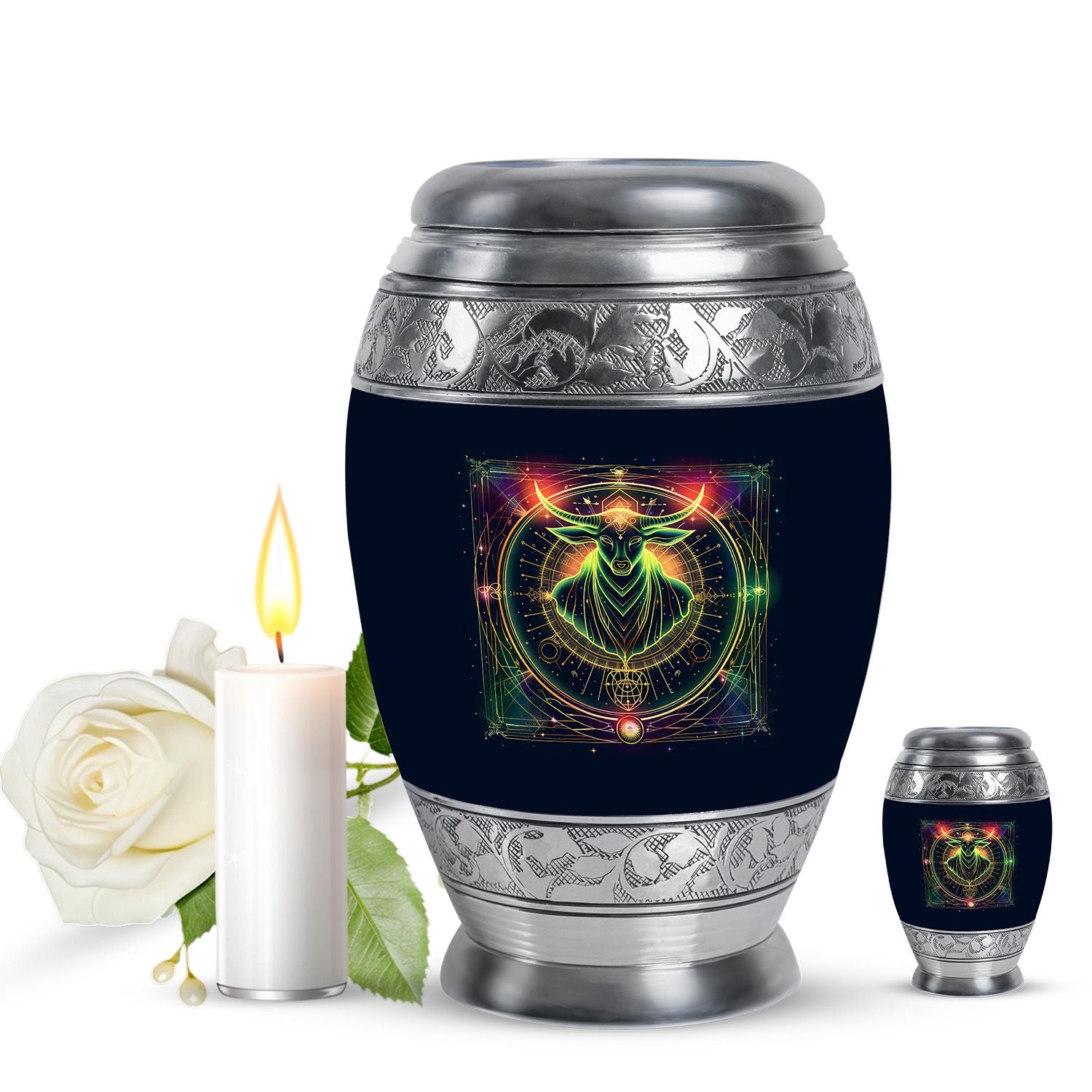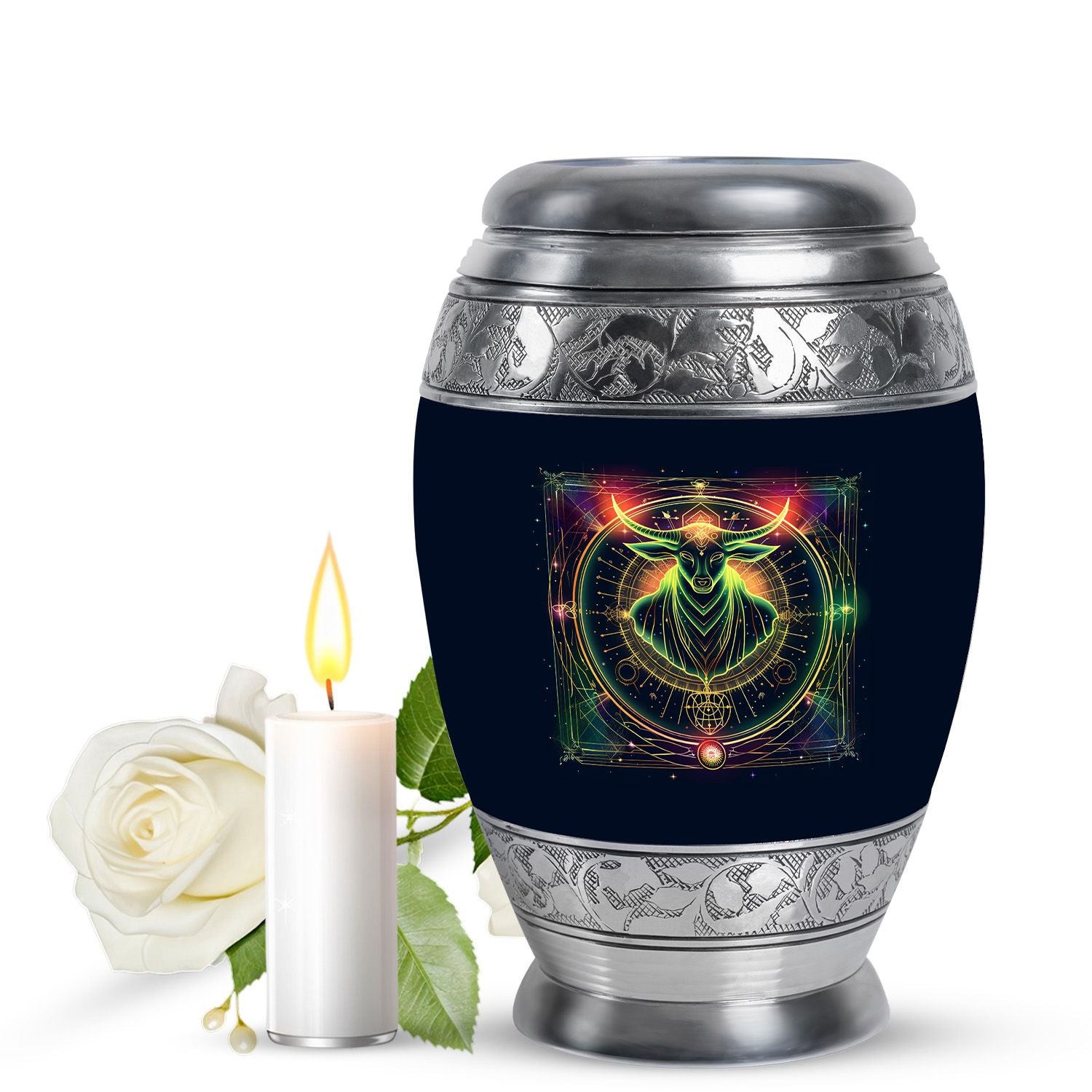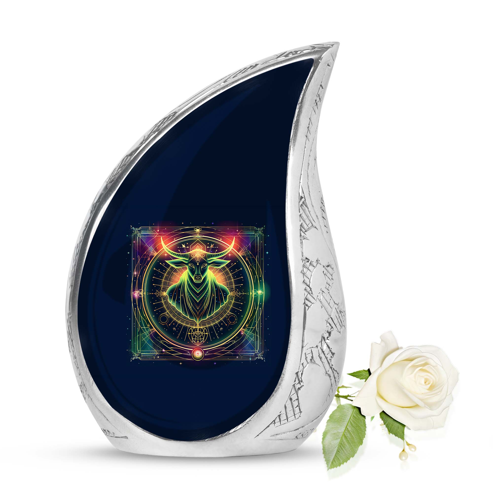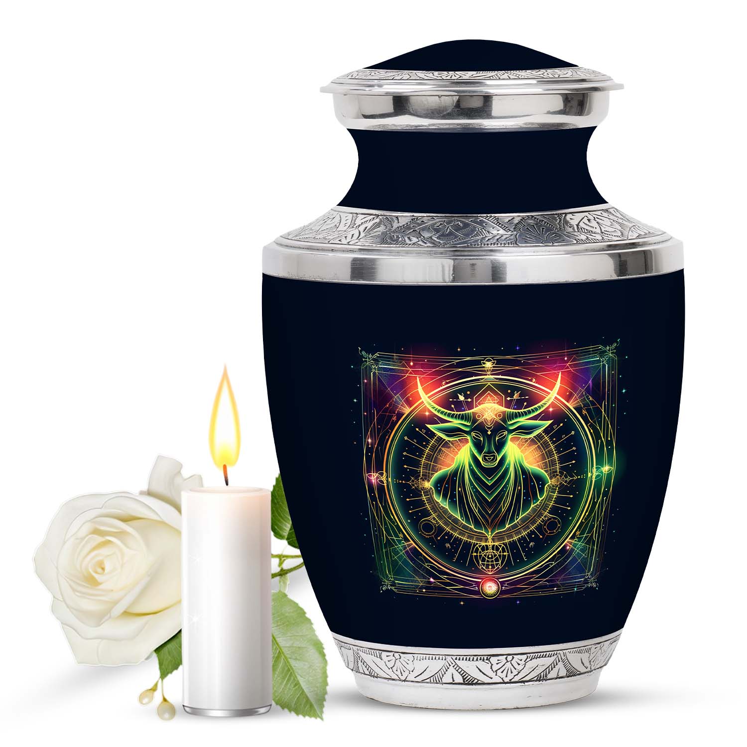 The Taurus zodiac symbolizes strength, loyalty, and grounding energy. This Taurus zodiac adult urn for ashes is a meaningful choice for honoring a beloved family member. Designed as both cremation urns for human ashes adult female and an adult male urn, it provides dignity and spiritual comfort in times of remembrance.