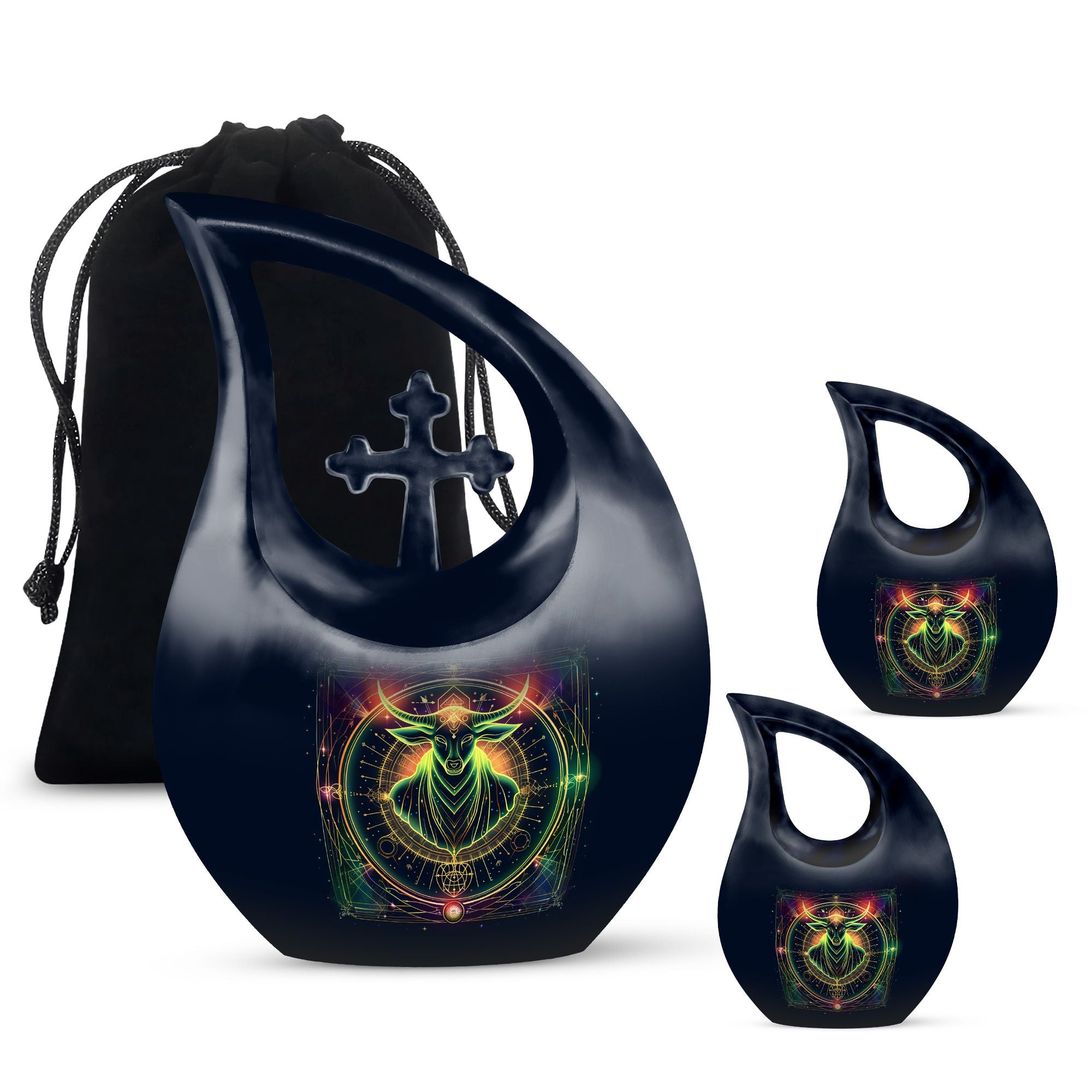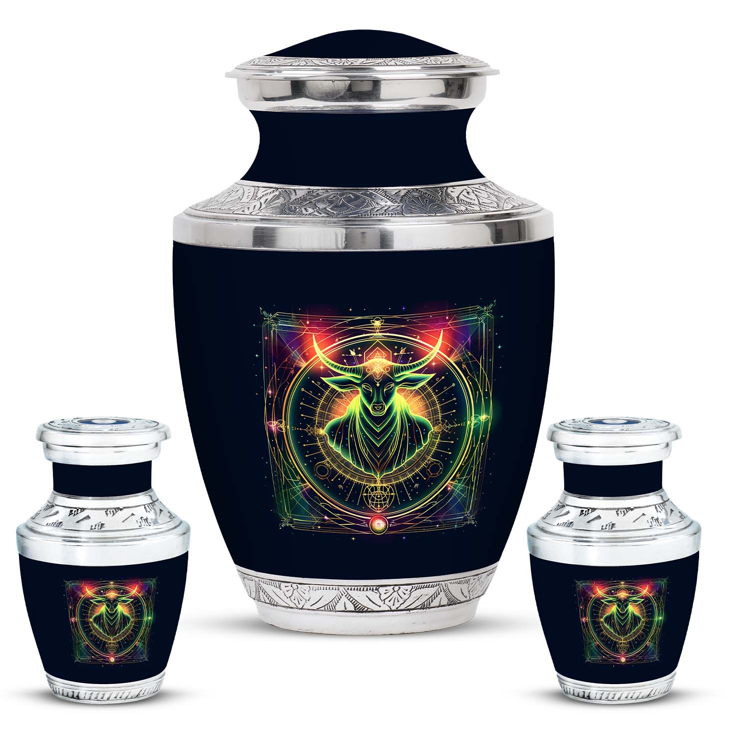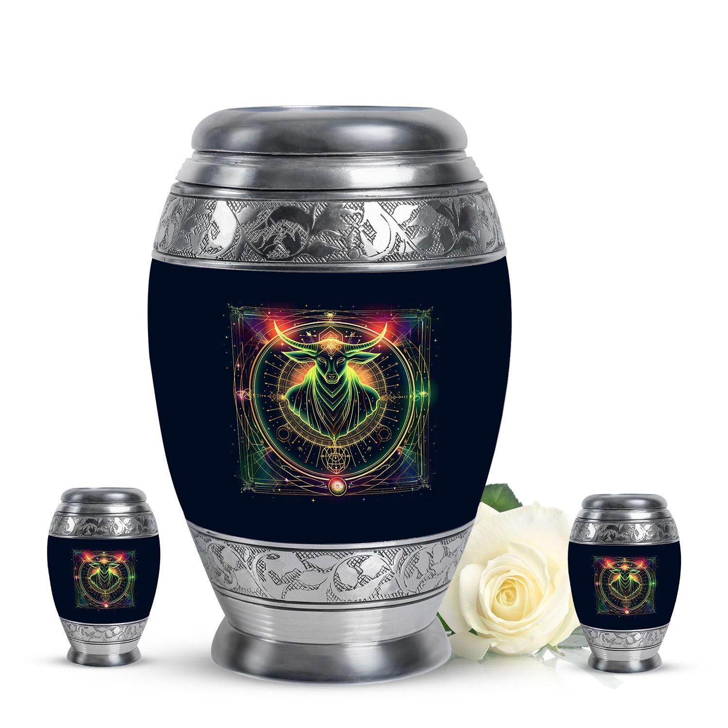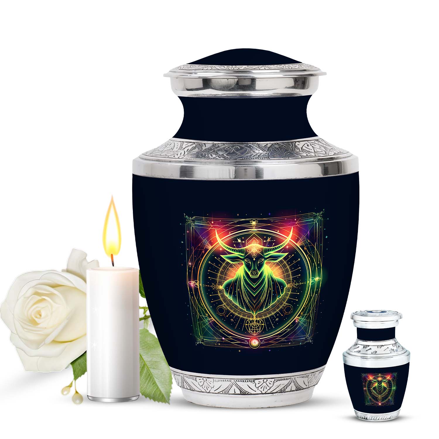 The Taurus zodiac symbolizes strength, loyalty, and grounding energy. This Taurus zodiac adult urn for ashes is a meaningful choice for honoring a beloved family member. Designed as both cremation urns for human ashes adult female and an adult male urn, it provides dignity and spiritual comfort in times of remembrance.