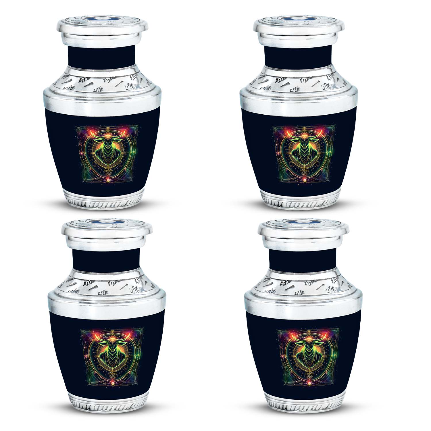 Crafted from durable aluminium, this urn for adult female ashes or urn for human ashes for men features an intricate Taurus design in a golden abstract finish. Its secure screw-top lid ensures ashes remain safe, while its generous capacity makes it suitable as large urns for human ashes adult male or urns for ashes adult female mother. This elegant piece offers lasting durability and beauty for display or burial.