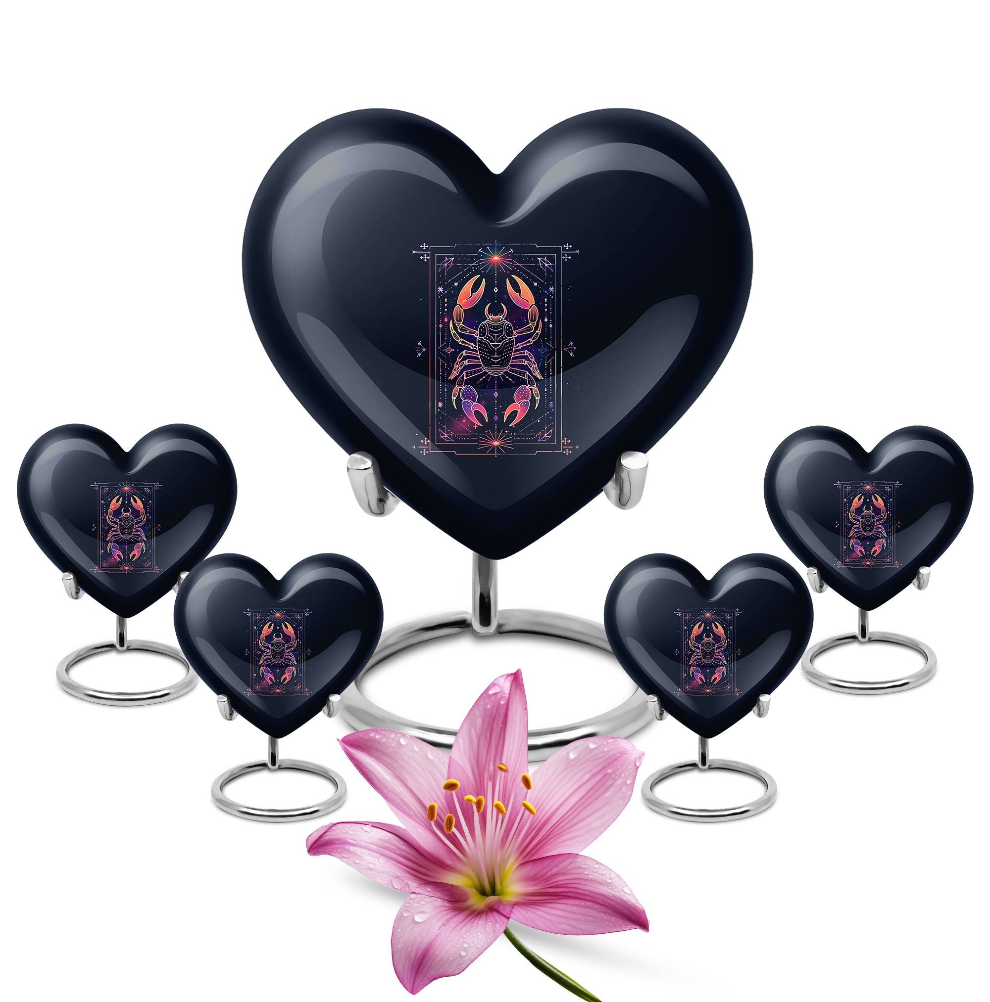 Honor the memory of your loved one with our 10 inch Zodiac Urn, a heart-shaped large urn carefully crafted with a unique abstract theme. Our cremation urn is designed for men and can elegantly house 200 cubic inches of ashes. The balanced weighting of 3.3 pounds and defined dimensions create a strong presence that resonates love and fond memories. Each urn is made from durable, high-quality Aluminum to ensure long-lasting preservation. The package includes a comforting velvet pouch, ideal for containment of ashes. For a more personal touch, our urns offer customization; you can choose to engrave names onto the urn, creating a meaningful centerpiece for memorabilia. Dive into the realm of spiritual solace through our memorial urns designed to provide peace and closure during difficult times. Ideal for the phrases 'burial urns for cremation ashes mother', 'urn ash funeral urn', 'shaped urn box', and 'funeral cremation urns'.