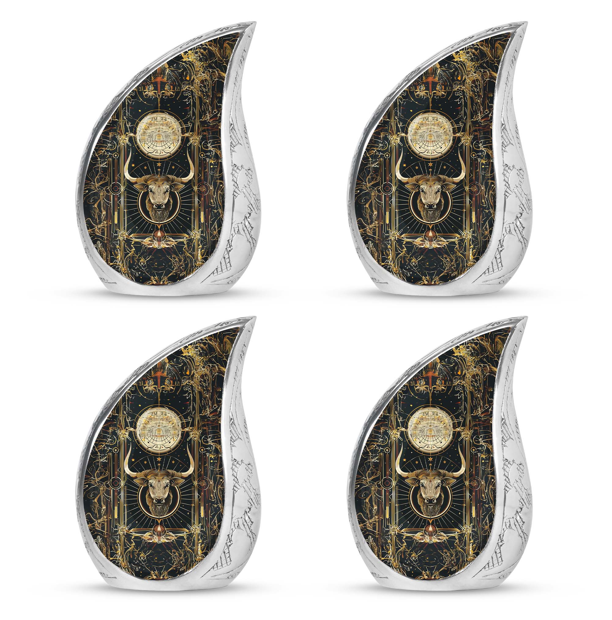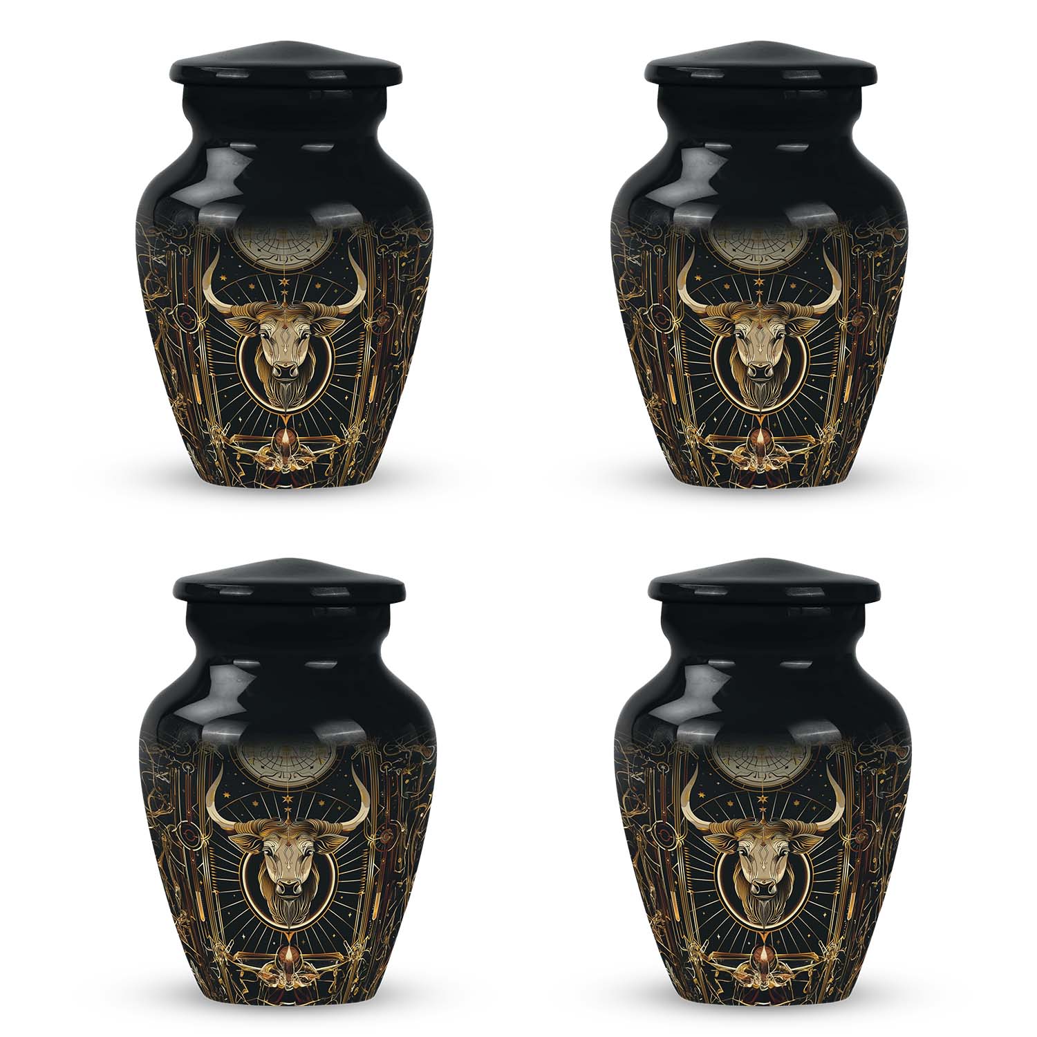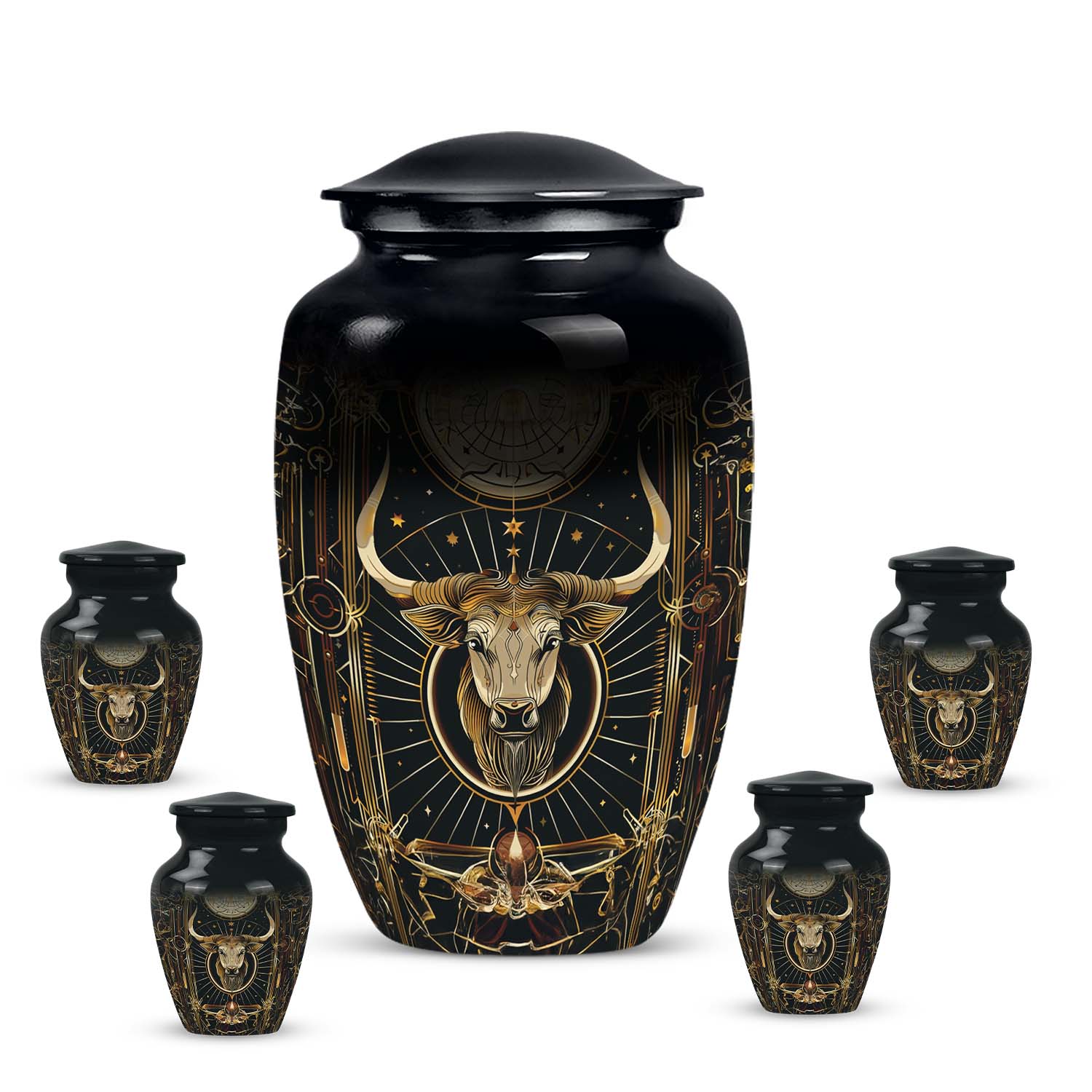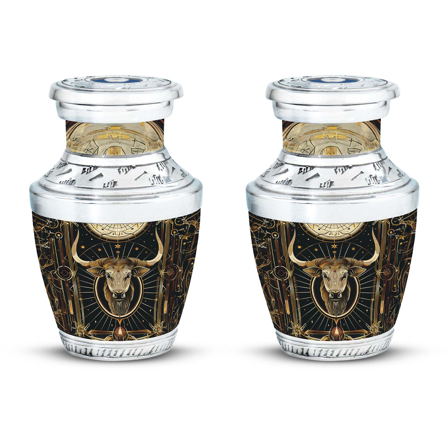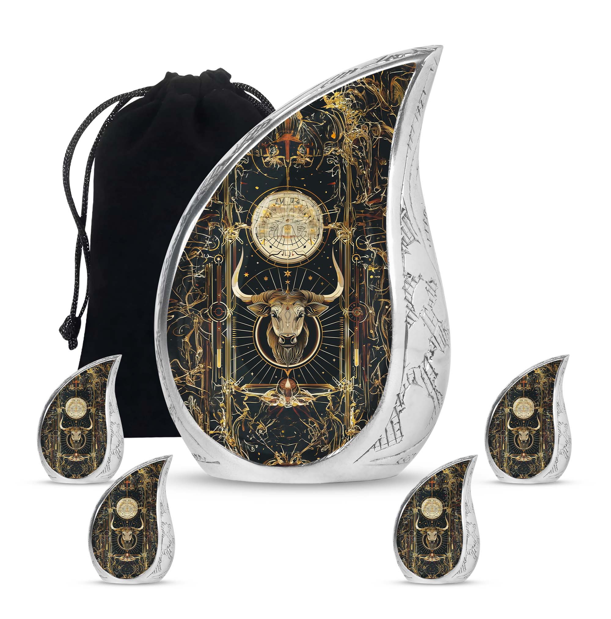 Made from durable aluminium, this cremation urn for women or men features a striking Taurus zodiac design that celebrates individuality while ensuring dignity. The secure screw-top lid preserves ashes safely, making it suitable as burial urns urn for ashes for women, mens urns for human ashes, or as a burial urn men would be honored to rest in. Its versatile design ensures it complements both funeral urns women and funeral urns men with elegance.
