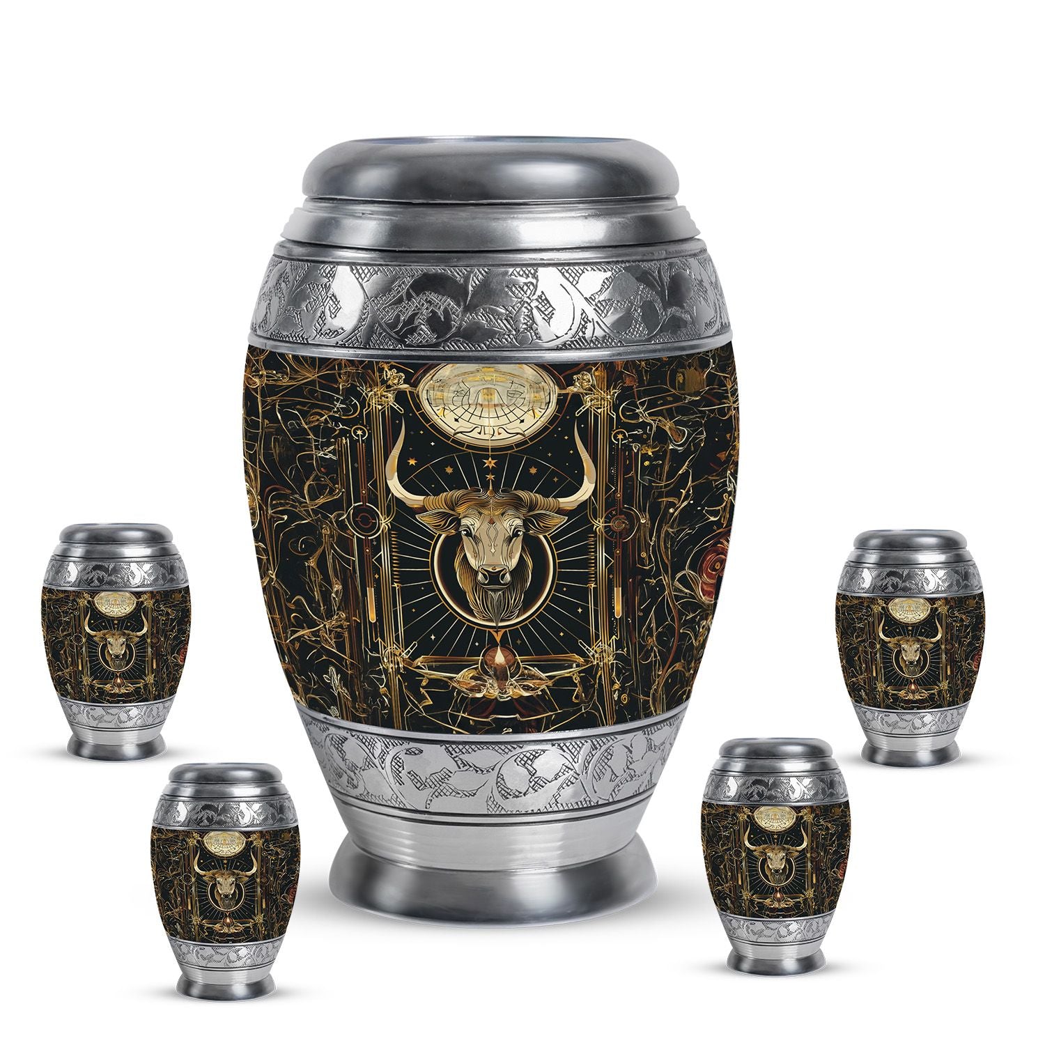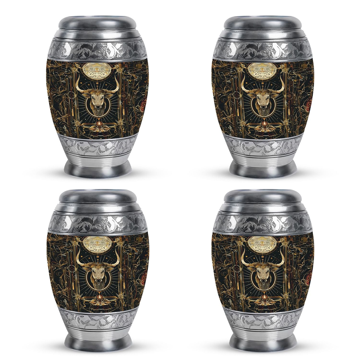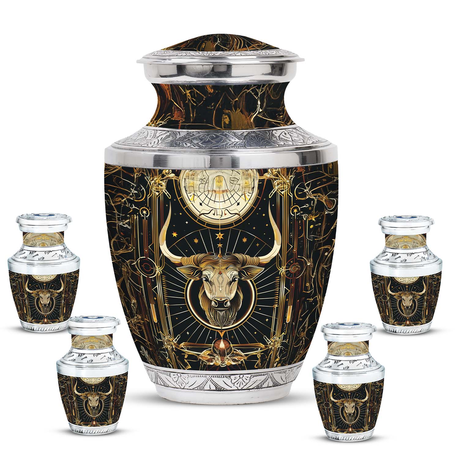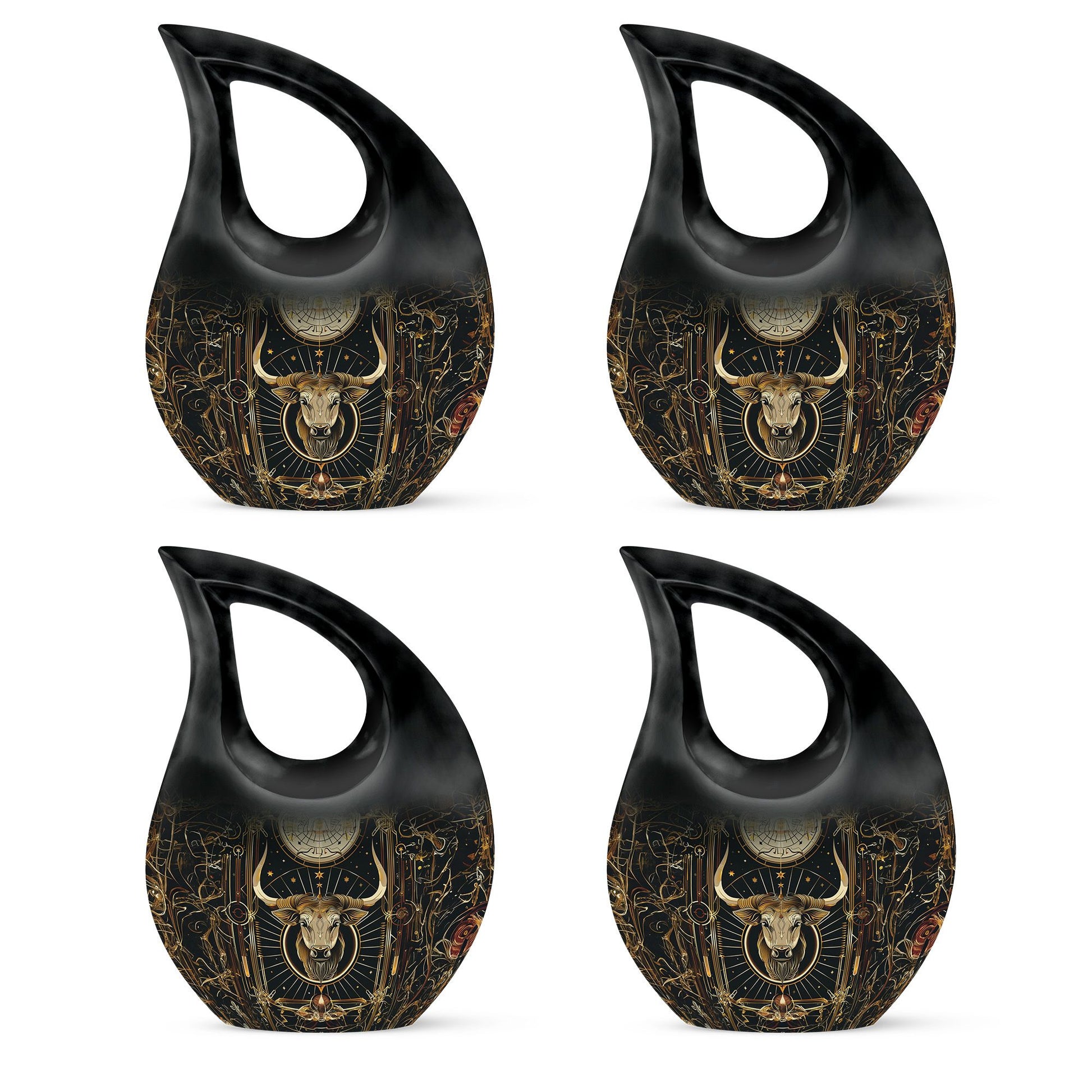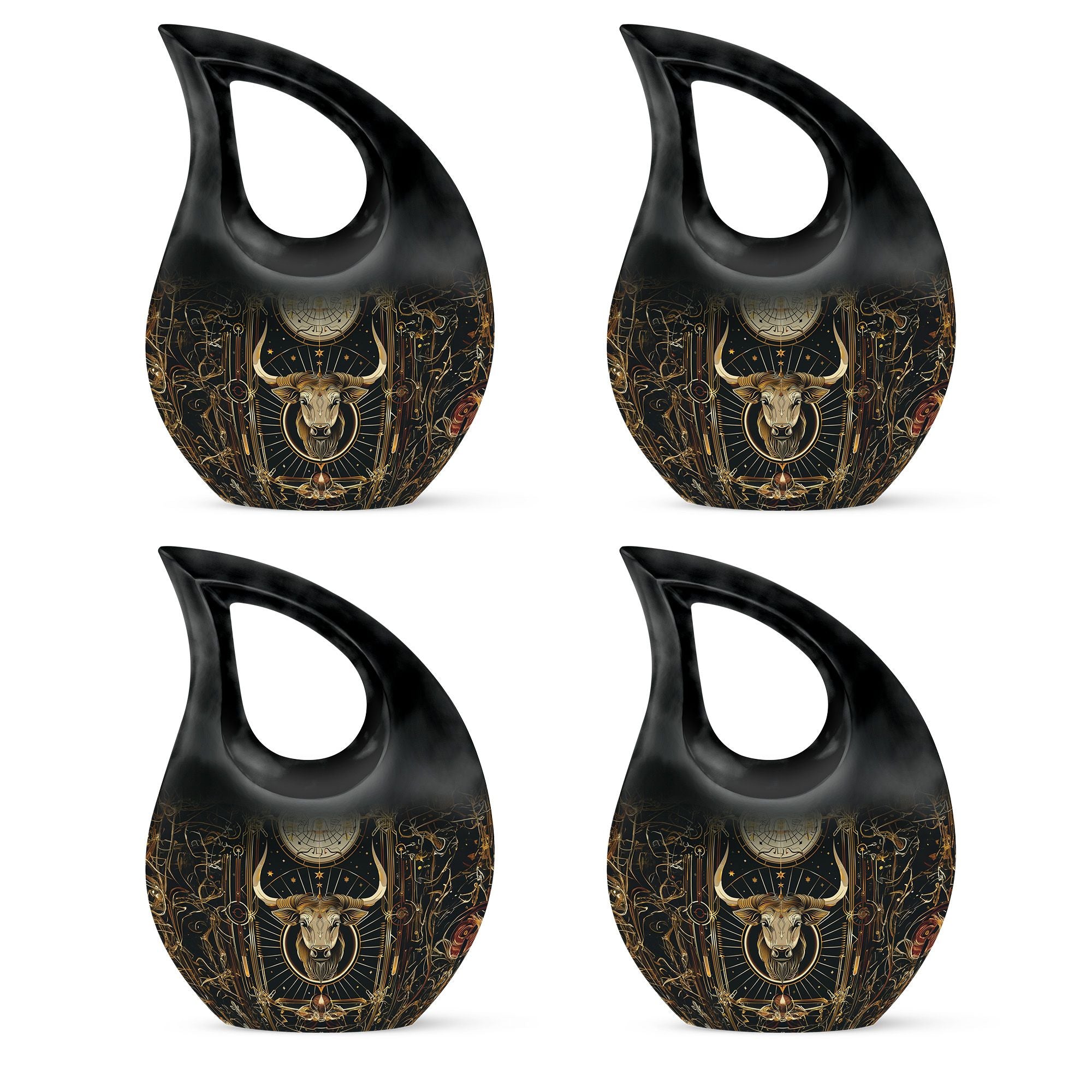 Made from durable aluminium, this cremation urn for women or men features a striking Taurus zodiac design that celebrates individuality while ensuring dignity. The secure screw-top lid preserves ashes safely, making it suitable as burial urns urn for ashes for women, mens urns for human ashes, or as a burial urn men would be honored to rest in. Its versatile design ensures it complements both funeral urns women and funeral urns men with elegance.