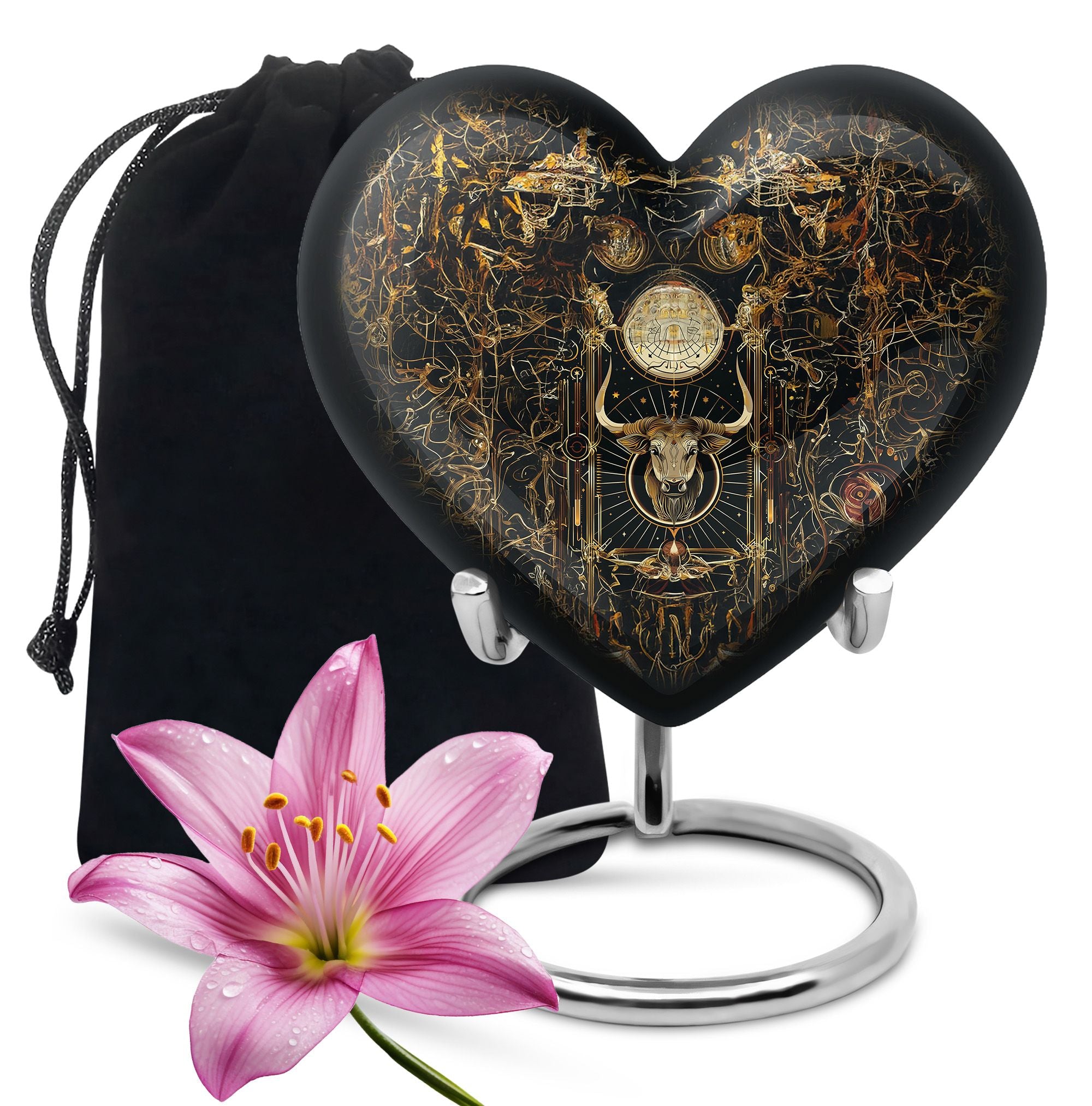 With its zodiac-inspired design, this urn reflects both personal identity and eternal love, making it a cherished choice among adult burial urns and cremation keepsakes.