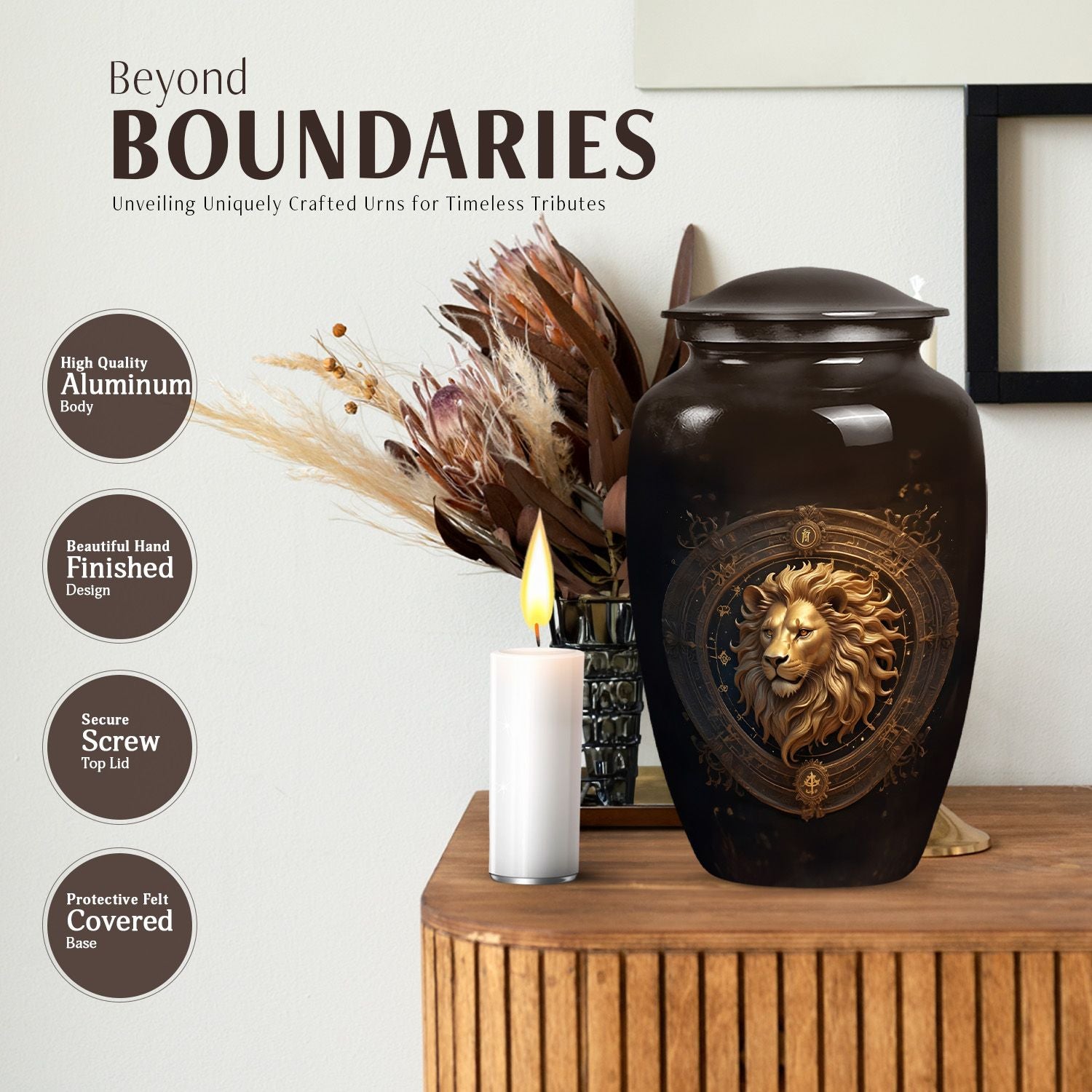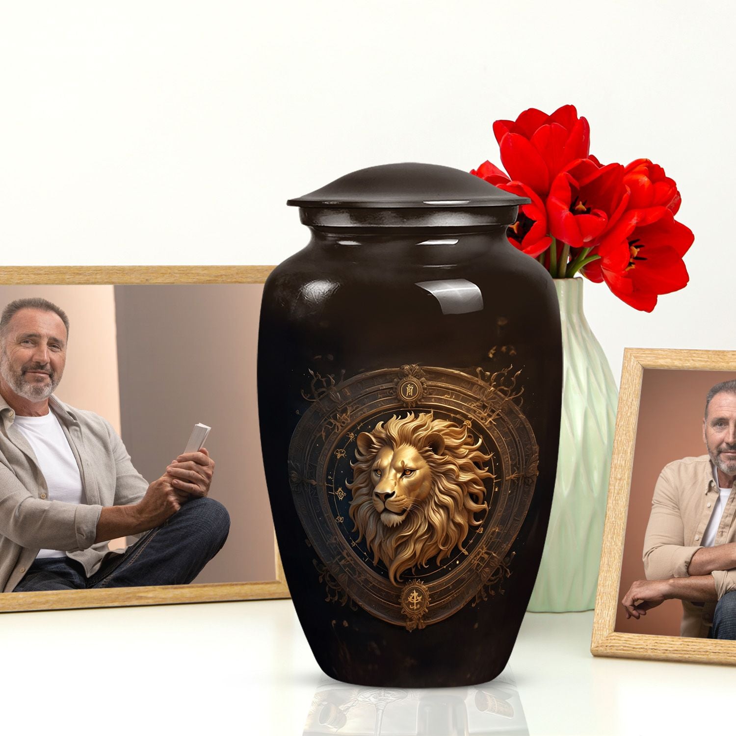 Cap your loved one's memory in a celestial-themed Zodiac Urn, an eminent design in our collection of memorial urns. Handcrafted with reverence, this 10 inch, aluminum large urn weighs a light 3.3 pounds and polestars a soothing zodiac embodiment. Its classic urn stature is spacious enough to comfortably hold up to 200 cubic inches of ashes, ideal for commemorating the lives of adult loved ones. Immerse in the personalization experience by engraving names to truly embody the unique spirit of those departed. The urn comes with an elegant velvet pouch, ensuring a dignified containment of the treasured ashes. Whether you are seeking 'cremation personalized urns for human ashes adult', 'ash adult urn human ash adult', 'burial cremation urn', or 'cremation urns medium size', this zodiac urn seizes the heavenly aura of remembrance and tribute. Perfect choice for those searching for memorial urns for mom and speak volumes of cherished memories.