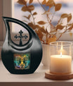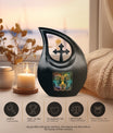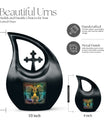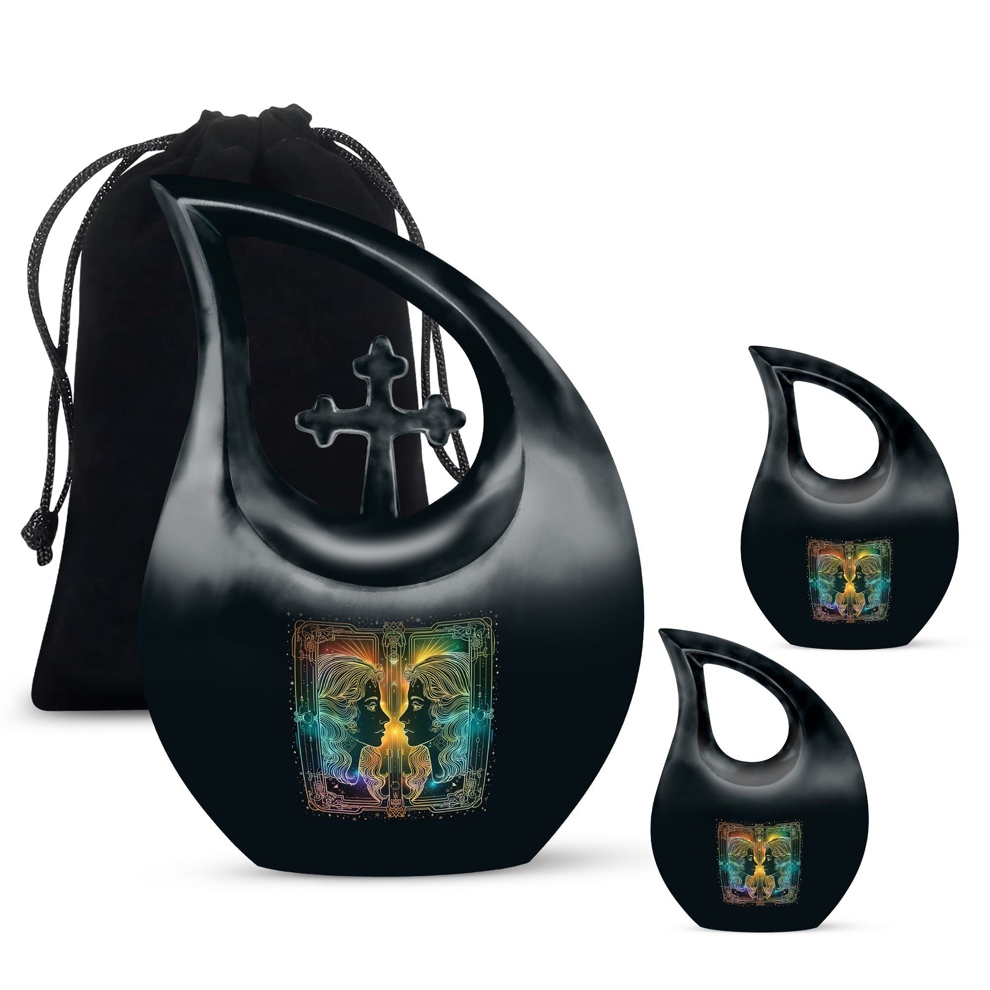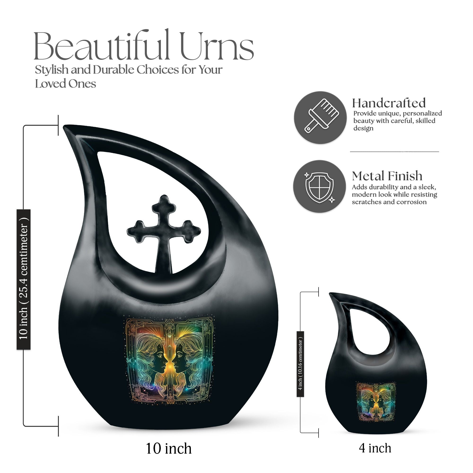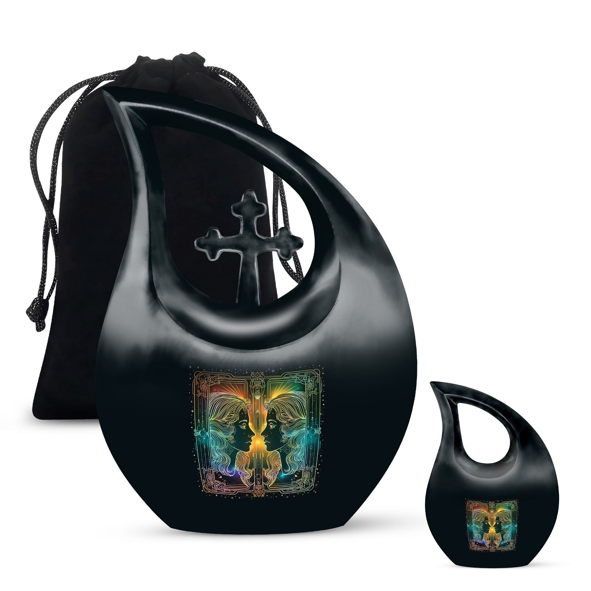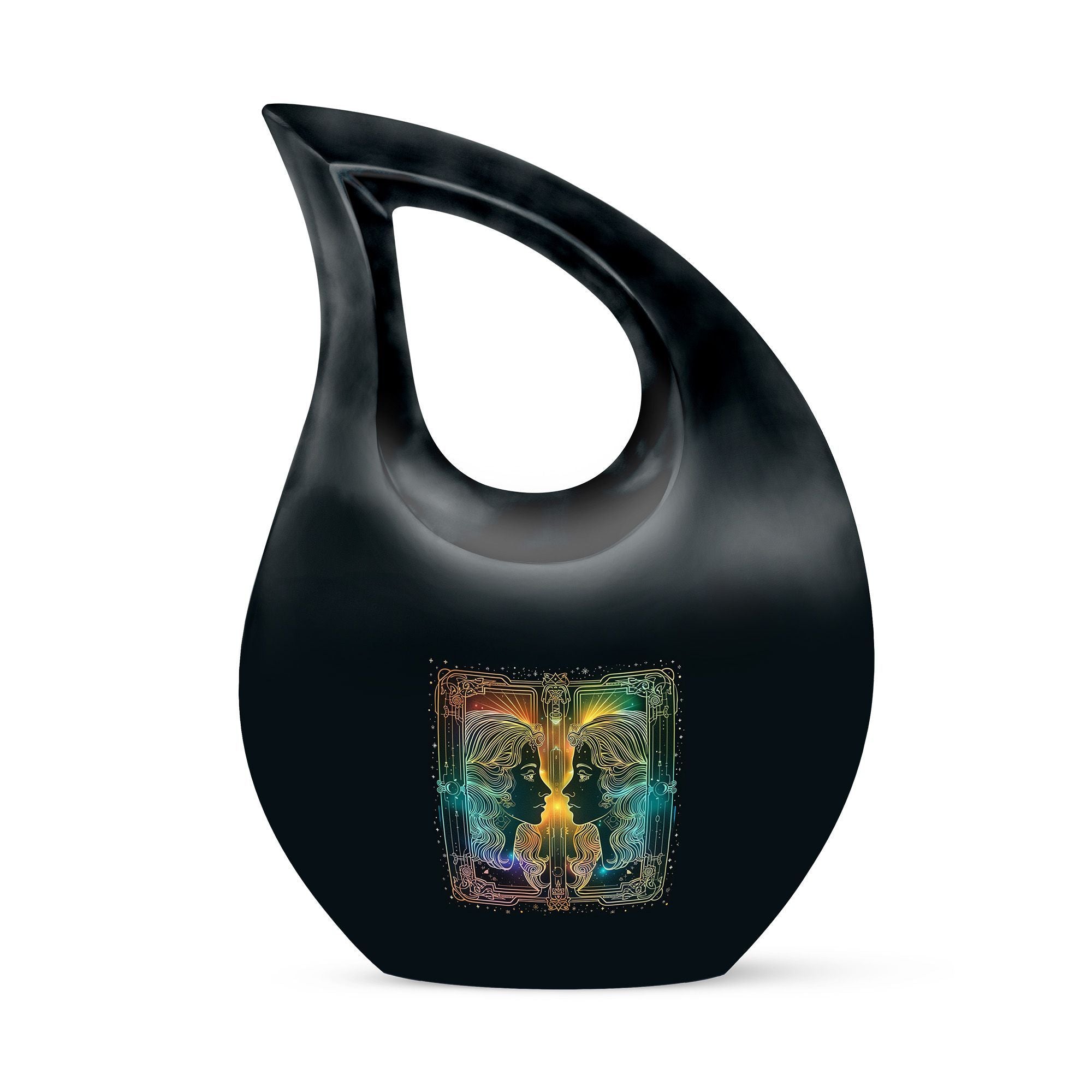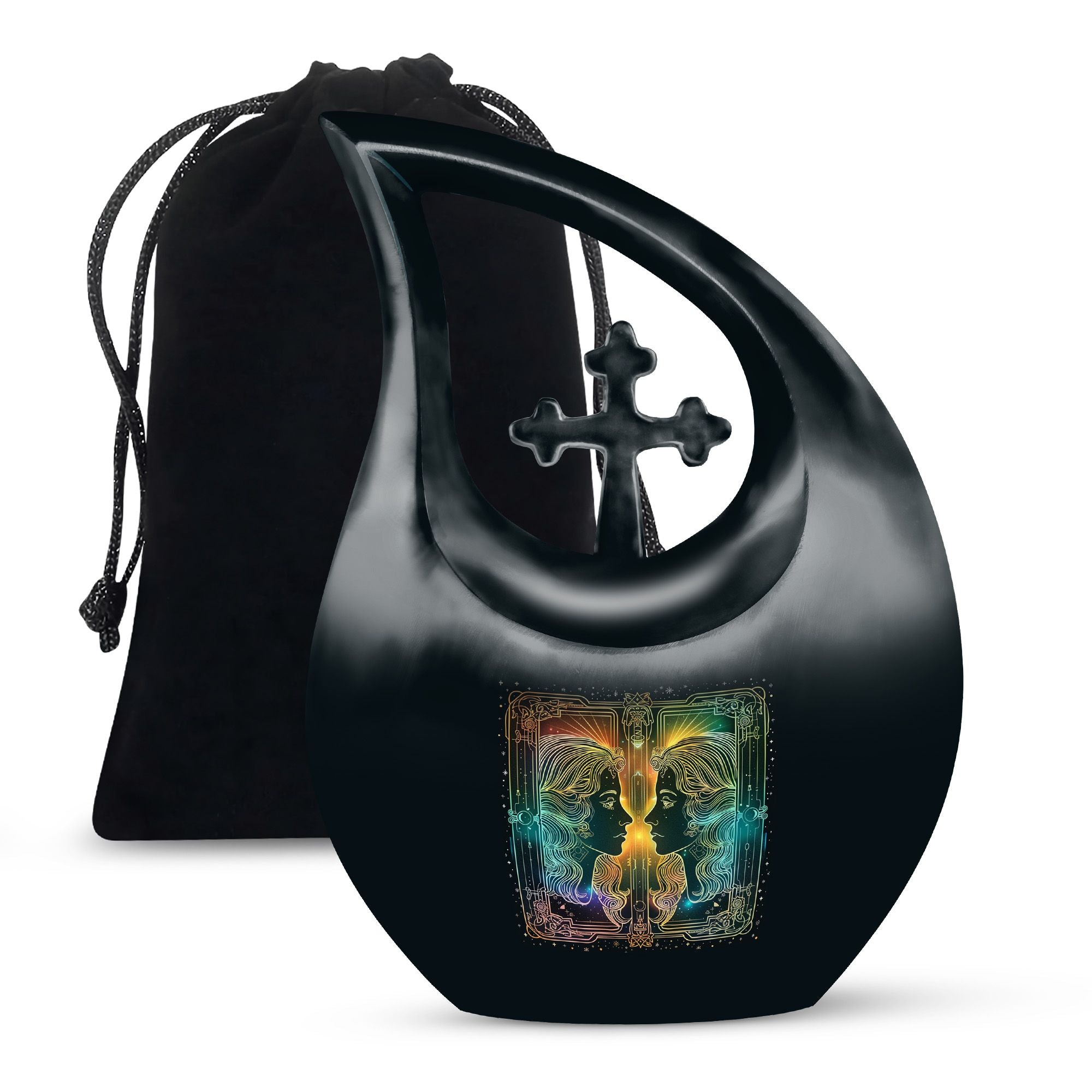 Immerse in commemoration with our impeccable, Zodiac-themed Cross Drop urn. Crafted from high-quality aluminium, this 10-inch large urn is meticulously designed for cherished loved ones. Its 200 cubic inch capacity can gracefully hold the ashes, safely enclosed in the complimentary velvet pouch provided. The 3.3-pound urn stands firm, marking an enduring tribute. Add a personal touch with our customization options - engrave your loved one's names onto the urn, making your memento even more special. The urn's Cross Drop theme reflects a serene space, resonating with those seeking solace. Our urn resonates with keywords such as 'Zodiac Urn', 'Cremation Containers', 'Best Urns For Ashes', 'Personalized Urns For Ashes', 'Burial Urns', and 'Cremation Boxes', establishing it as an optimal choice for memorial urns. Venture into an unforgettable homage to your loved ones with our honorary urn.