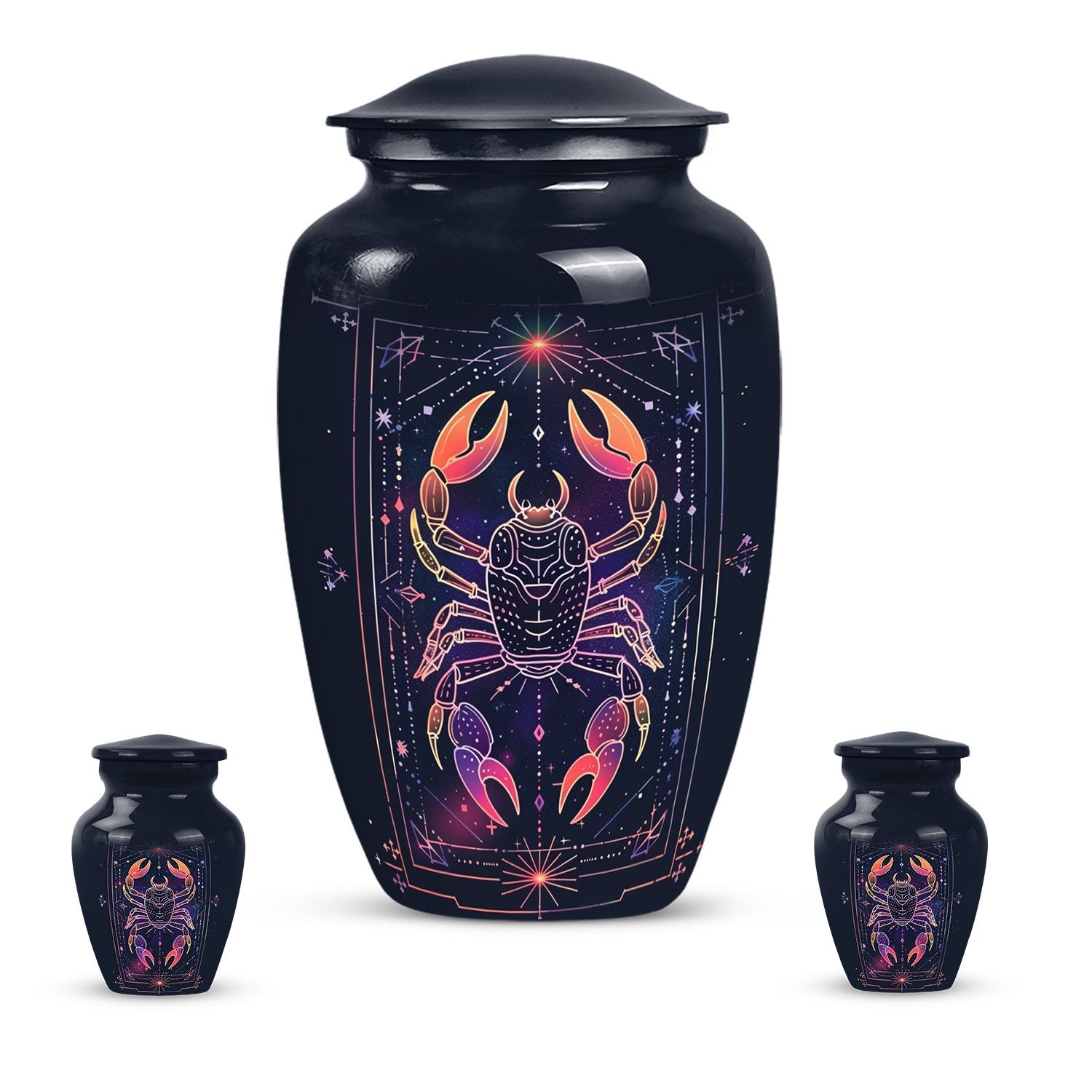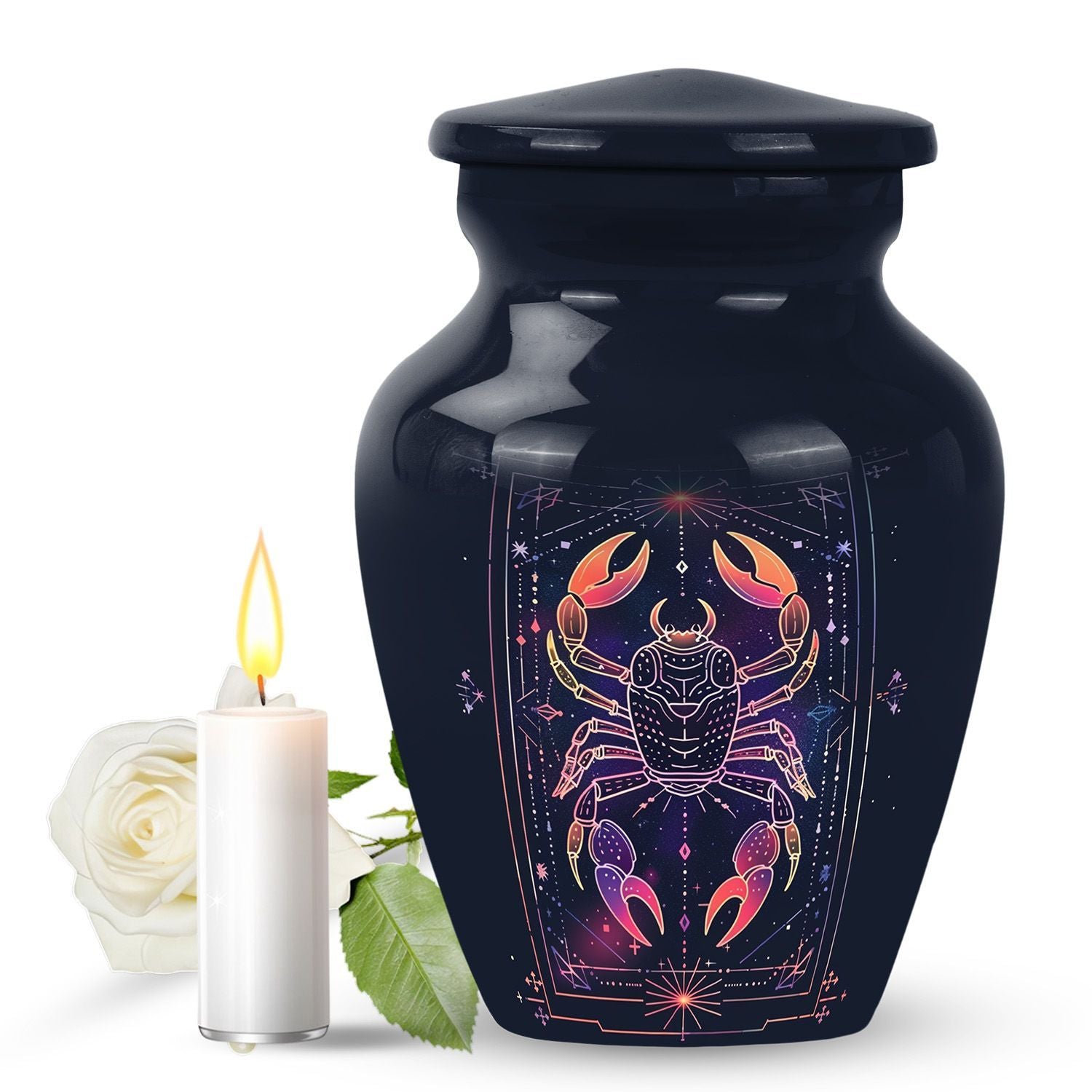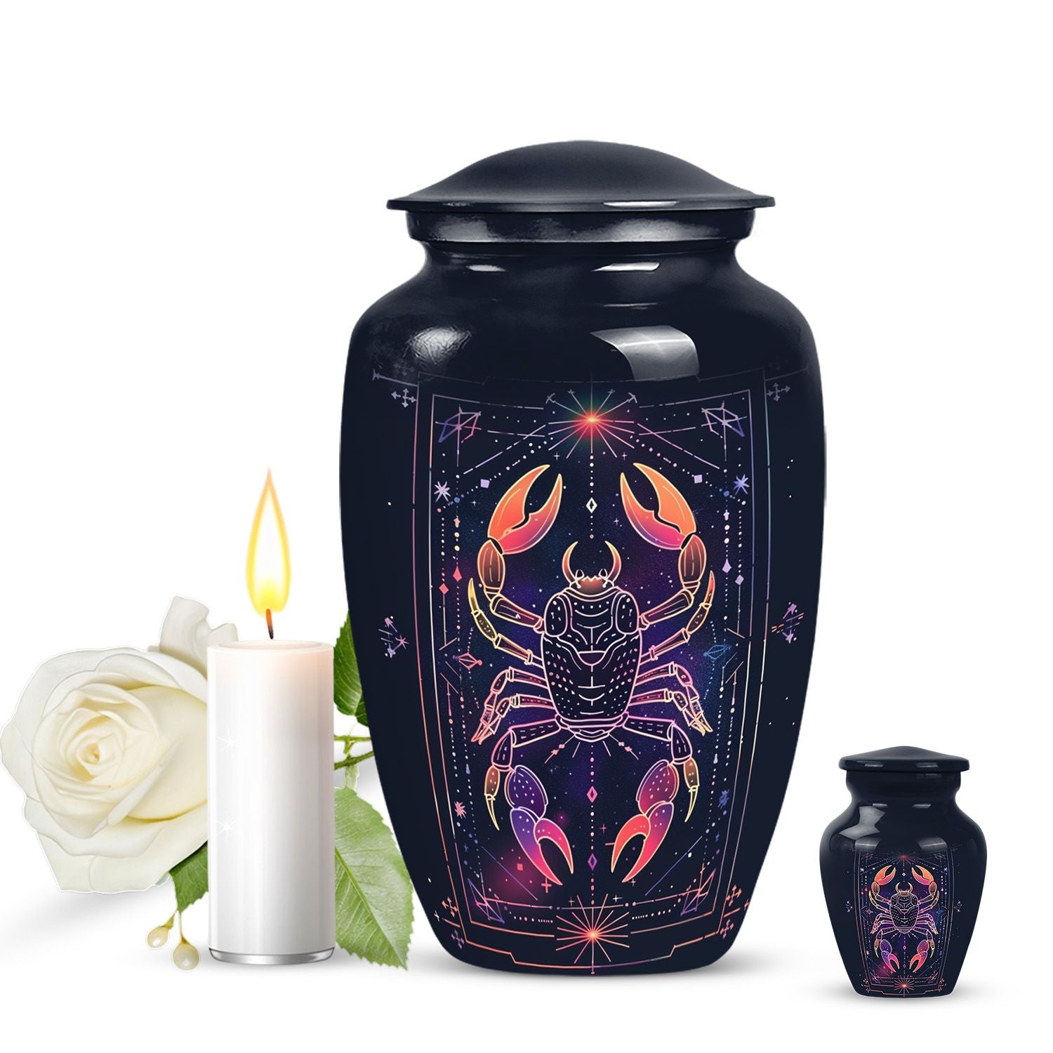 Poise and precision characterize this classically crafted 10-inch Abstract-themed Large Urn, an outstanding choice for commemorating a loved one. This 'Zodiac Urn,' a perfect epitome of memorable cremation urns for men, is intricately constructed from high-quality Aluminium. It measures a substantial 10 inches in height and weighs 3.3 pounds. Aptly suitable for a distinctive place in your heart and home, it has a capacity that can house up to 200 cubic inches of cremation ashes. The urn elegantly embodies an 'Abstract' theme, reflecting resonating qualities of unique originality. This comprehensive package also includes a velvet pouch, elegantly designed to secure the cherished remains. As a memorable tribute, you have the option to personalize the urn with engraved names, providing a sense of closeness and connection. Whether it's for 'burial urns for cremation ashes mother,' 'urn ash funeral urn,' or 'shaped urn box,' this product signifies a noble rememberance. Searching for 'funeral cremation urns' will guide you right to this adored symbol of memorial.