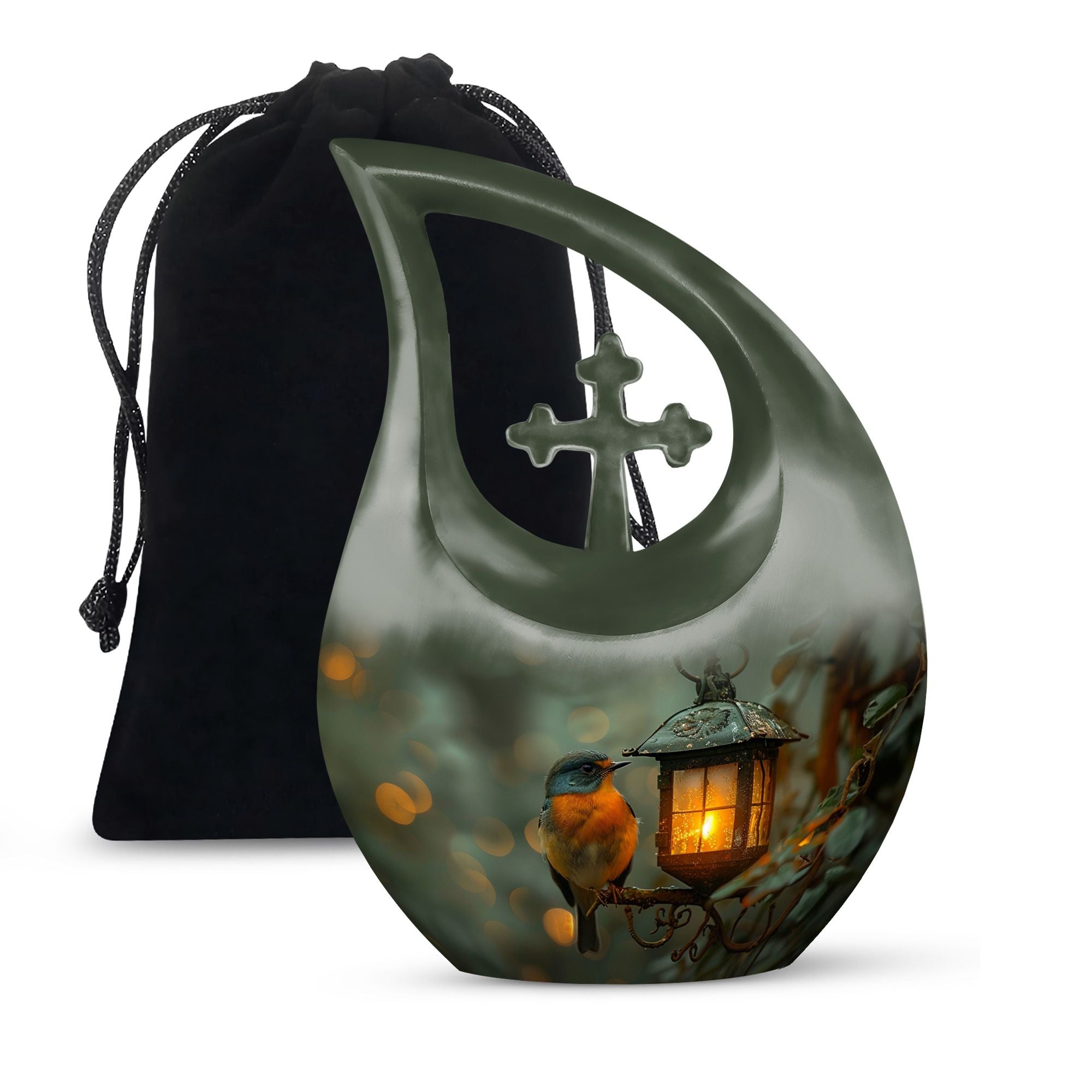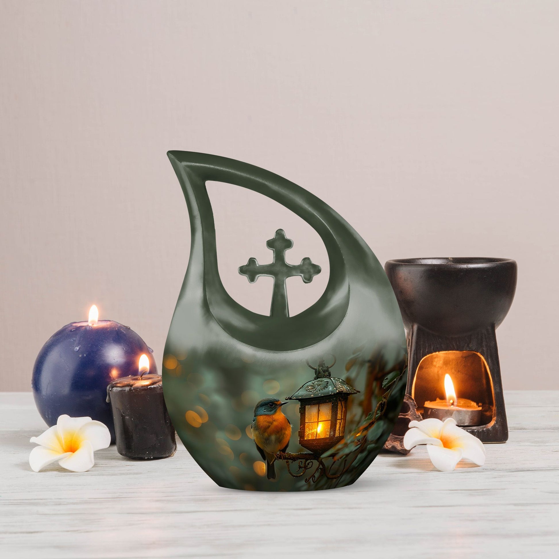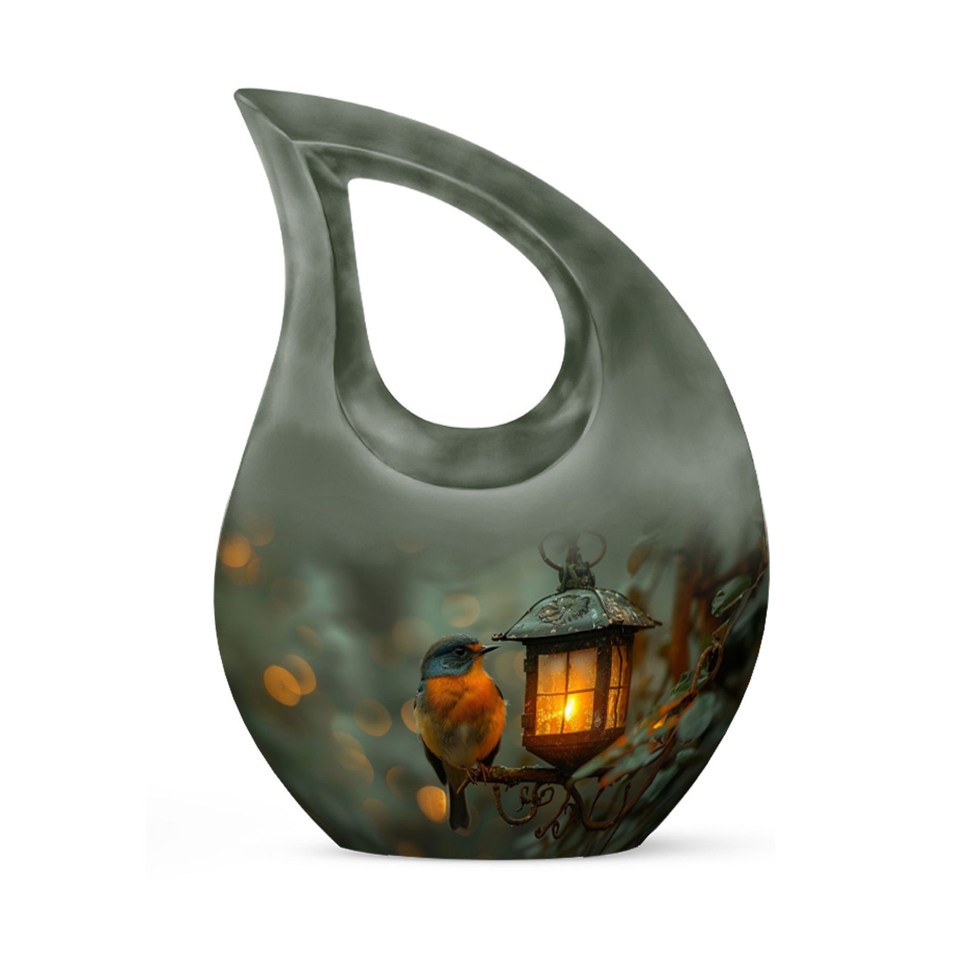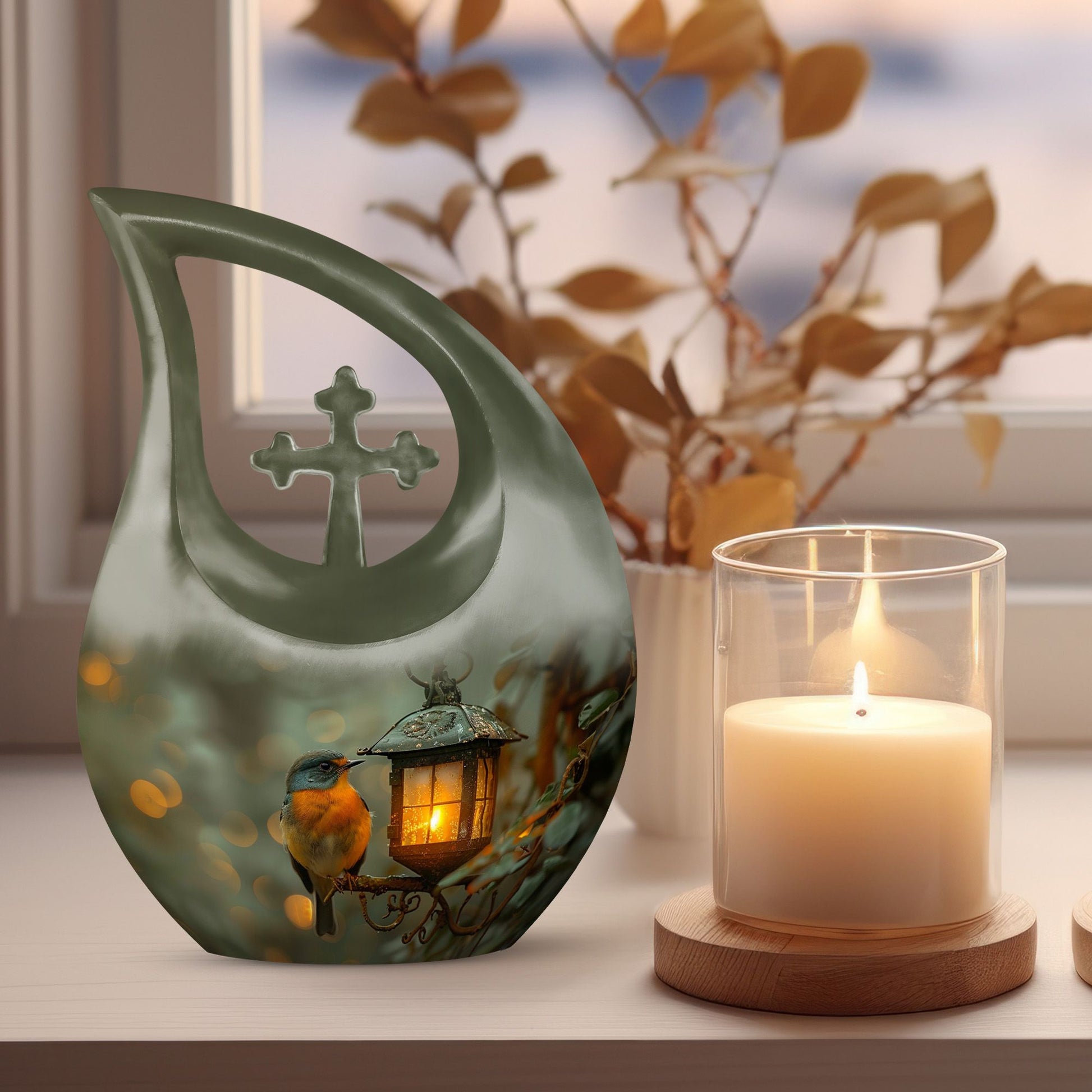 This Bird Memorial Urn for Cremation offers a serene, symbolic tribute for honoring a loved one. With its gentle lamp-inspired artwork and peaceful bird motif, it serves as a meaningful Bird Memorial Urn For Cremation and brings warmth, comfort, and remembrance to any memorial space.