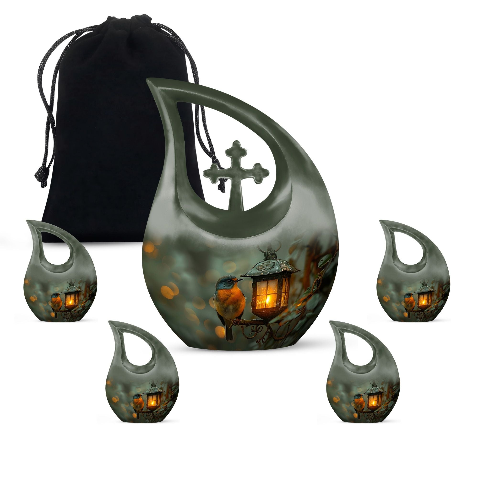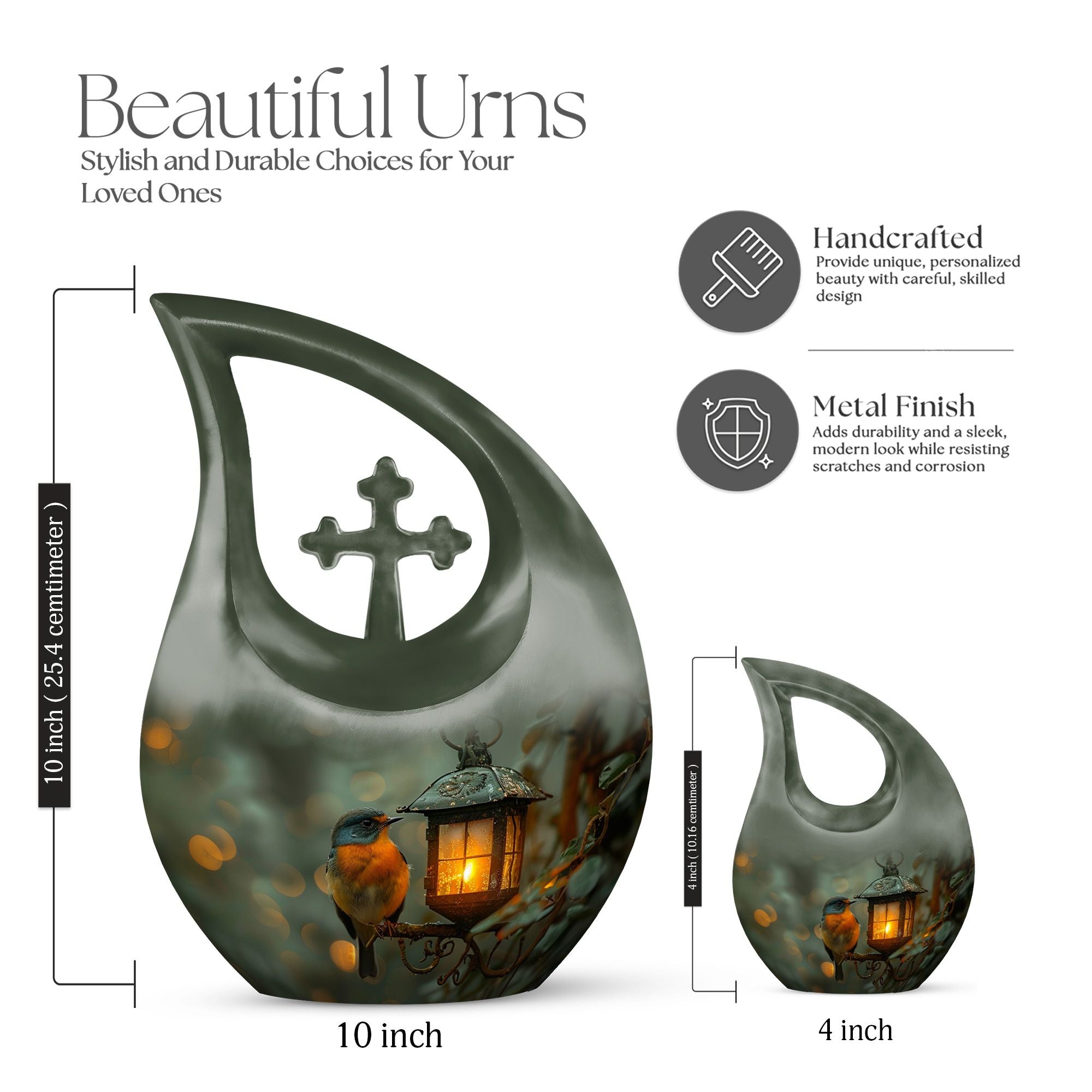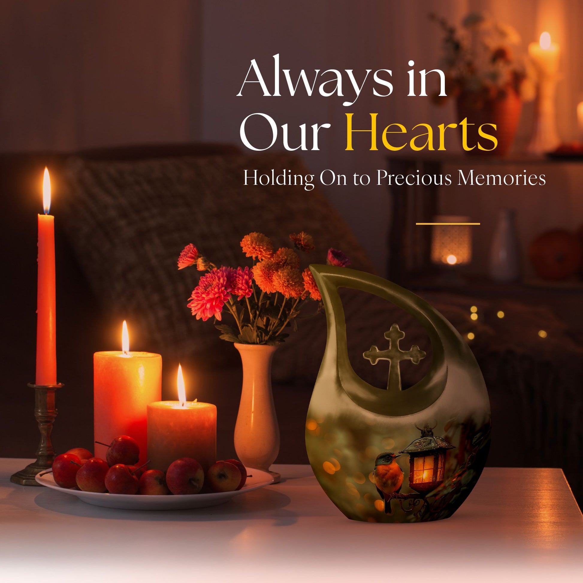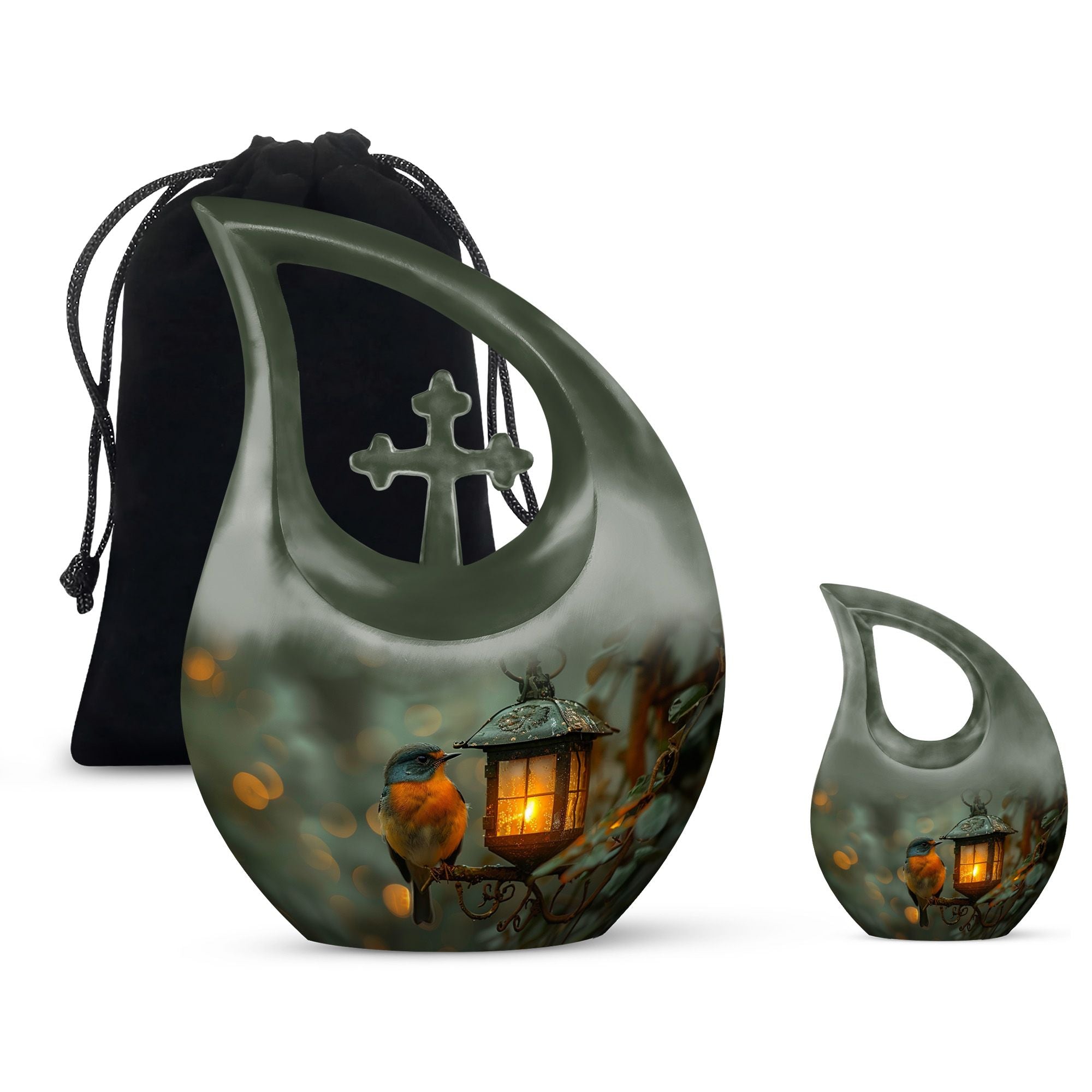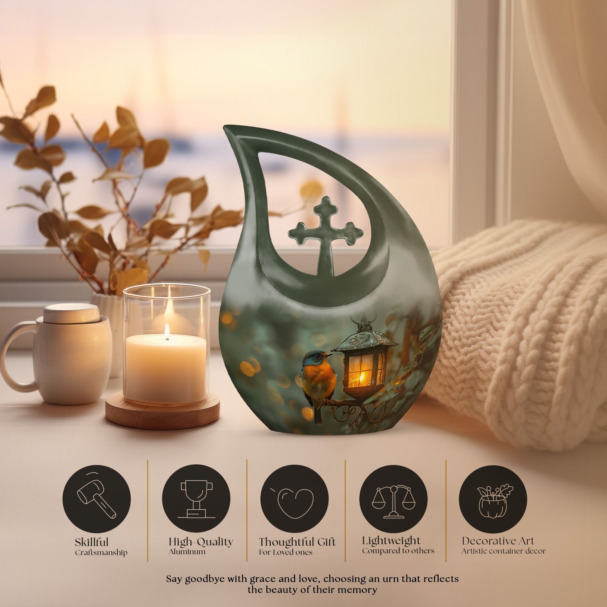 This Bird Memorial Urn for Cremation offers a serene, symbolic tribute for honoring a loved one. With its gentle lamp-inspired artwork and peaceful bird motif, it serves as a meaningful Bird Memorial Urn For Cremation and brings warmth, comfort, and remembrance to any memorial space.