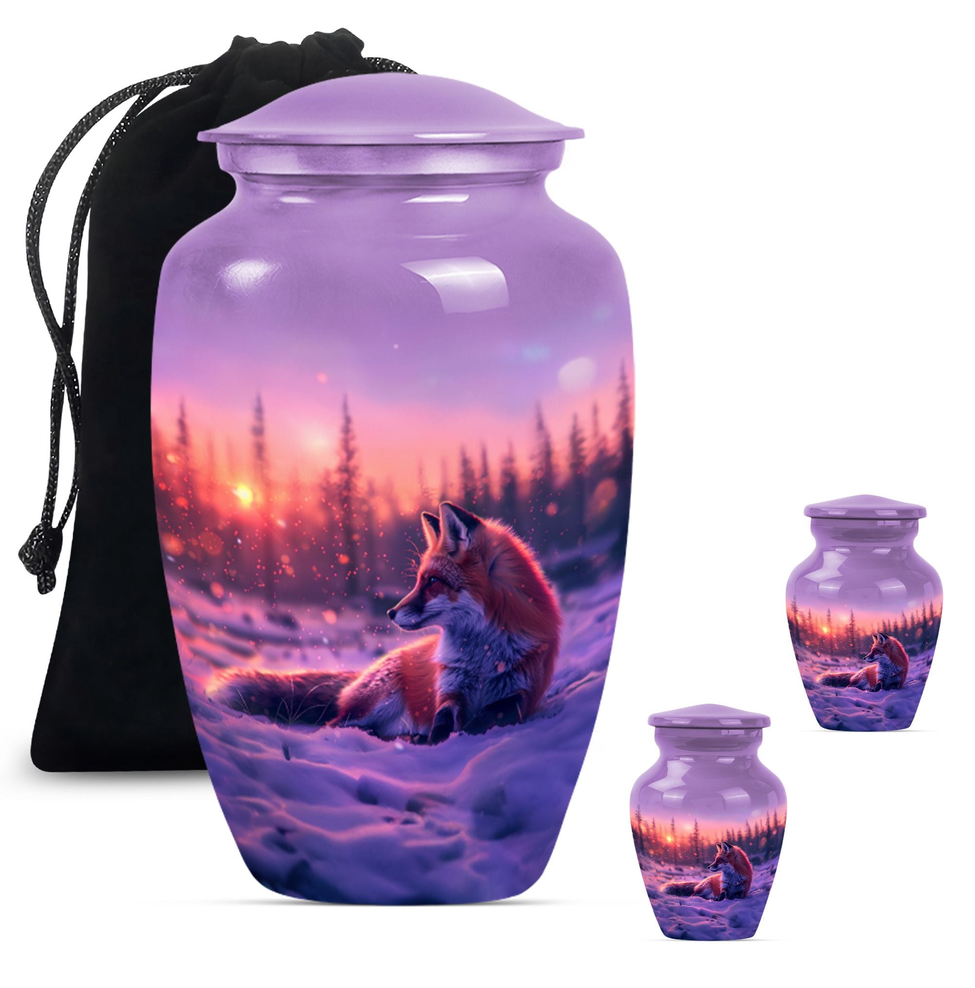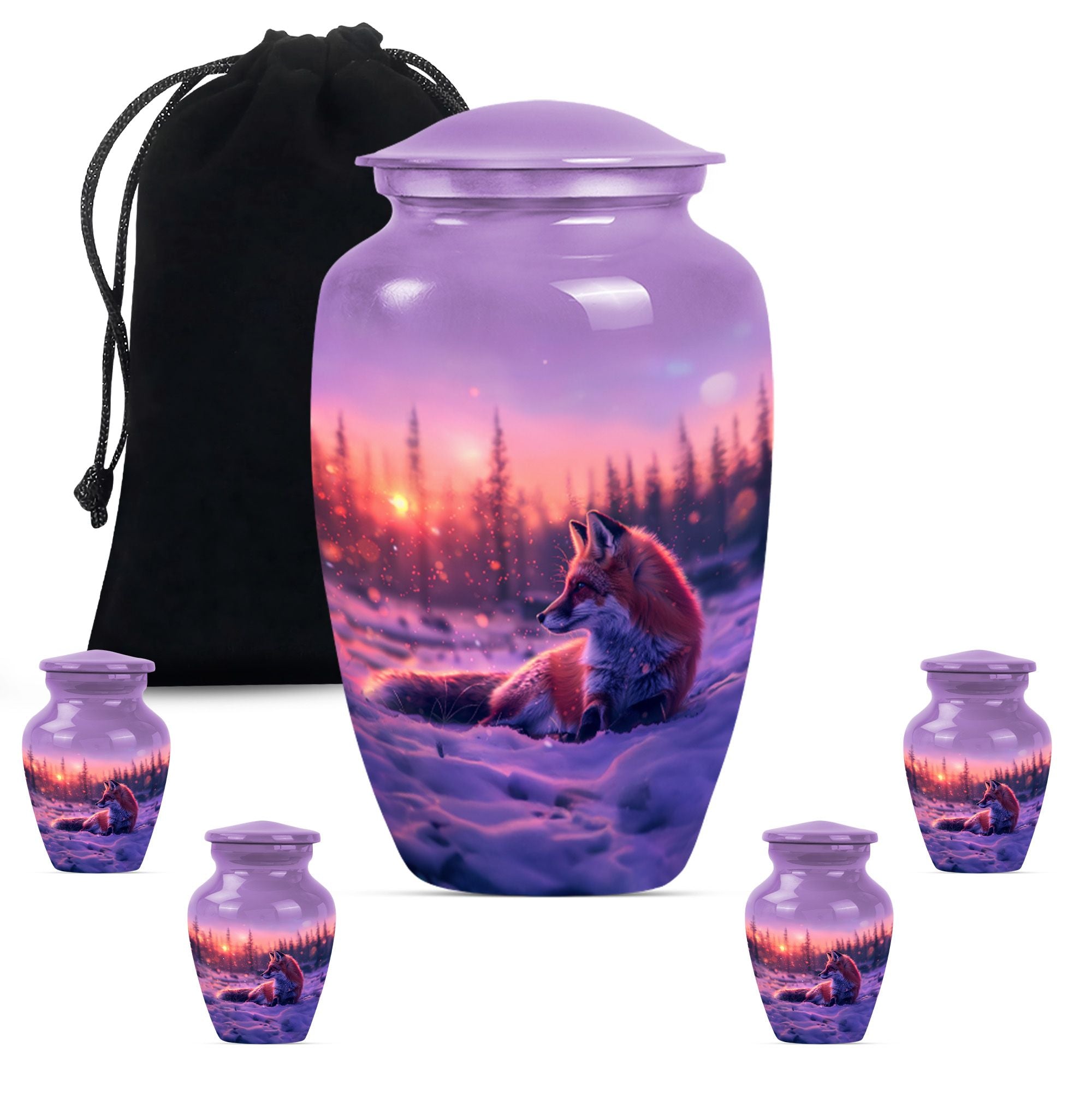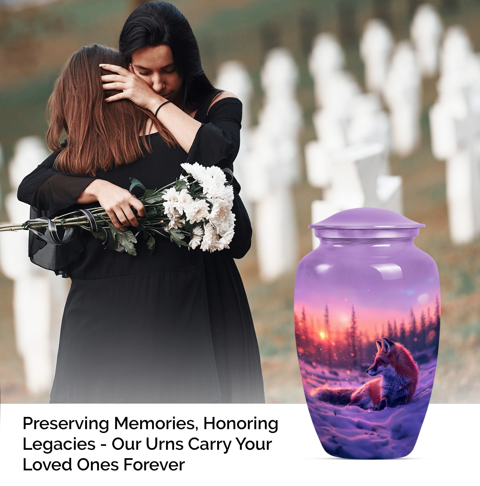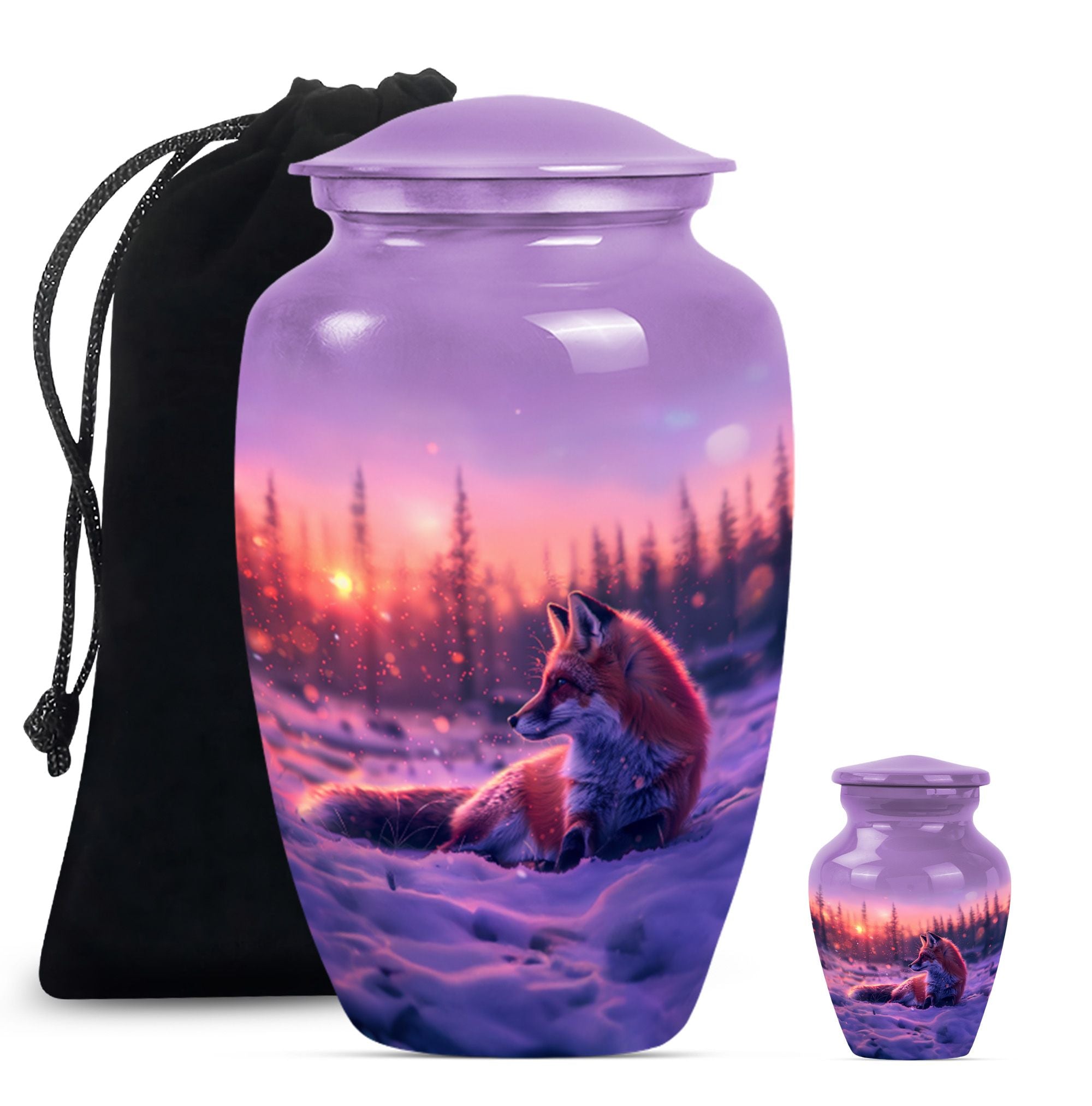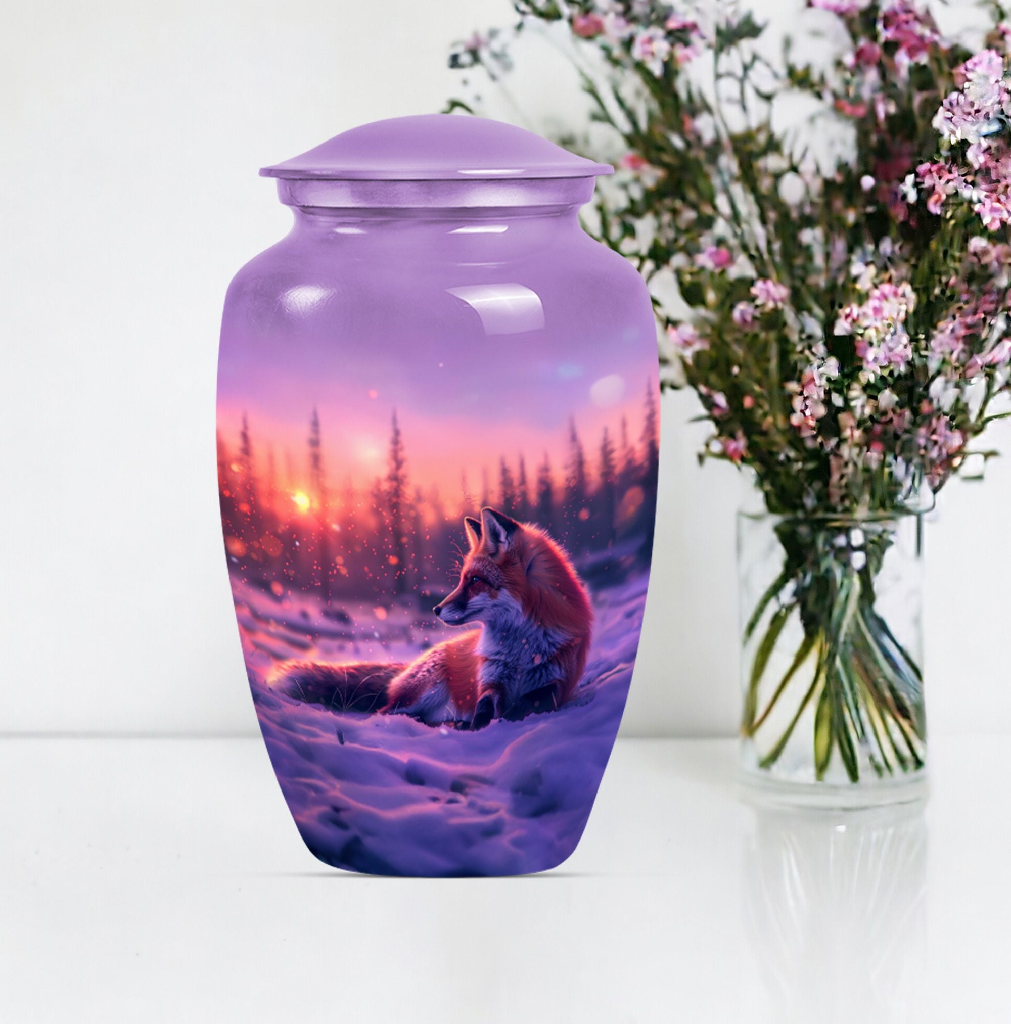 Embrace the significant symbolism of the butterfly with this beautifully designed, 10-inch fox Urn. Holding an impressive 200 cubic inches, this large urn serves as the perfect resting place for the dearly departed, ensuring their memory endures in the hearts of their loved ones. Crafted with precision using high-quality Aluminium, this cremation urn for human ashes weighs a sturdy 3.3 pounds and prides in its durability and longevity. We encourage you to make this urn uniquely special through our customization service; personalize with engraved names. Its gorgeous design is enhanced by a velvet pouch included in the package, providing further elegance and an additional layer of containment and protection for the ashes. As a prominent choice in memorial urns, our urn serves as a loving tribute blending both strength and tenderness, resonating perfectly with the target audience looking for funeral urns for women, funeral urns ashes, metal, and cremation urns for men. The presence of our fox Urn in your home will serve as a constant reminder of treasured memories and unwavering bonds.
