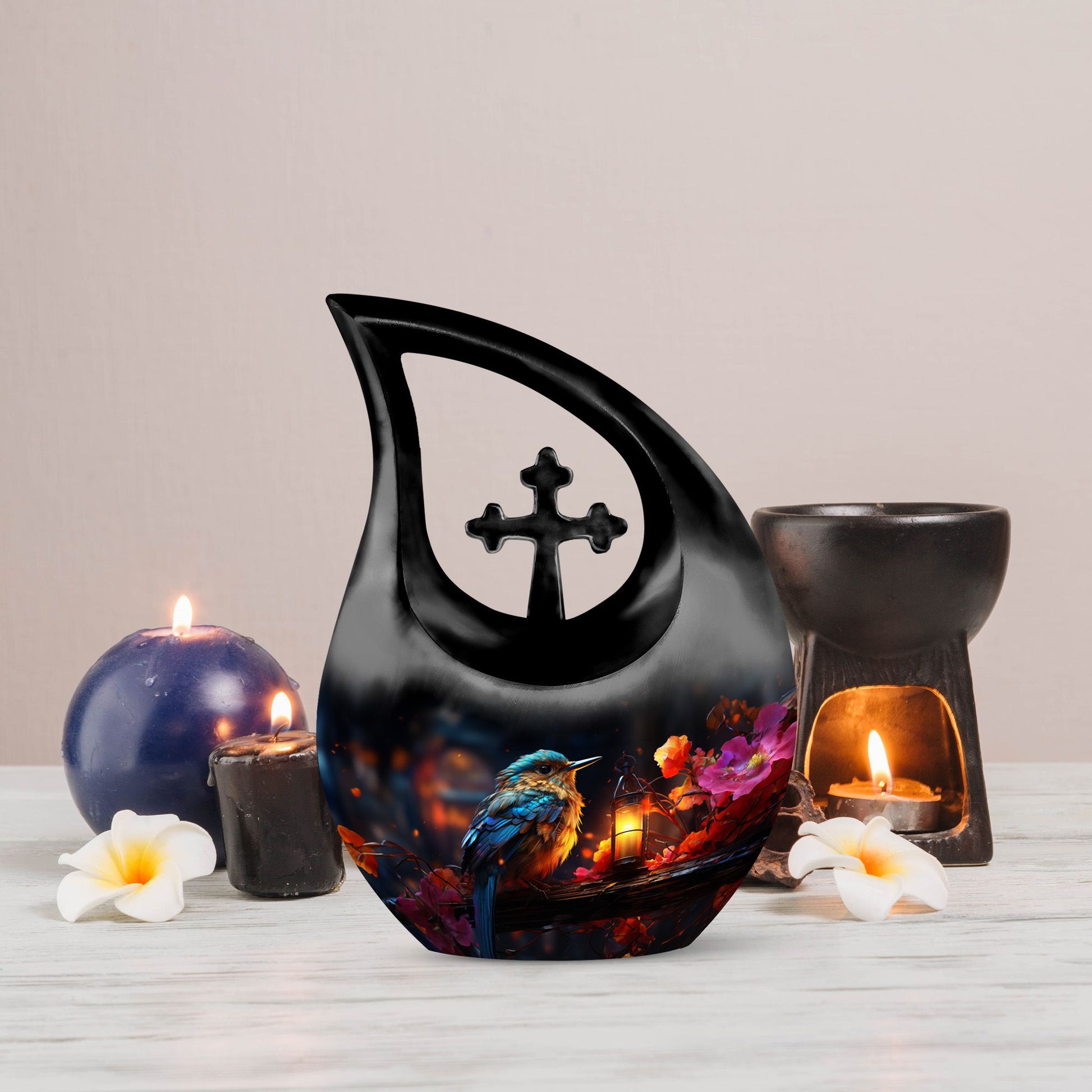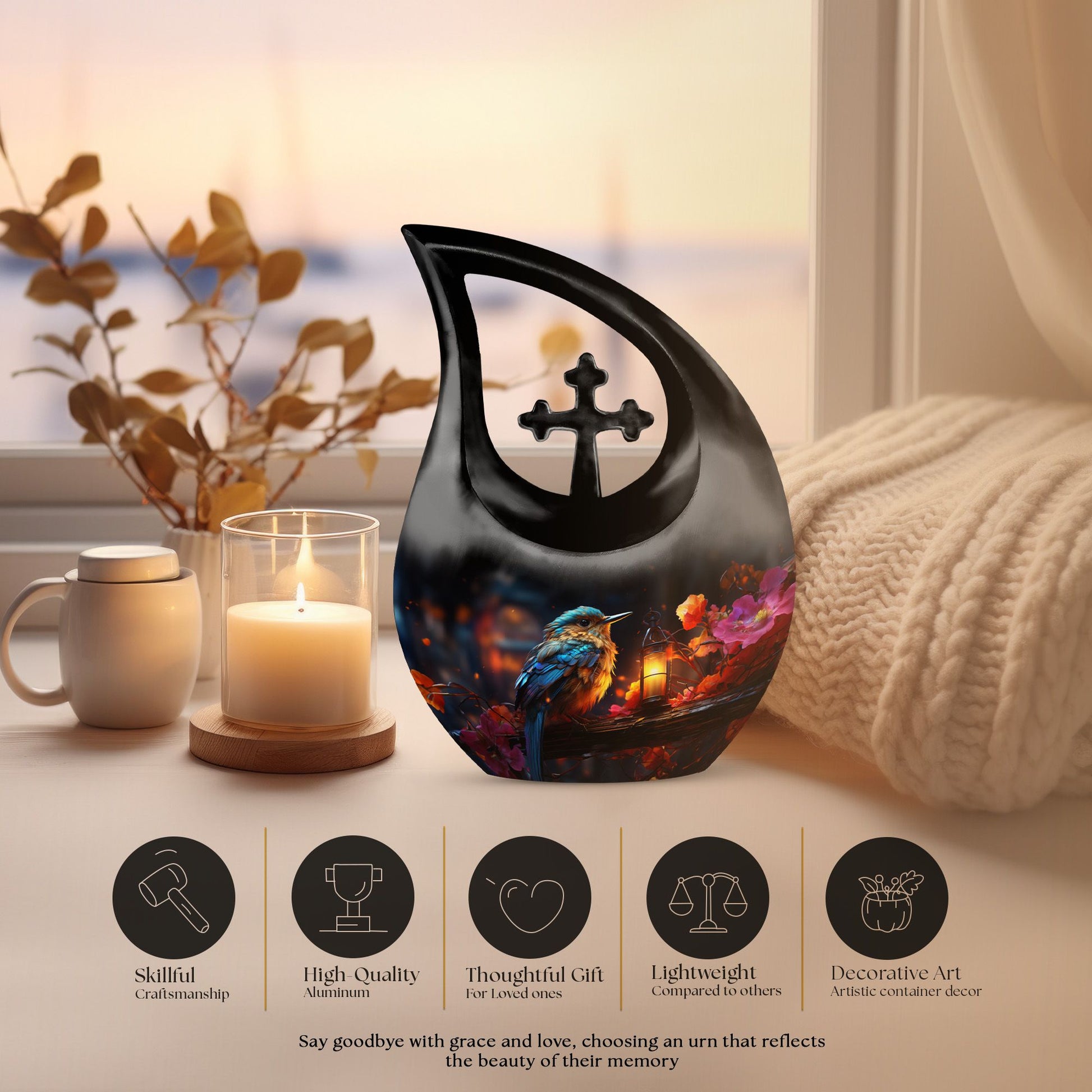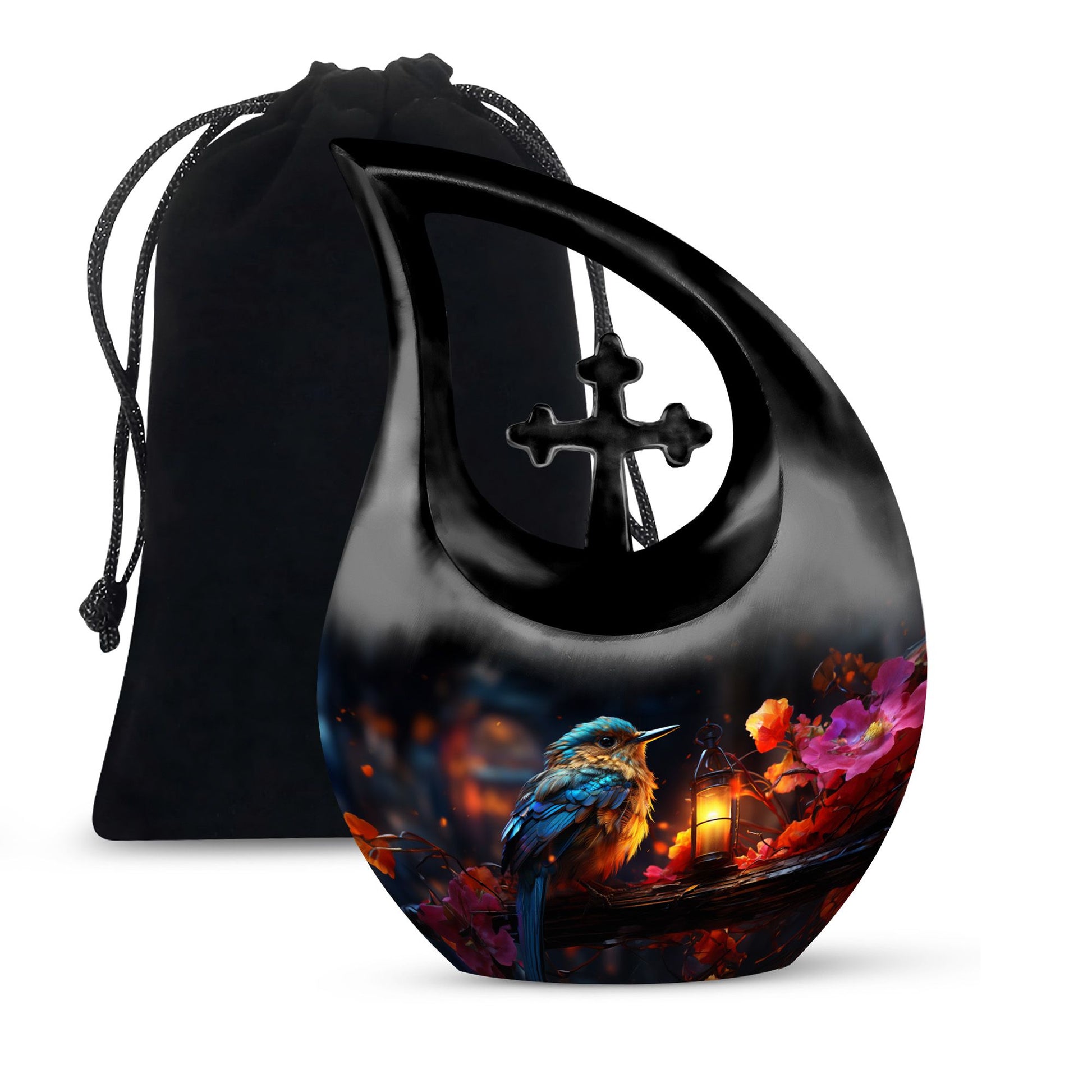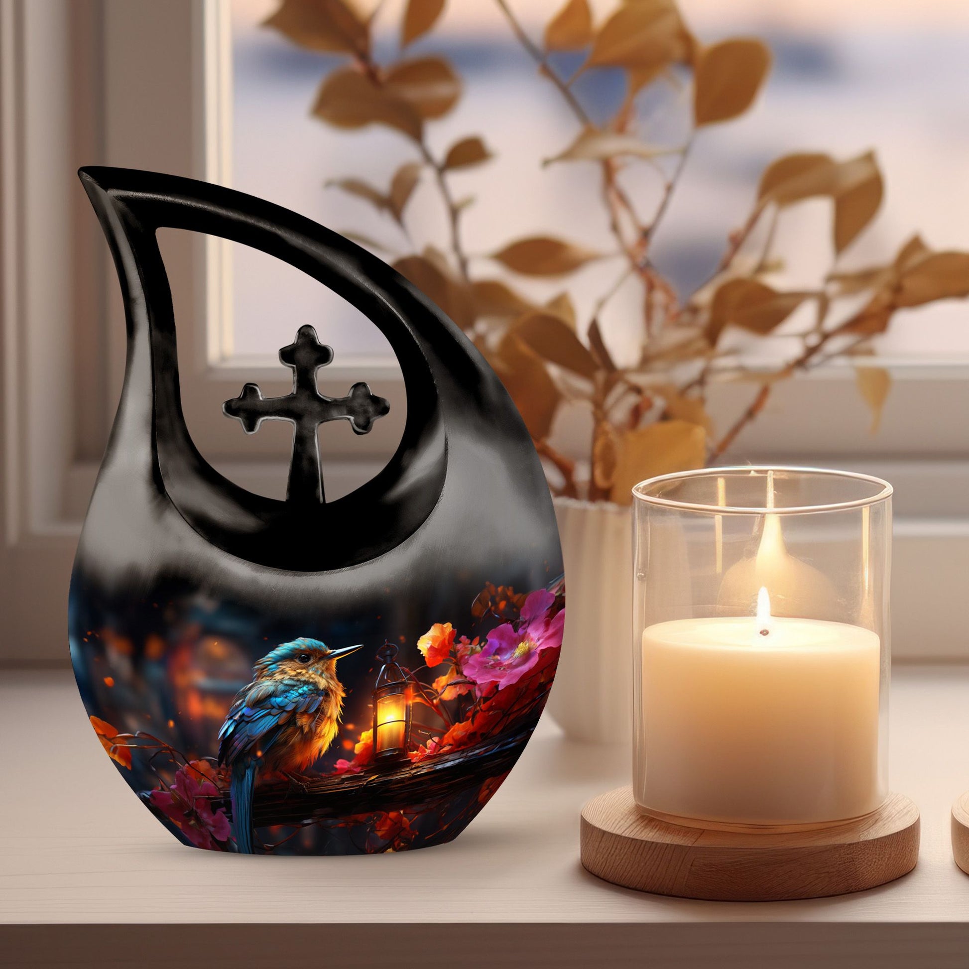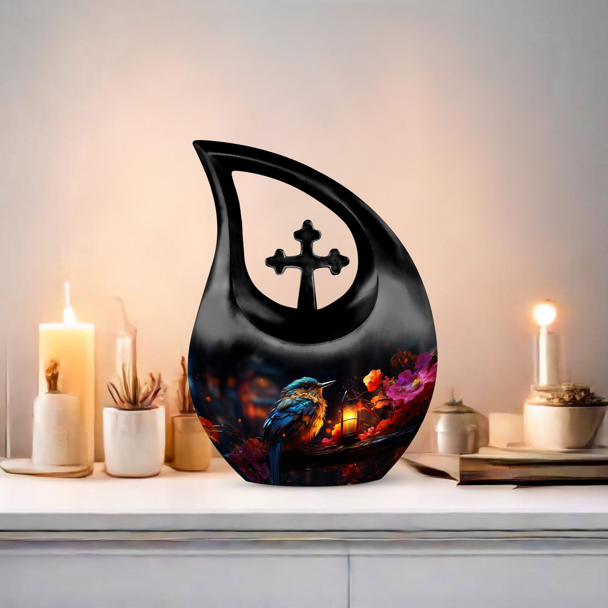 Whether honoring a mother, sister, friend, or loved one, this urn pairs well with matching keepsakes including urn for ashes for men, ashes keepsake for men, or feminine keepsake sets for shared remembrance. Its lantern and bird theme reflects warmth, guidance, and enduring love.