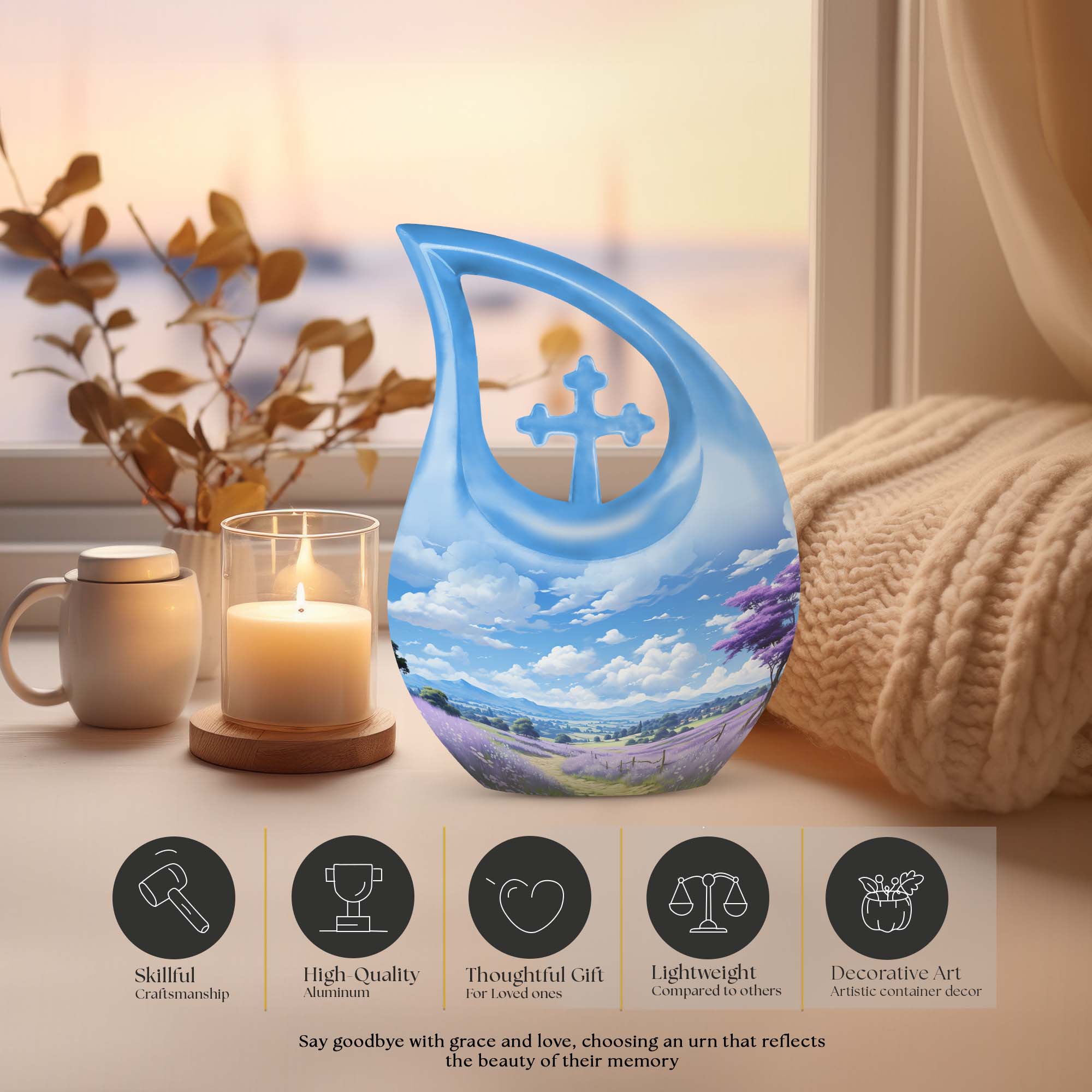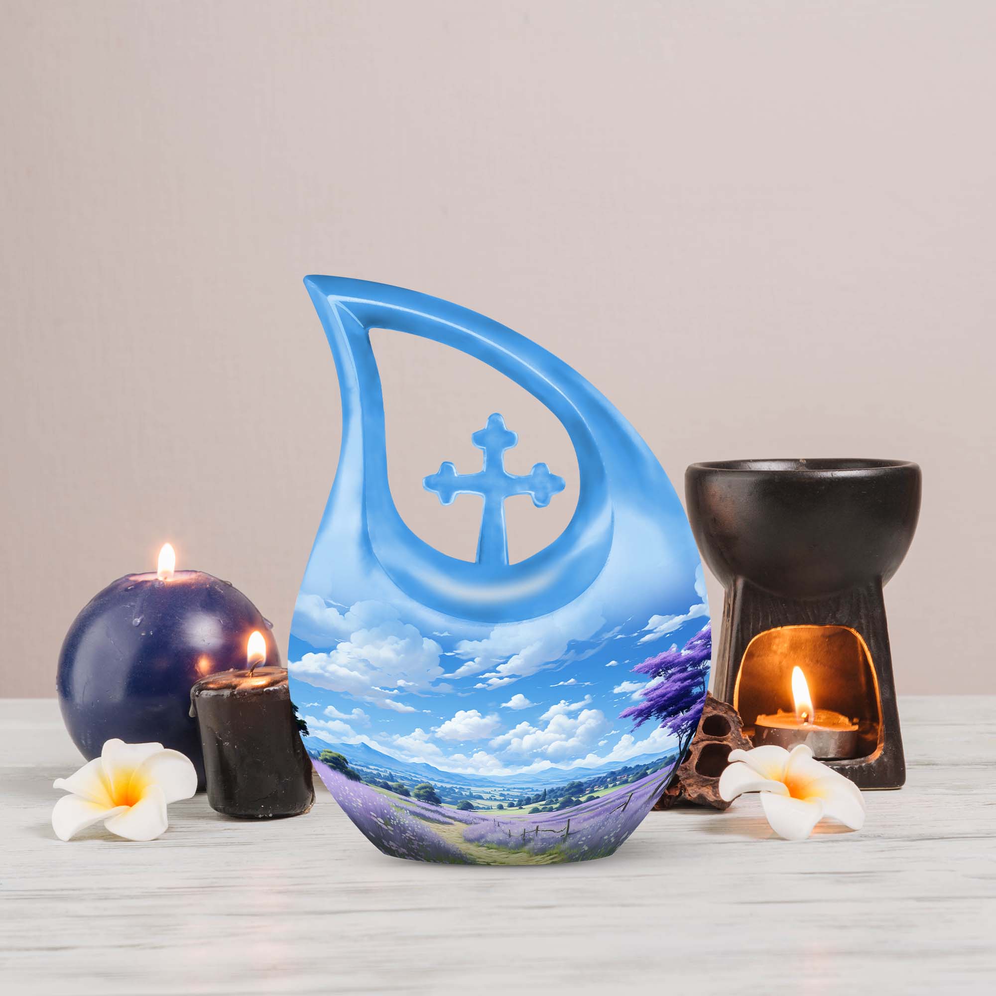 A peaceful life deserves a memorial filled with gentle beauty and grace. The Lavender Fields large urns for human ashes design offers a serene resting place inspired by open skies and blooming fields, bringing families comfort as they honor cherished memories with a thoughtfully crafted large decorative urn.