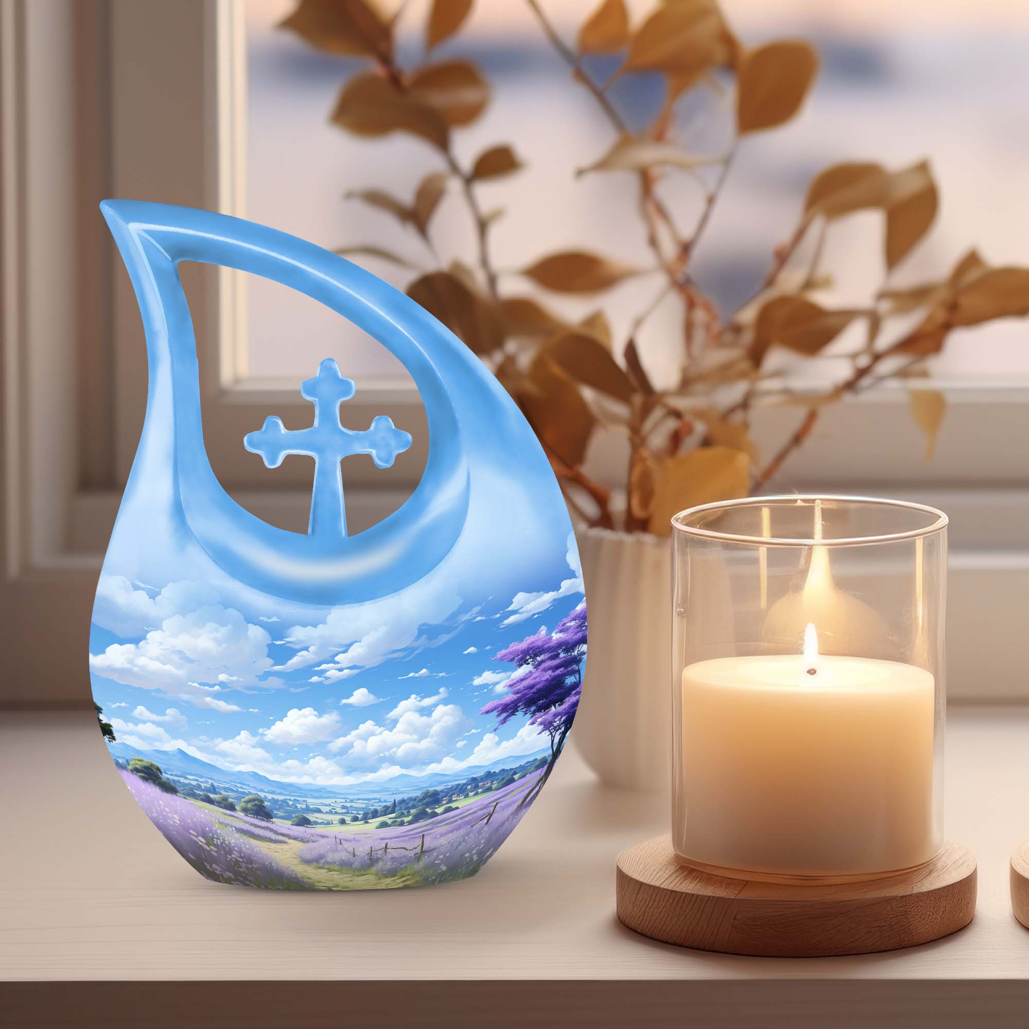 With its gentle color palette and peaceful theme, this urn offers lasting comfort and a beautiful way to honor a remarkable life while meeting the needs of cremation urns for large human ashes adult memorials.
