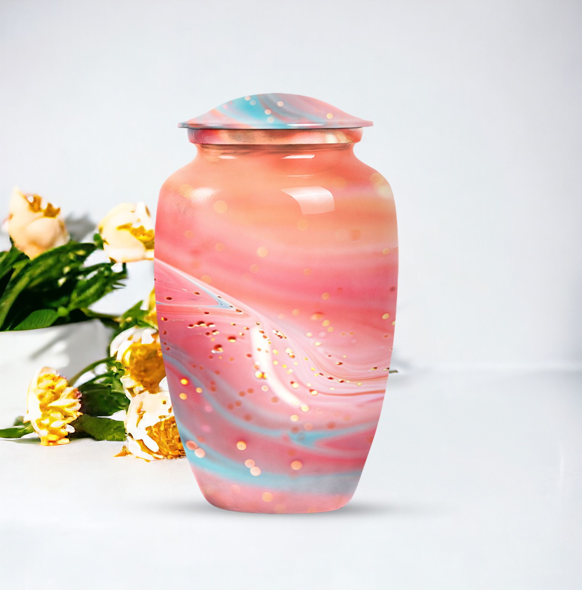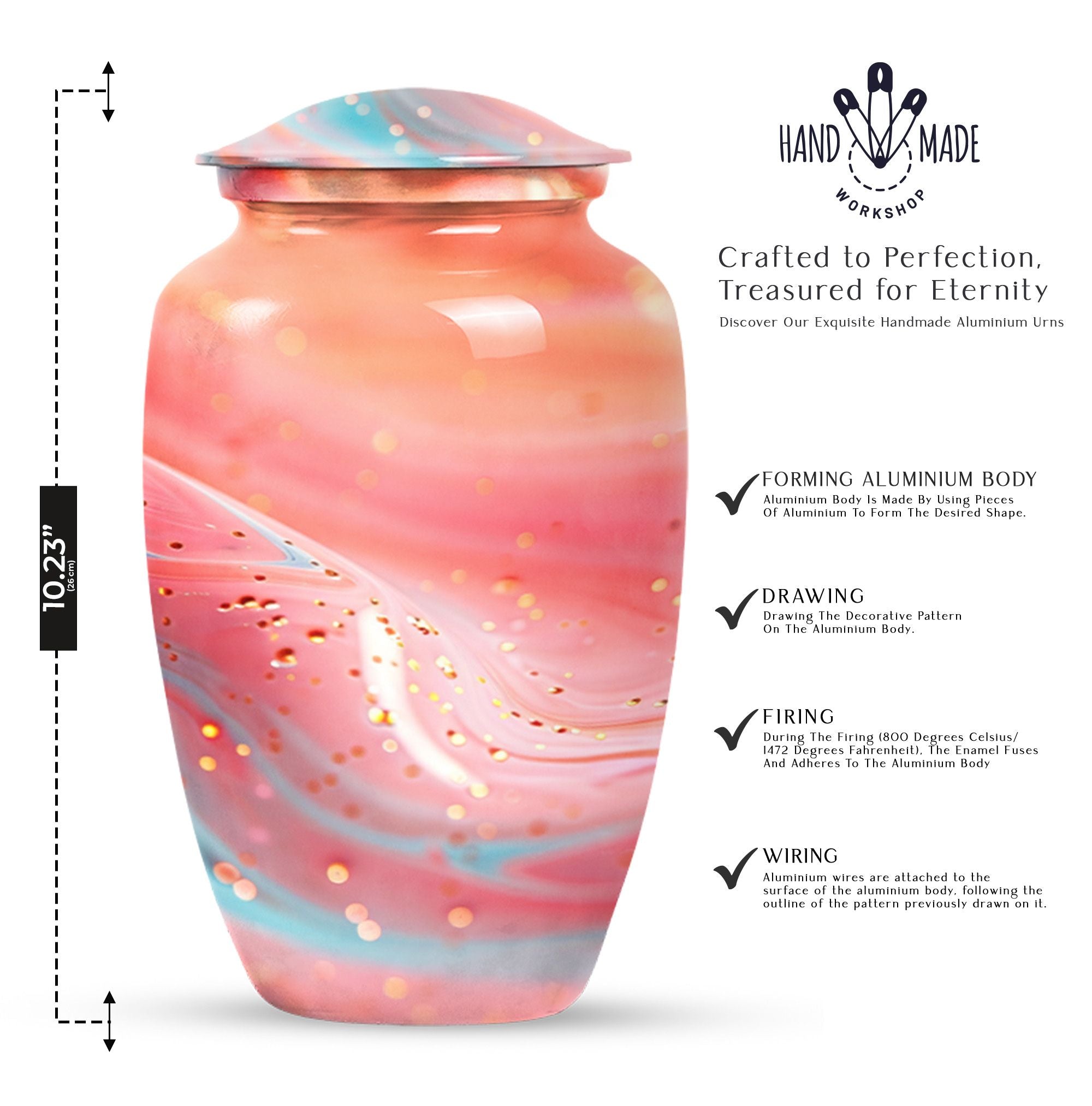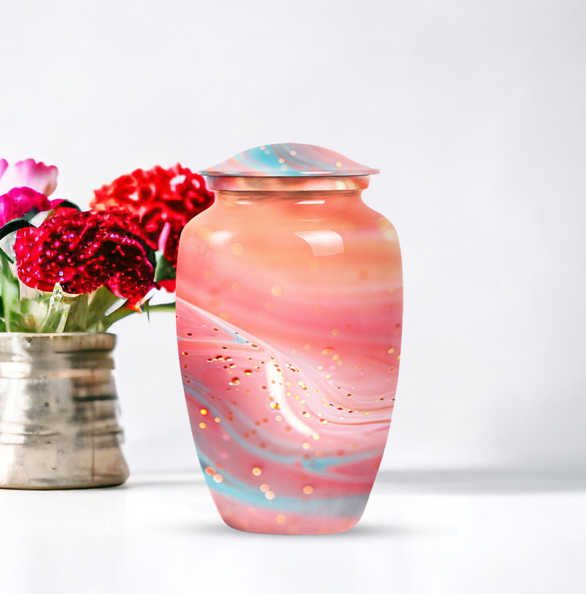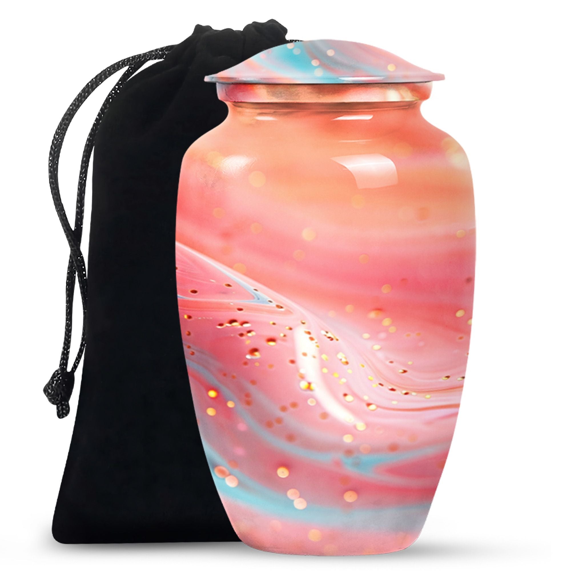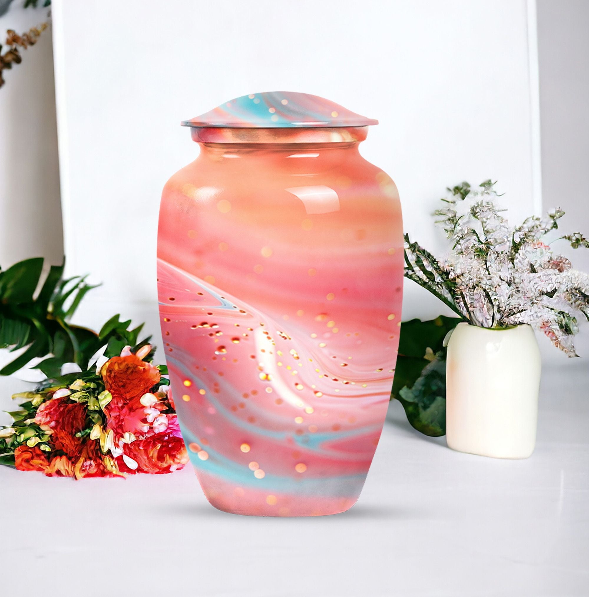 Experience the perfect blend of serenity and reminiscence with our 10-inch Abstract Urn. Crafted with an exquisite Abstract theme, this large urn offers a timeless respite for your treasured memories. Its robust aluminum construction, weighing a substantial 3.3 pounds, ensures durability and longevity that can stand the test of time. The urn's capacity to hold up to 200 cubic inches makes it suitable for use as funeral cremation urns for women, offering a secure repository of memories. Not just limited to women, it also serves as memorial large urns for ashes, ash urn, and funeral urns for adult ashes, unveiling its versatile use. Adding a personal touch, our package also allows for name engraving customization, making this classical urn even more special for you. Completing the package is a velvet pouch curated for containing ashes, safeguarding your cherished late loved ones. Let our Abstract Urn be a part of your journey, turning sorrow into remembrance with grace and dignity.