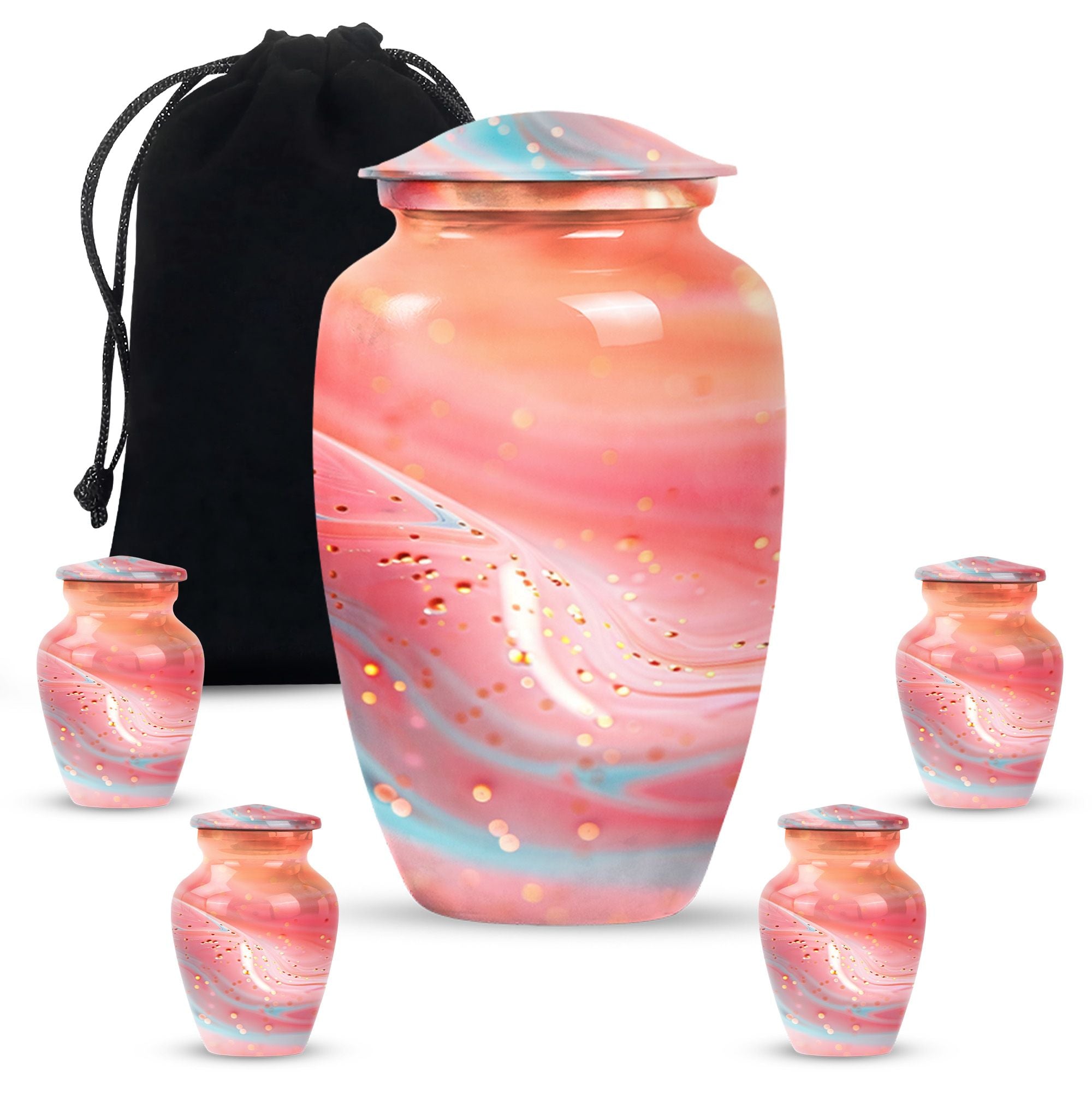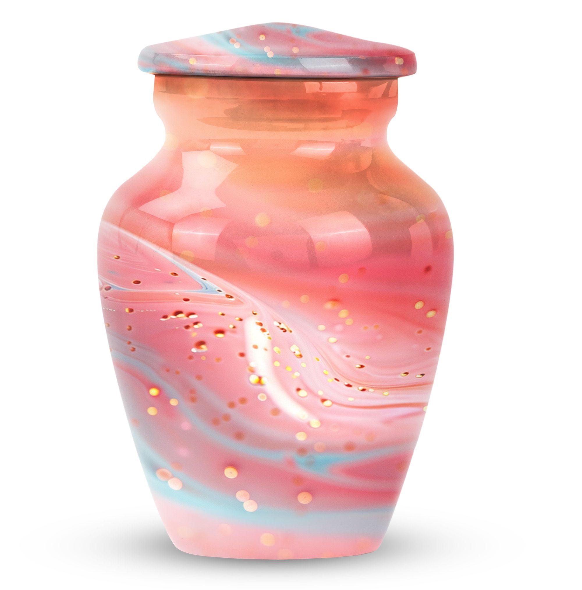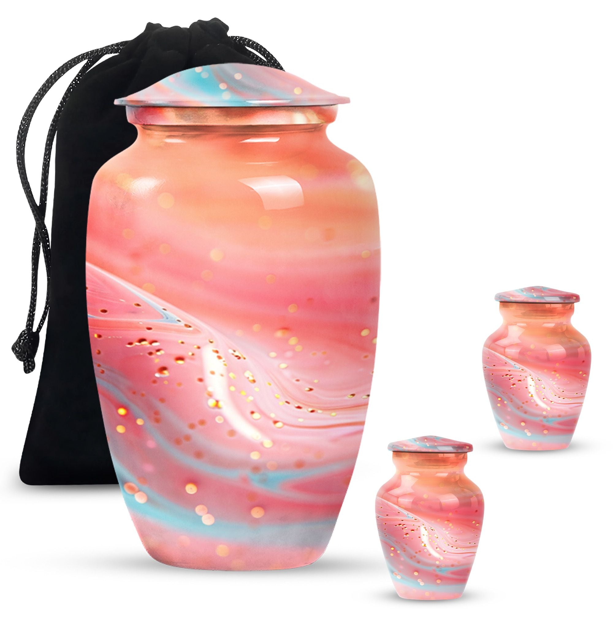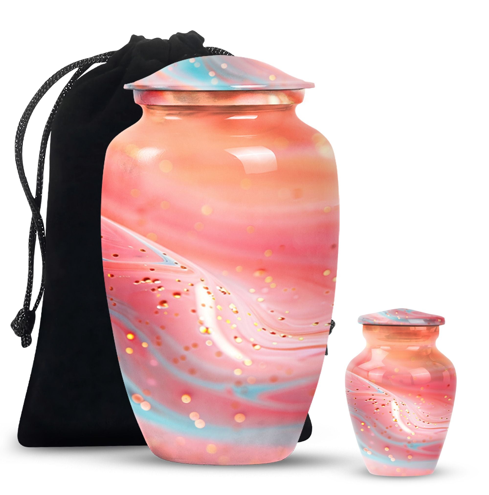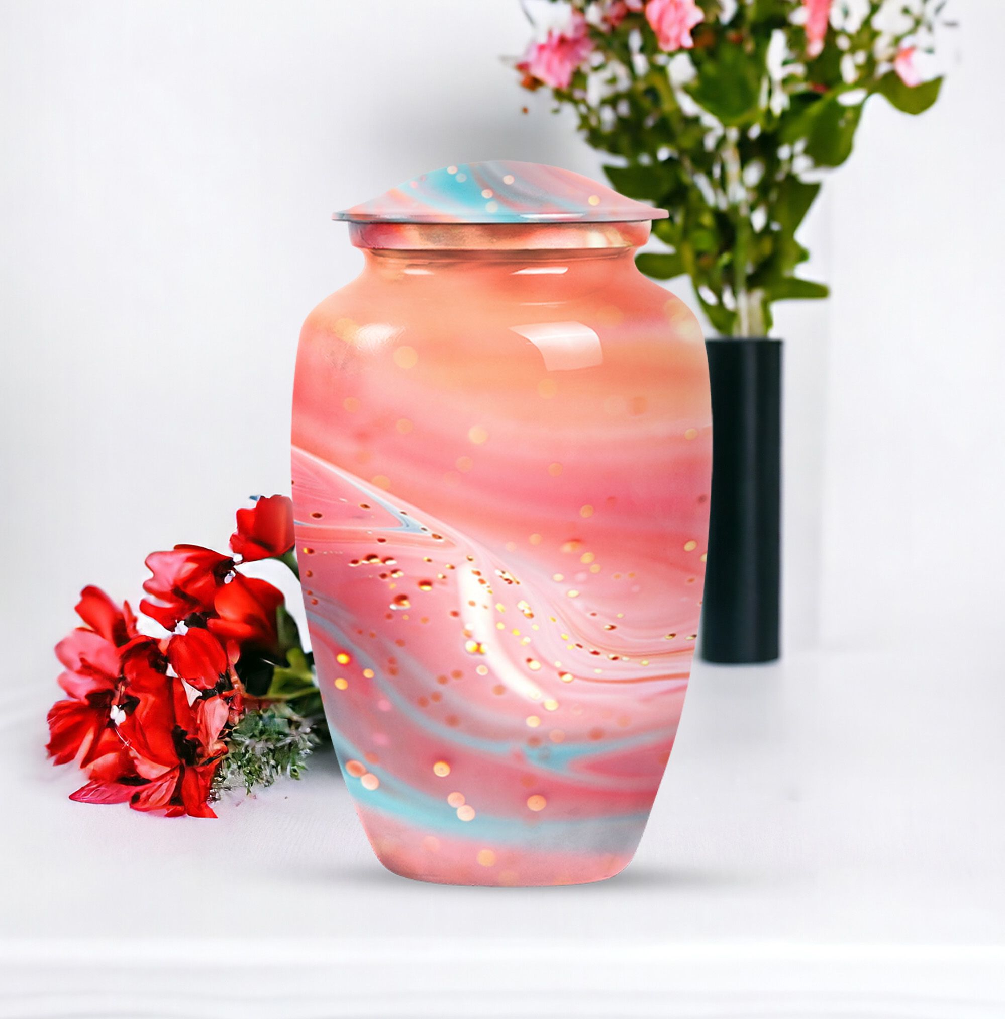 Experience the perfect blend of serenity and reminiscence with our 10-inch Abstract Urn. Crafted with an exquisite Abstract theme, this large urn offers a timeless respite for your treasured memories. Its robust aluminum construction, weighing a substantial 3.3 pounds, ensures durability and longevity that can stand the test of time. The urn's capacity to hold up to 200 cubic inches makes it suitable for use as funeral cremation urns for women, offering a secure repository of memories. Not just limited to women, it also serves as memorial large urns for ashes, ash urn, and funeral urns for adult ashes, unveiling its versatile use. Adding a personal touch, our package also allows for name engraving customization, making this classical urn even more special for you. Completing the package is a velvet pouch curated for containing ashes, safeguarding your cherished late loved ones. Let our Abstract Urn be a part of your journey, turning sorrow into remembrance with grace and dignity.