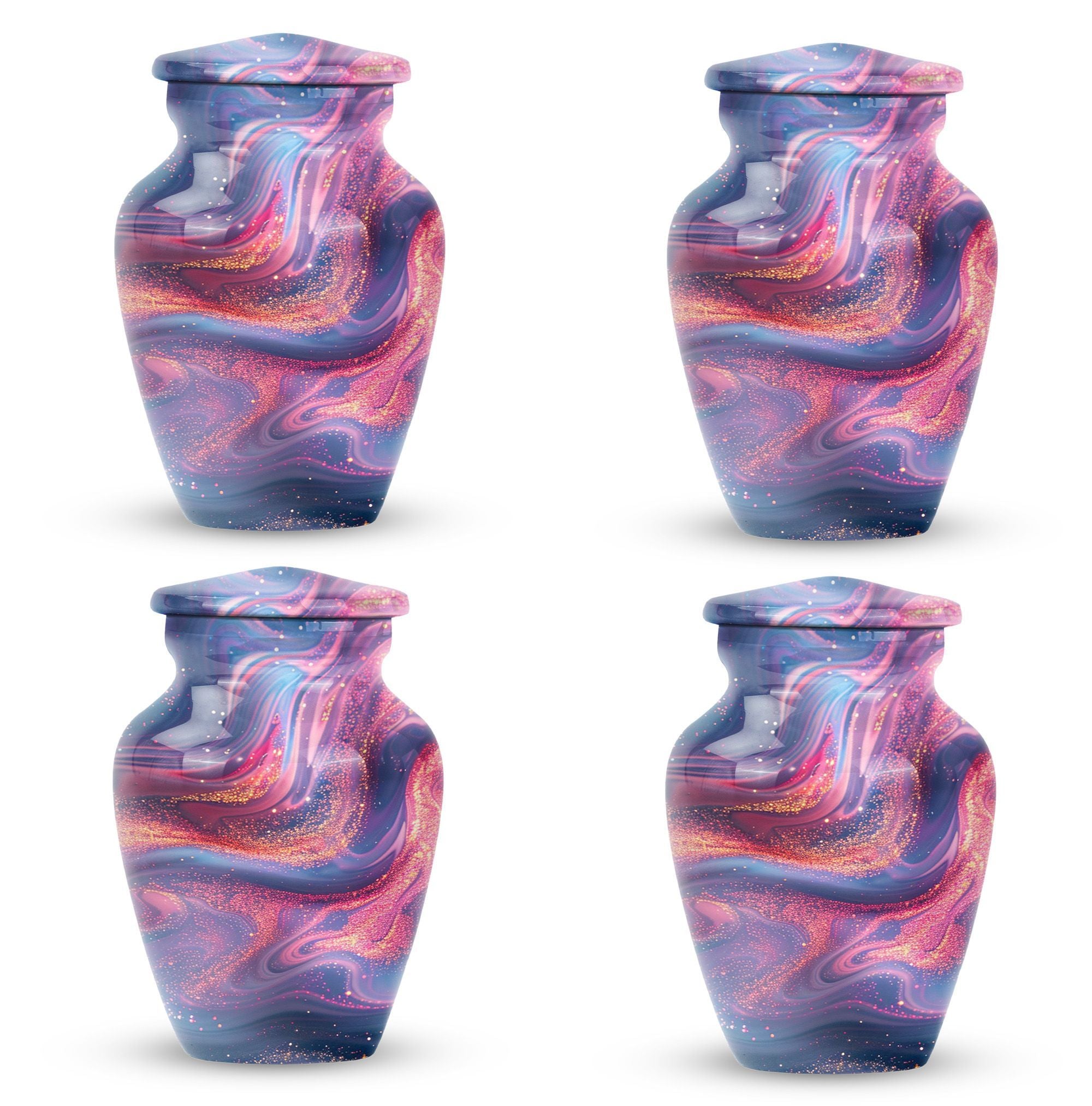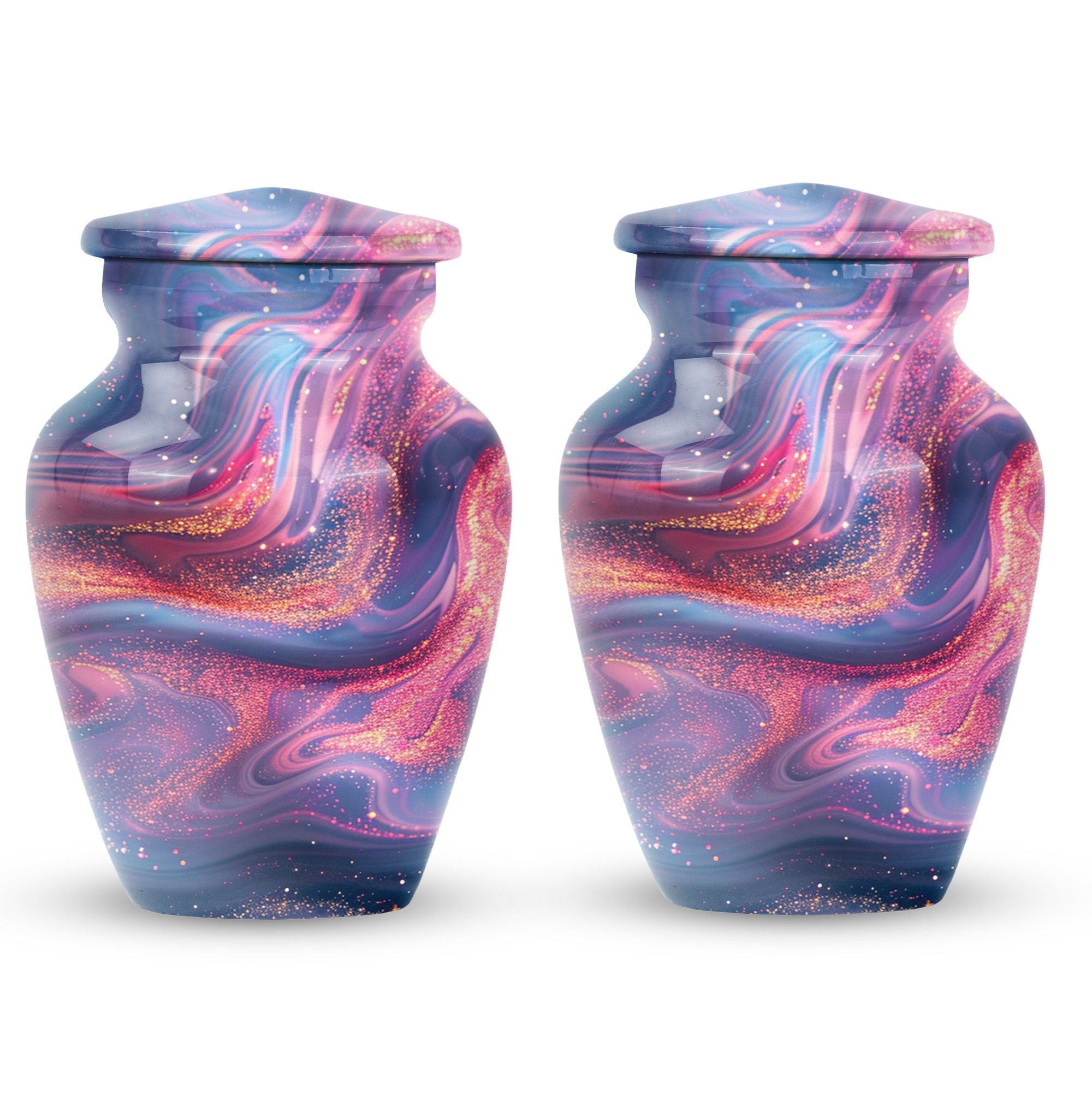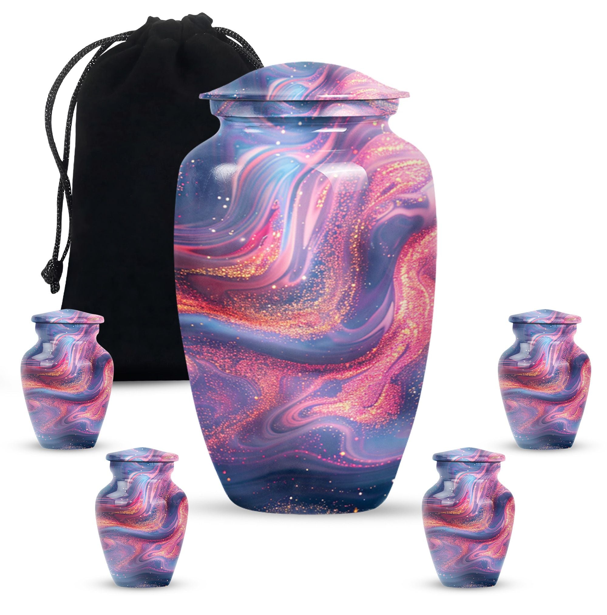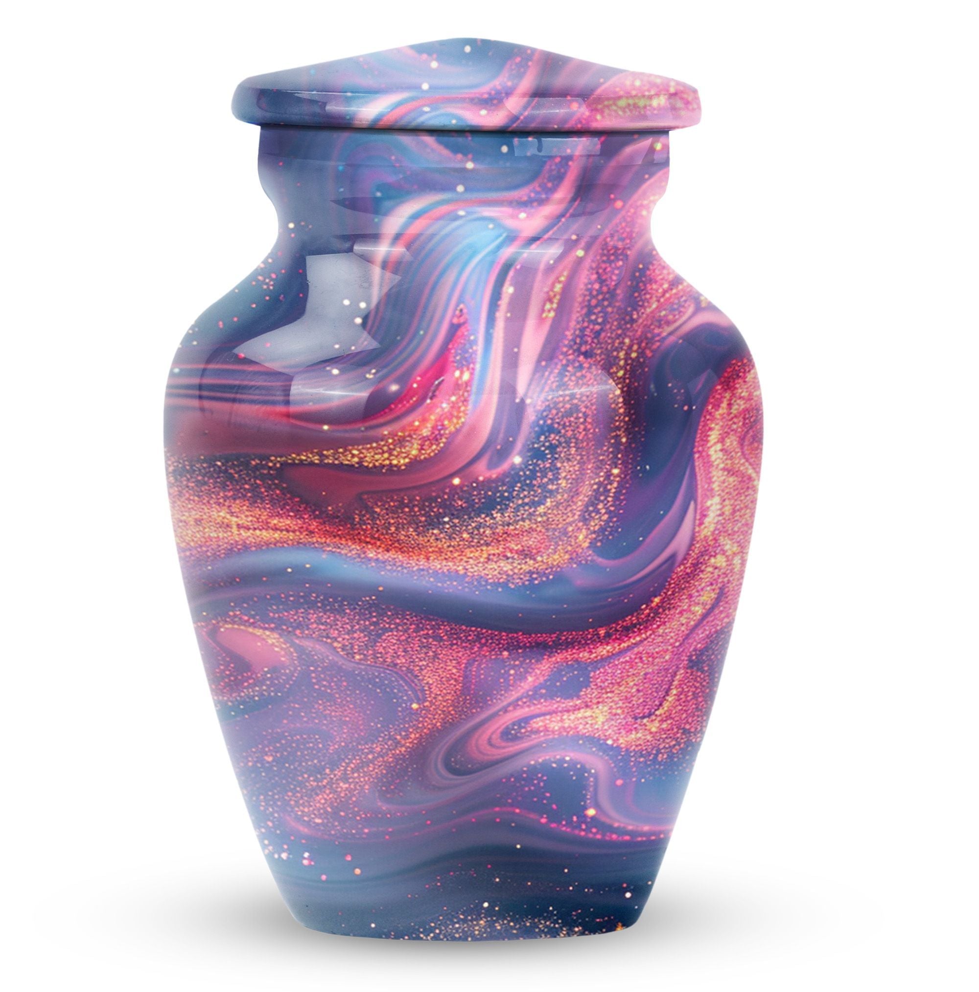 Paying tribute to your departed loved ones couldn't be more heartwarming with this Abstract Cremation Urn. It stands elegantly at a height of 10 inches and can store up to 200 cubic inches of ashes. Designed with tasteful abstract constructing using high-quality aluminium, this funeral urn fits perfectly into both ceremonial rites and solemn displays. Alongside its aesthetic presence, it has a significant underlying weight of 3.3 pounds, assuring stability and sturdiness. The large urn comes with a velvet pouch, providing an intimate containment for the ashes of your deceased. As an added touch of sentiment, the urn offers a customization option to engrave names, resonating with emotions and memories. Targeted keywords for this urn are 'urns for adult male', 'funeral urn for ashes for women' and 'urns for mom' among others. A classic memorial piece that exemplifies warmth and respect for our beloved.