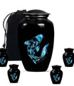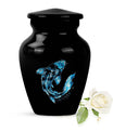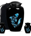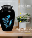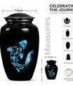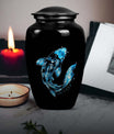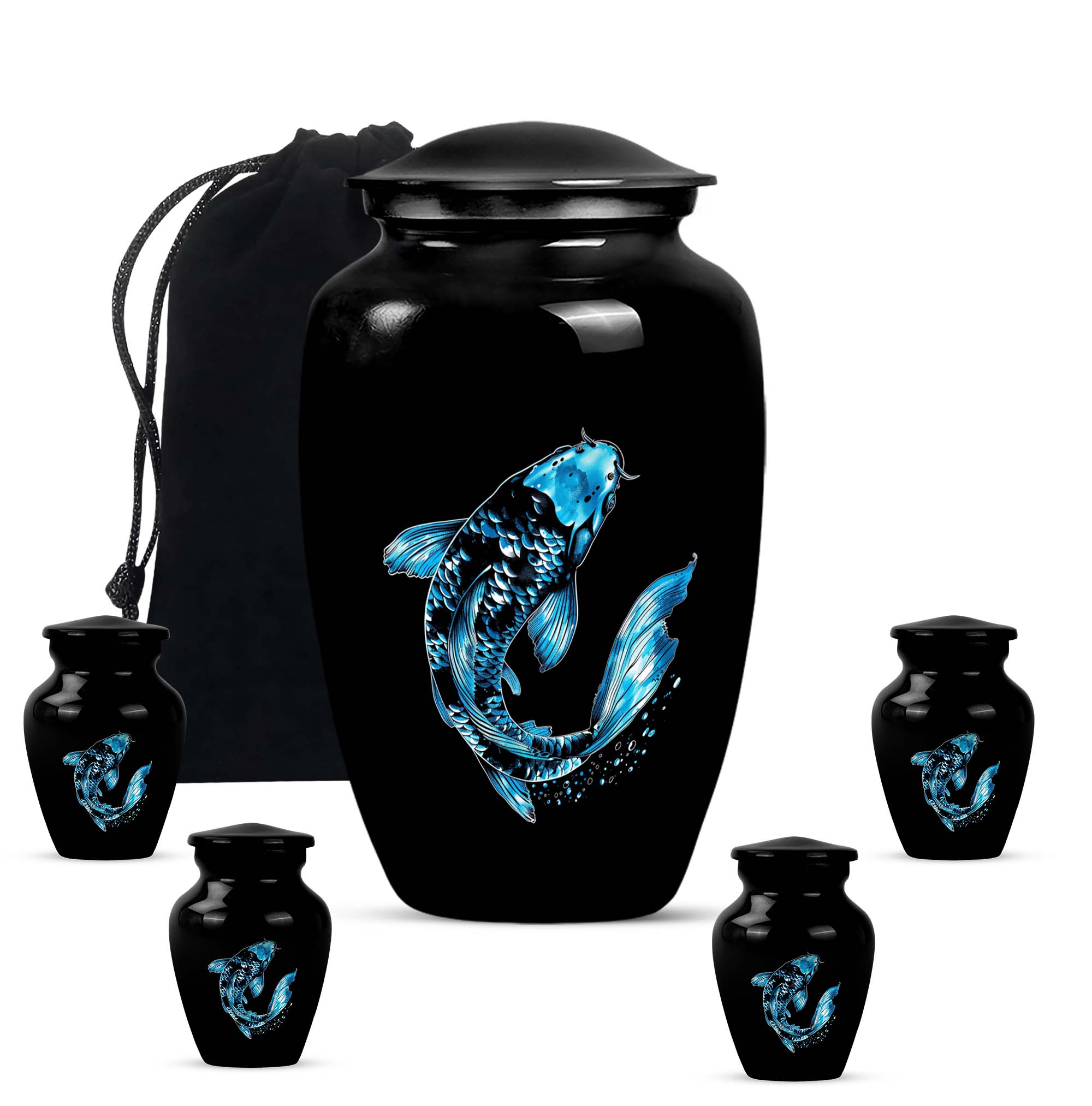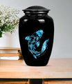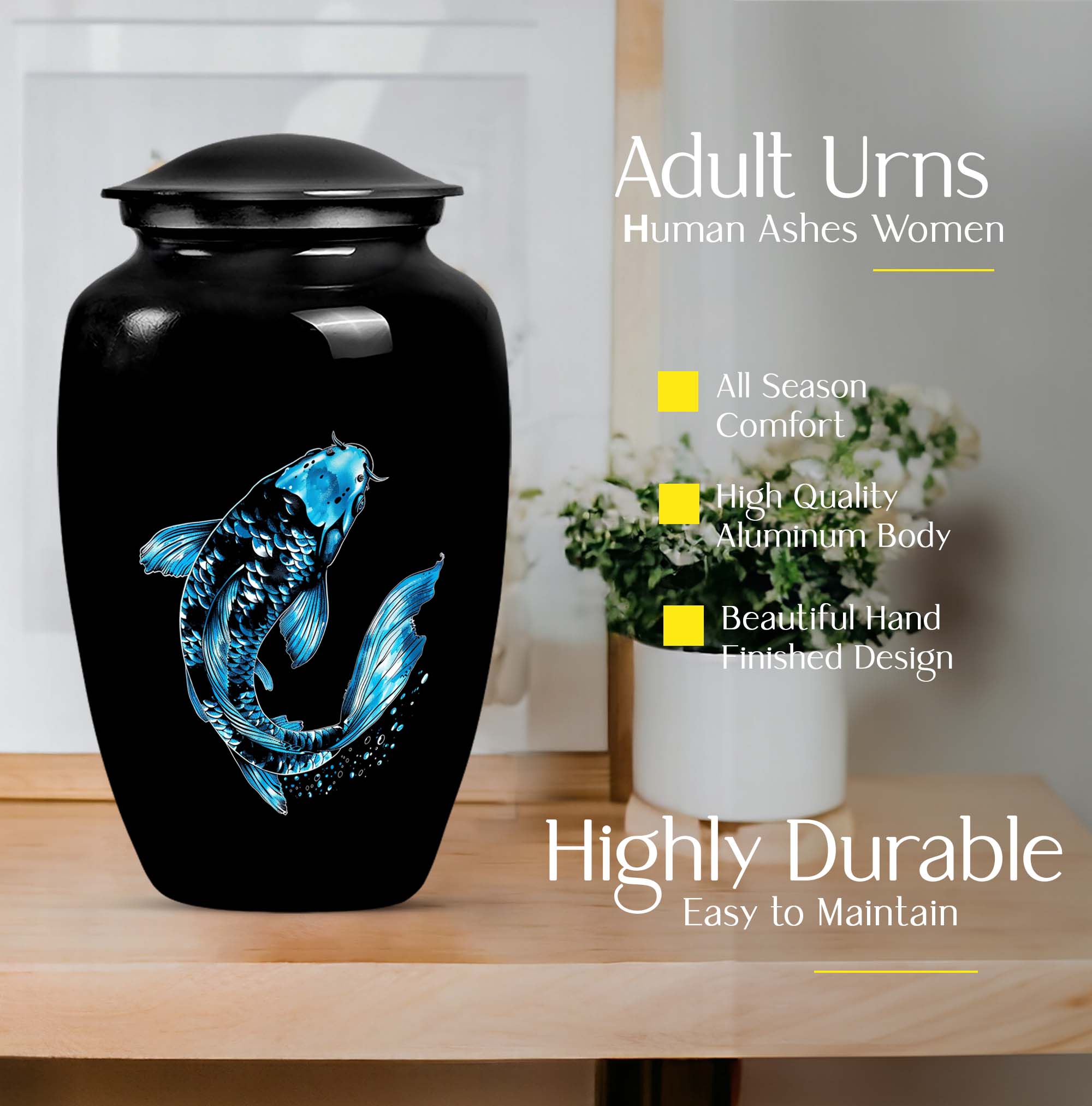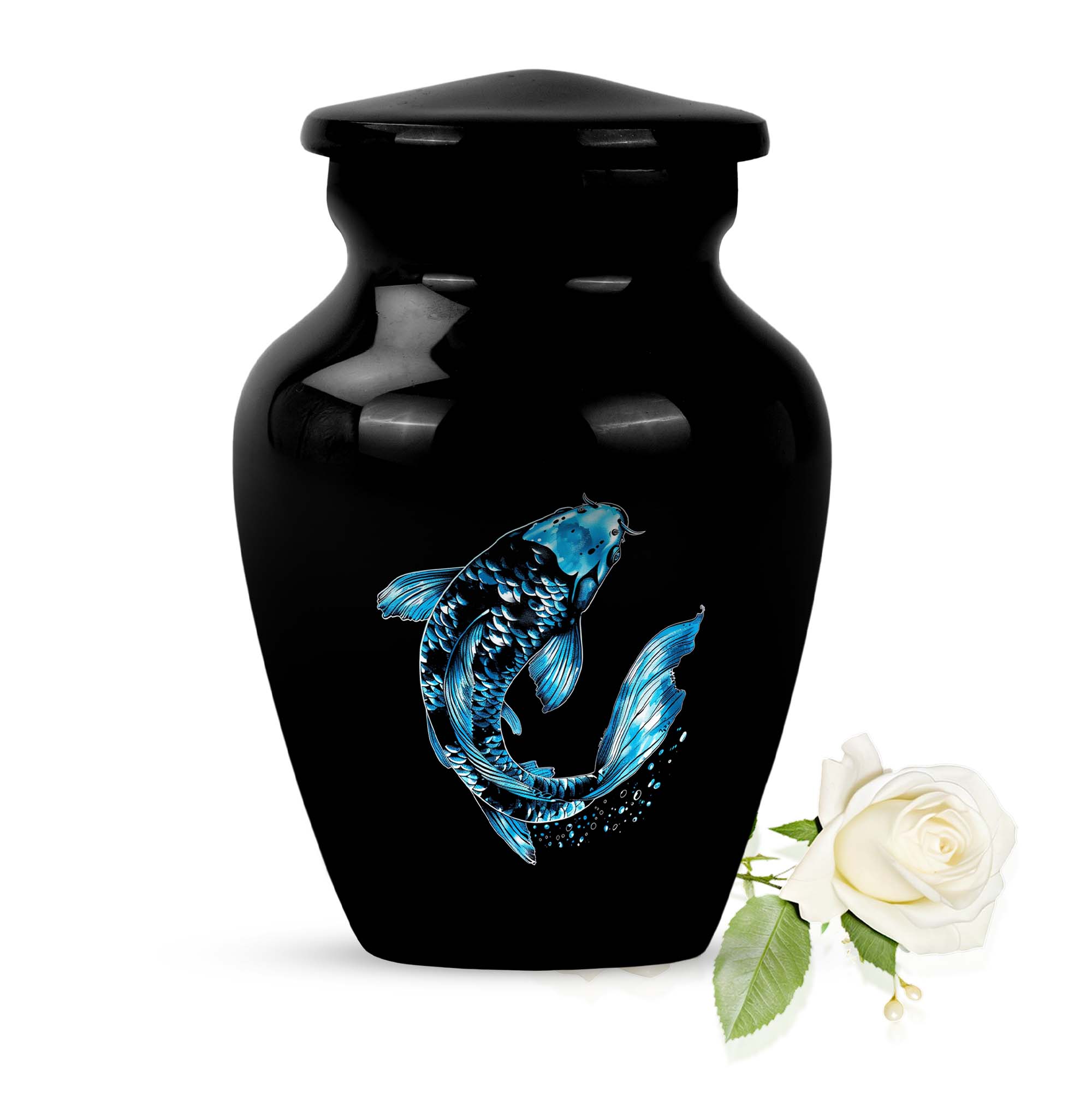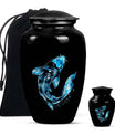 Experience a serene and noble token to honor your loved ones with this Classic Abstract Fish Urn. Precision crafted from high-grade Aluminum, this 10-inch burial urn for human ashes adult captivates with its unique abstract theme and sturdy build, weighing a substantial 3.3 pounds. The large urn offers an ample capacity of 200 cubic inches to safeguard the remnants of the departed. Personalize this exquisite cremation urn with engraved names, adding a touching commemoration to their cherished memory. The package also includes a plush velvet pouch, ensuring secure containment of the ashes. Highly sought after as funeral large and adult urns, this product symbolizes a heartwarming tribute to the departed. Infuse a profound sense of solemnity to your memorial ceremonies with this timeless fish urn, a dignified choice among cremation urns for human ashes men and cremation urns for adults.
