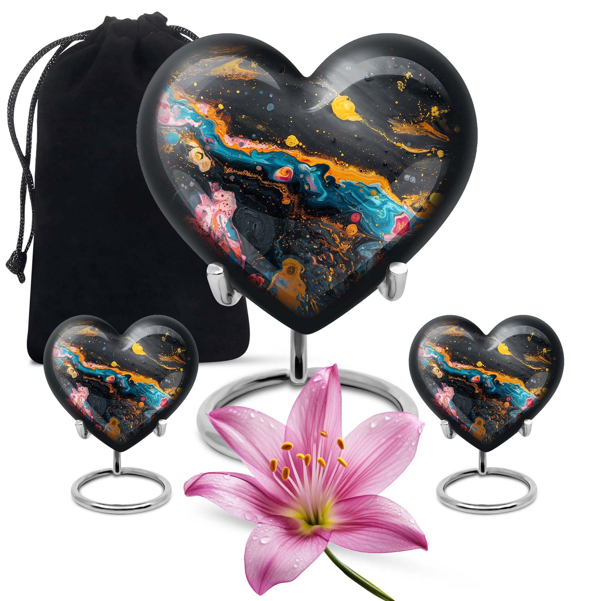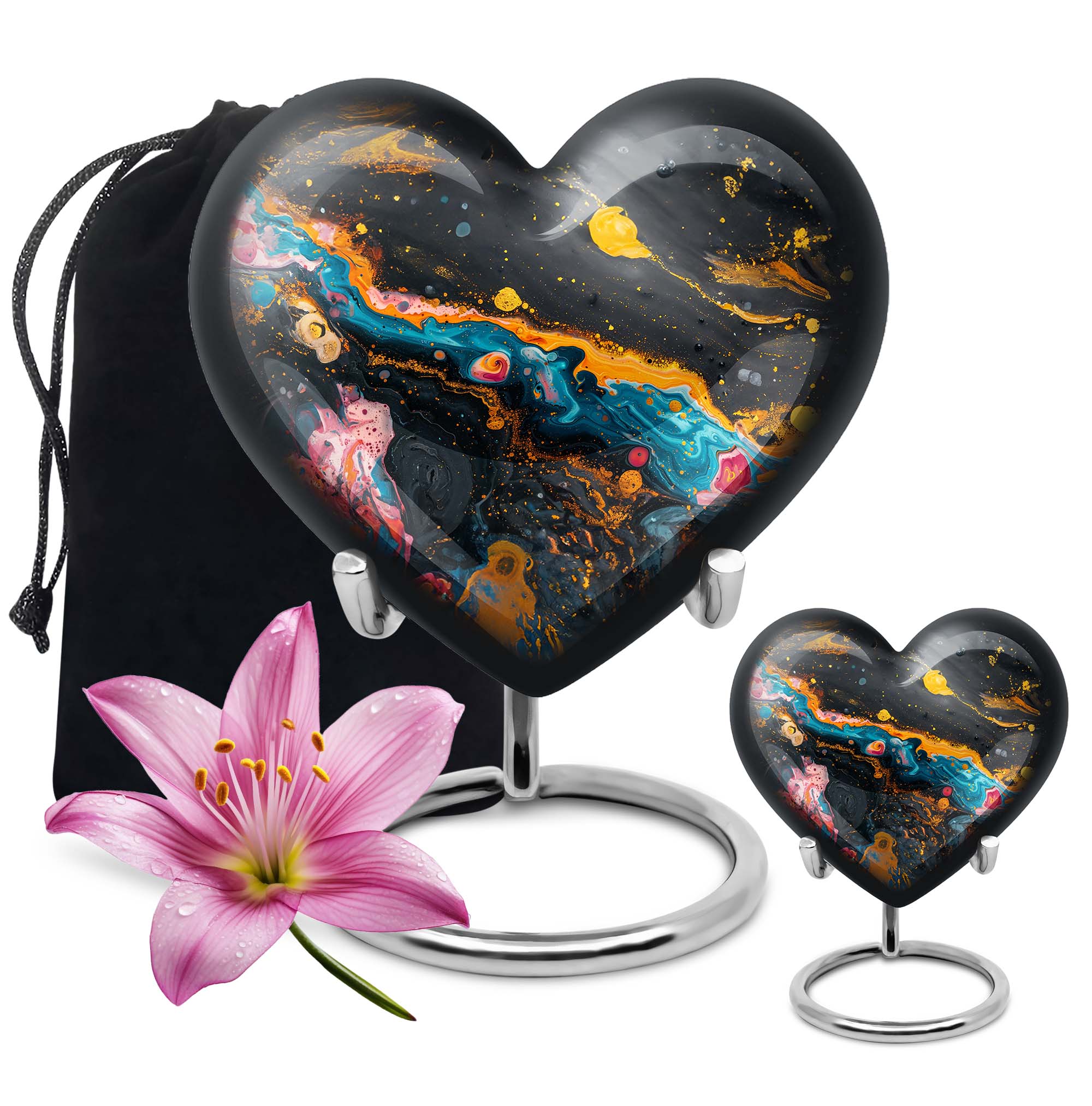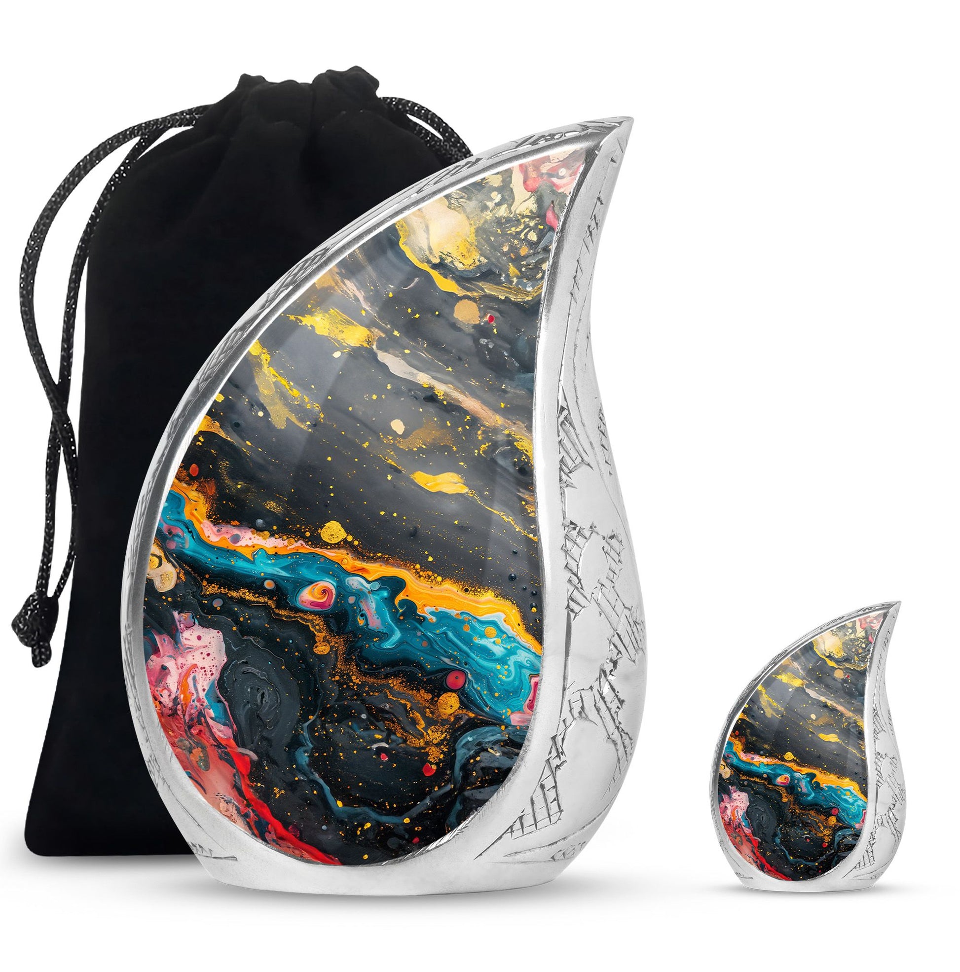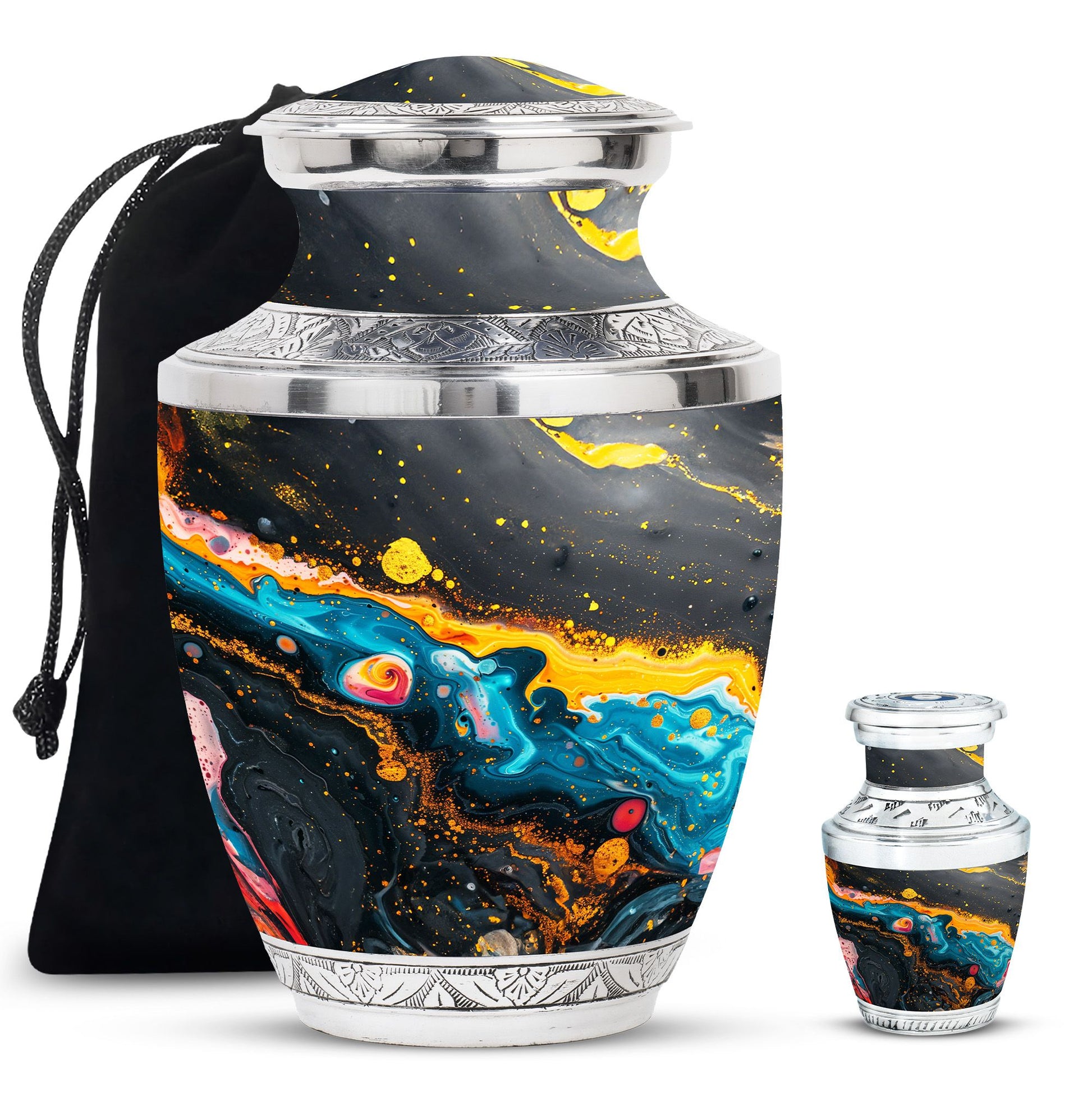 The vibrant, abstract design symbolizes love, energy, and eternal spirit, making this cremation urn a heartfelt choice for families seeking large urns human ashes that combine durability with meaning.
