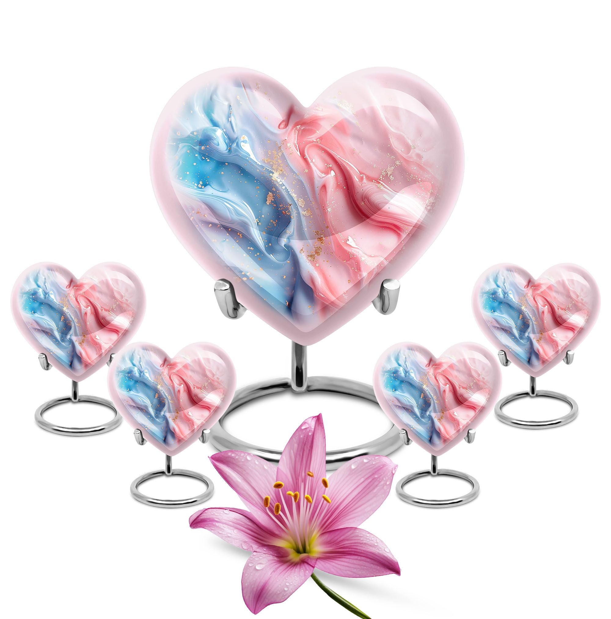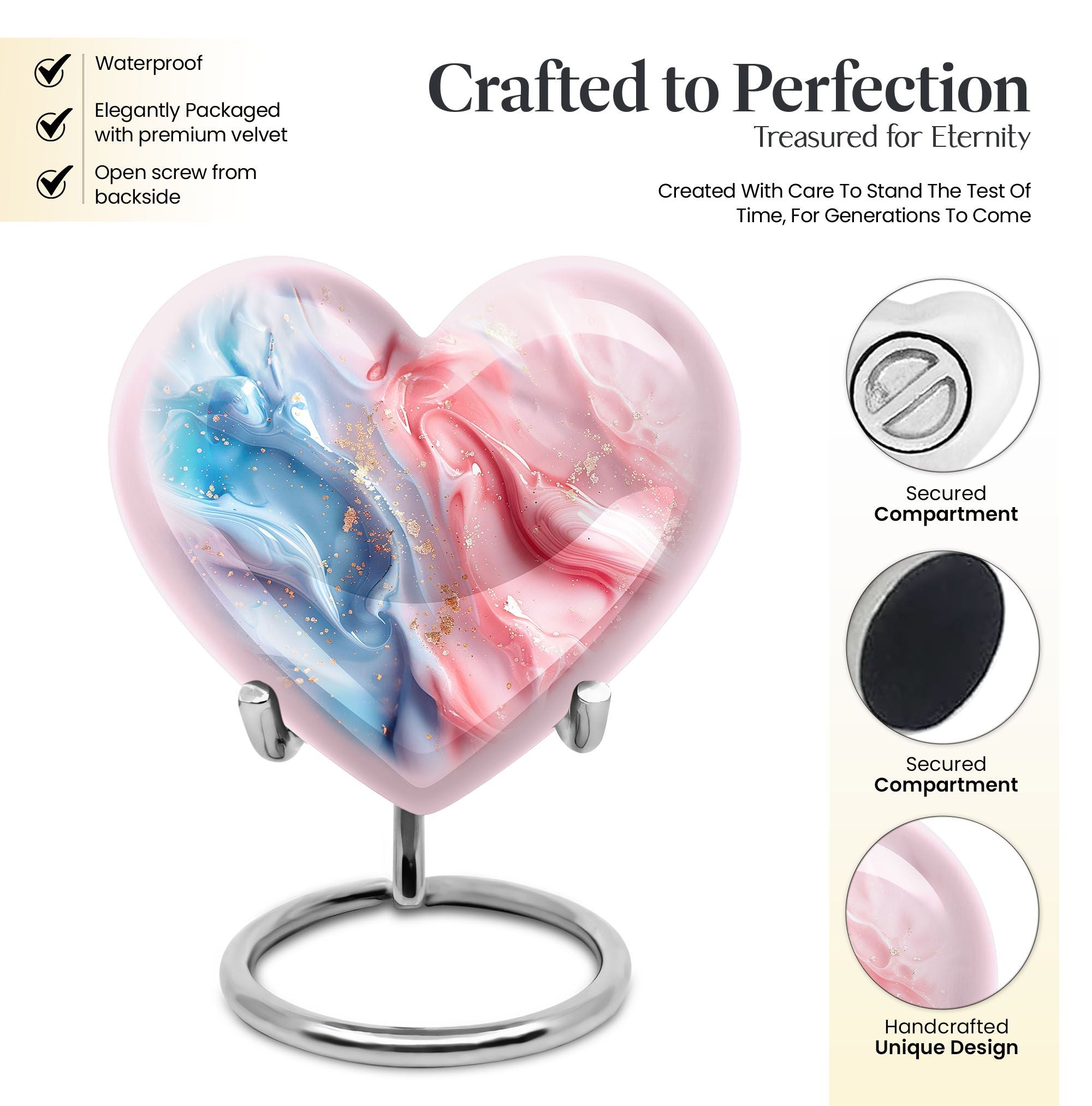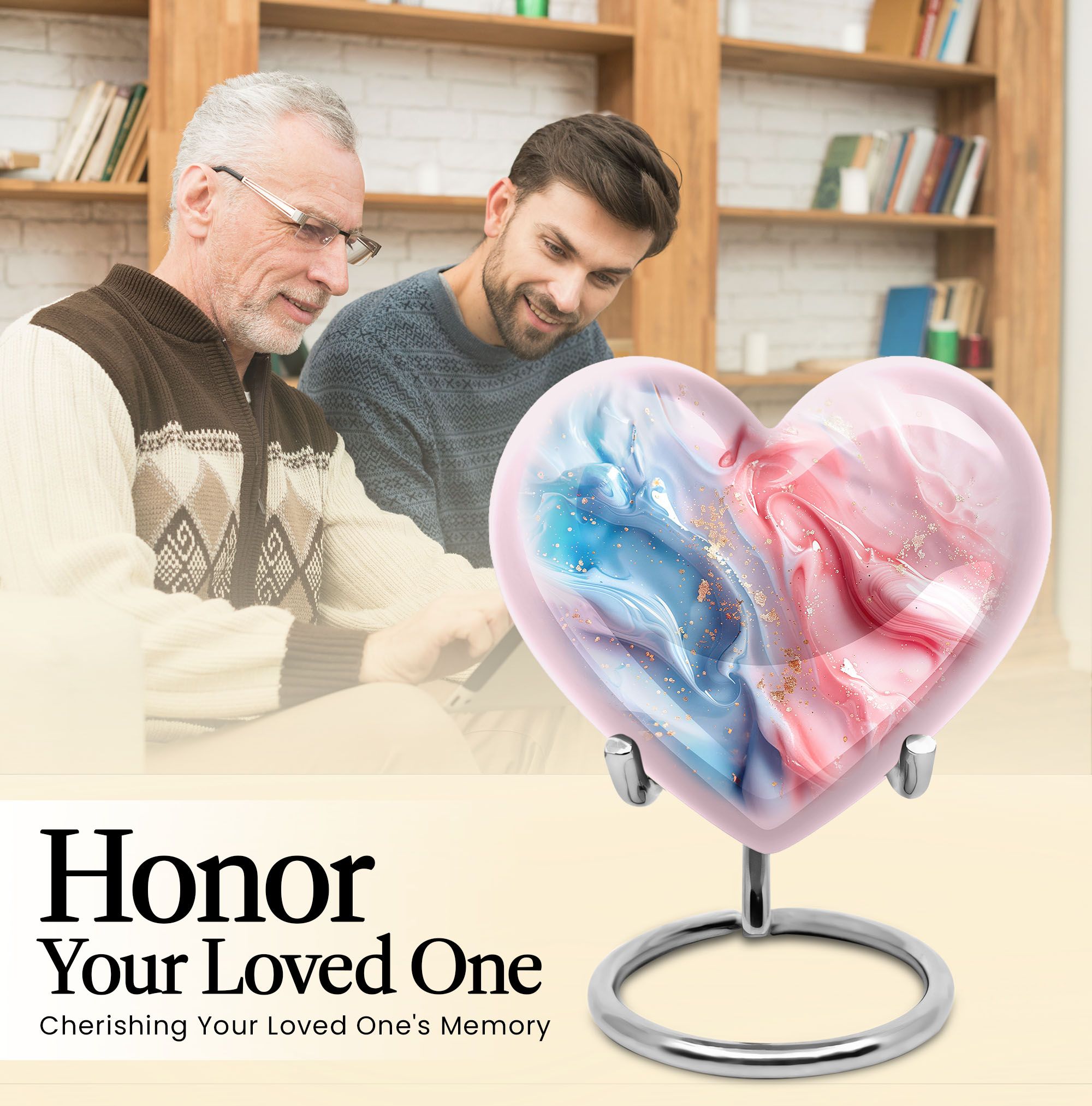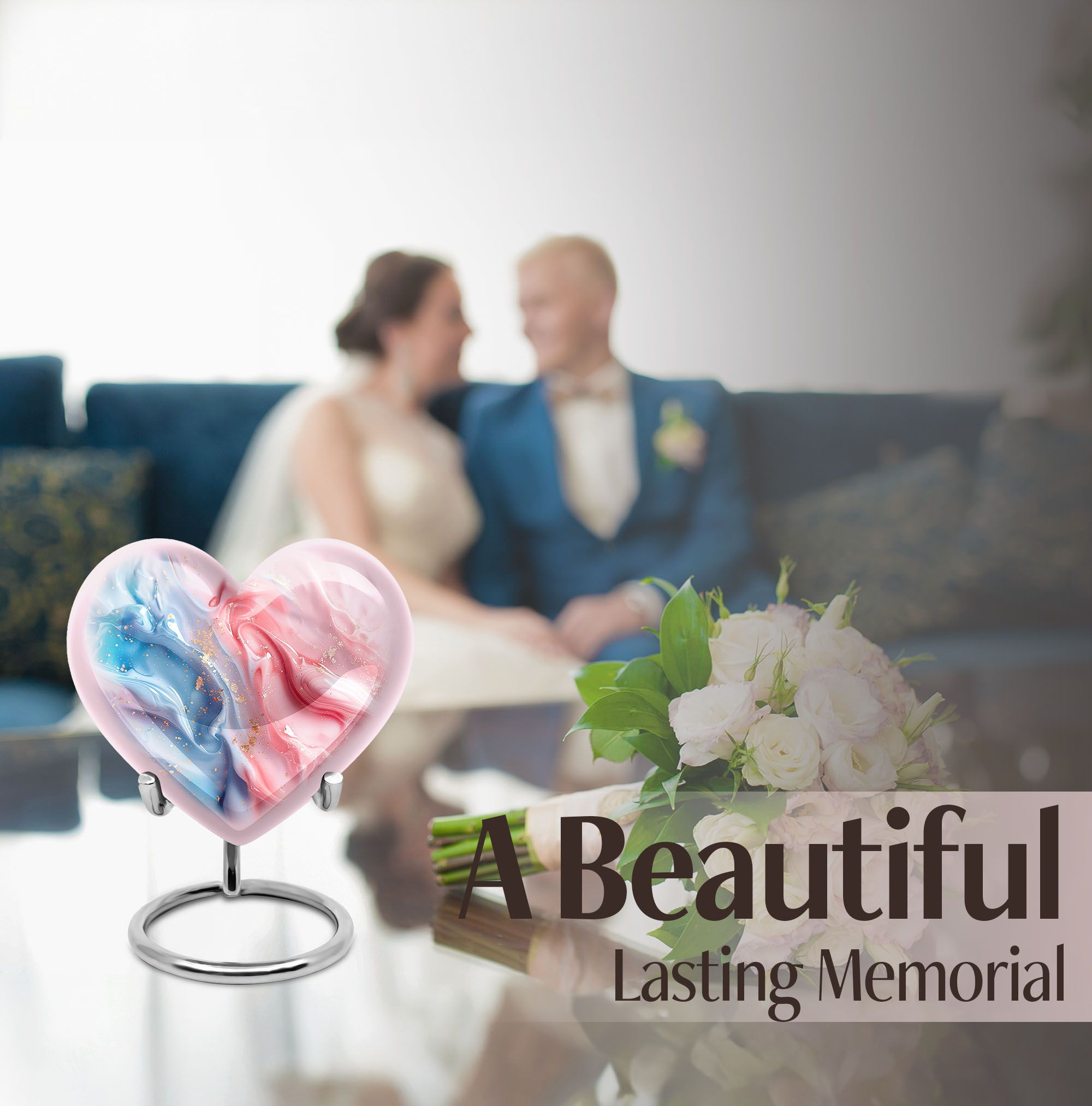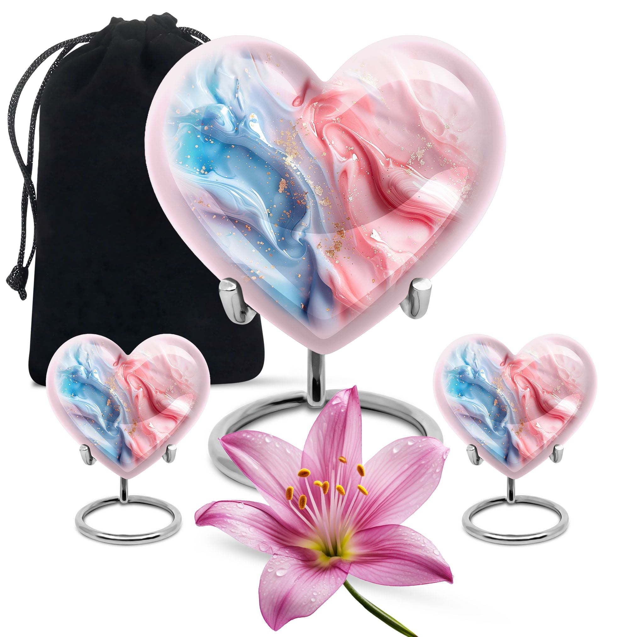 Our Abstract Urn, a thoughtfully designed cremation urn for ashes, serves as the perfect memorial element for your loved ones. Meticulously crafted from high-quality Aluminium, this cremation urn boasts a generous size of 10 inches and weighs a substantial 3.3 pounds. The urn is designed in a symbolic Heart shape, reflecting endless love and perpetual affection. The meticulous capacity of up to 200 cubic inches ensures ample space for safe preservation. A distinctive trait of our product is its customization feature allowing you to personalize the urn with engraved names, imprinting an everlasting memory. The product package comes inclusive of a plush velvet pouch for secure containment and respectful discretion of ashes. Ideal for the locale 'en', our Large Urn is more than just a burial urn for cremation; it's an introspective tribute. This practical Abstract urn will genuinely honor your loved one's memory on your behalf.