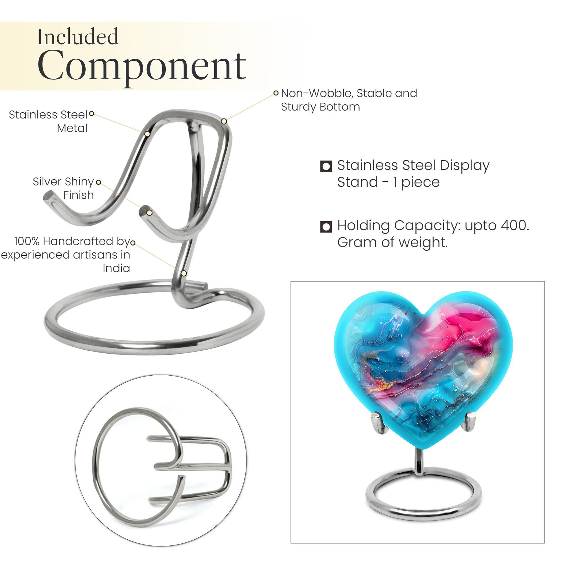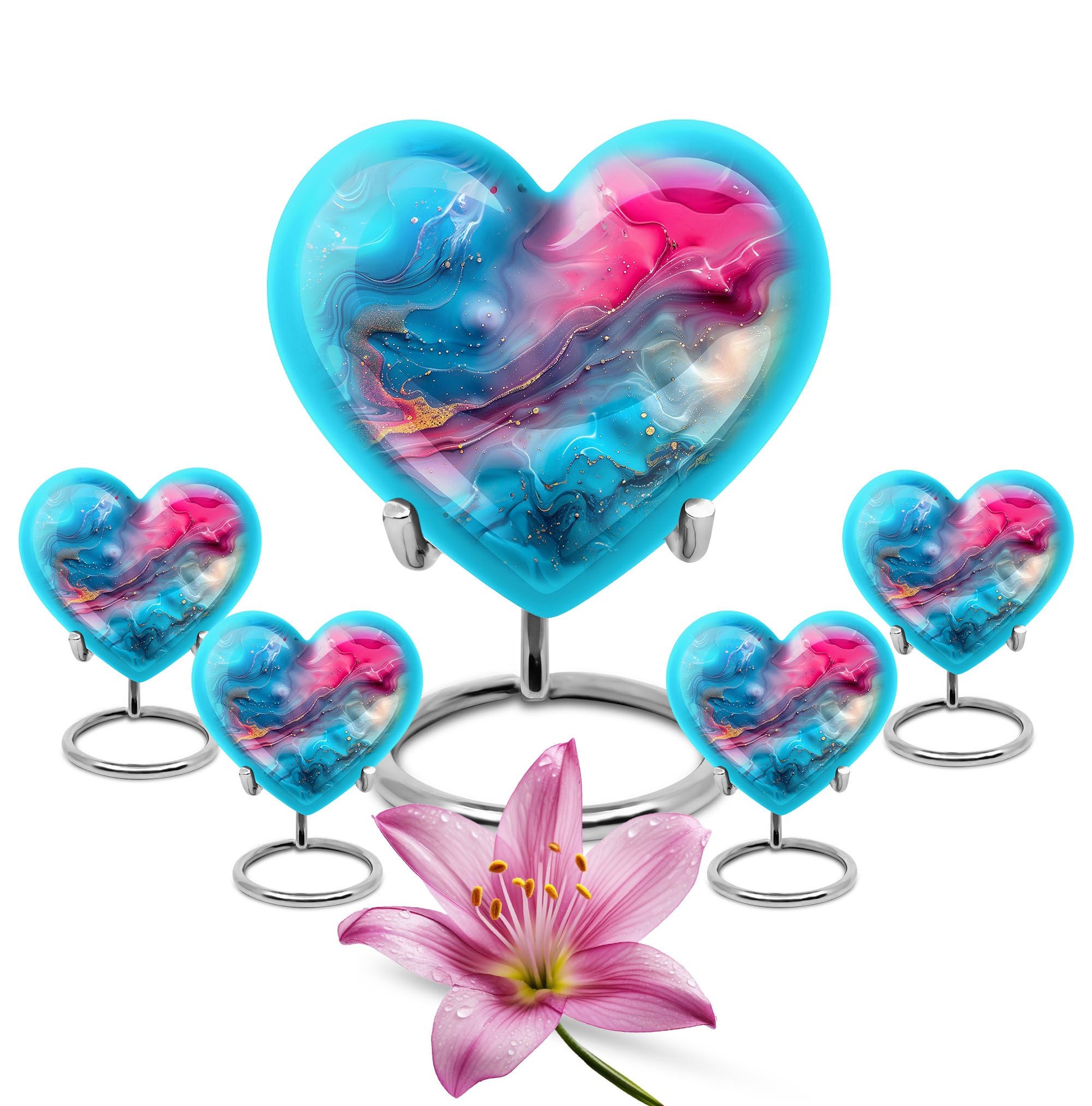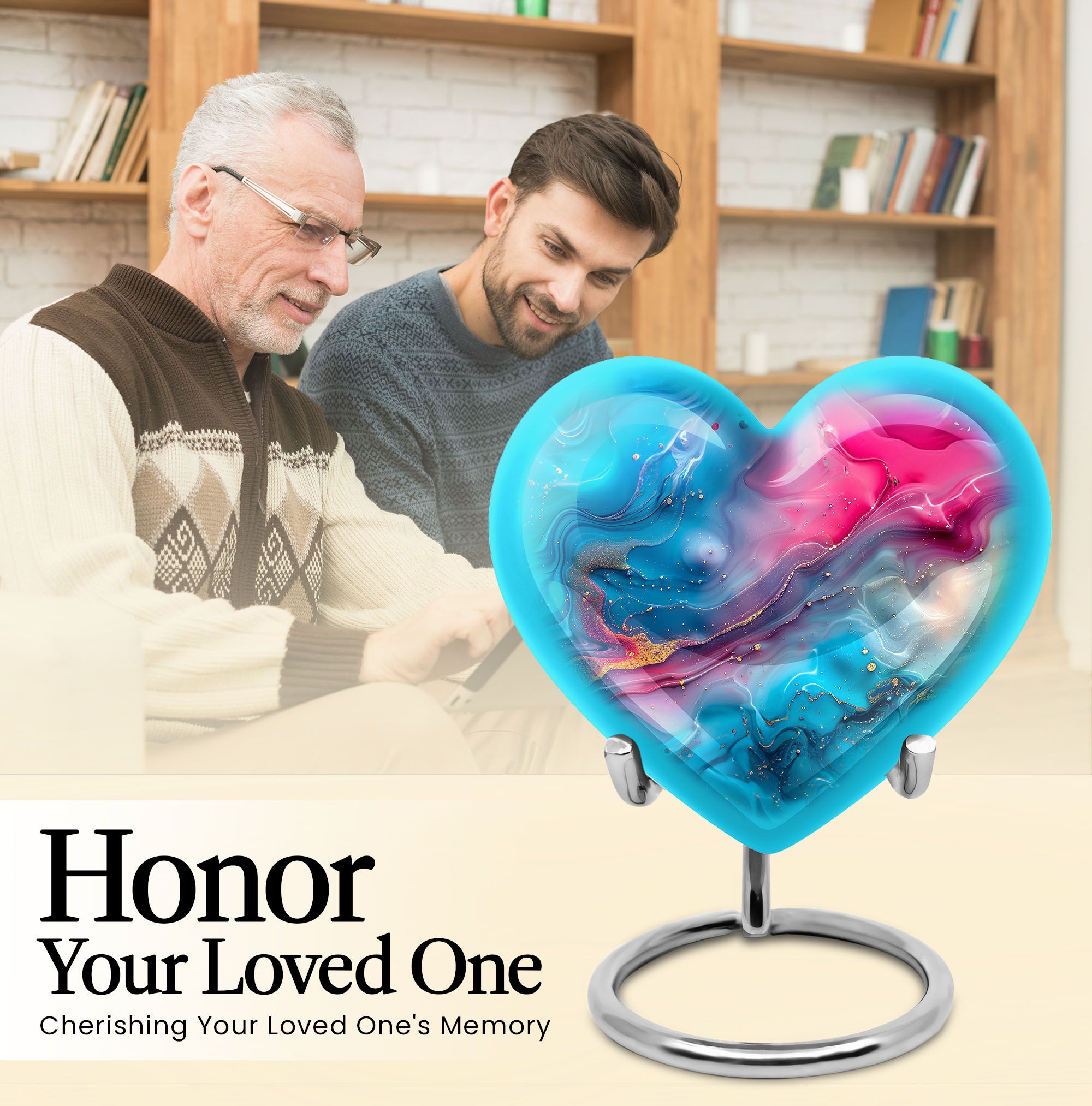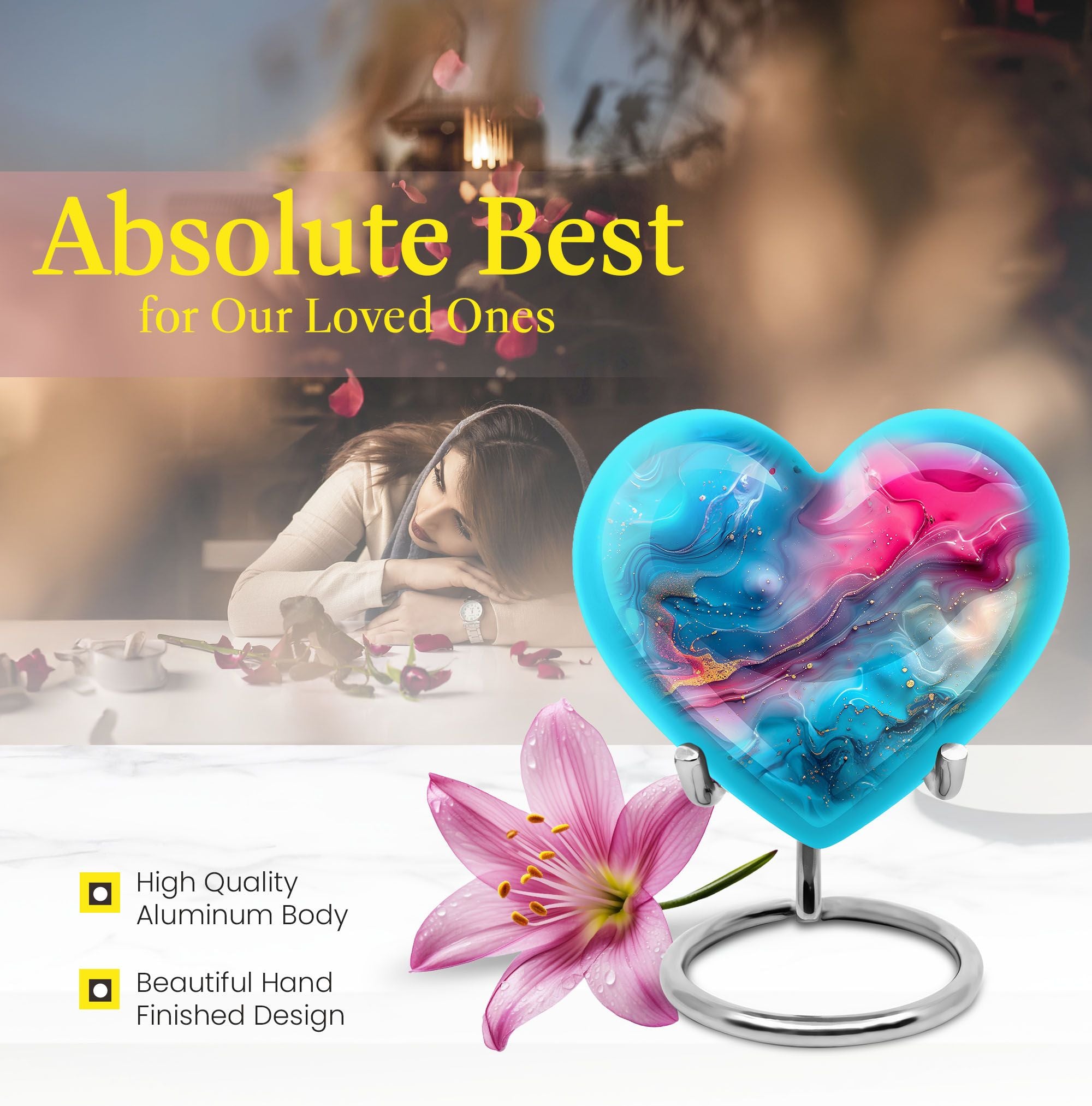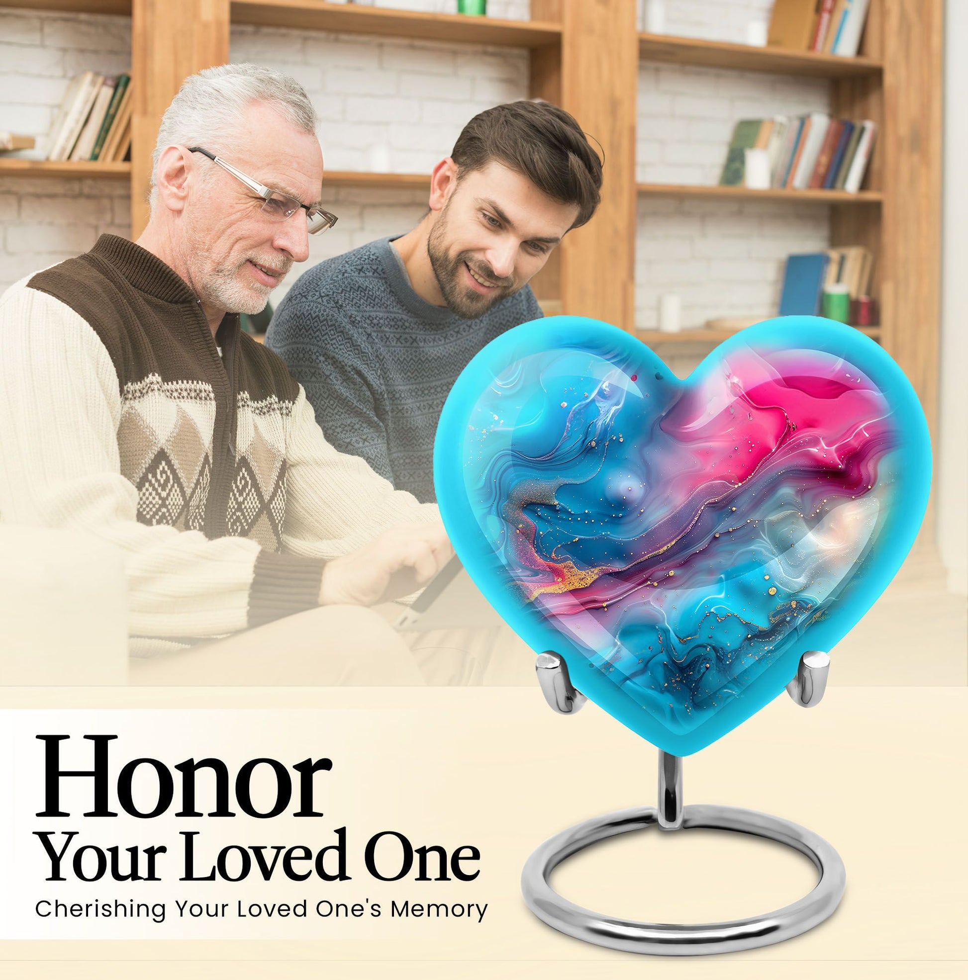 Honor your loved ones with dignity with this deluxe, deep 10-inch Aluminium Abstract Urn. This cremation urn serves as a lasting memory and comes in a commanding size, uniquely shaped like a heart to show the enduring love for your departed. It offers a substantial capacity of 200 cubic inches to securely accommodate the ashes of an adult male. The urn weighs 3.3 pounds which adds to its formidable presence and long-lasting quality. It comes with a comforting velvet pouch ensuring safe containment and transport. Adding a personalized touch, this urn allows for engraved names, making a unique piece entirely. This Abstract Urn strays from the generic look of other large urns, embracing an abstract theme to create a distinctive and unforgettable tribute. Portability makes it an ideal choice for those who wish to embark on memorial travel. This product takes into account the needs of those searching for 'urns for males', 'human urns for ashes female', 'Portable Urns for Travels'.