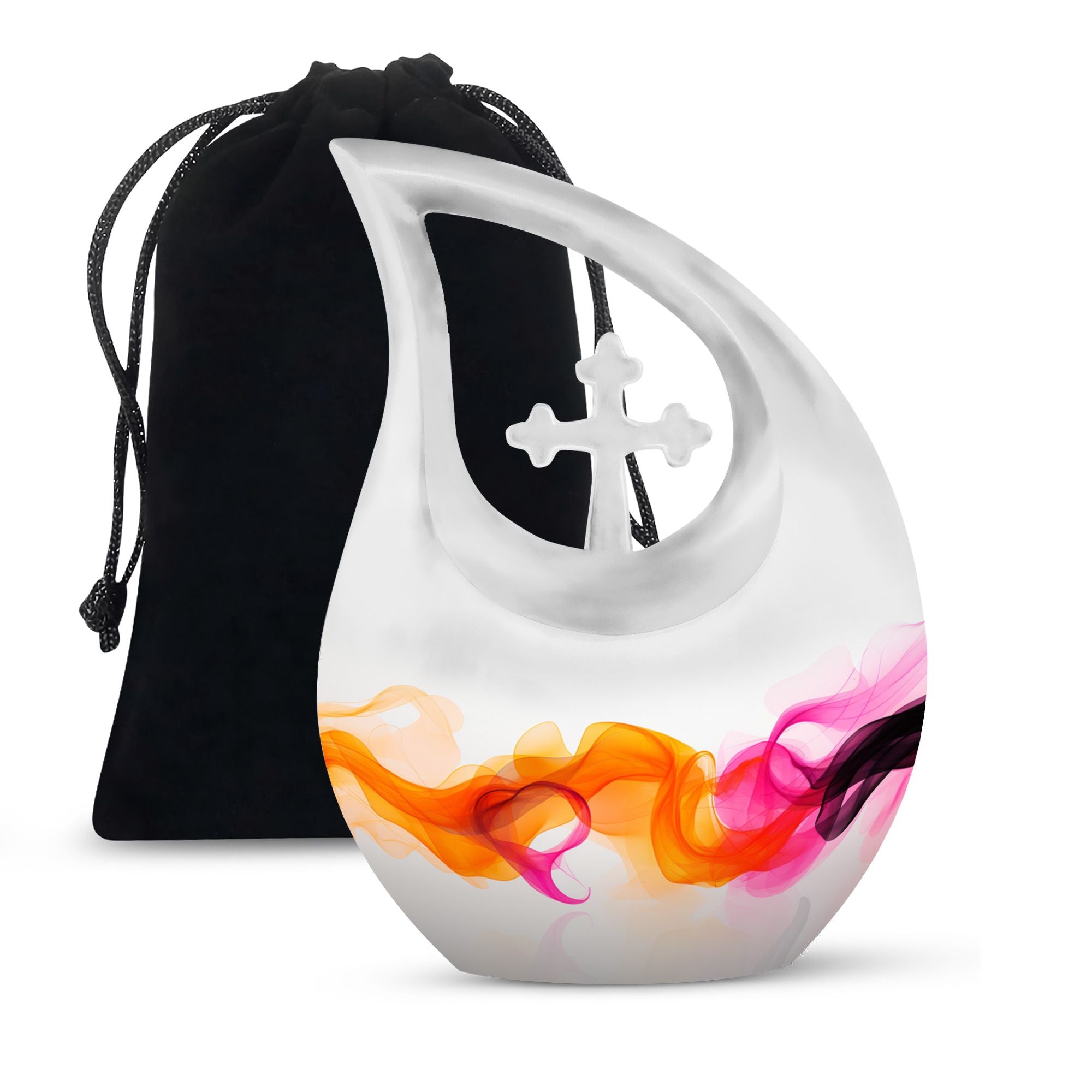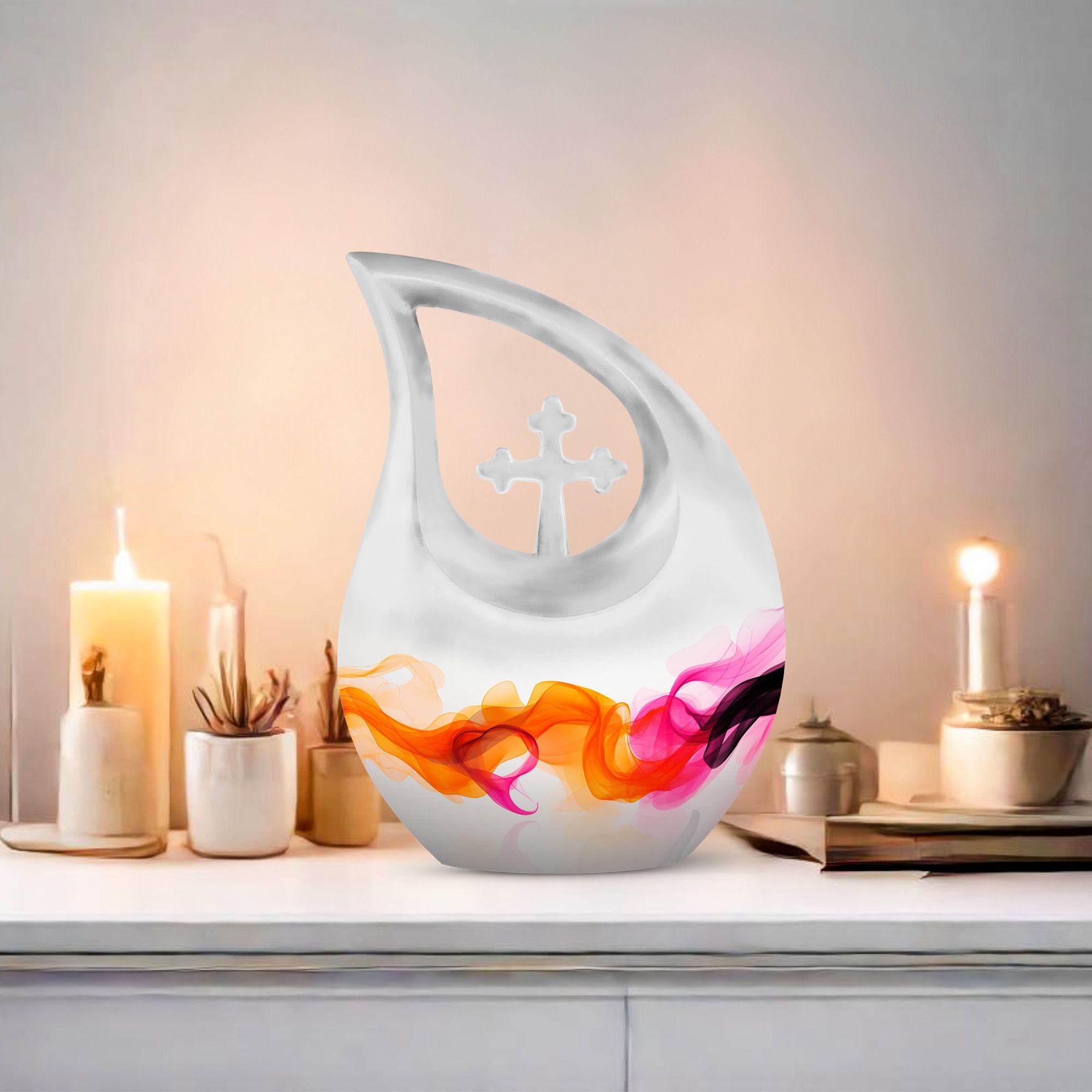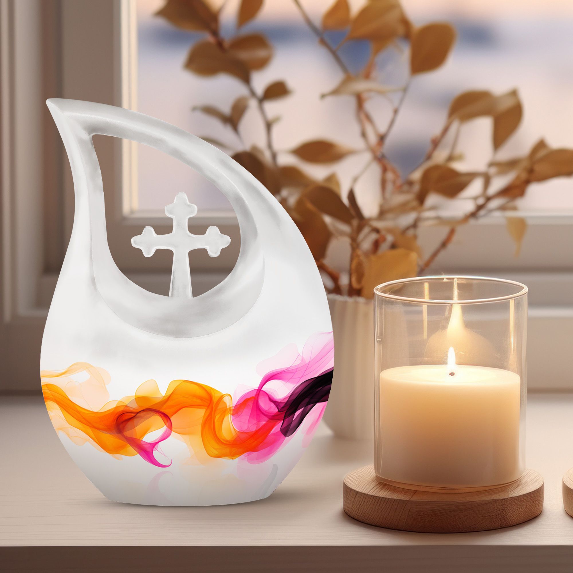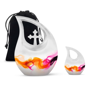 This White Abstract Urn for Adult Men and Colorful Cremation Urn for Women offers a peaceful and artistic way to honor a loved one’s memory. With its calming abstract design and gentle tones, it provides a meaningful tribute for families seeking an elegant memorial. Its versatile style complements those wishing to include matching small keepsake urn options for shared remembrance.